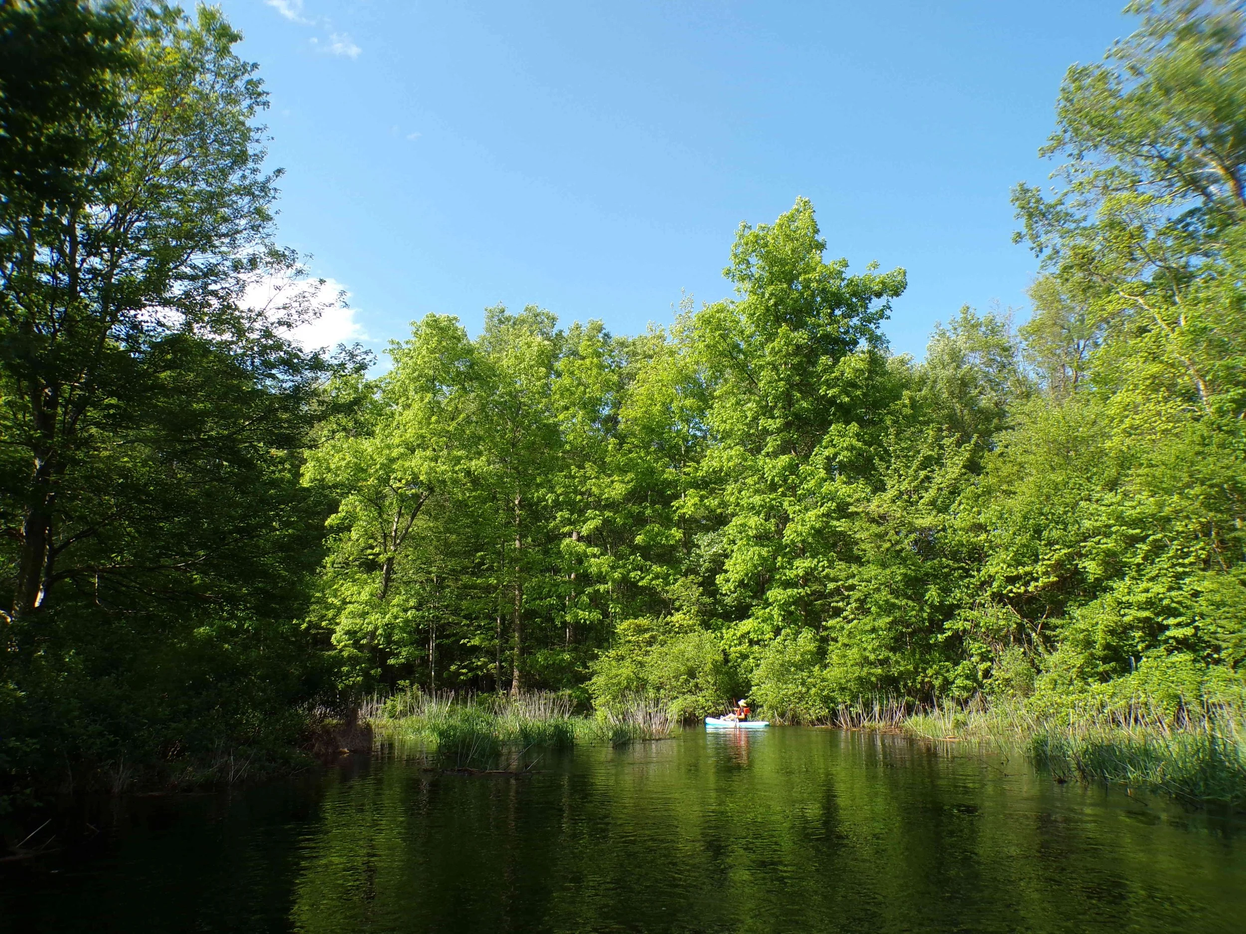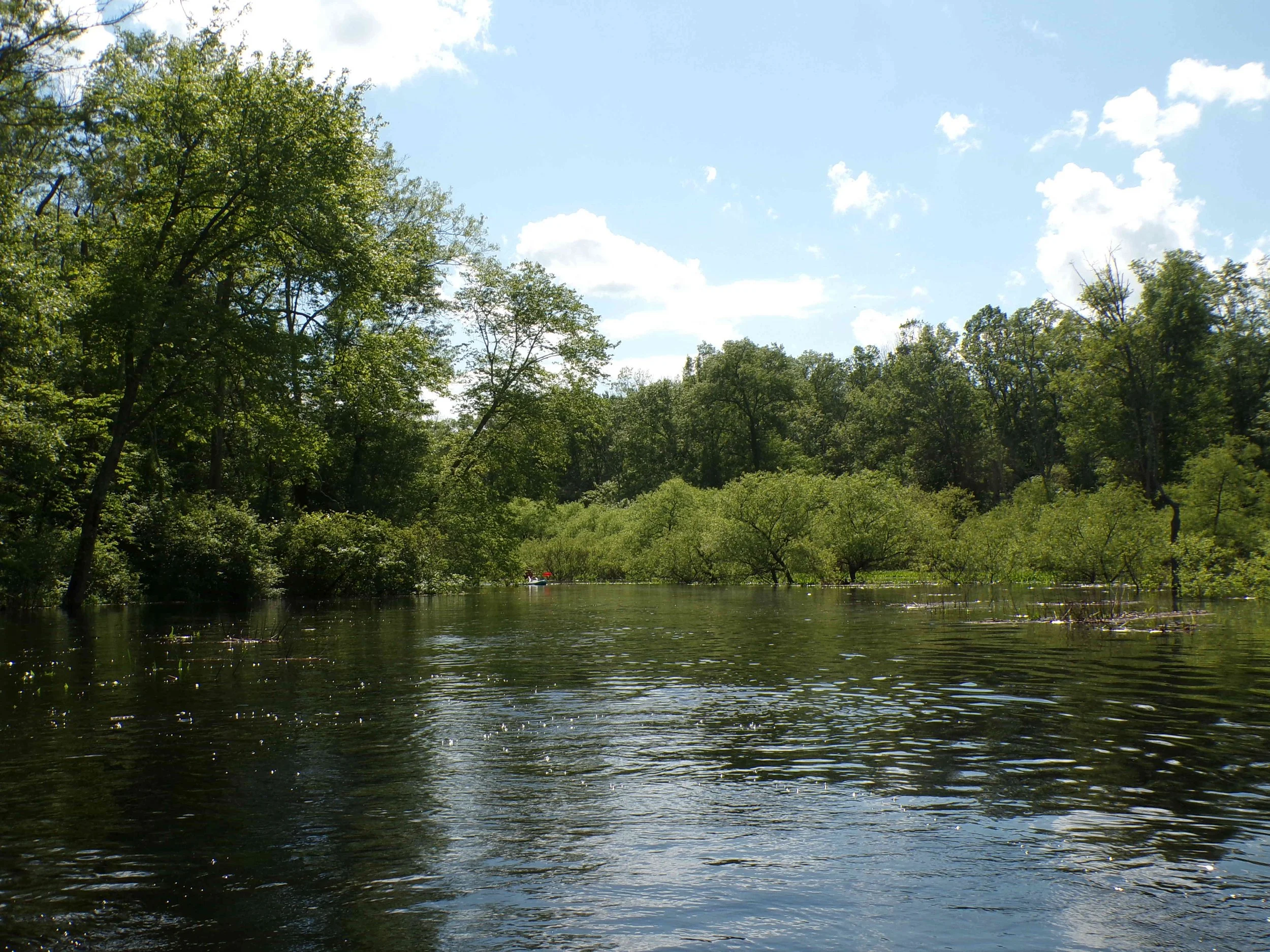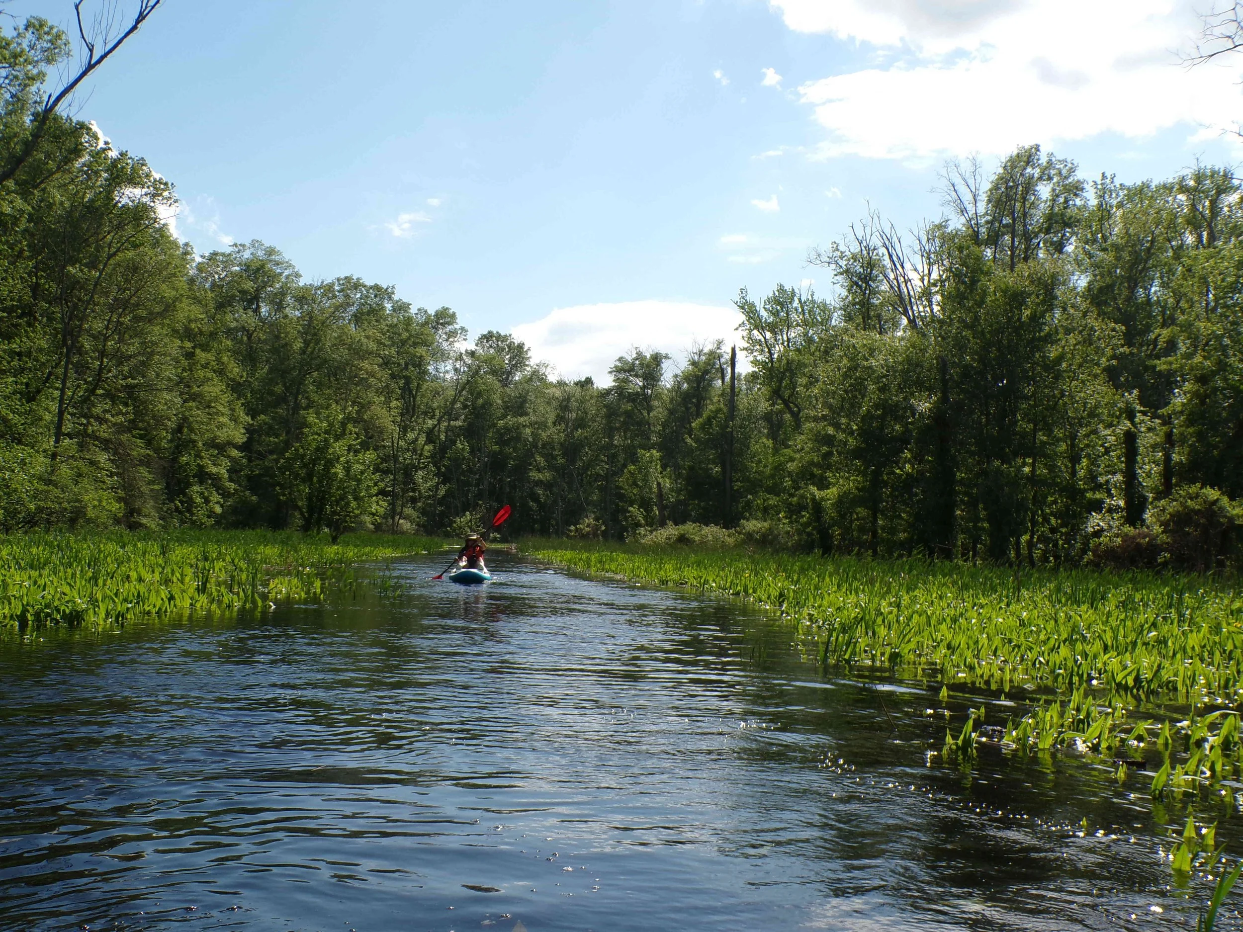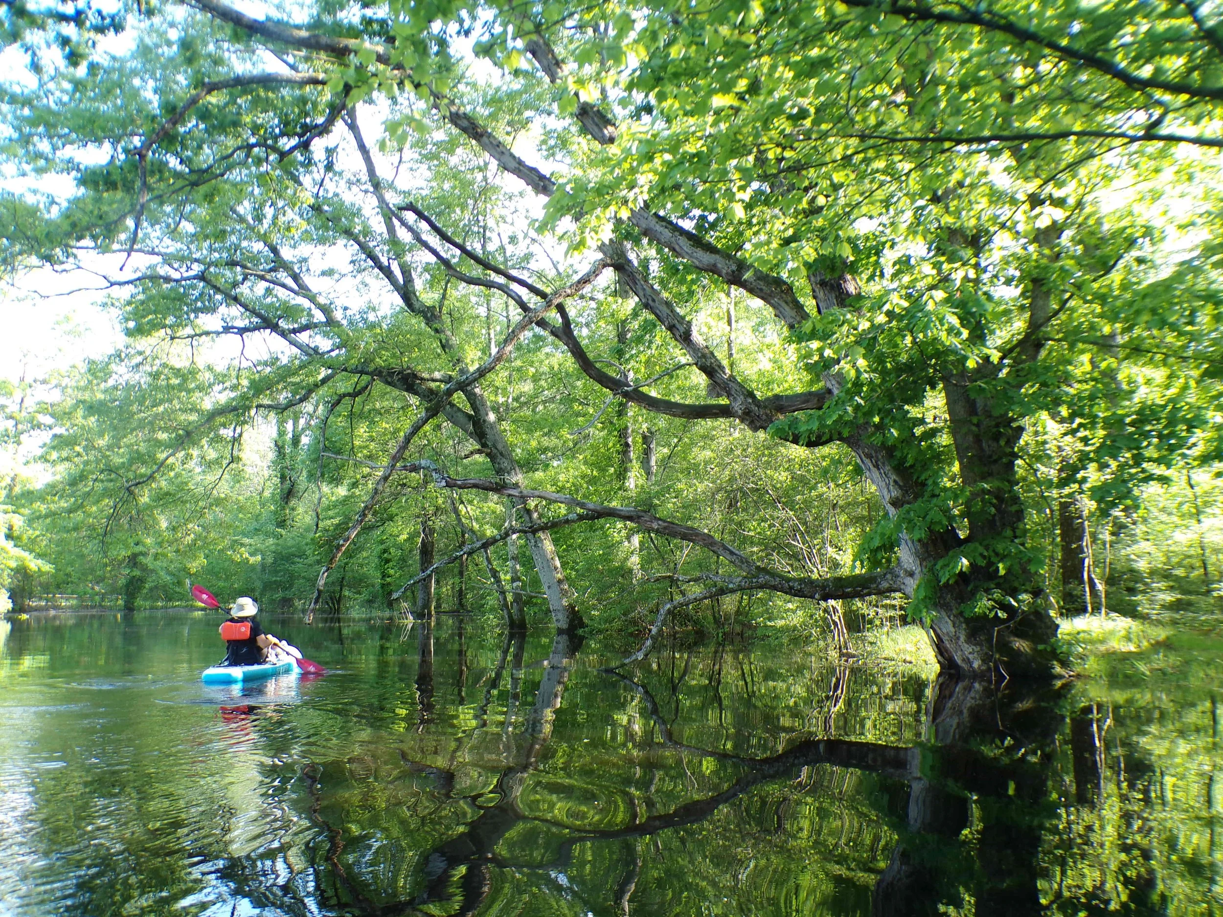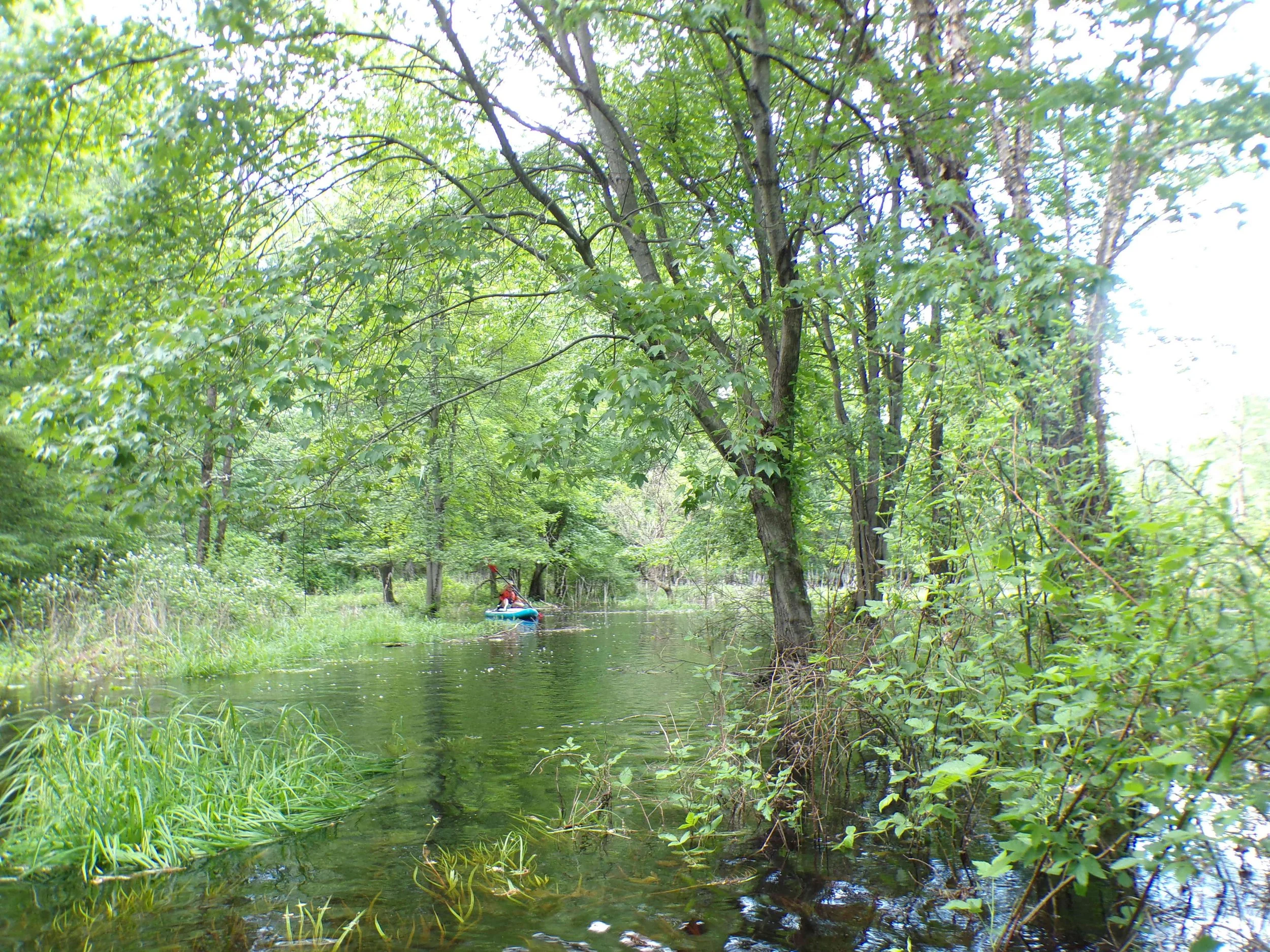 Much of the time, the Black Brook is not navigable. But when it rains hard for several days, one can paddle up to the bridge at White Bridge Road, then back down. If in doubt, check the nearby USGS stream gauge on the Passaic River that is at the top of the Millington Gorge (see link below). Ideally, the water level shown should more than six and a half feet. It is usually four and a half feet.