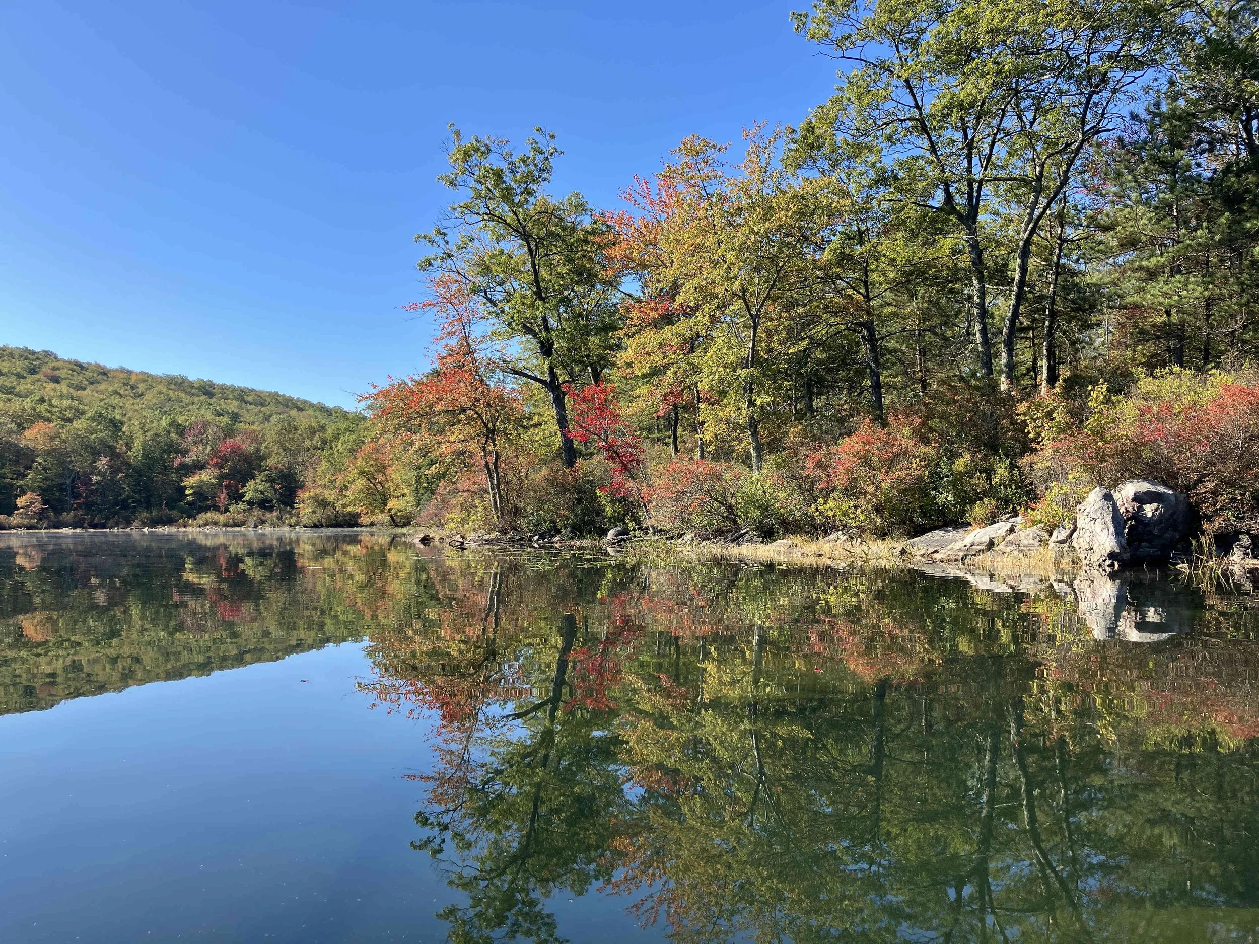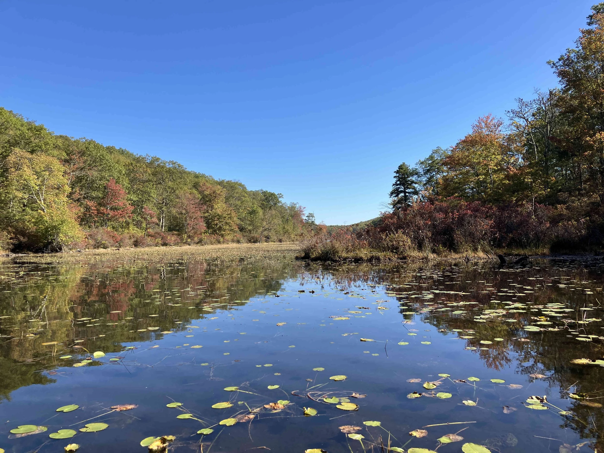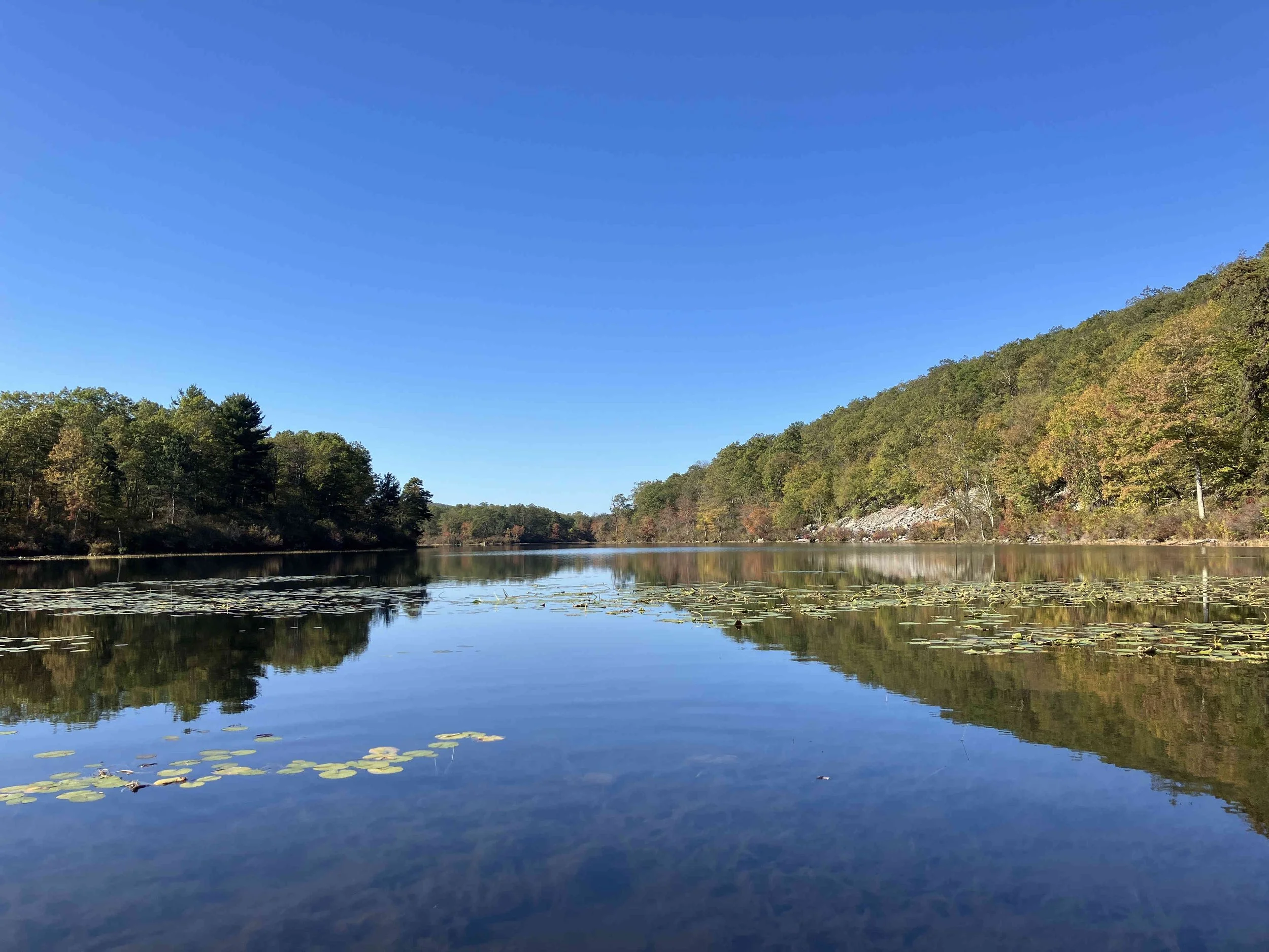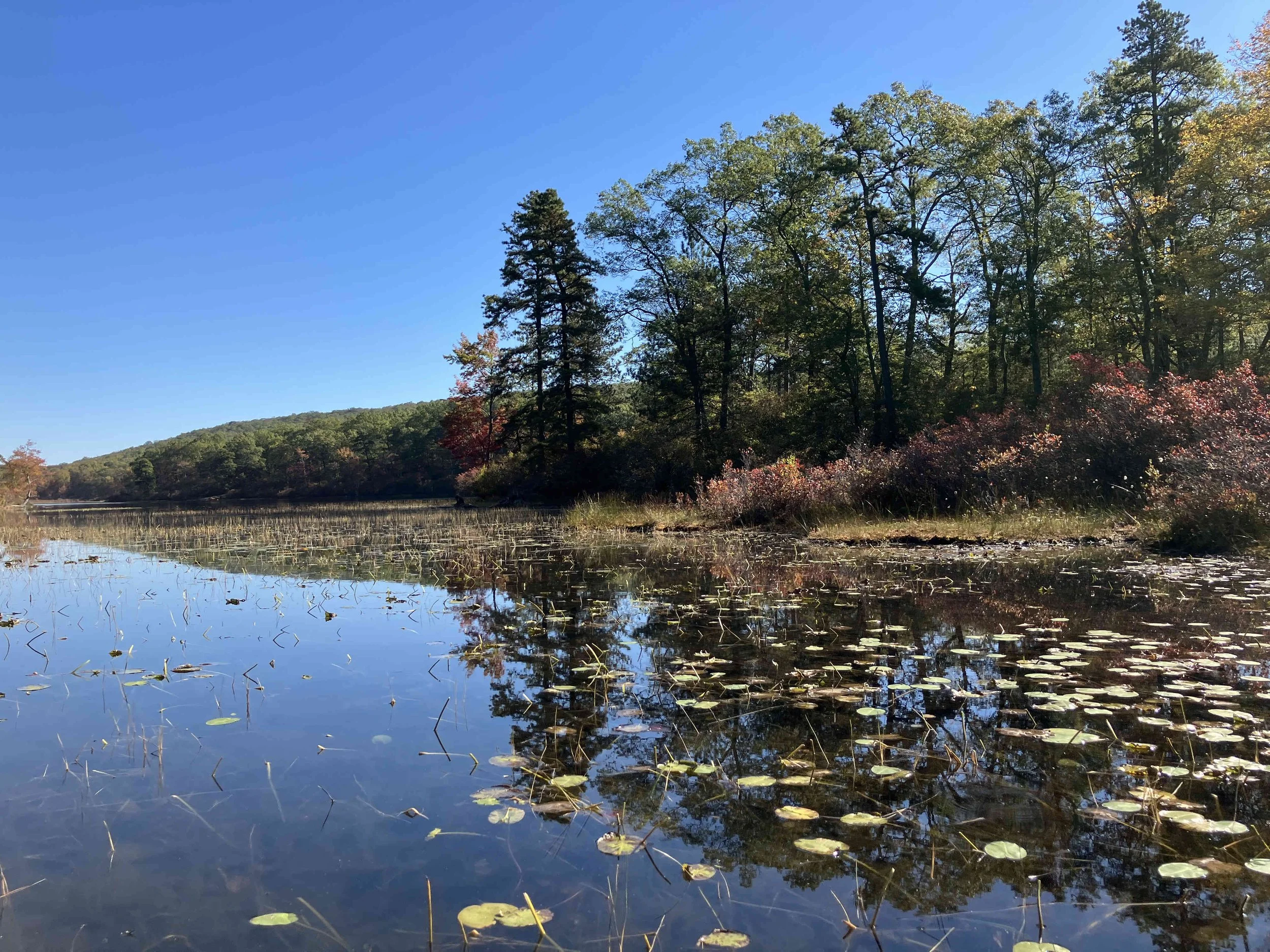 Catfish Pond (27 acres) is in Hardwick Township, Warren County. It is in the Delaware Water Gap National Recreation Area. The lake is very beautiful and wonderfully wild, with forests all around, and mountains to the north.