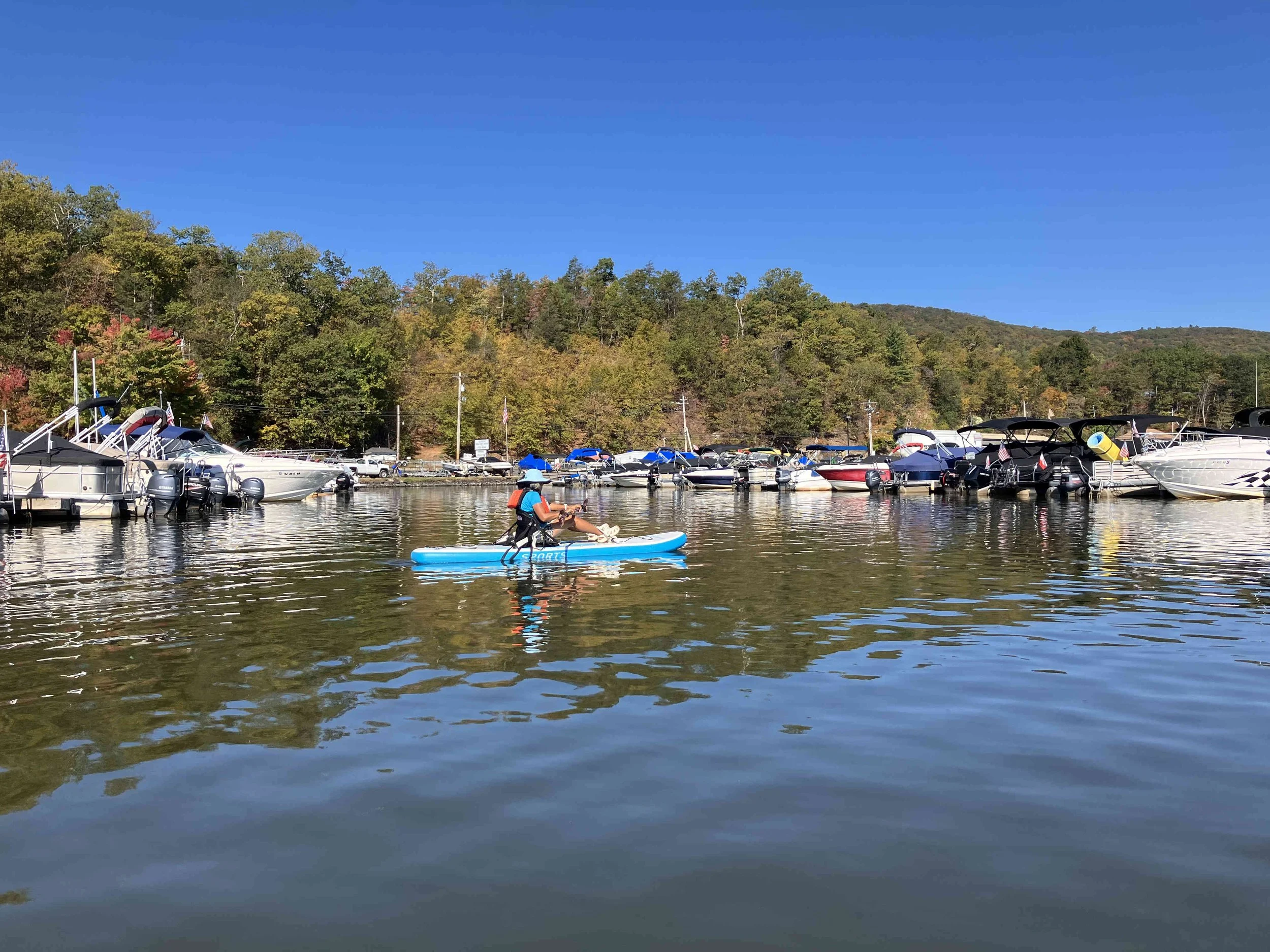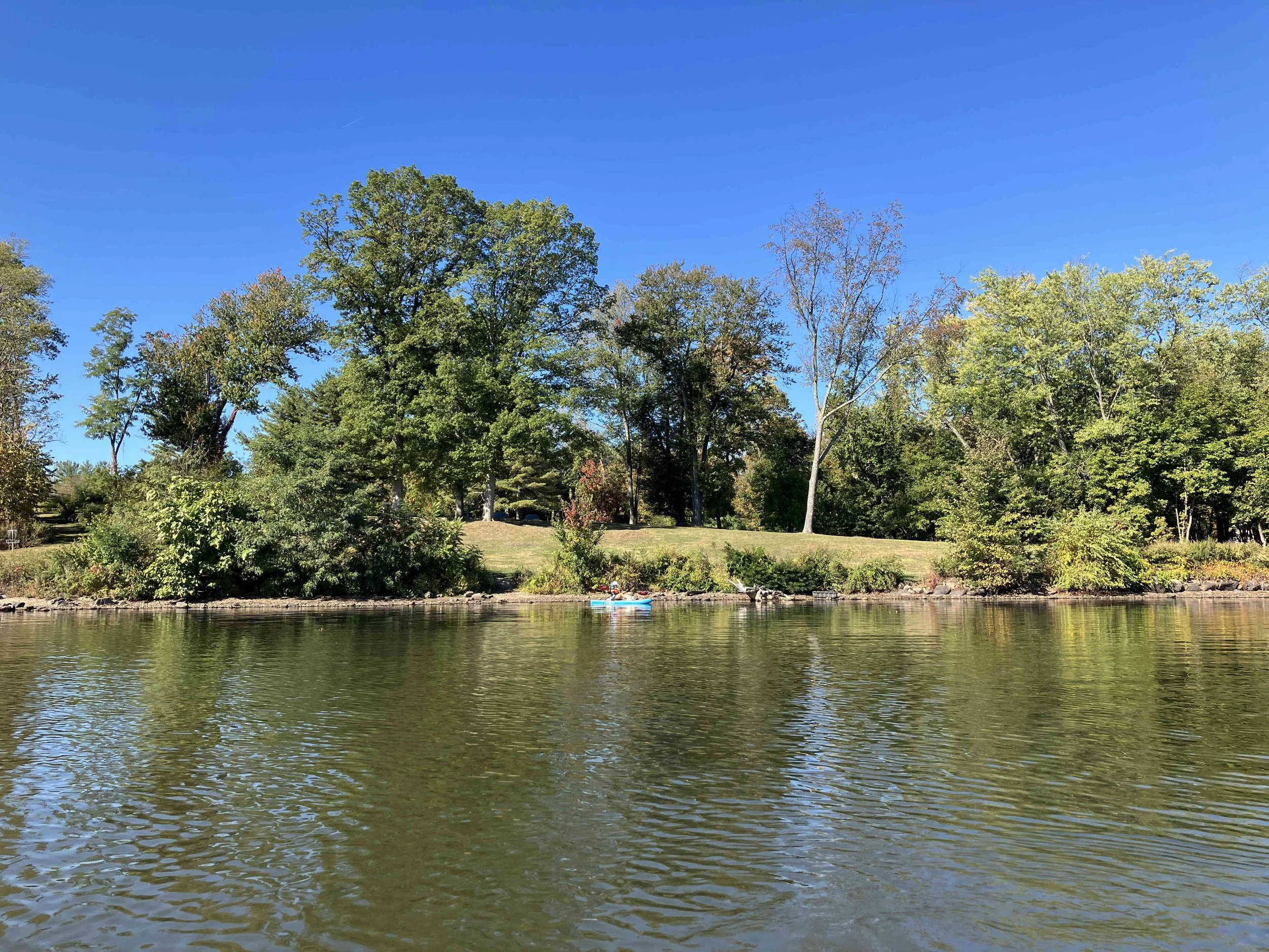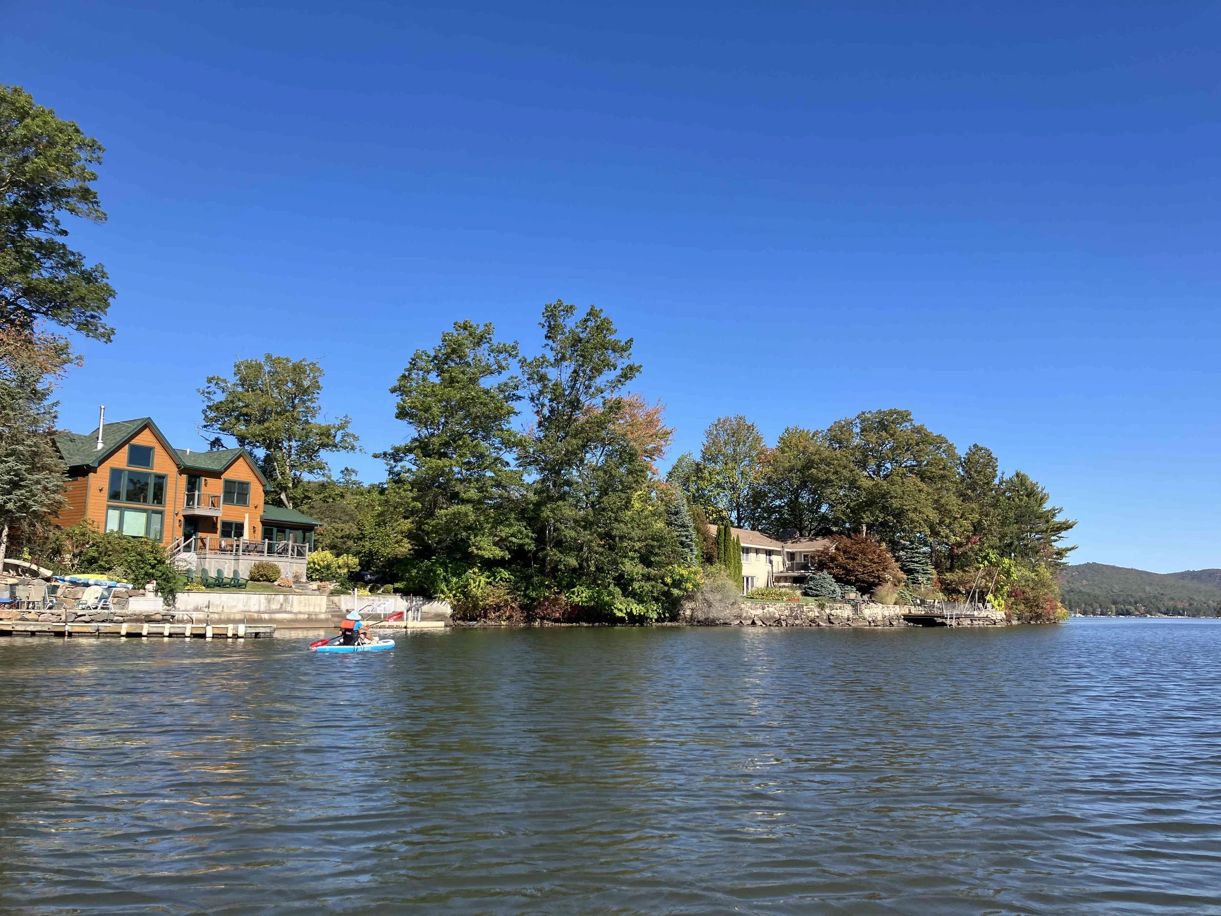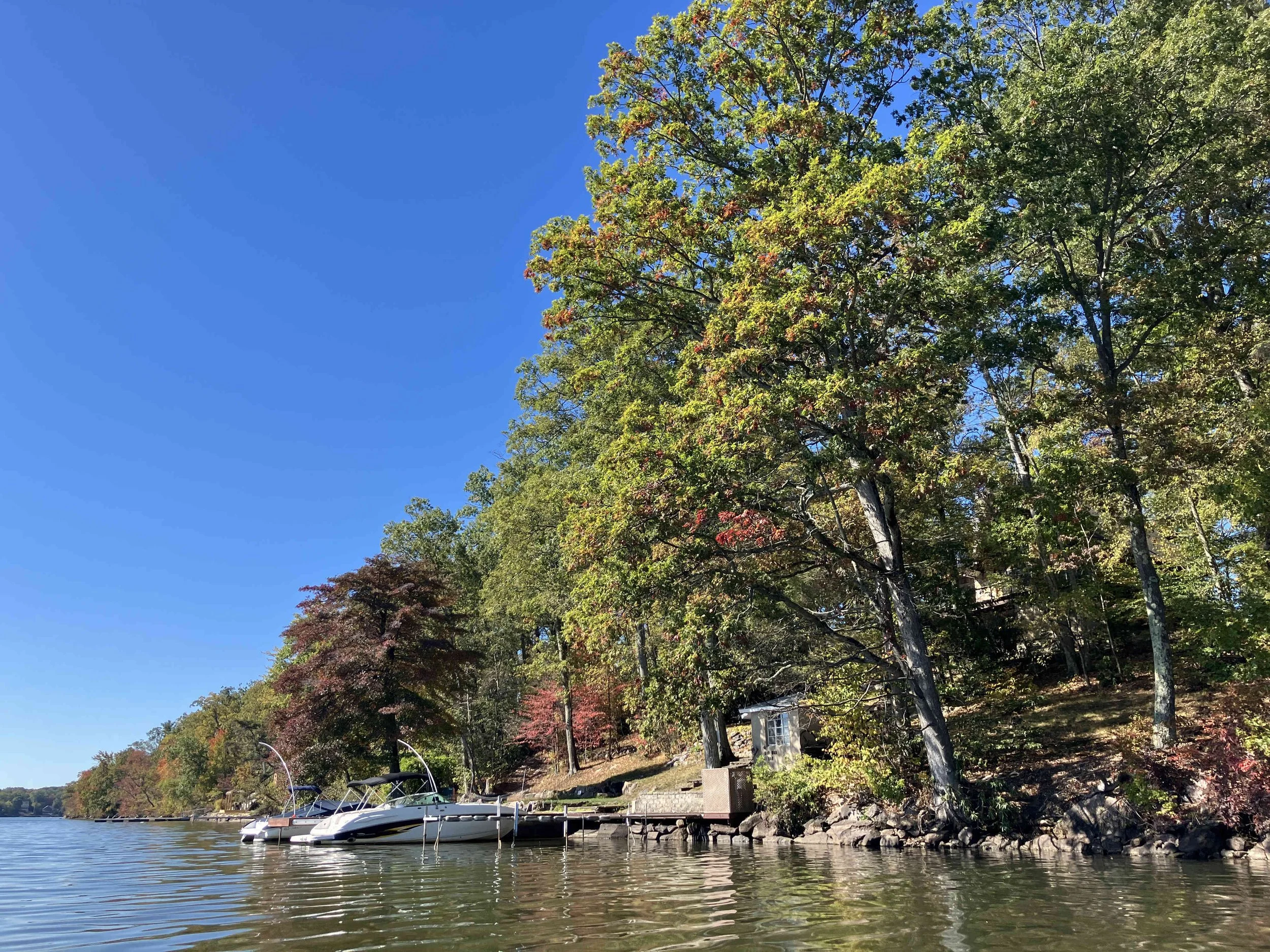 Greenwood Lake is pretty, but there may be strong winds. There are oodles of motorboats on the lake, so there also may be wakes. We visited on a weekday during school season, so we enjoyed a calm lake (see pictures below). We paddled north, around Fox Island, and then back.