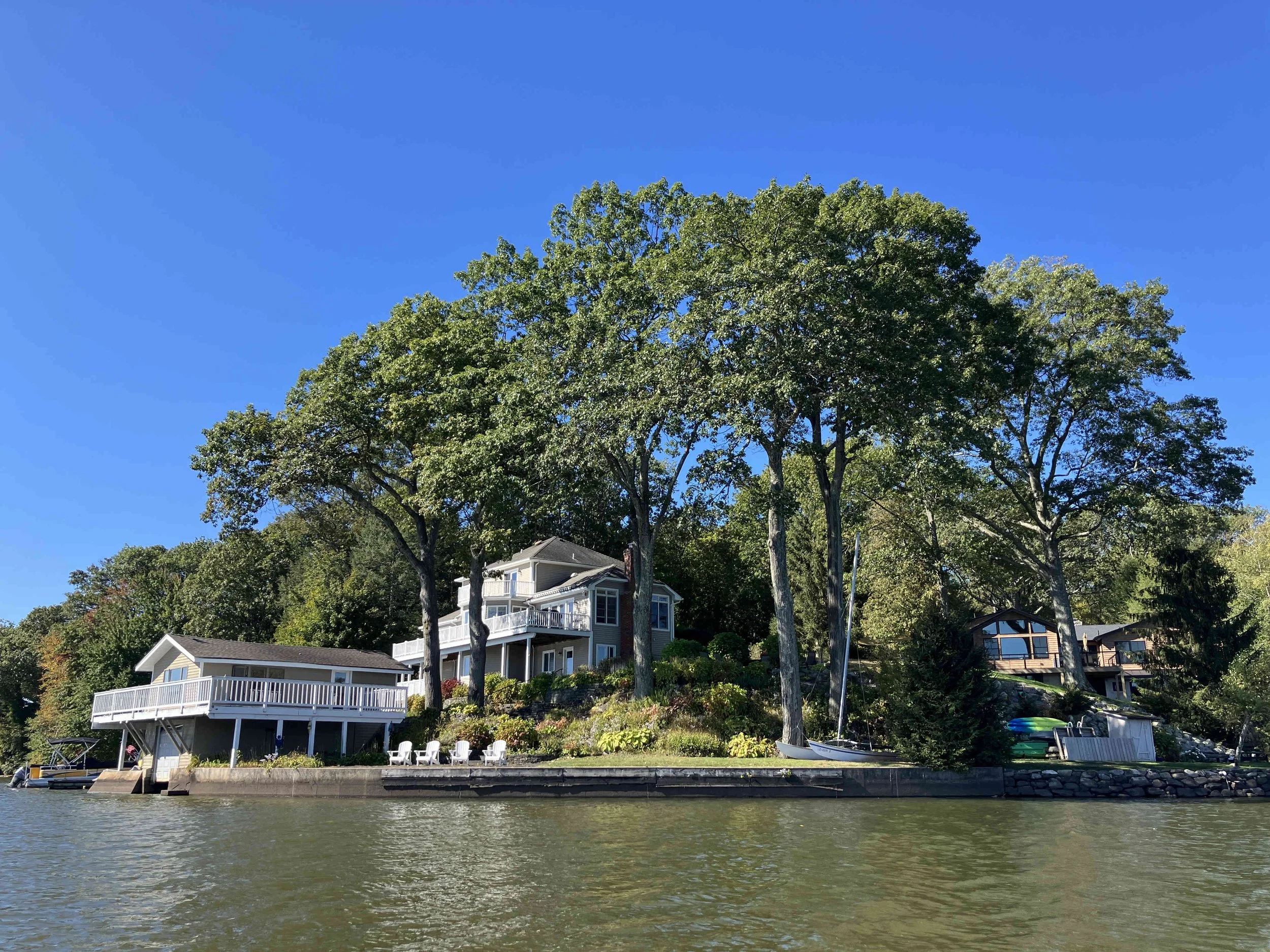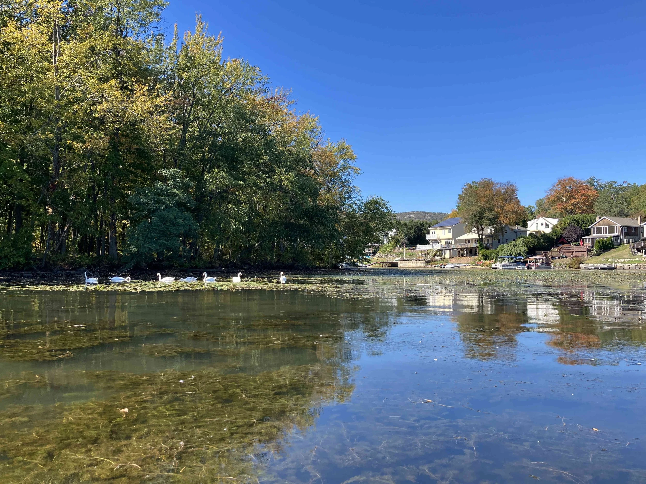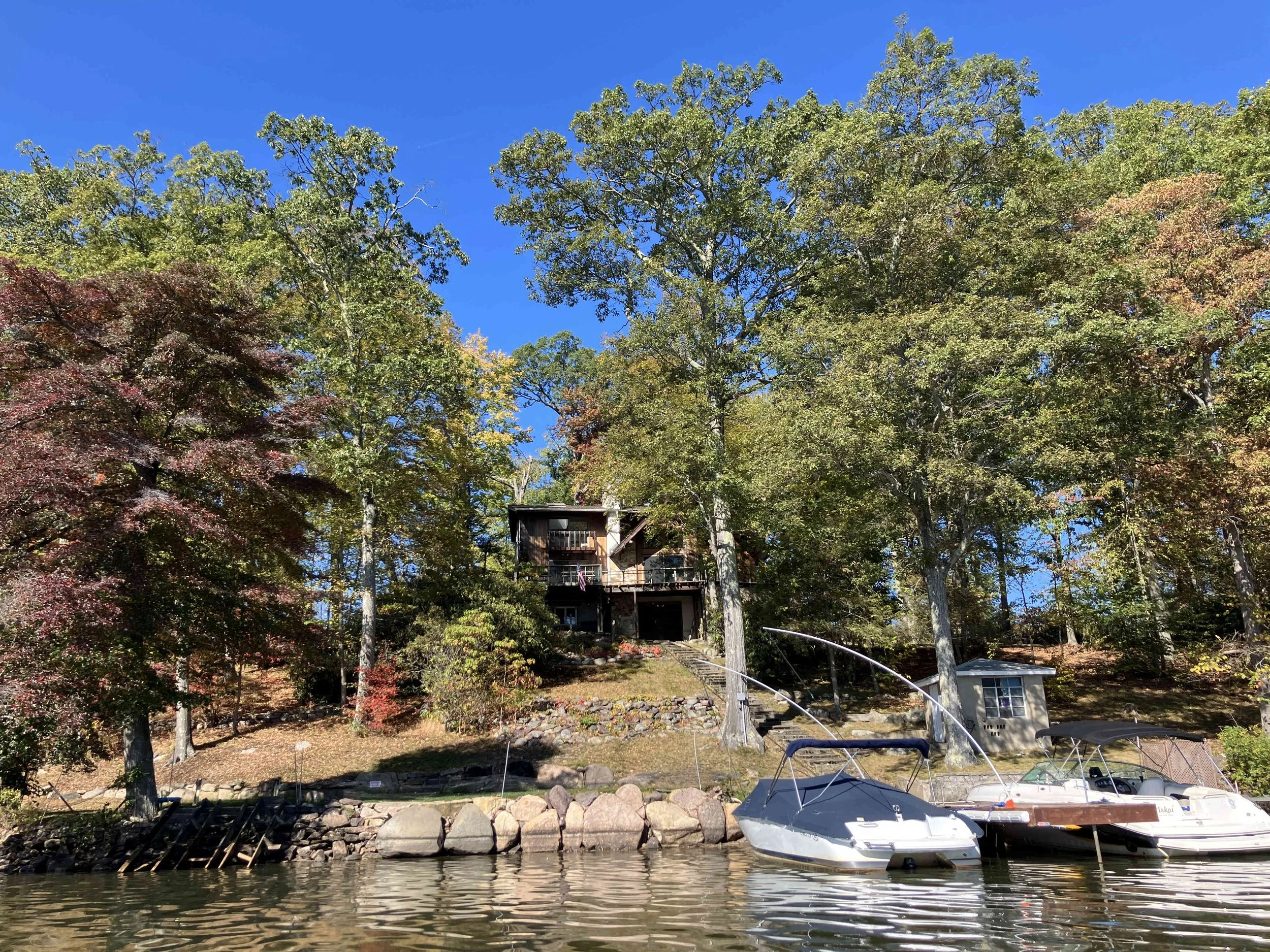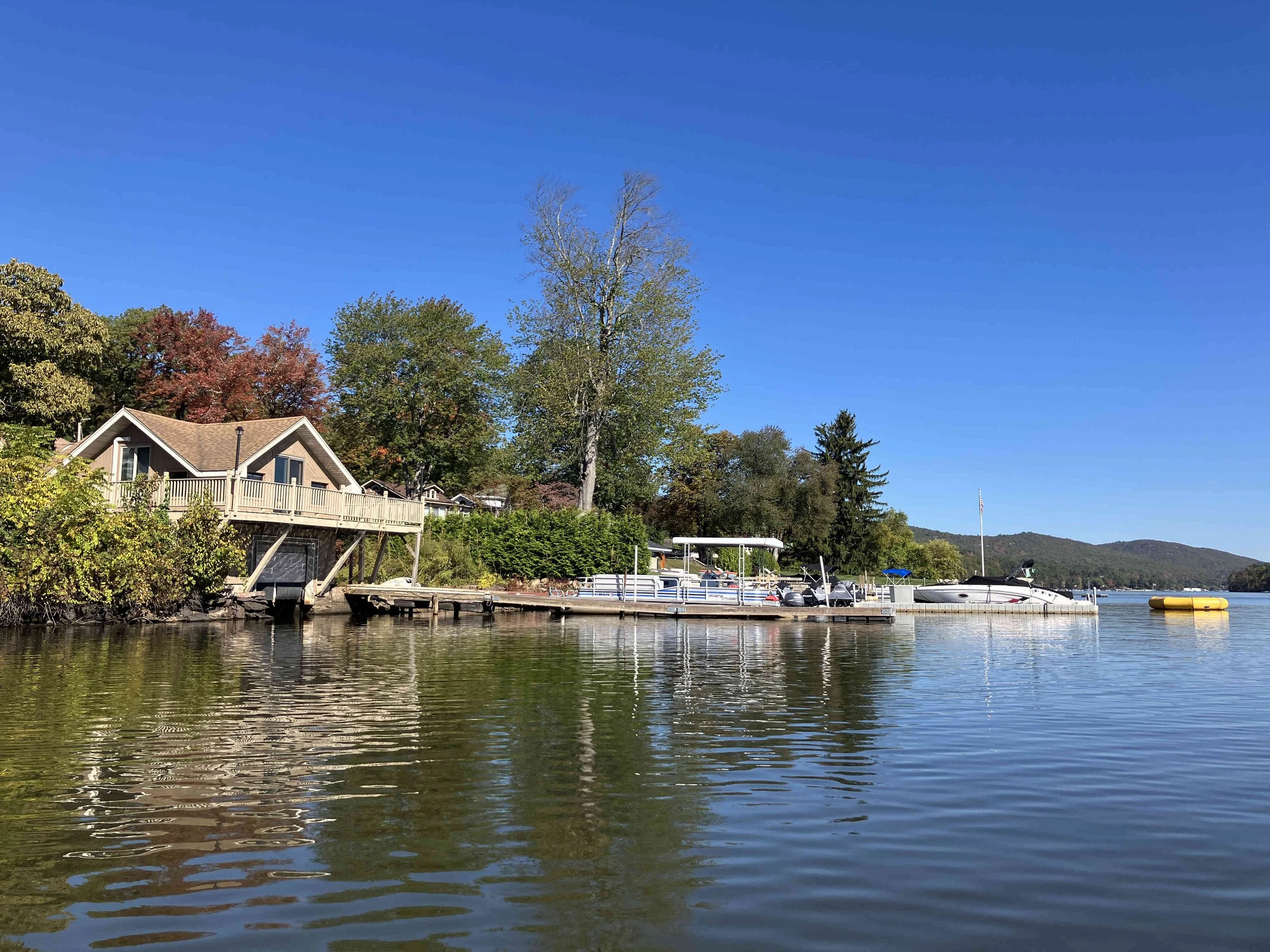 Greenwood Lake is pretty, but there may be strong winds. There are oodles of motorboats on the lake, so there also may be wakes. We visited on a weekday during school season, so we enjoyed a calm lake (see pictures below). We paddled north, around Fox Island, and then back.