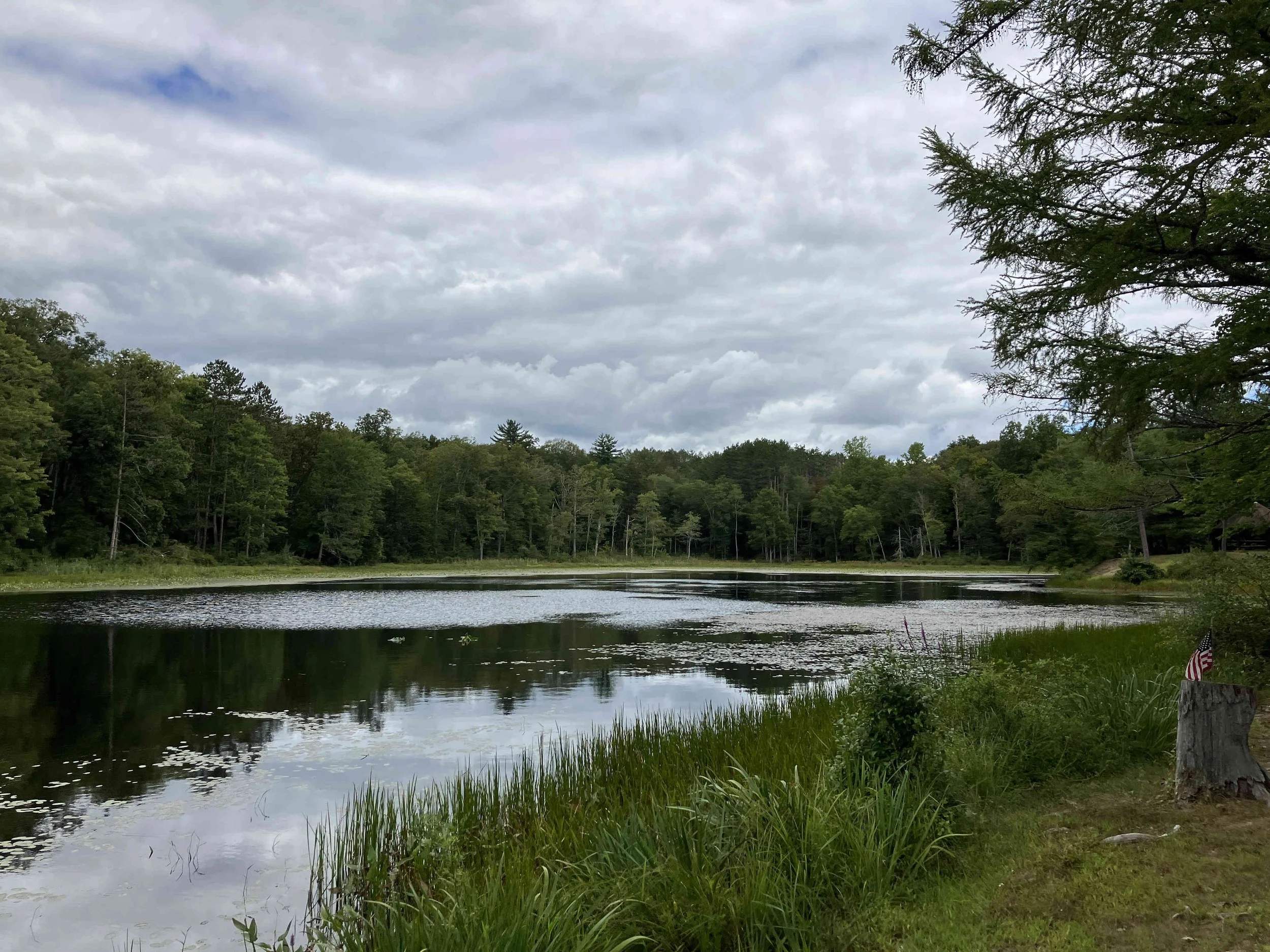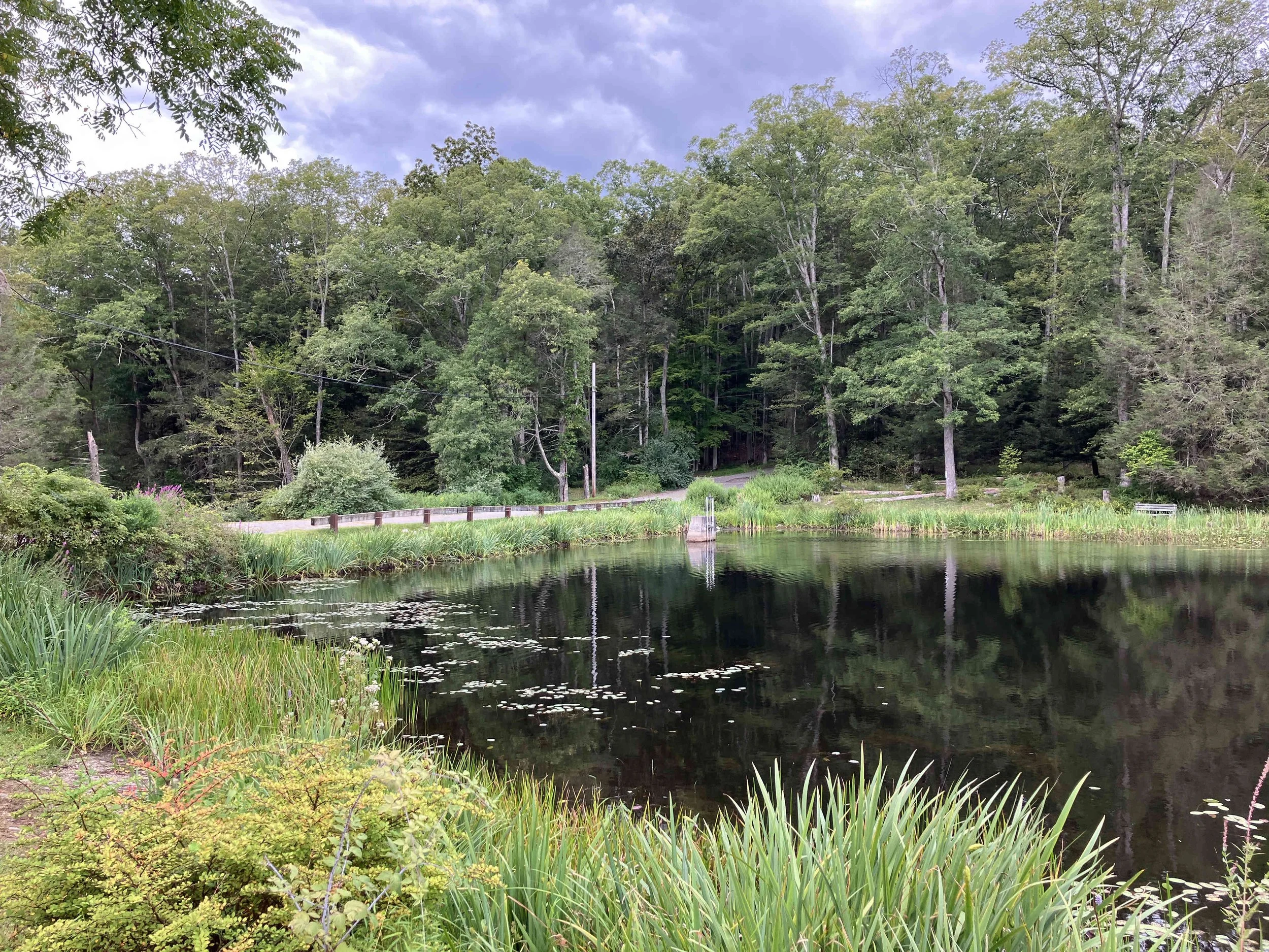 Lake Ocquittunk (8 acres) is in Sandyston, Sussex County. It is one of two lakes in Stokes State Forest where one can go kayaking. But it is not worth visiting. It is tiny, not very pretty, and half-covered in weeds. the following pictures were taken from the shore.