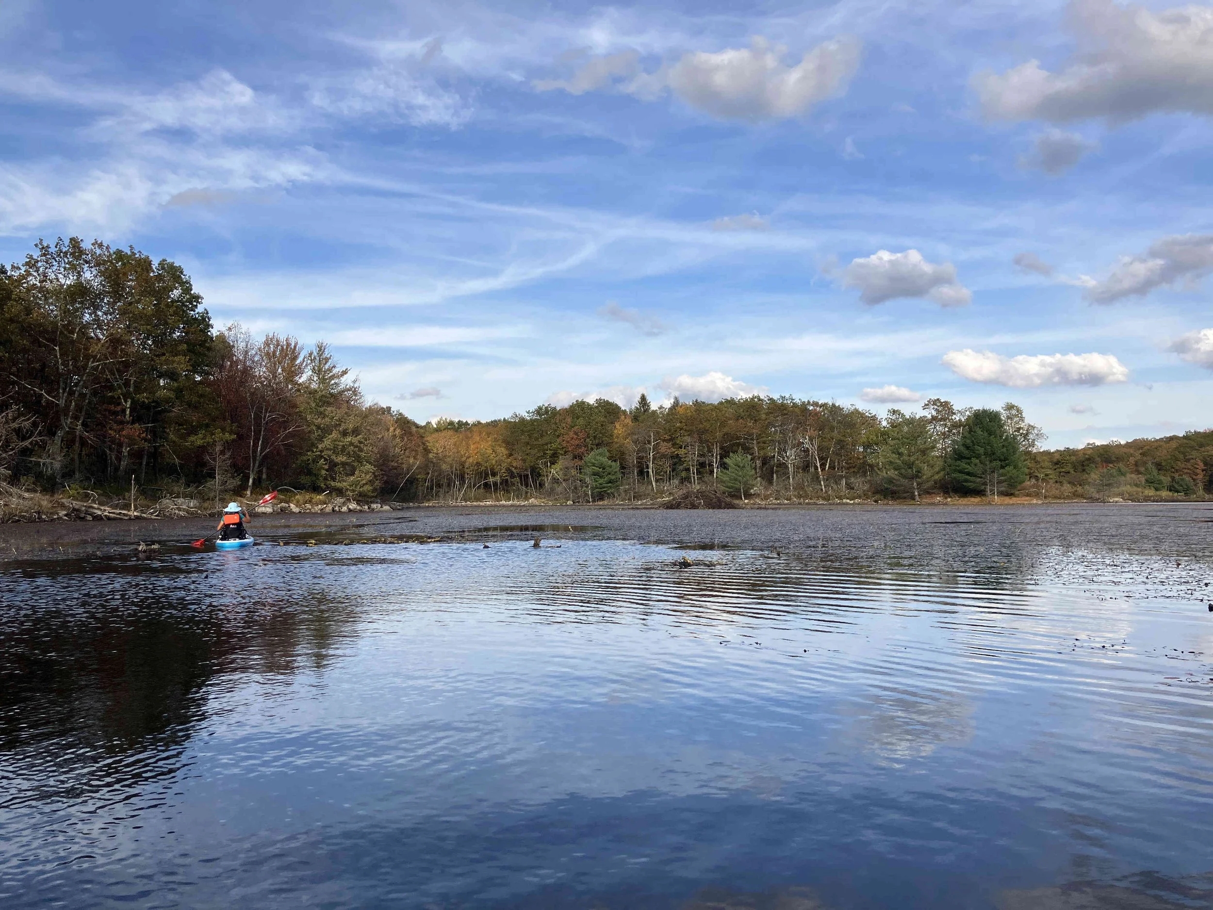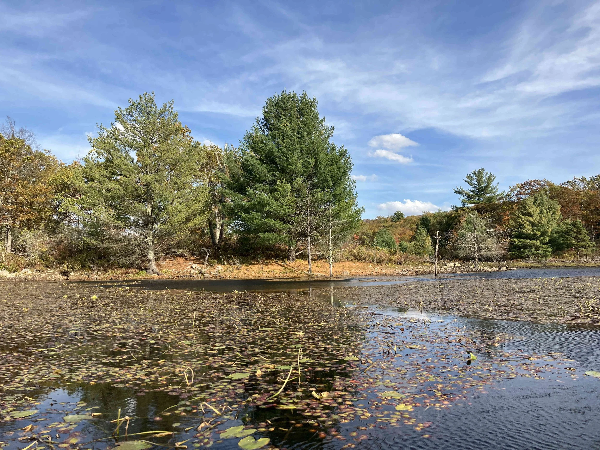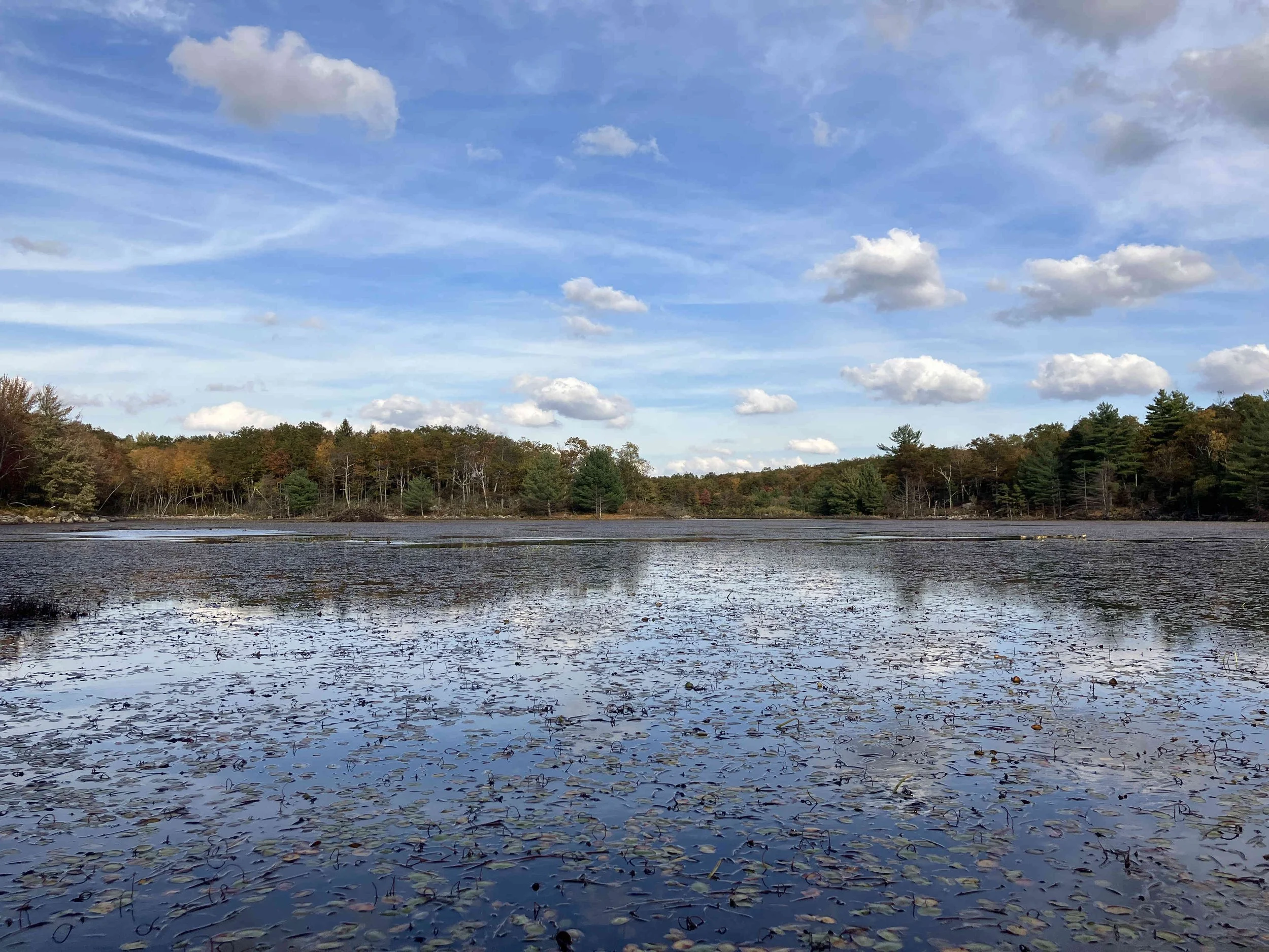 Lake Success (17 acres) is in Hardwick Township, Warren County. It is in the Delaware Water Gap National Recreation Area. Most of the lake is covered with weeds. But the beavers have cut channels through the vegetation, which one can use to explore. The lake is an excellent example of how beavers can significantly alter a body of water. It is both pretty and interesting.