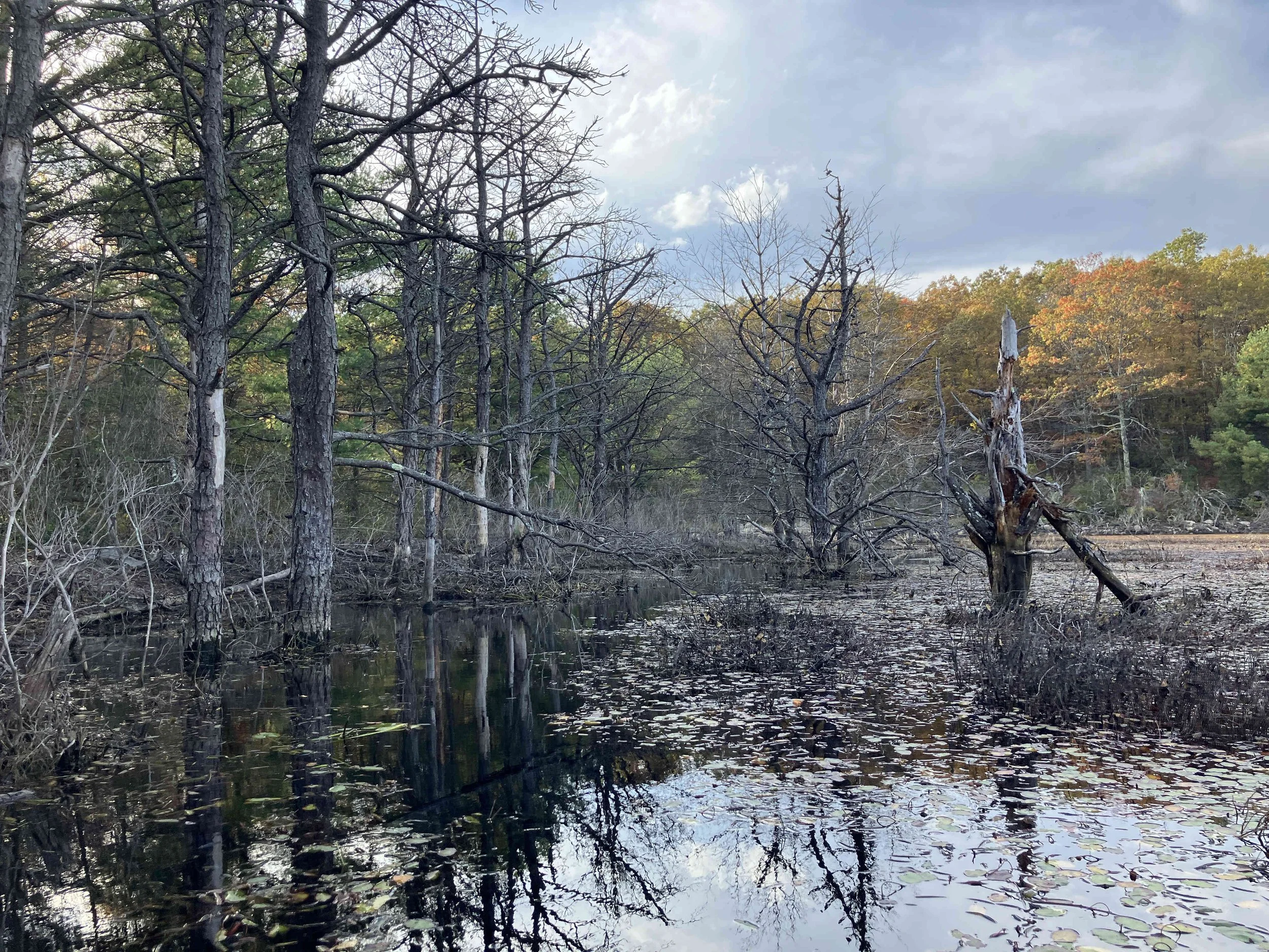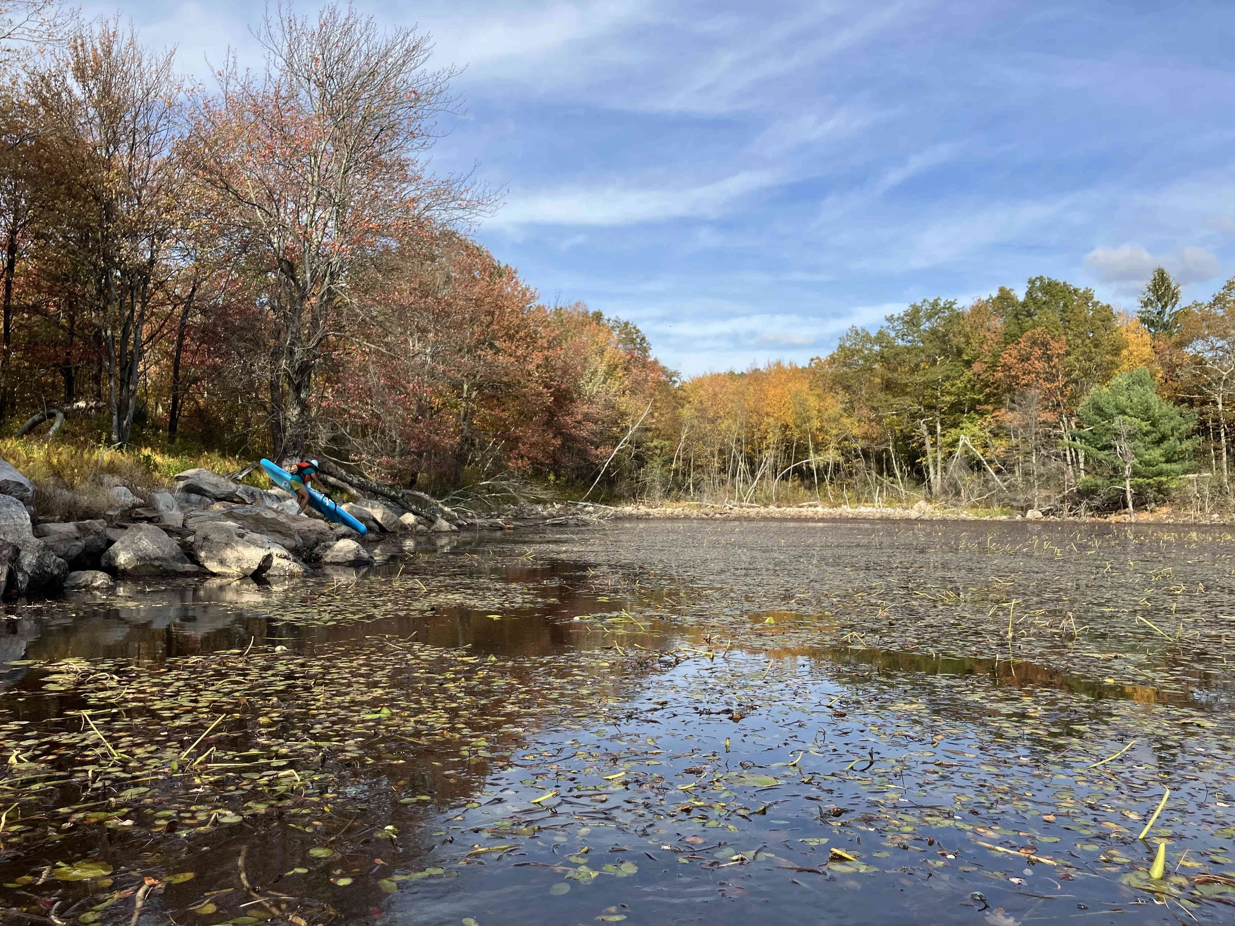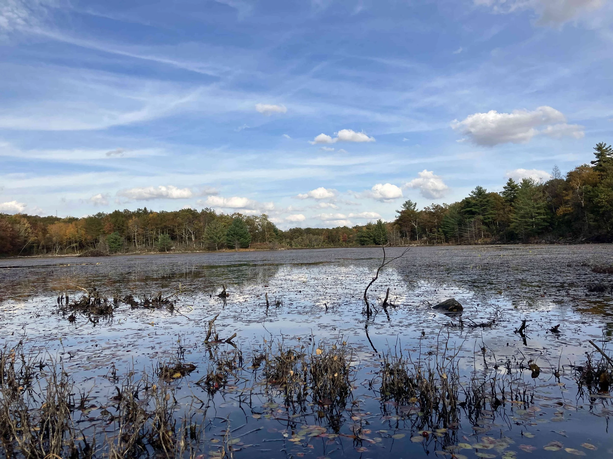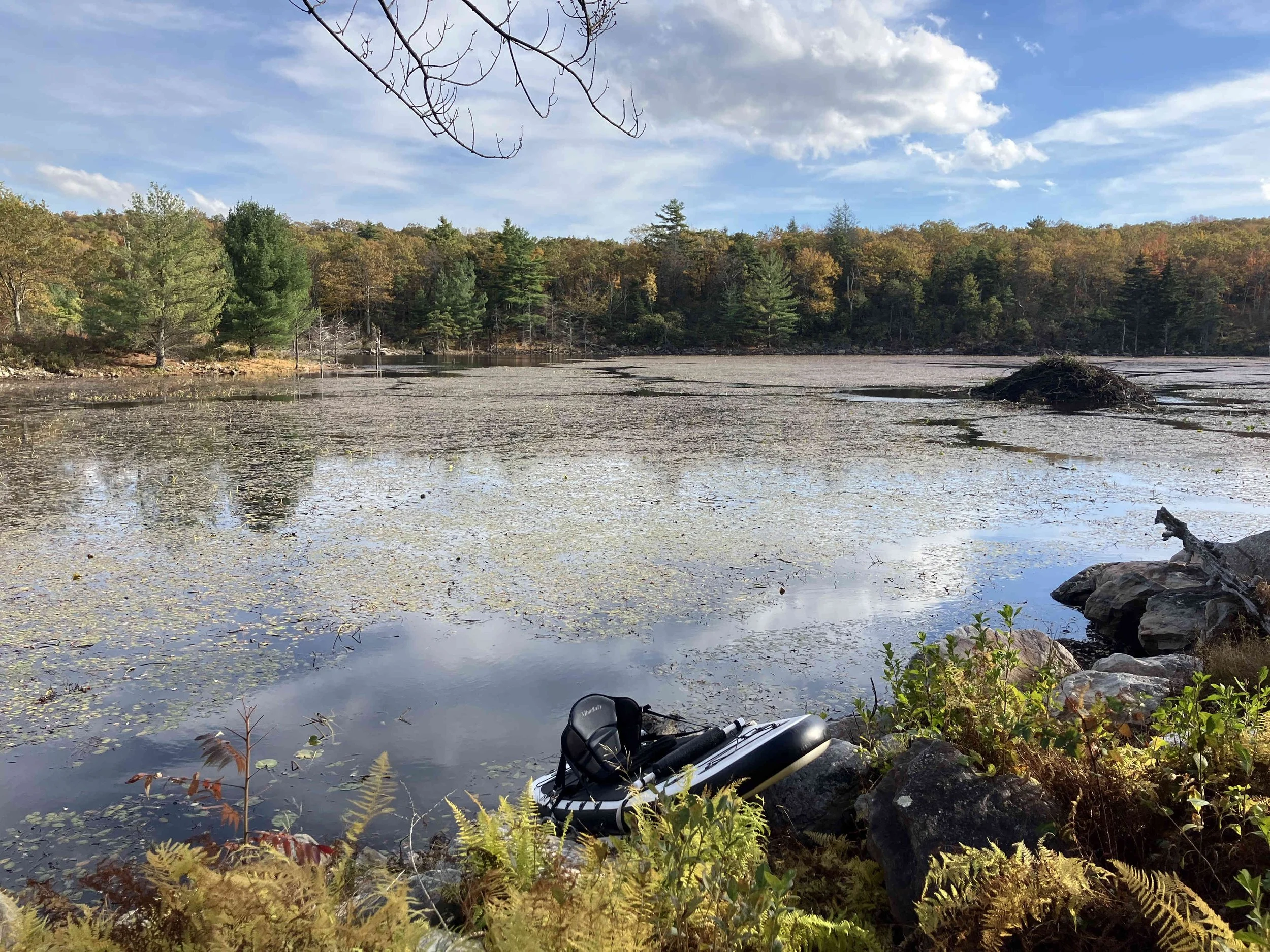 Lake Success (17 acres) is in Hardwick Township, Warren County. It is in the Delaware Water Gap National Recreation Area. Most of the lake is covered with weeds. But the beavers have cut channels through the vegetation, which one can use to explore. The lake is an excellent example of how beavers can significantly alter a body of water. It is both pretty and interesting.
