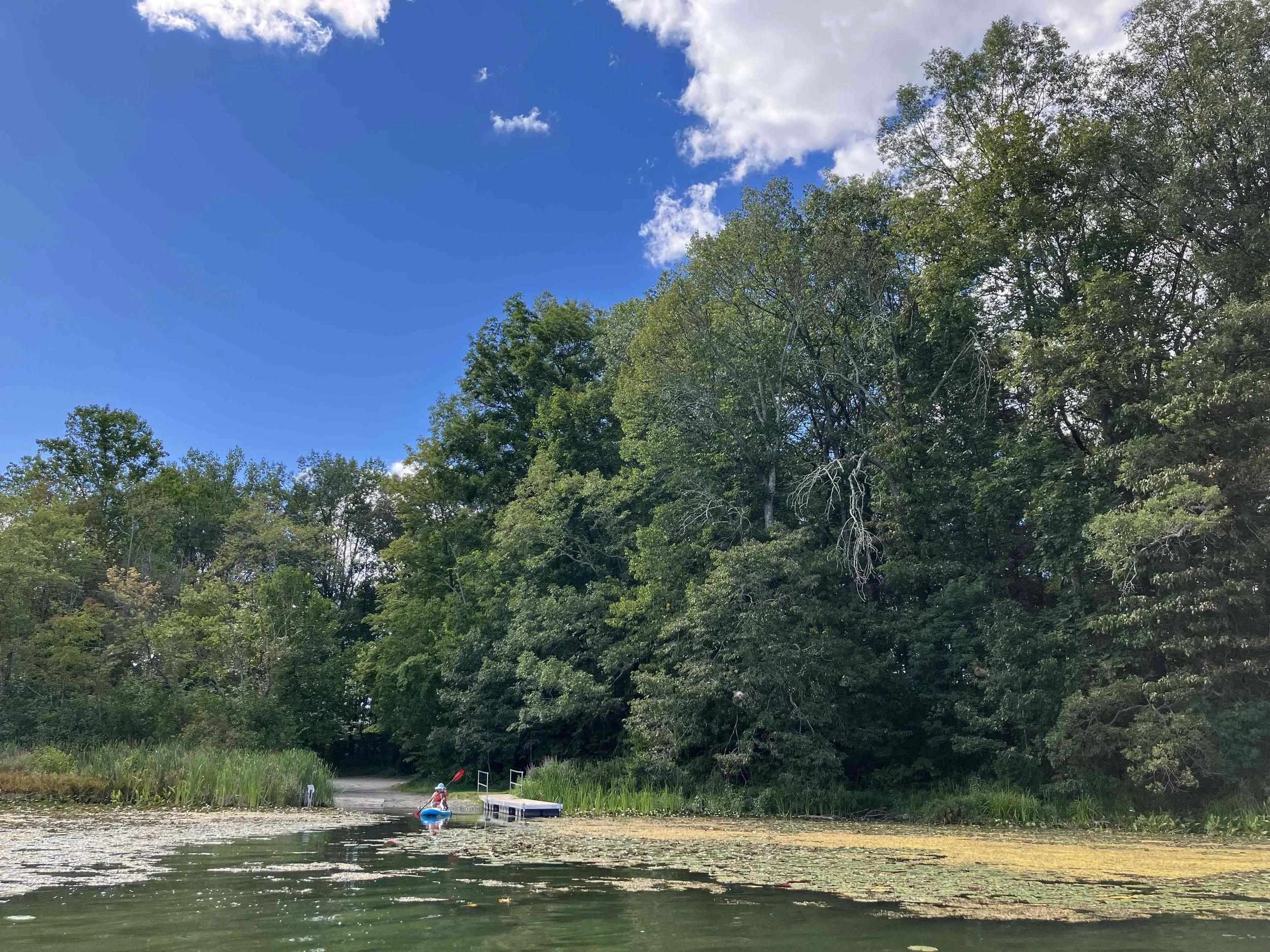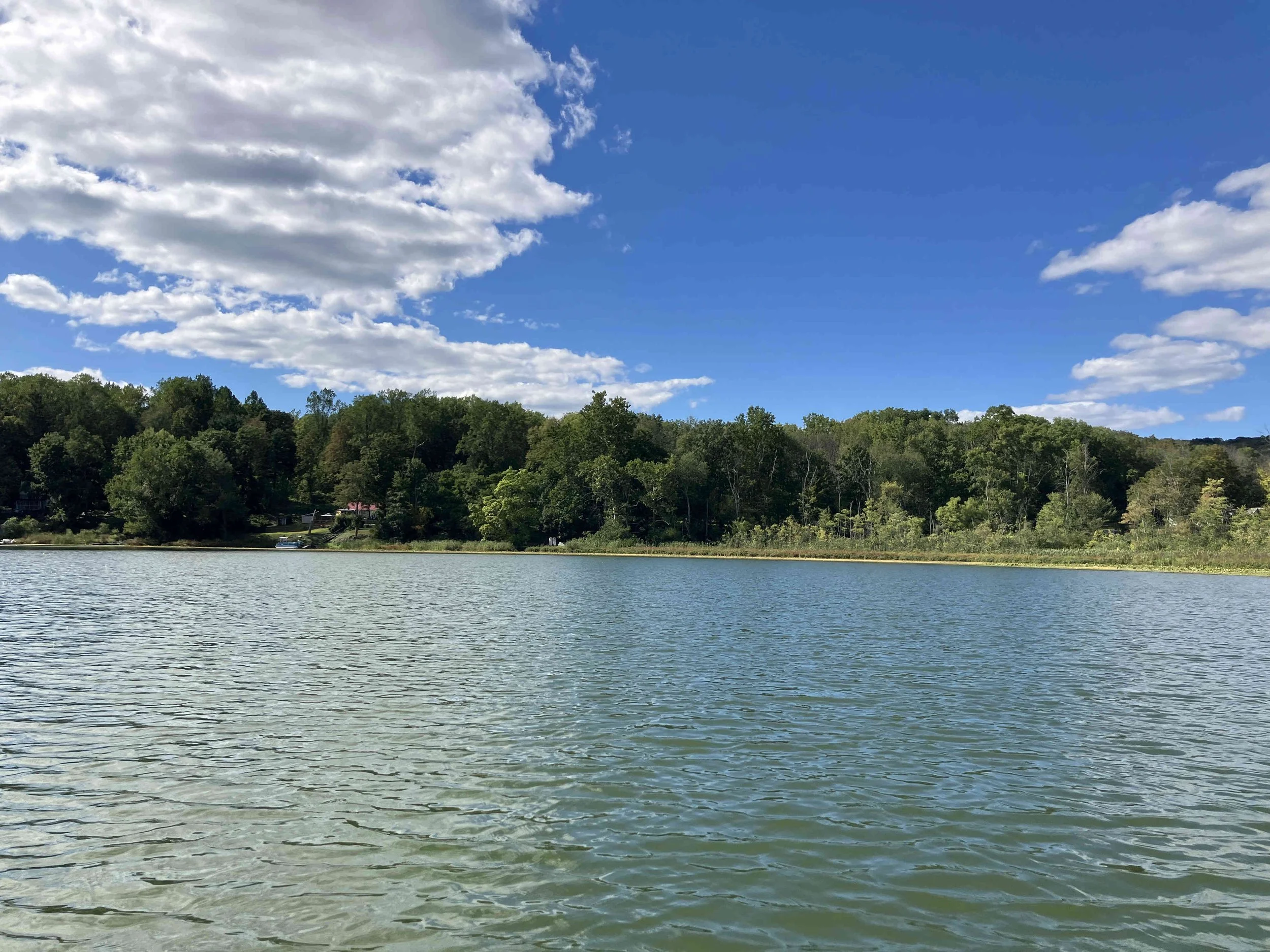 Little Swartswood Lake (83 acres) is in Hampton Township, Sussex County. The southern and eastern shorelines are in Swartswood State Park. The lake is shallow, the water is murky, and much of the shoreline is covered in weeds.
