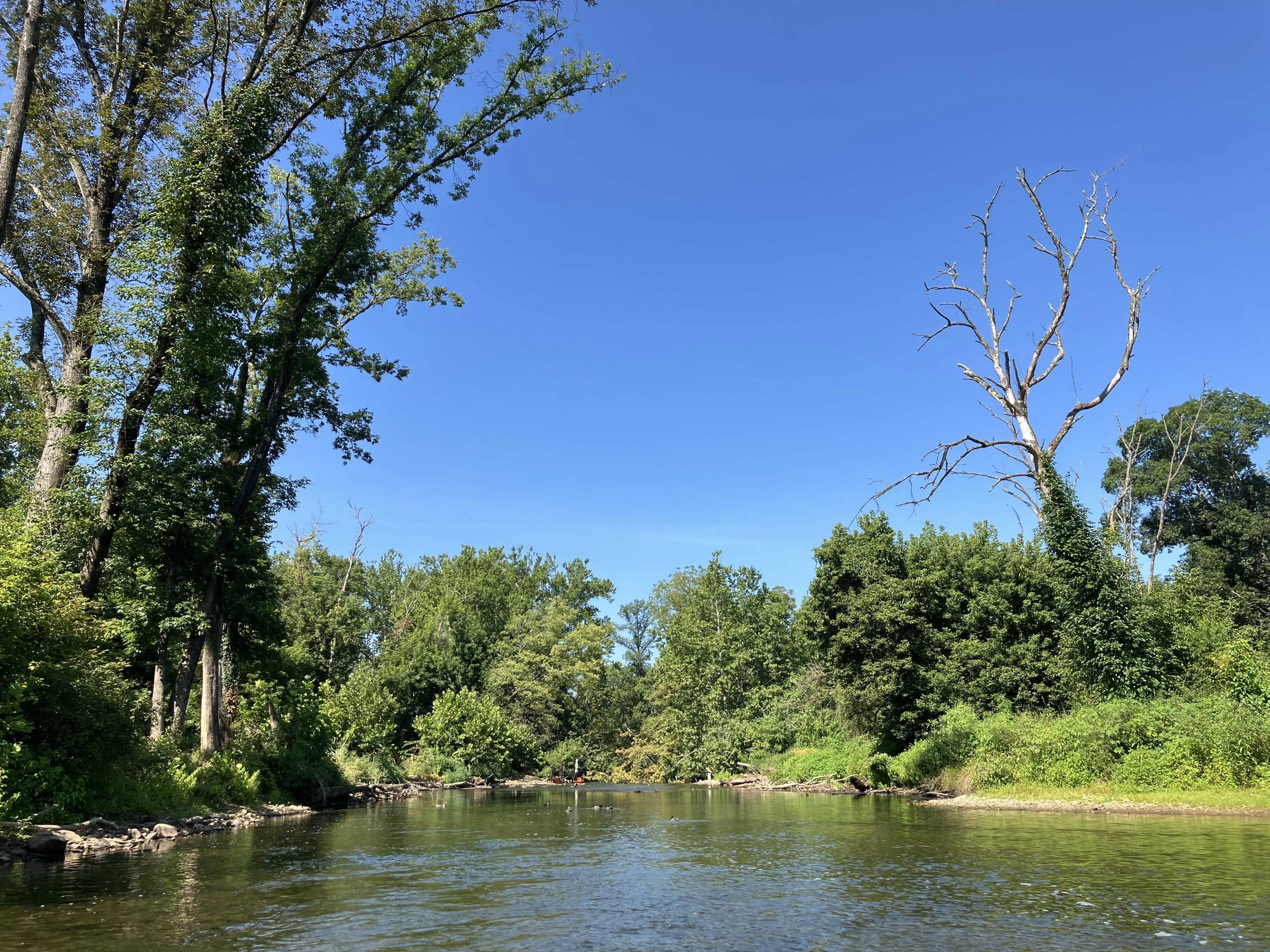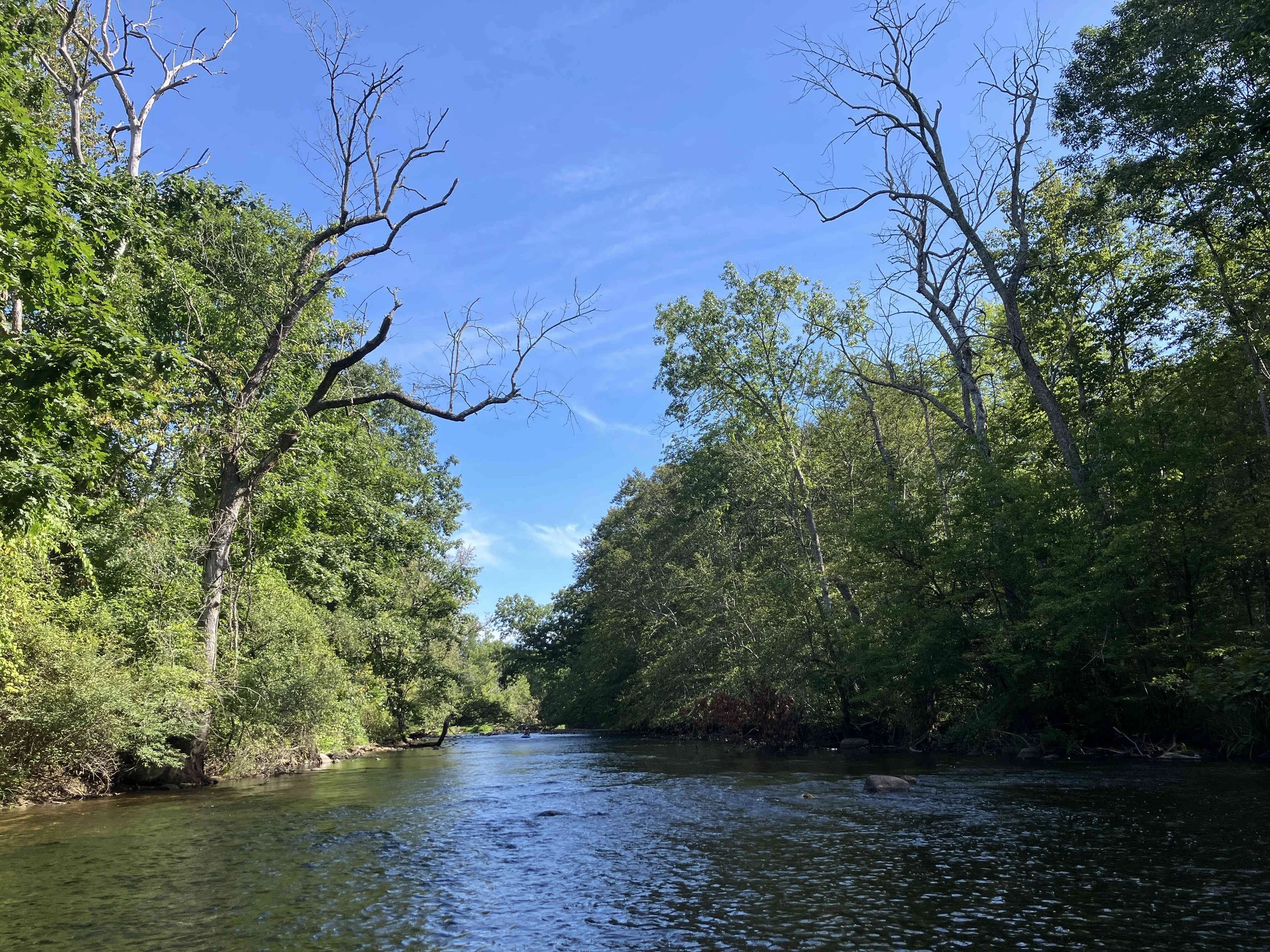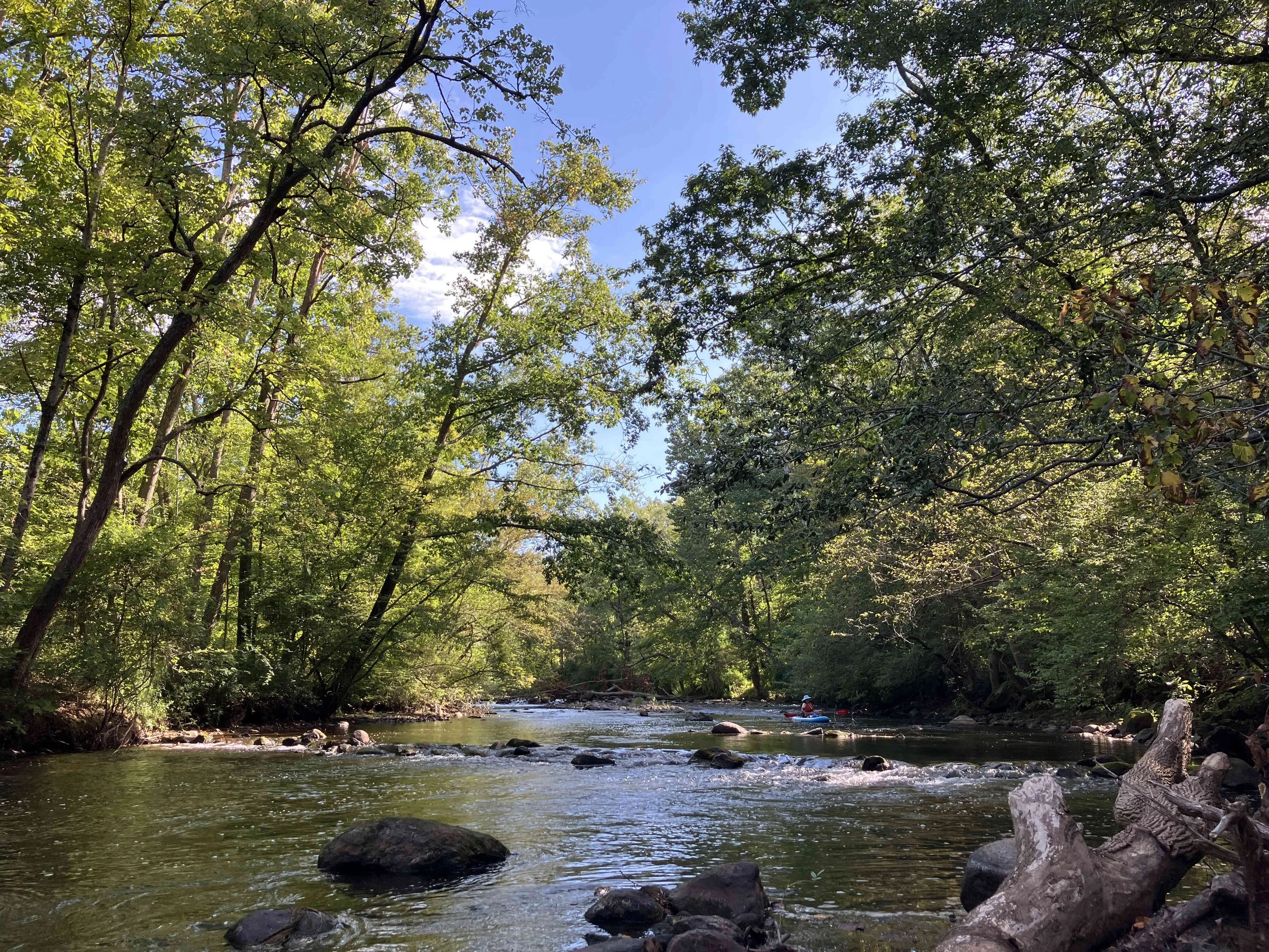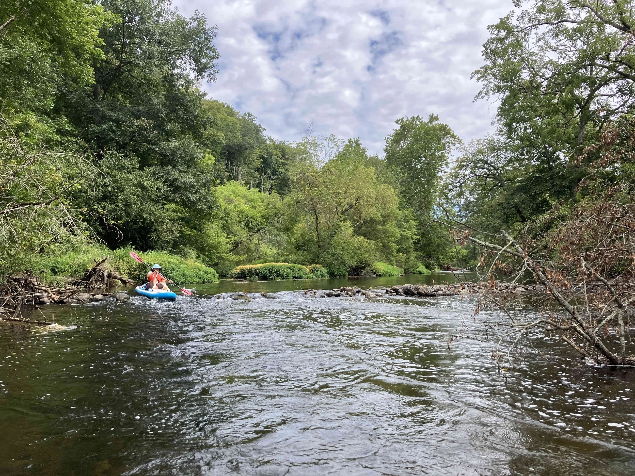 This six-mile section of the river is pretty. But much of it is beside a busy highway, so there is a lot of road noise. There were many rapids, plus numerous downed trees obstructing the river. The river was shallow in many places, so we did a lot of walking.