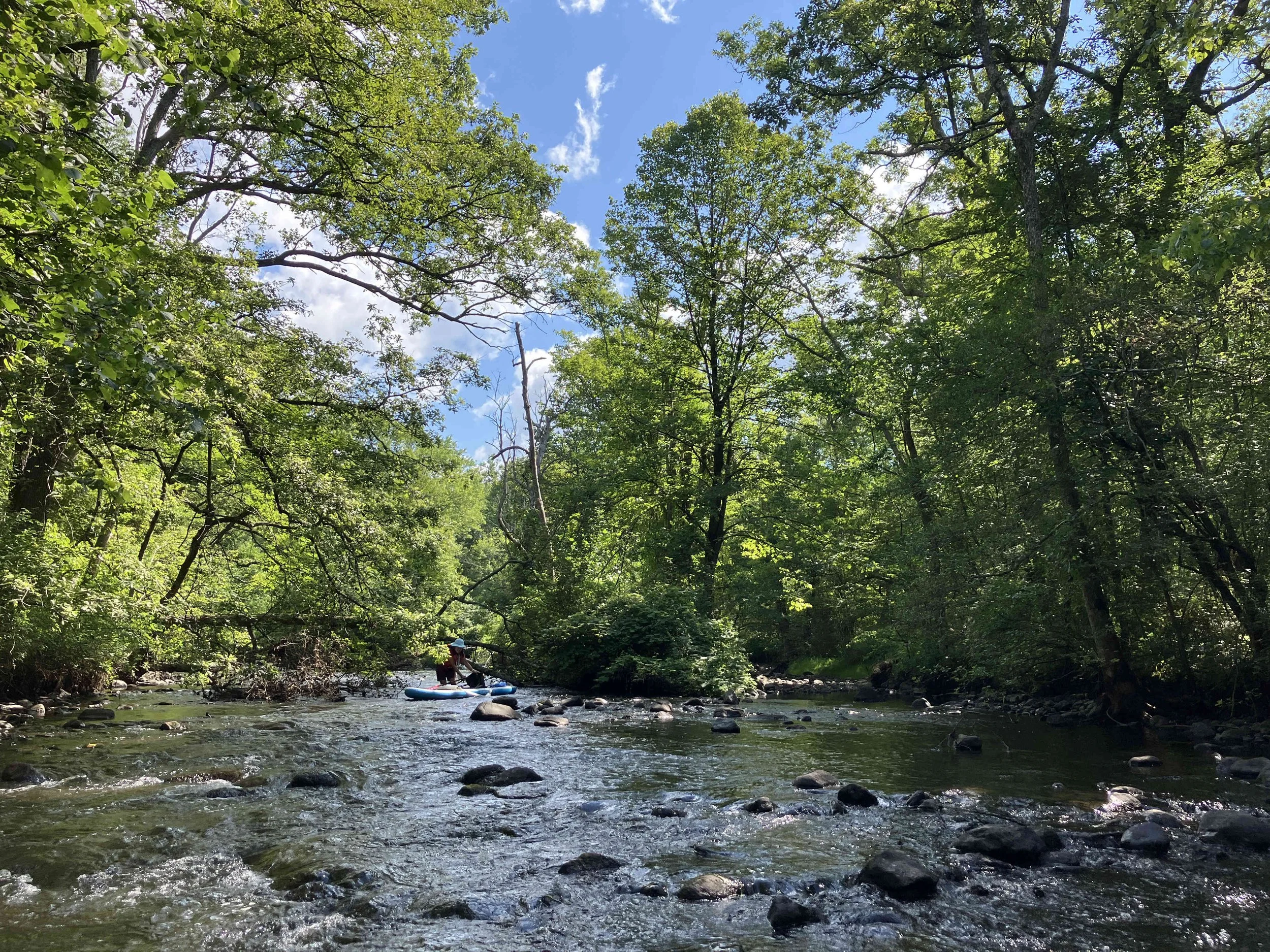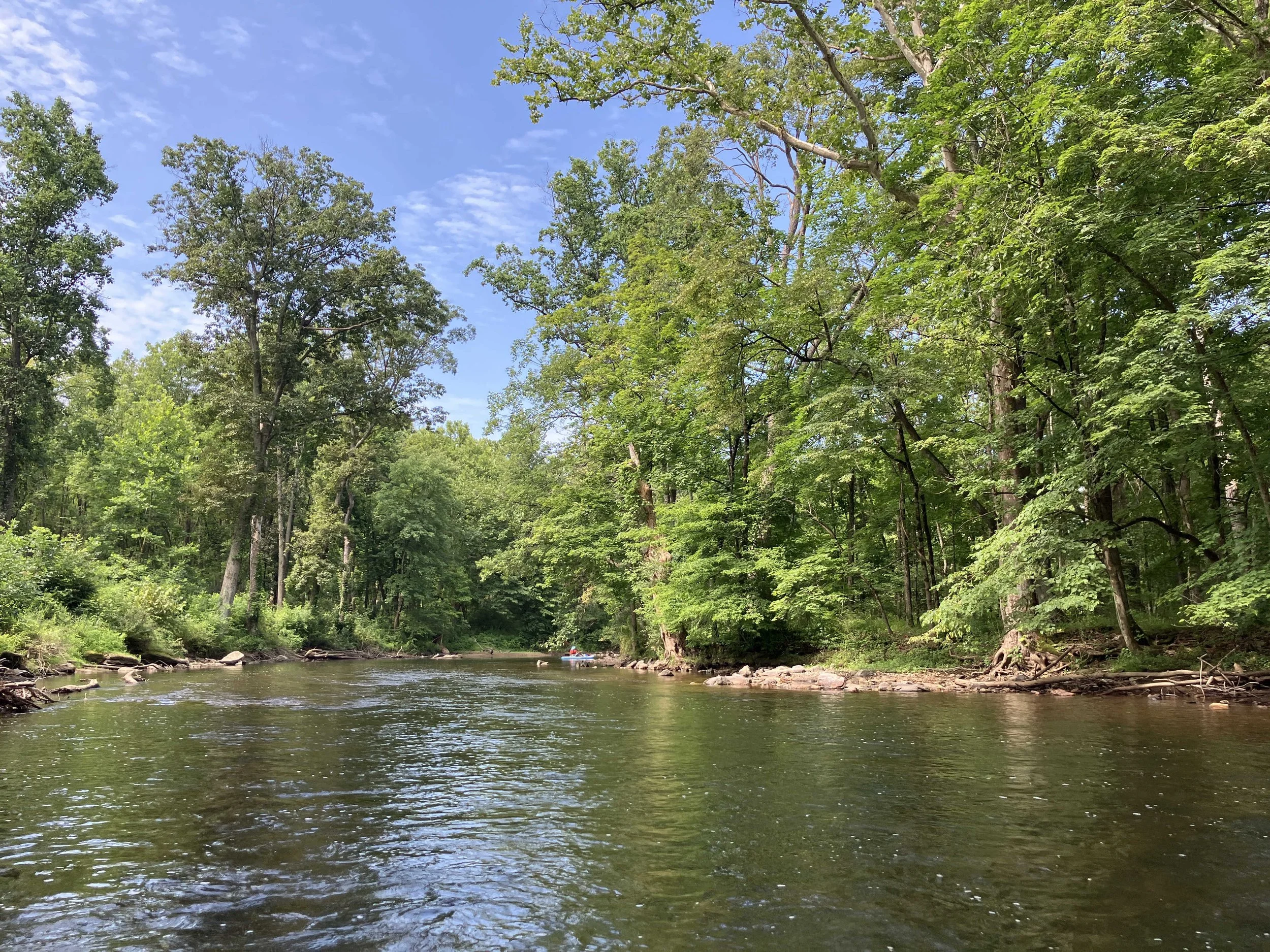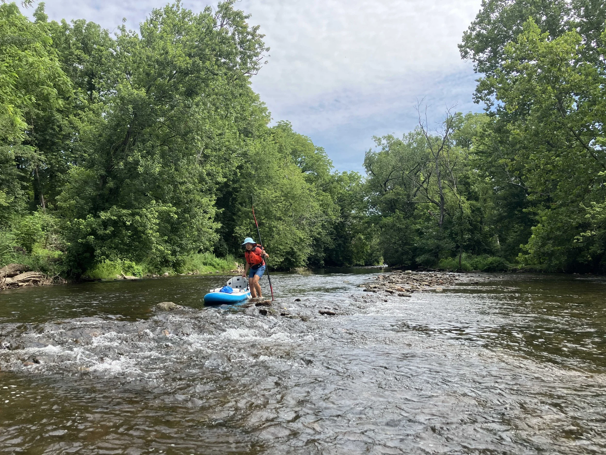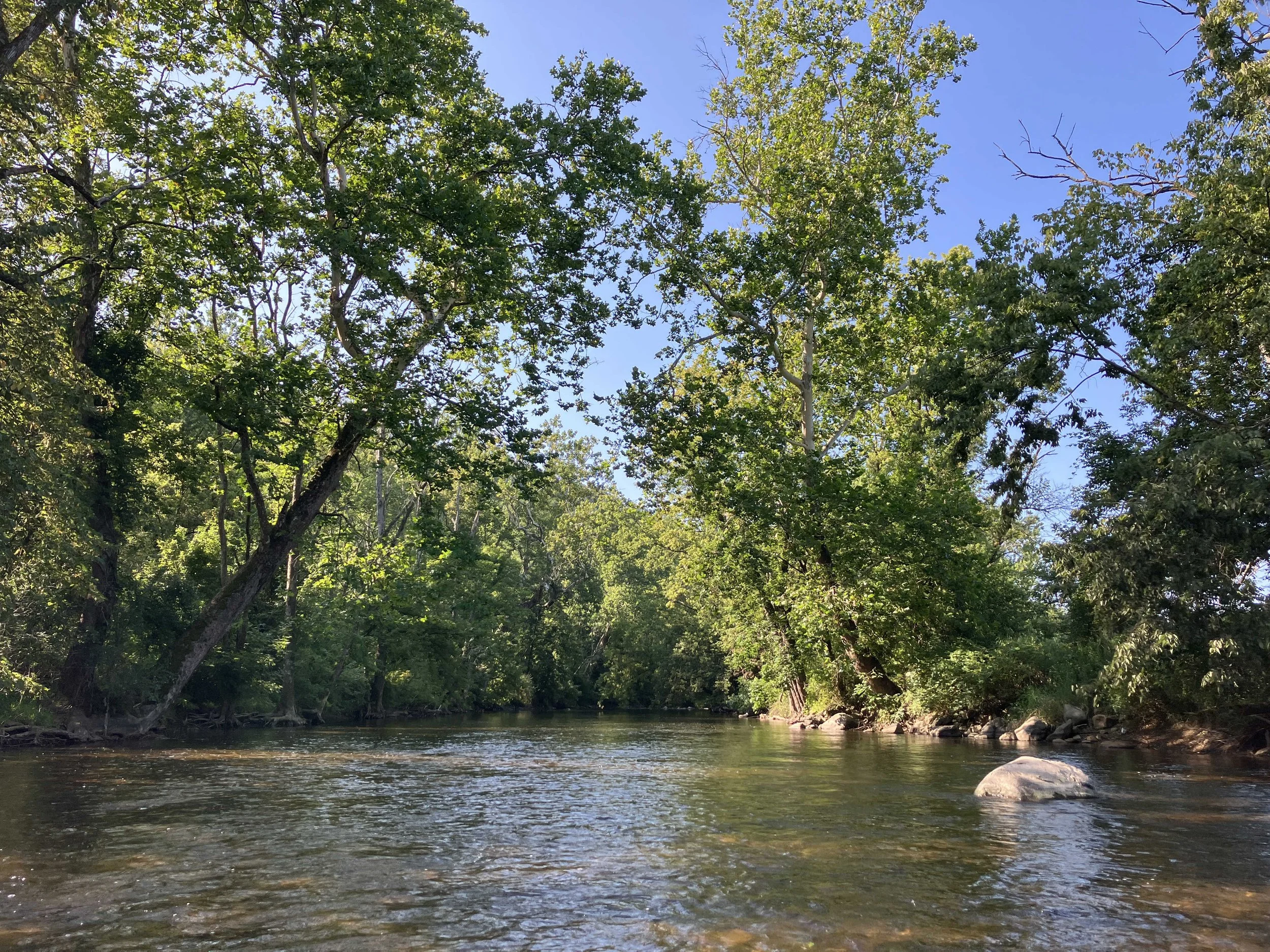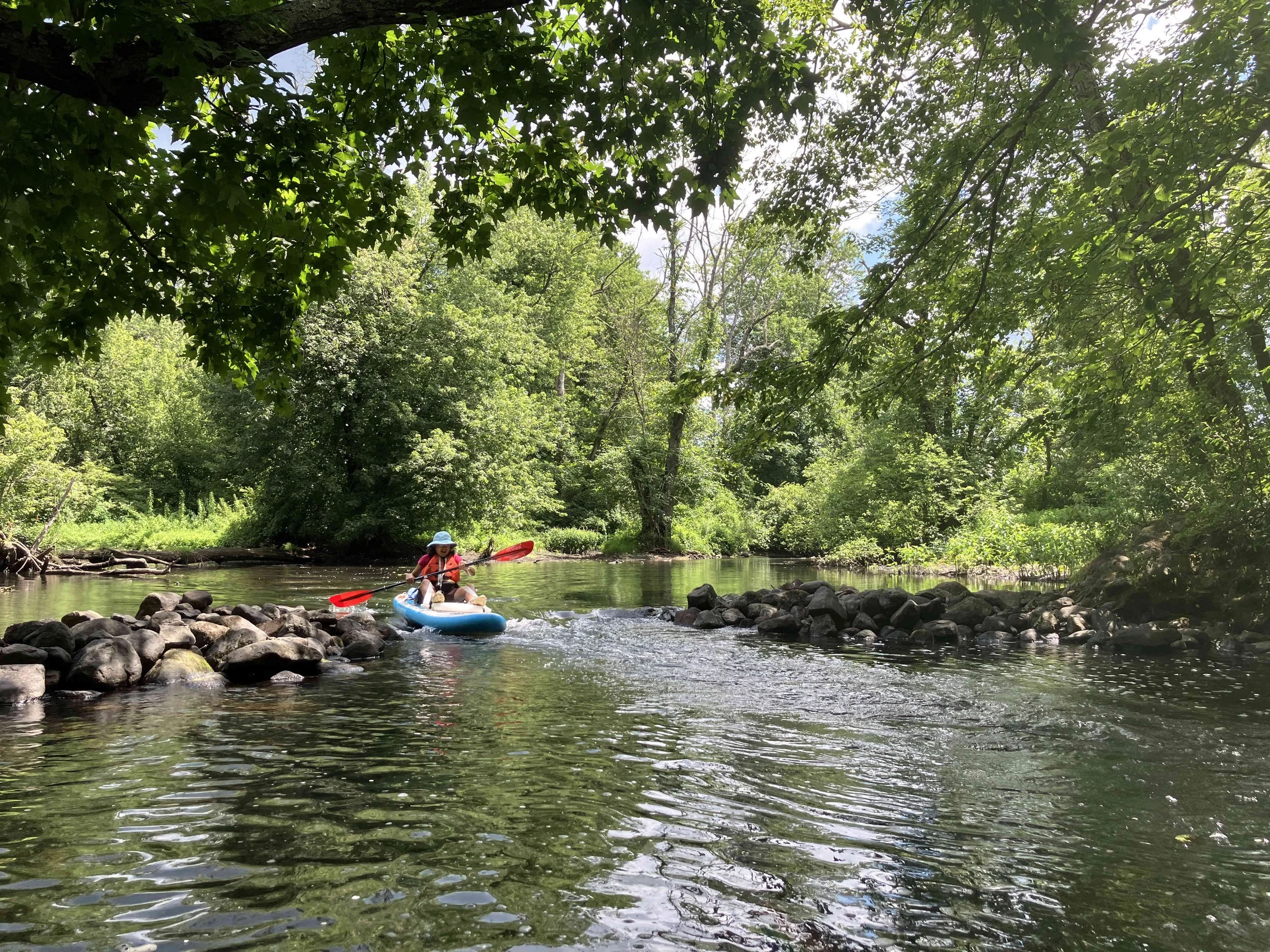 This six-mile section of the river is pretty. But much of it is beside a busy highway, so there is a lot of road noise. There were many rapids, plus numerous downed trees obstructing the river. The river was shallow in many places, so we did a lot of walking.