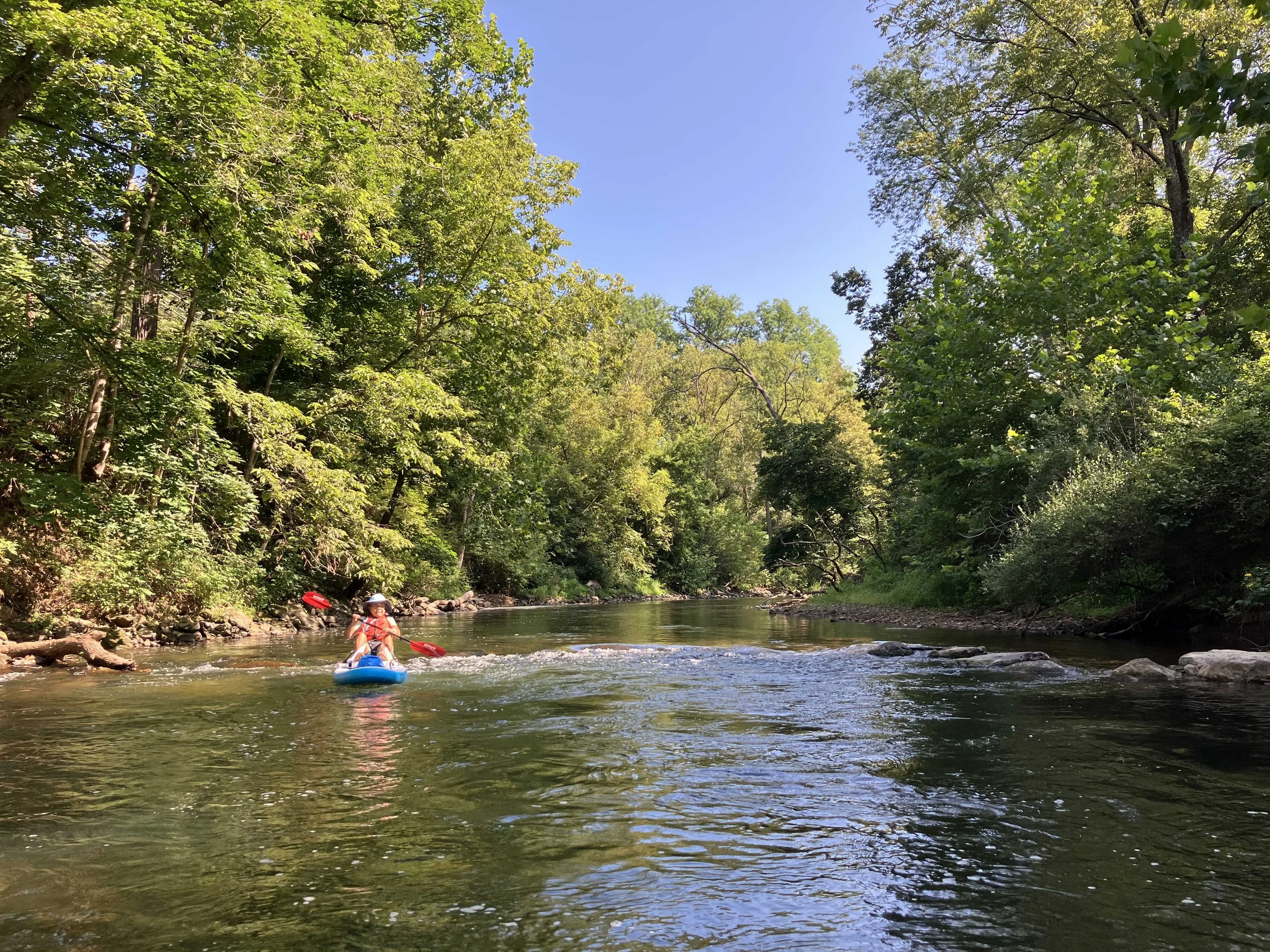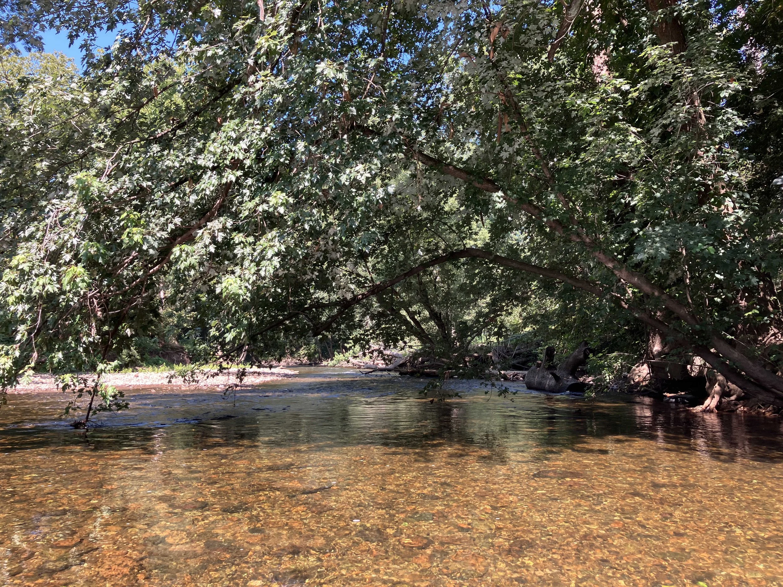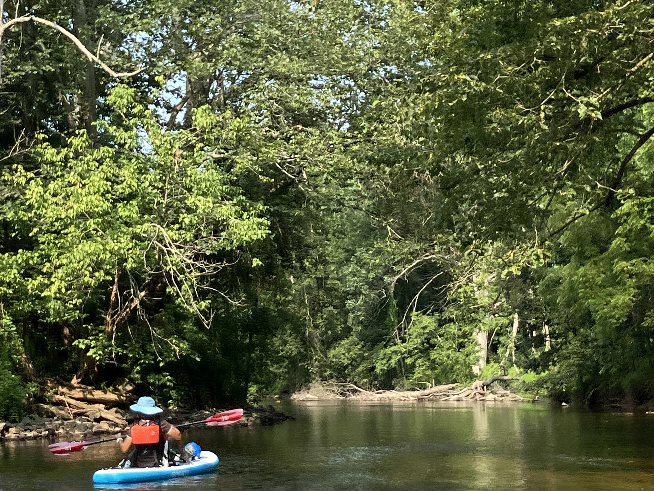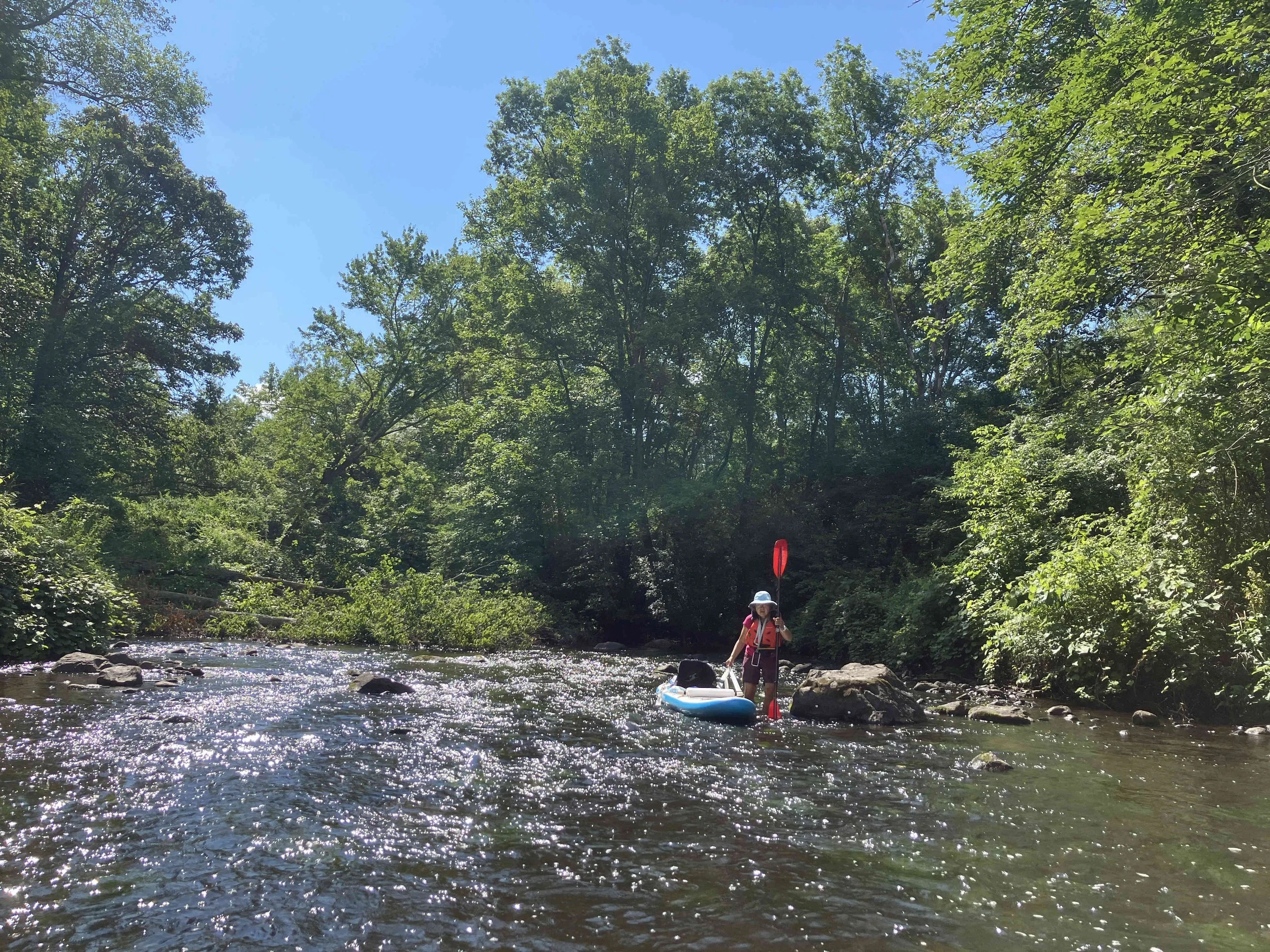 This six-mile section of the river is pretty. But much of it is beside a busy highway, so there is a lot of road noise. There were many rapids, plus numerous downed trees obstructing the river. The river was shallow in many places, so we did a lot of walking.