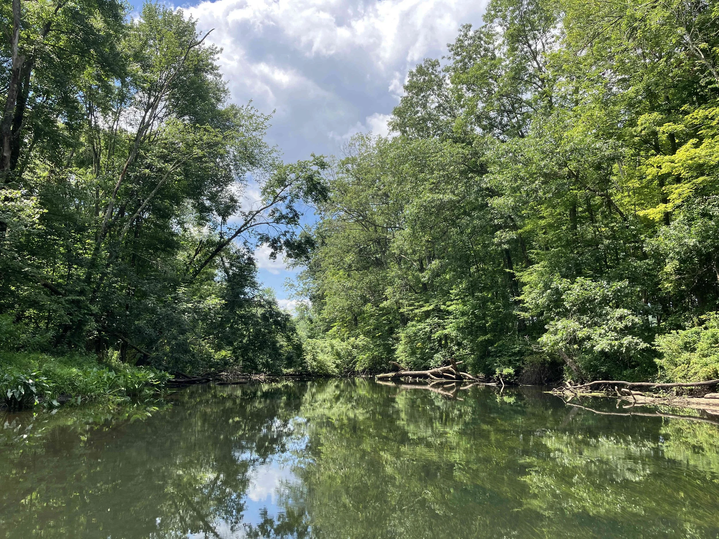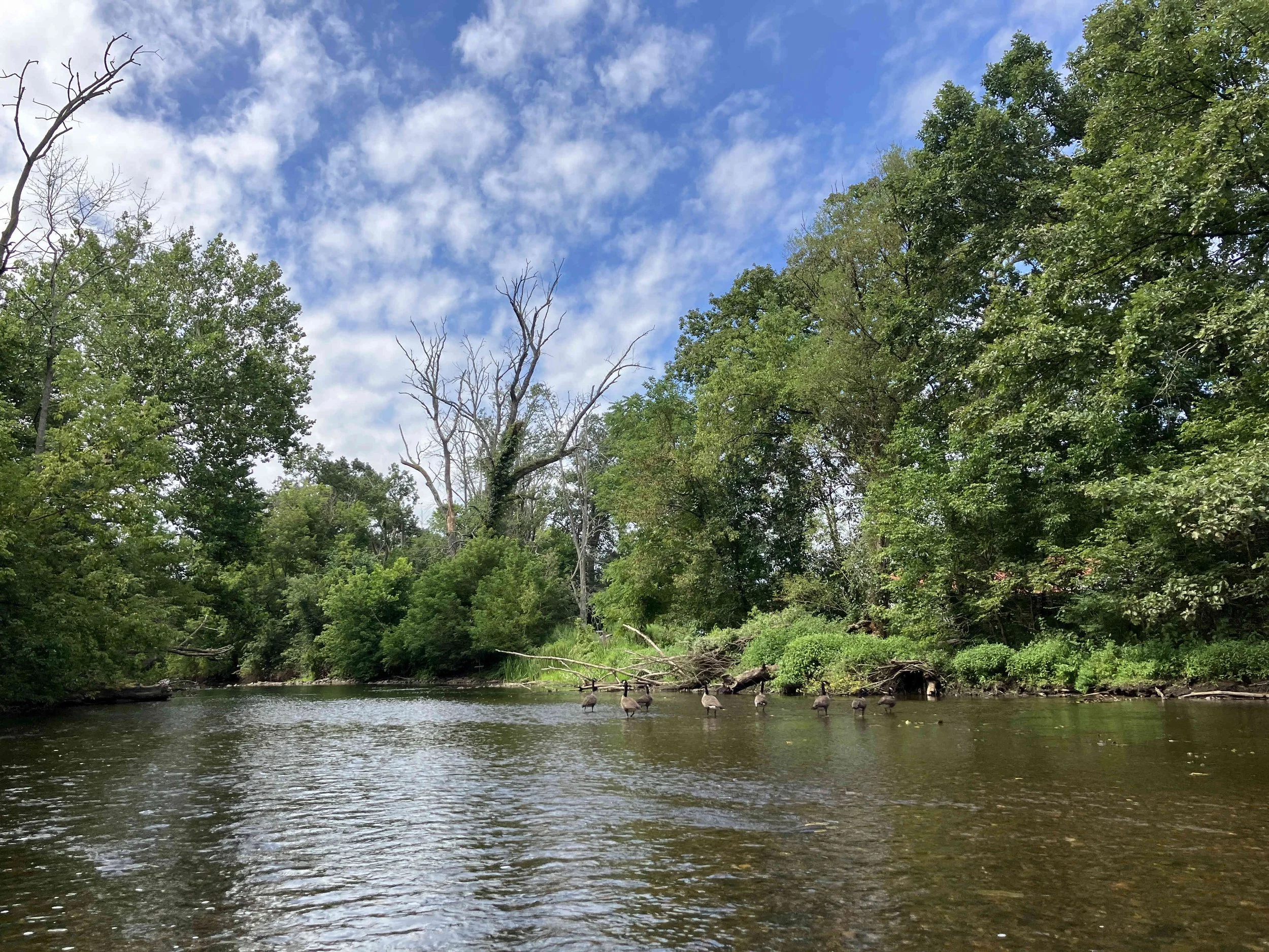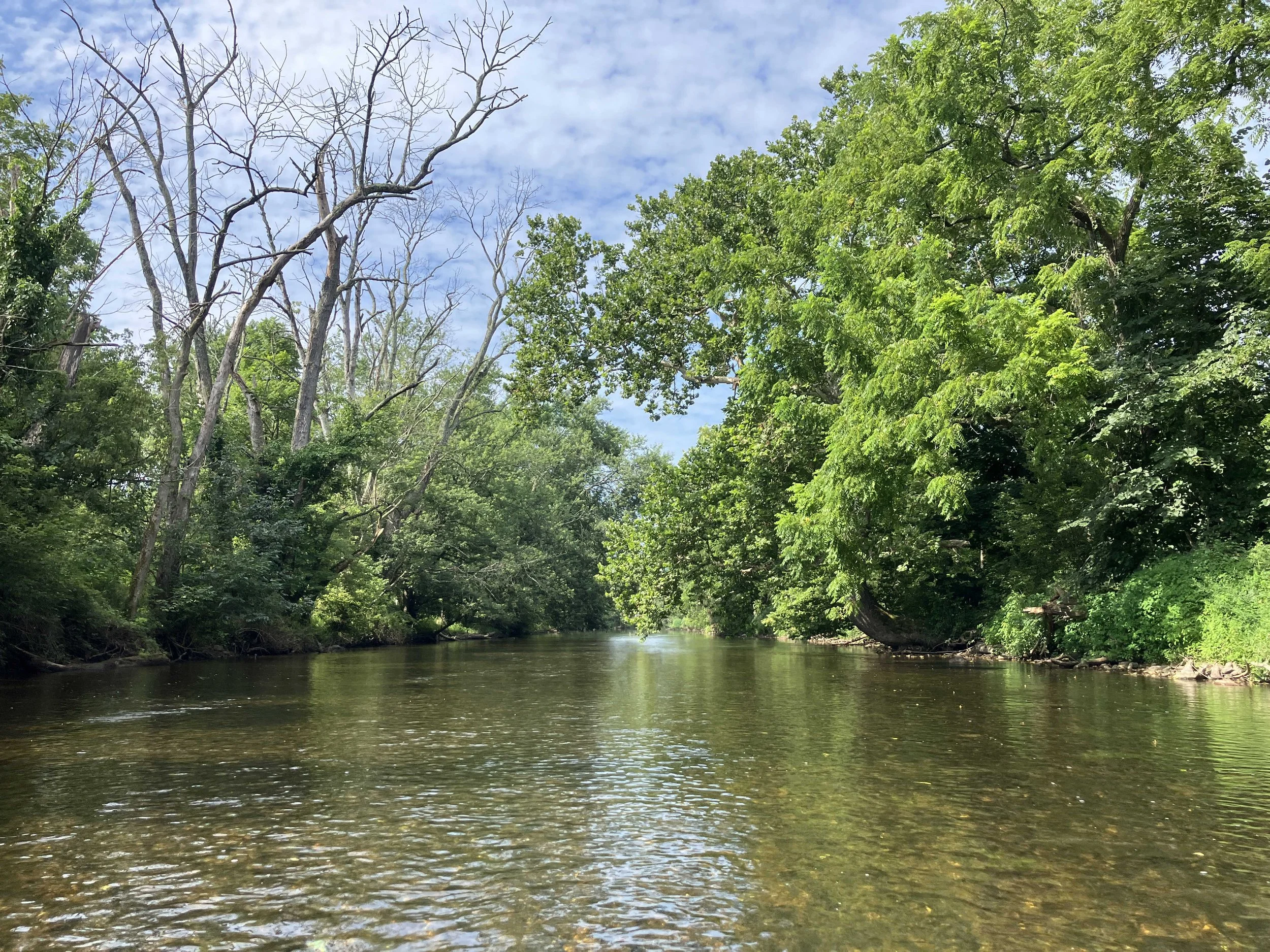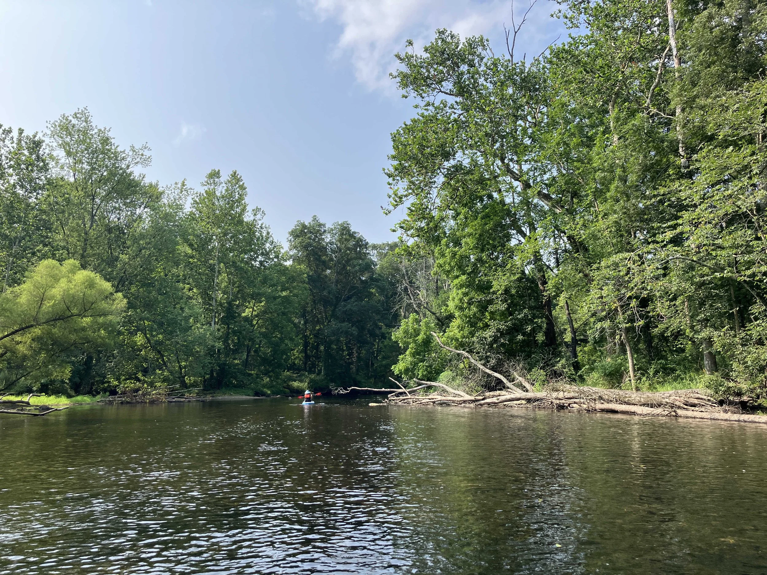 This nine-mile section of the river is pretty. There is a dam at Asbury (portage on the right), but no other obstructions. There were a few sections were the river was too shallow to navigate, but most of it was fine.
