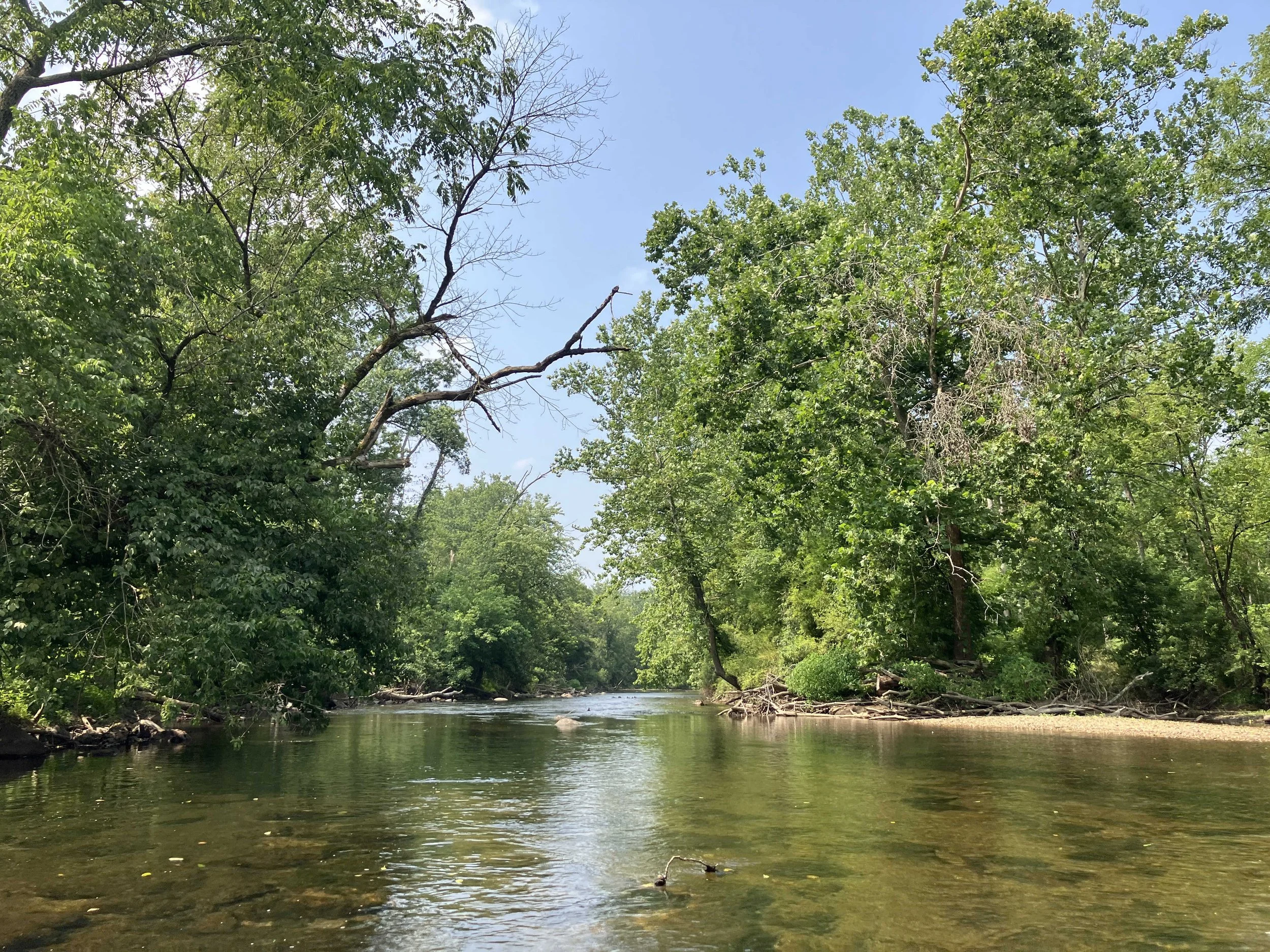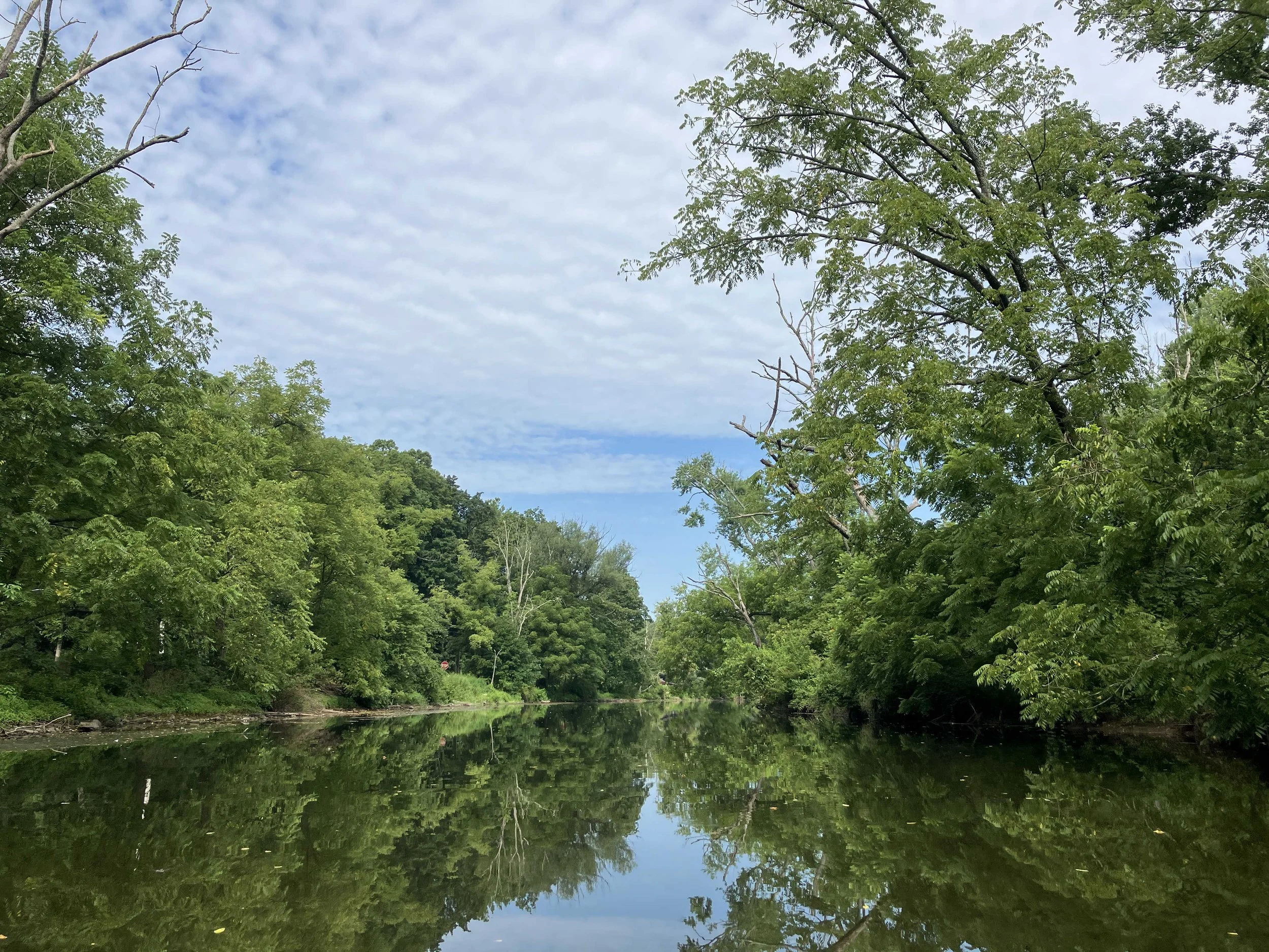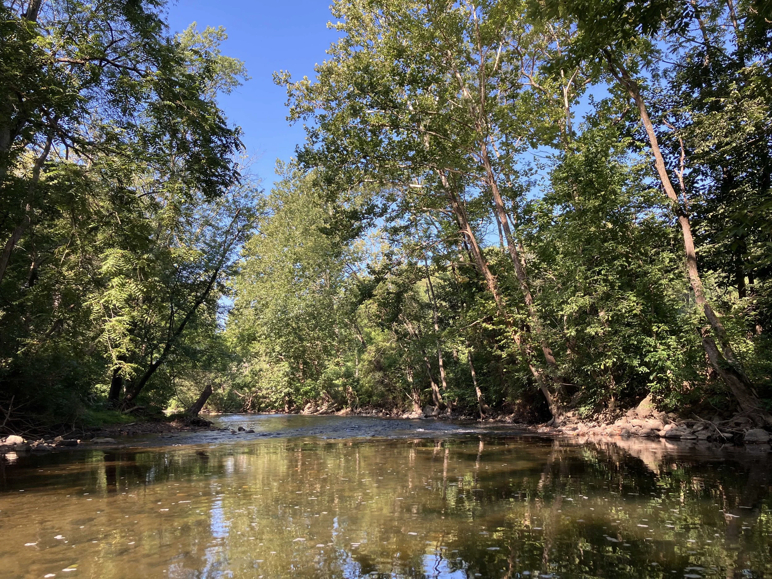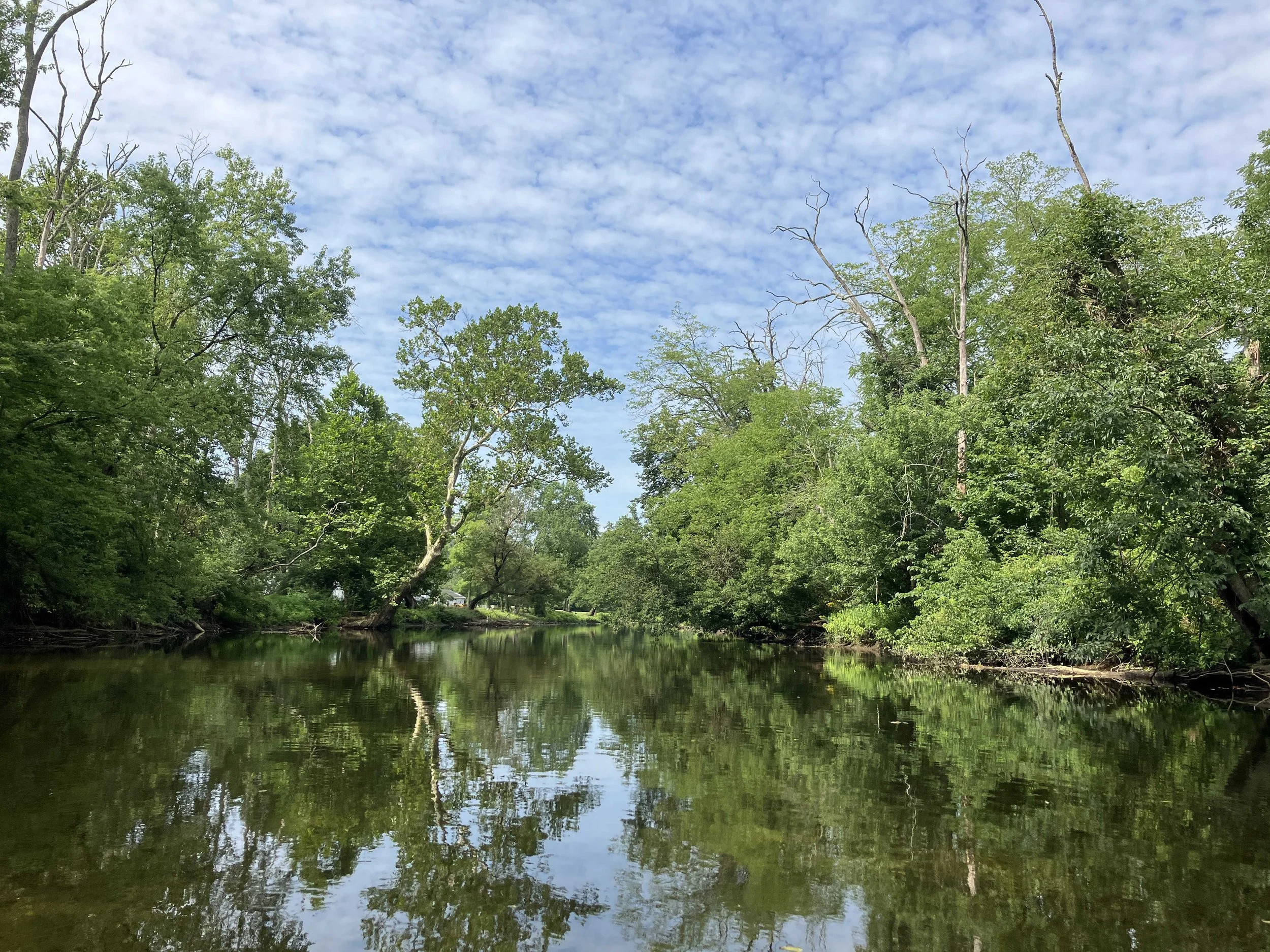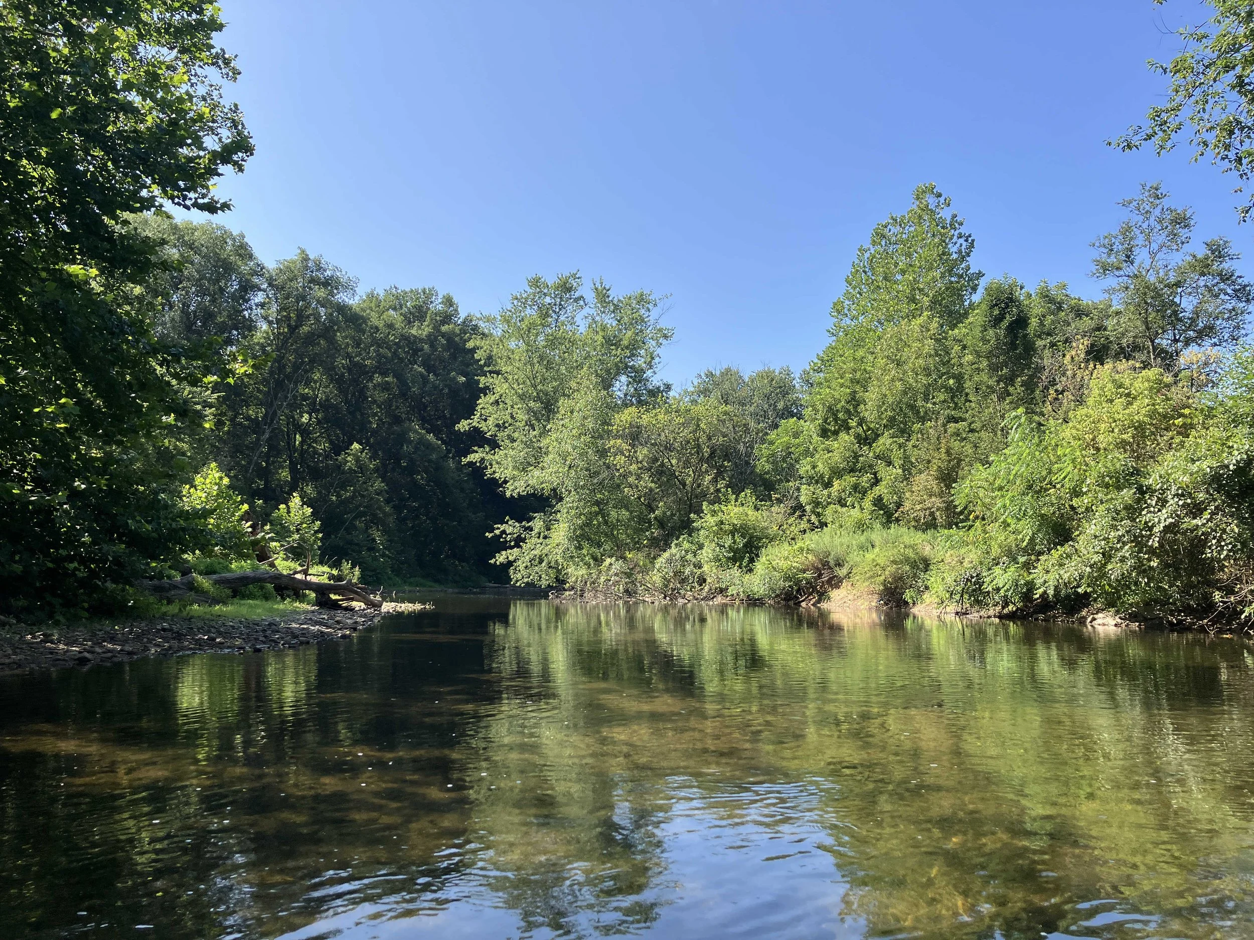This nine-mile section of the river is pretty. There is a dam at Asbury (portage on the right), but no other obstructions. There were a few sections were the river was too shallow to navigate, but most of it was fine.