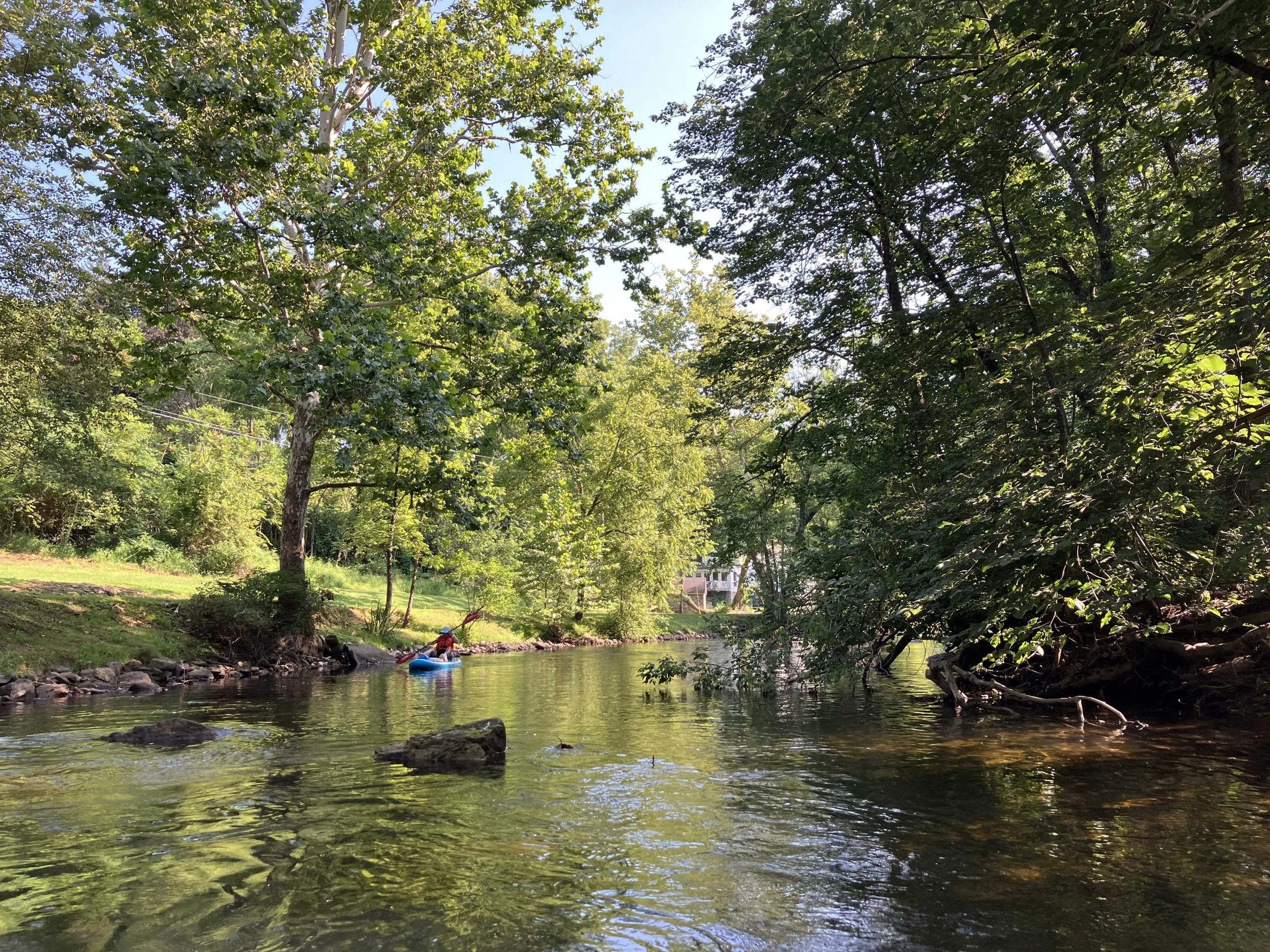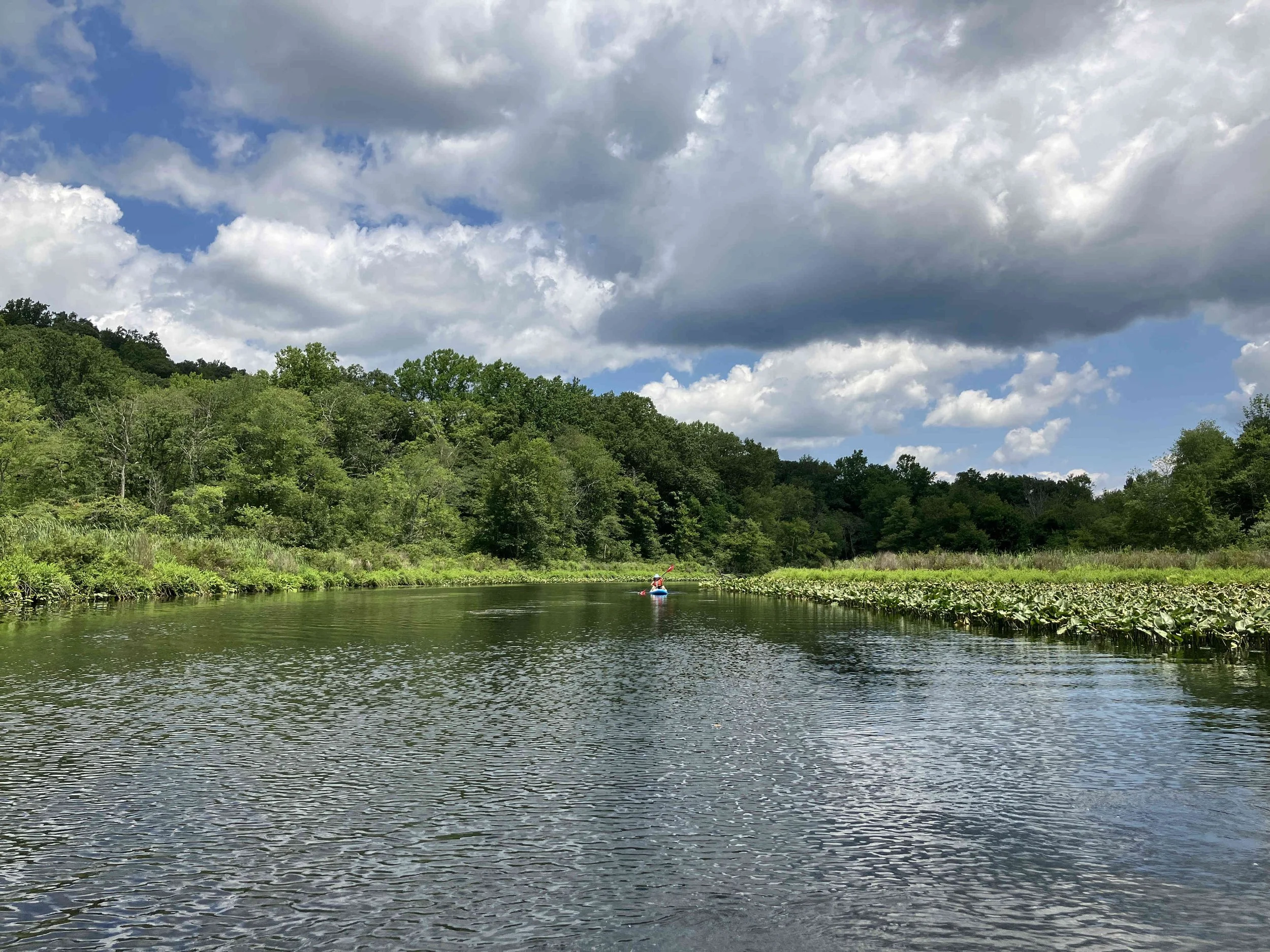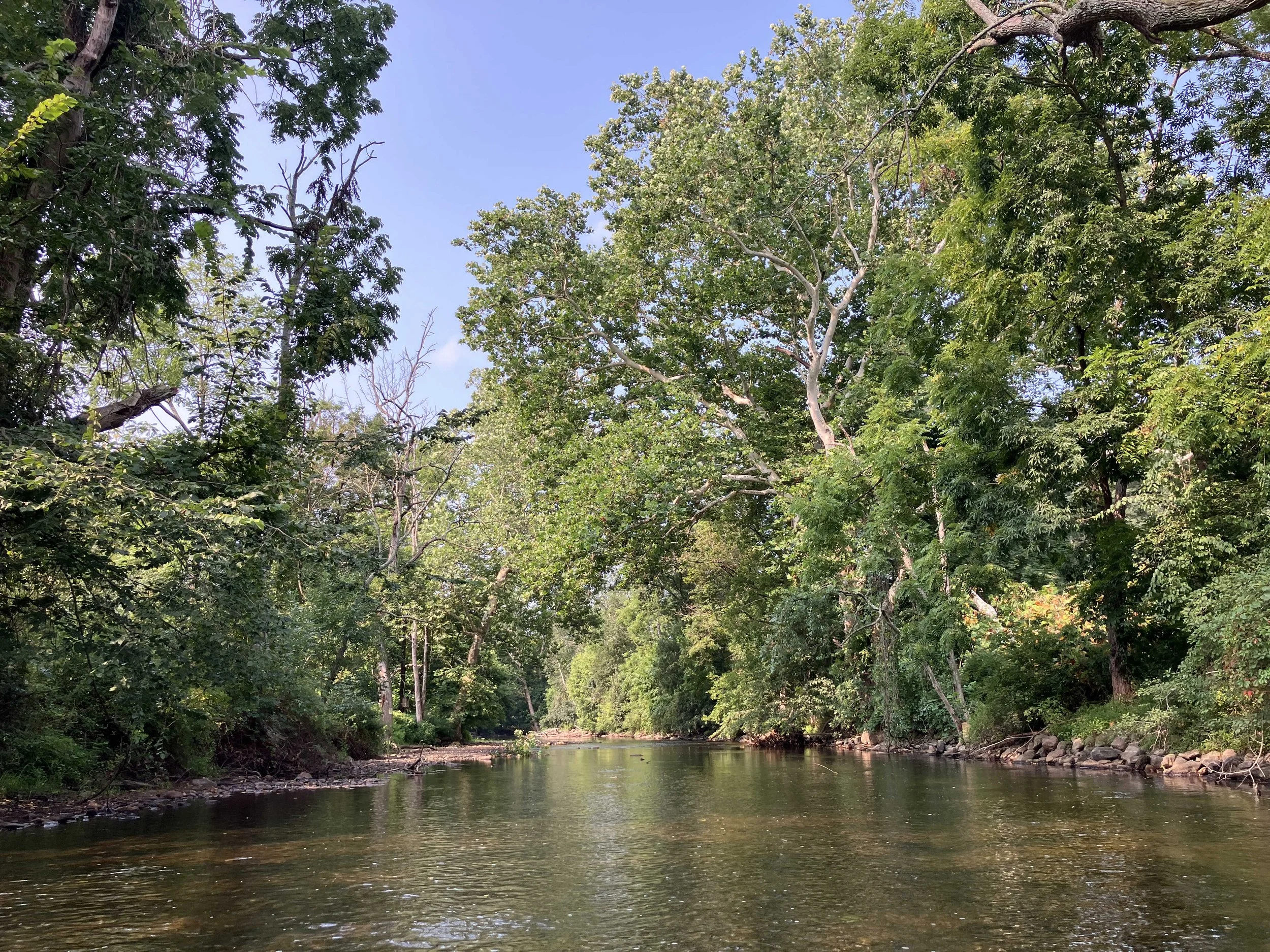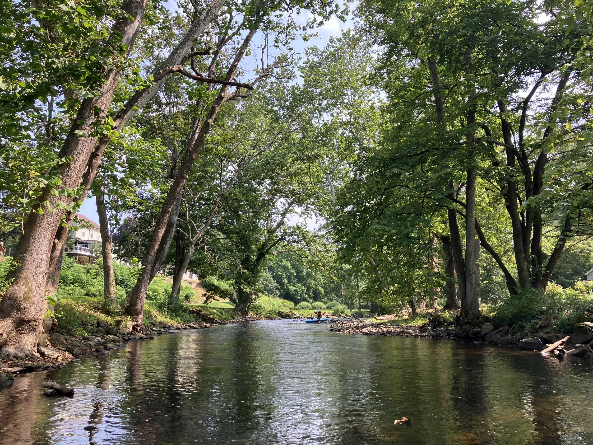 This seven-mile section of the Musconetcong River is quite wild. It is also hard to kayak. The upper part is often too shallow, plus there are numerous downed trees obstructing the river. The lower section is a large lake that is a bit boring. There is a dam in the Waterloo Village Historic Site. Portage on the right.