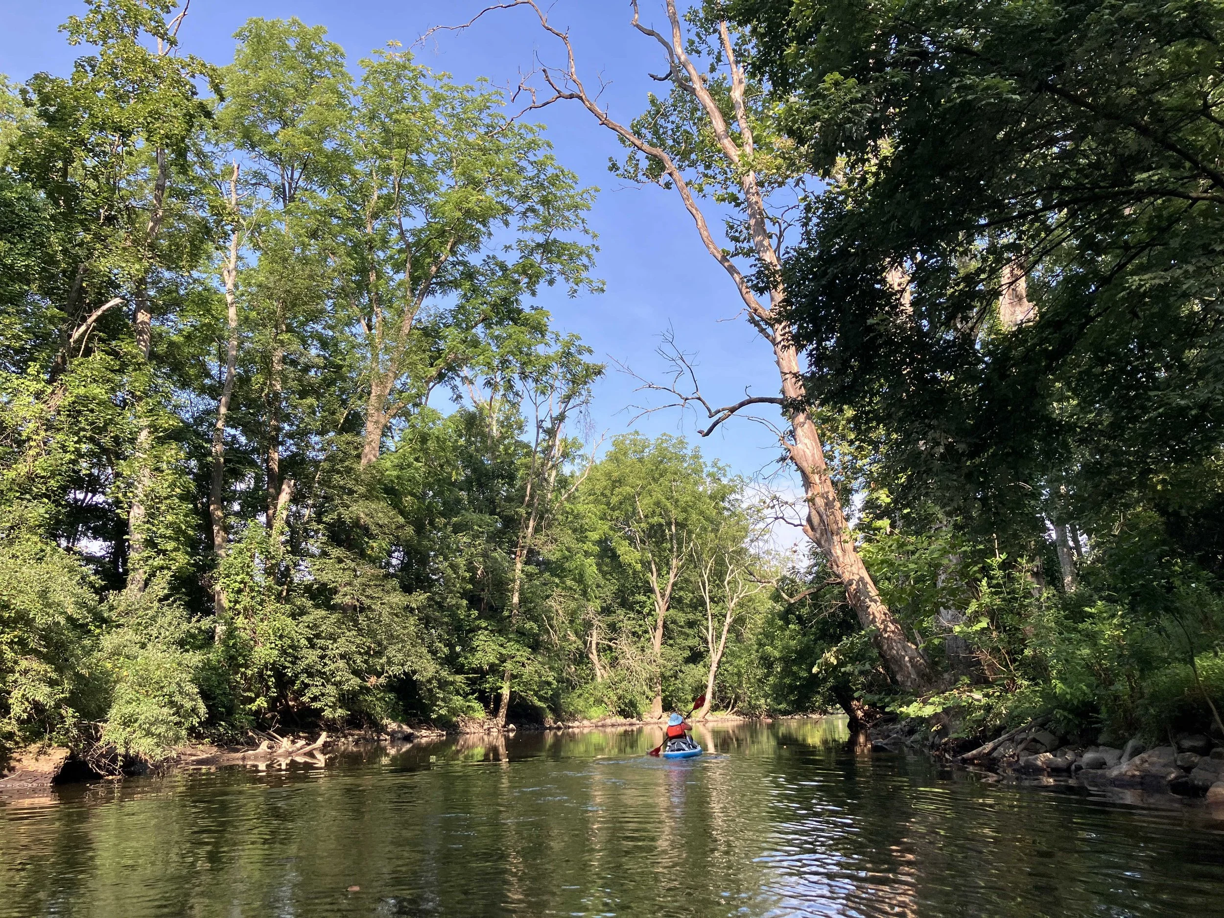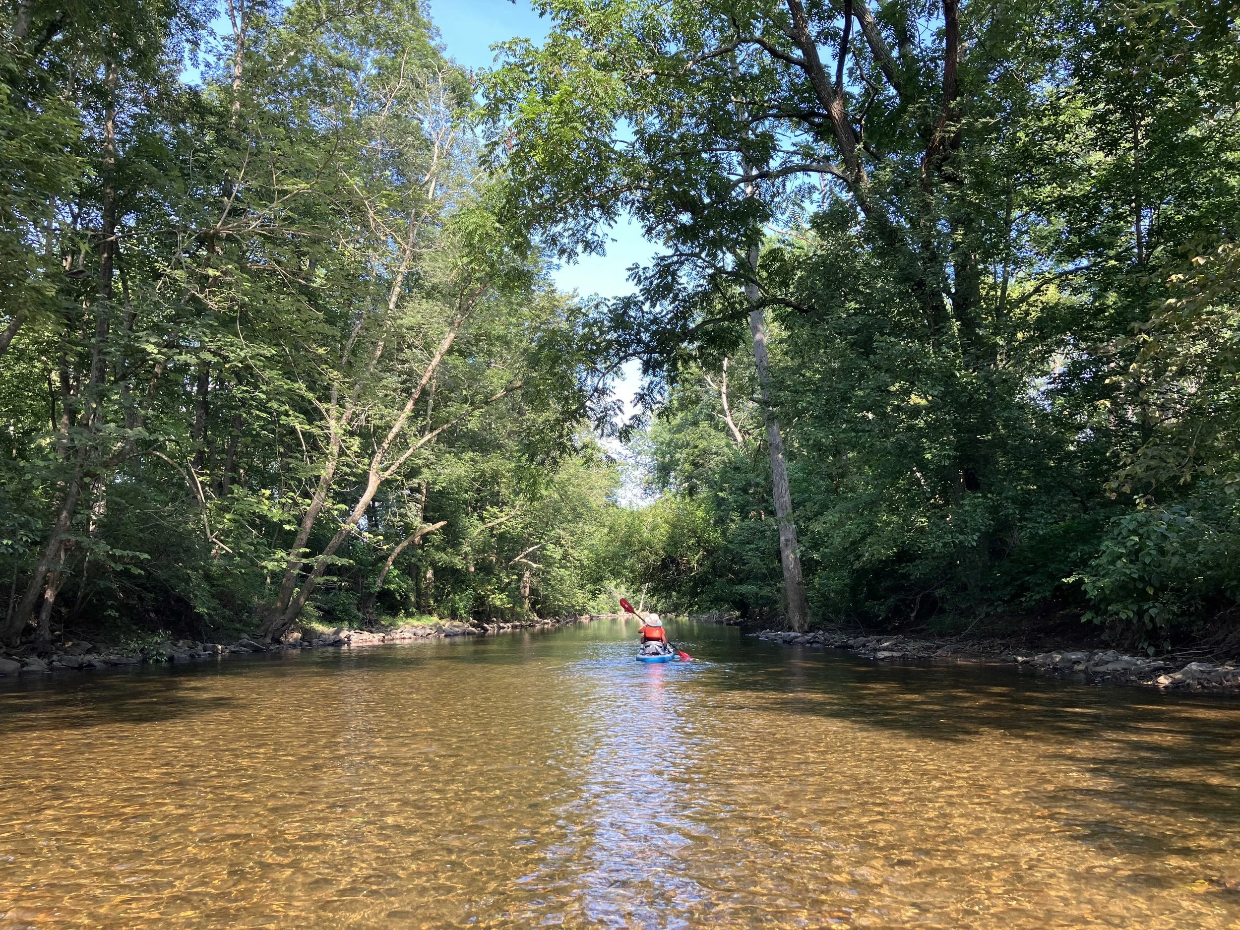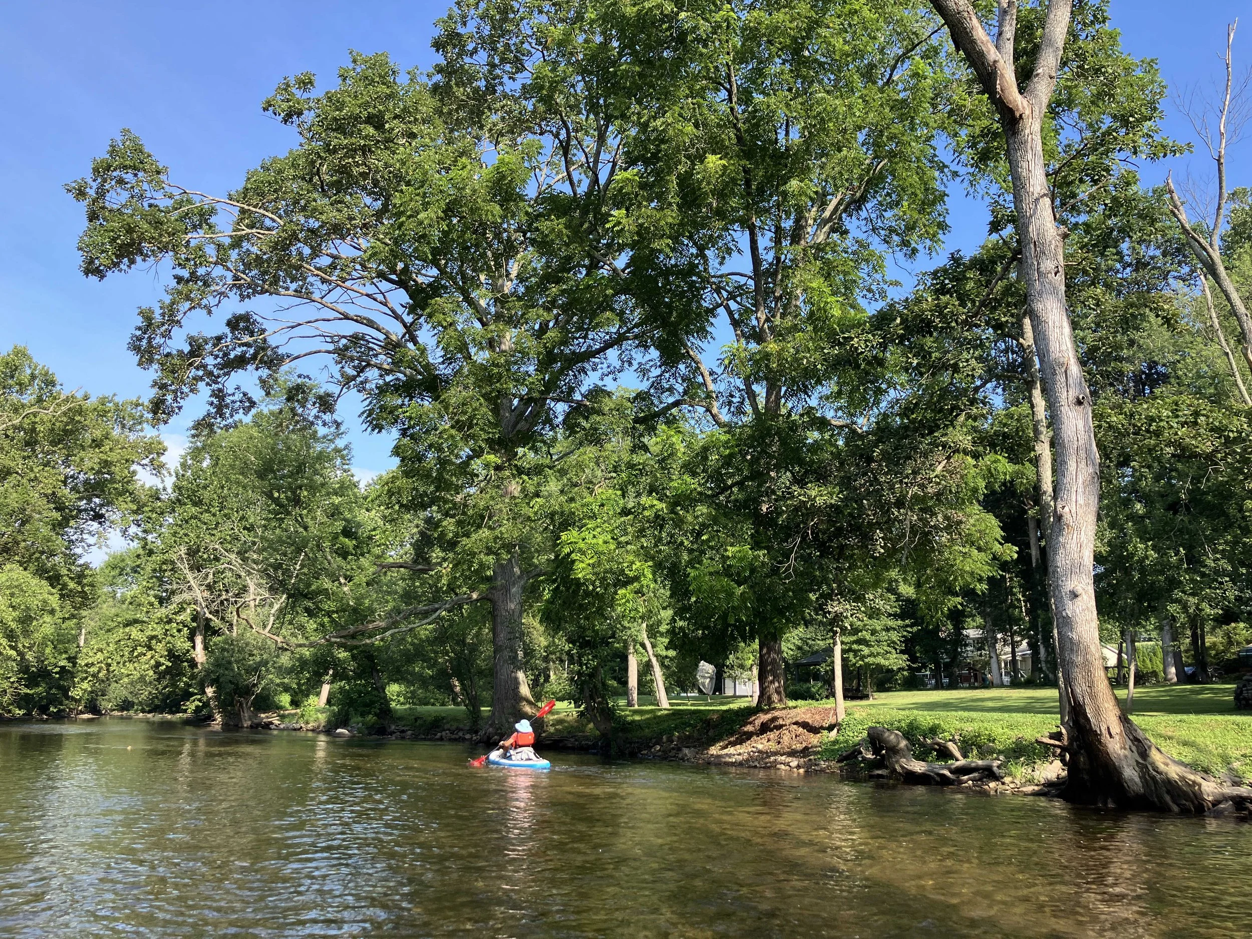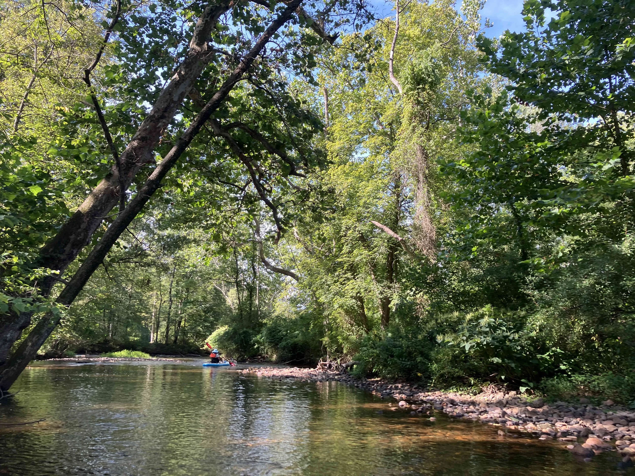 This seven-mile section of the Musconetcong River is quite wild. It is also hard to kayak. The upper part is often too shallow, plus there are numerous downed trees obstructing the river. The lower section is a large lake that is a bit boring. There is a dam in the Waterloo Village Historic Site. Portage on the right.