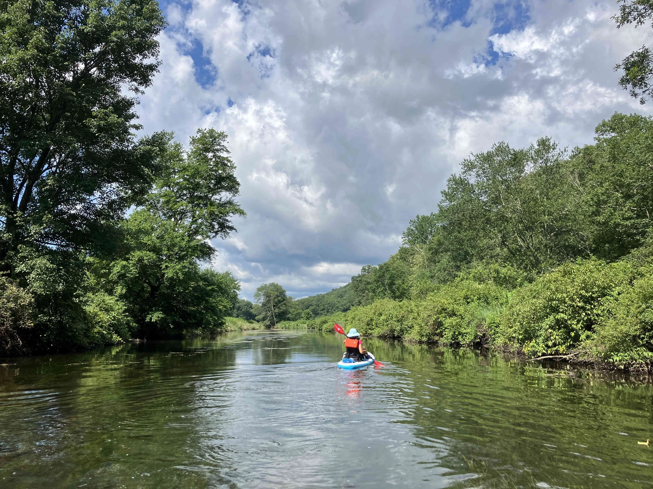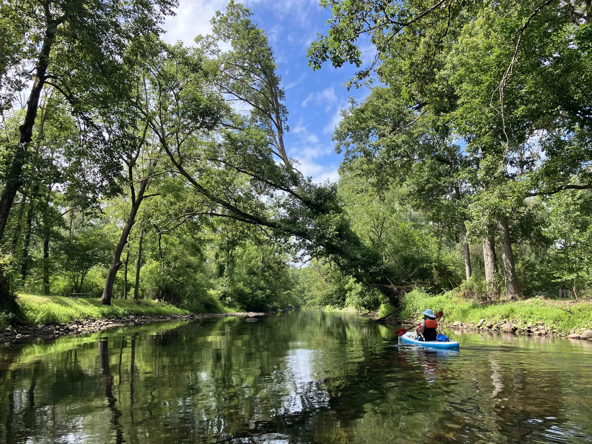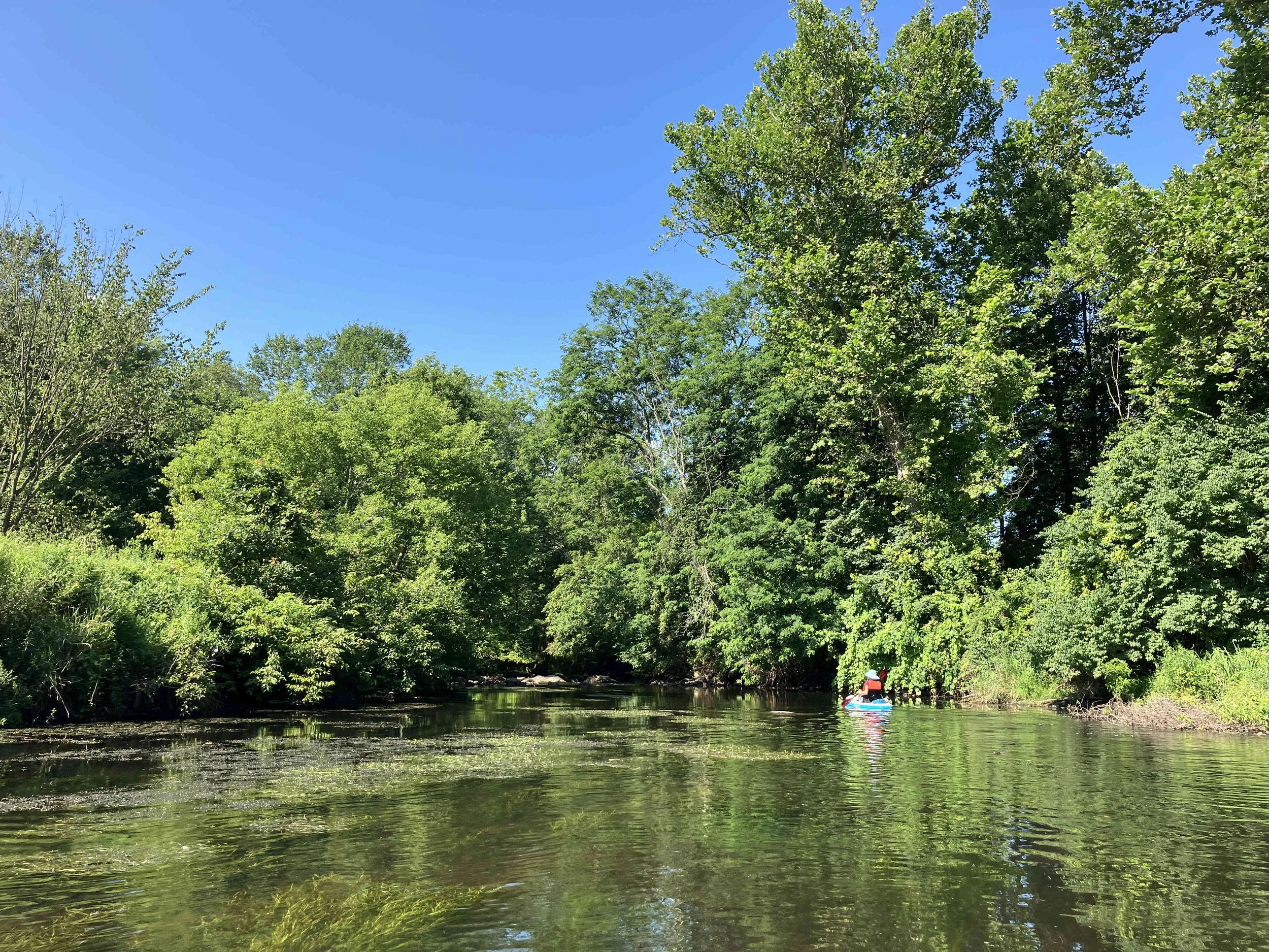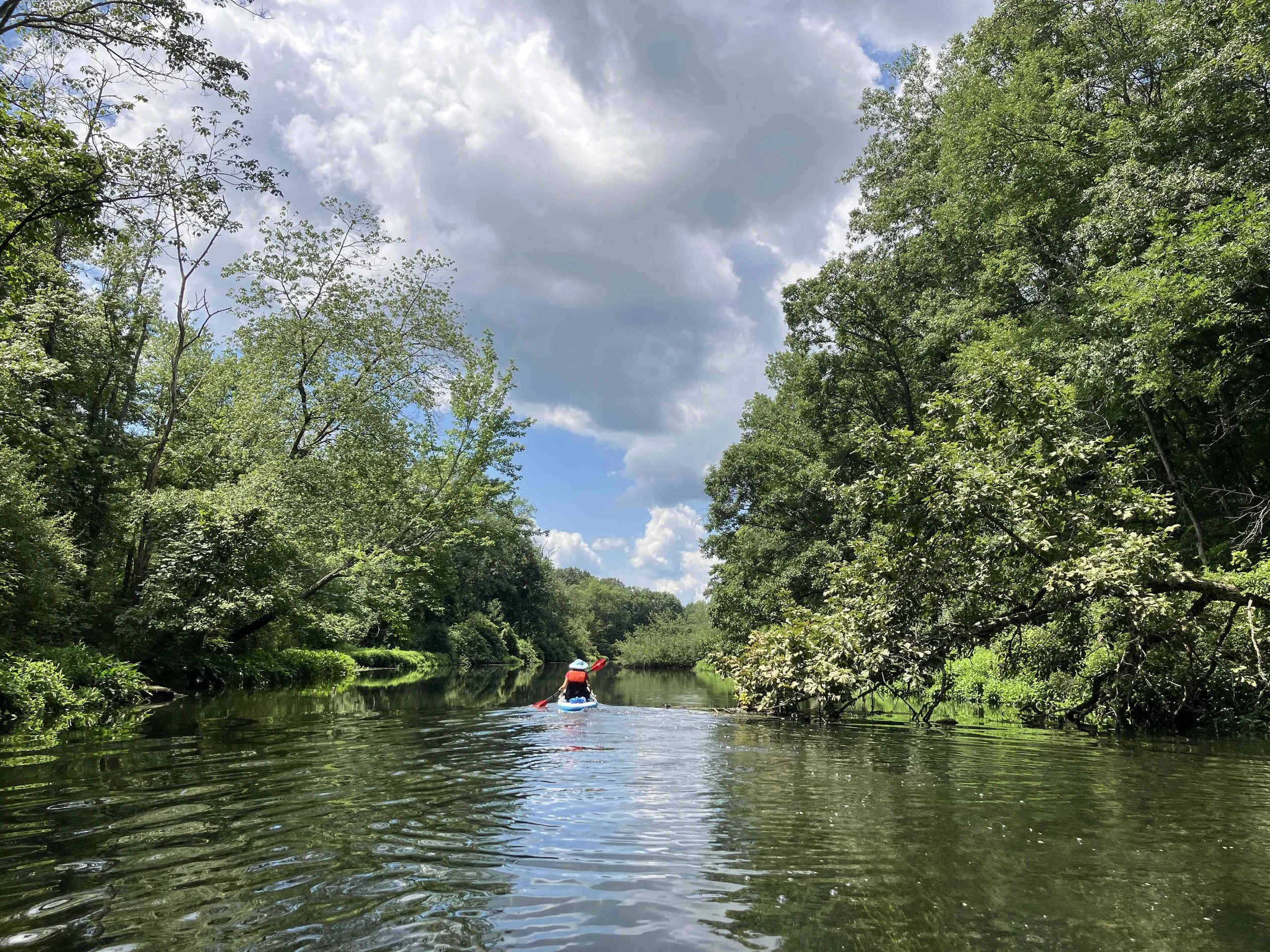 This seven-mile section of the Musconetcong River is quite wild. It is also hard to kayak. The upper part is often too shallow, plus there are numerous downed trees obstructing the river. The lower section is a large lake that is a bit boring. There is a dam in the Waterloo Village Historic Site. Portage on the right.