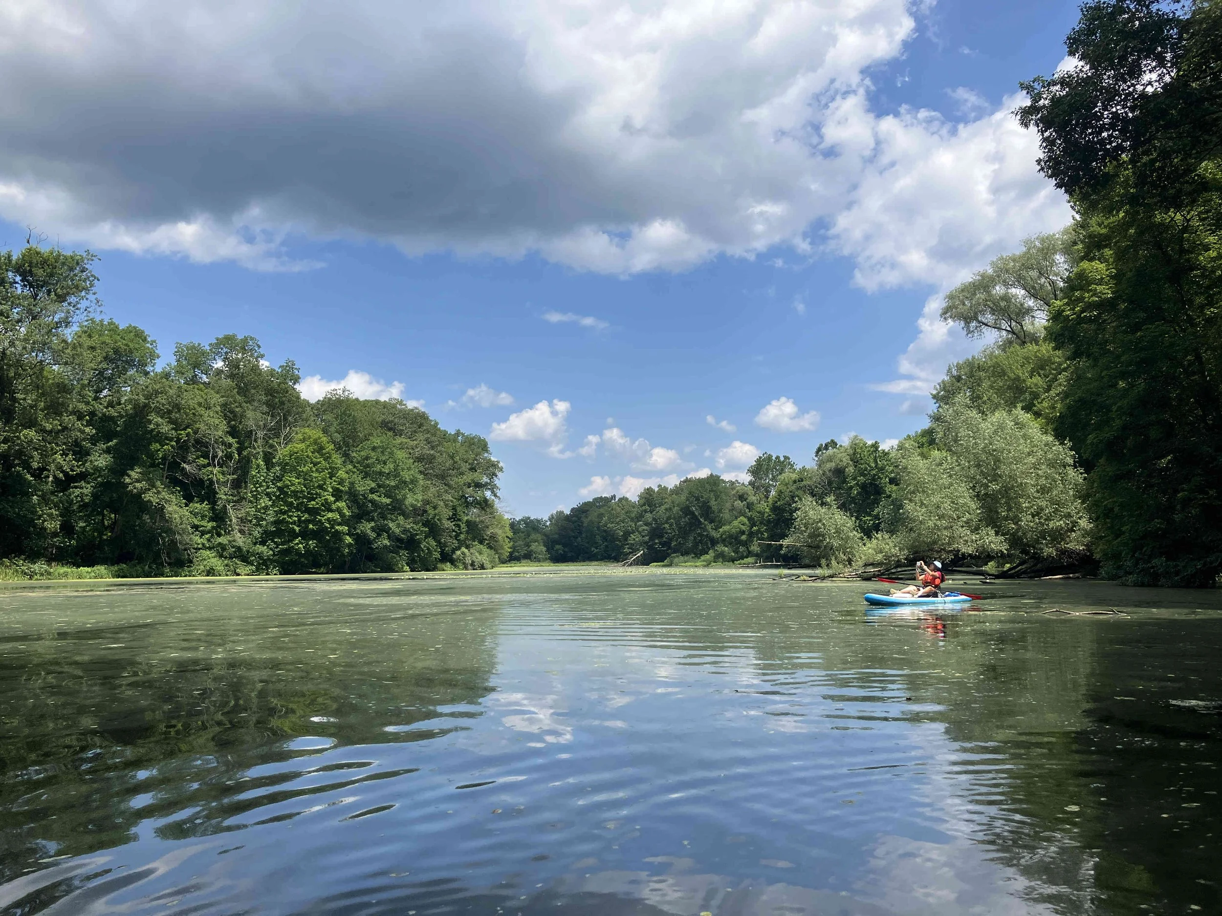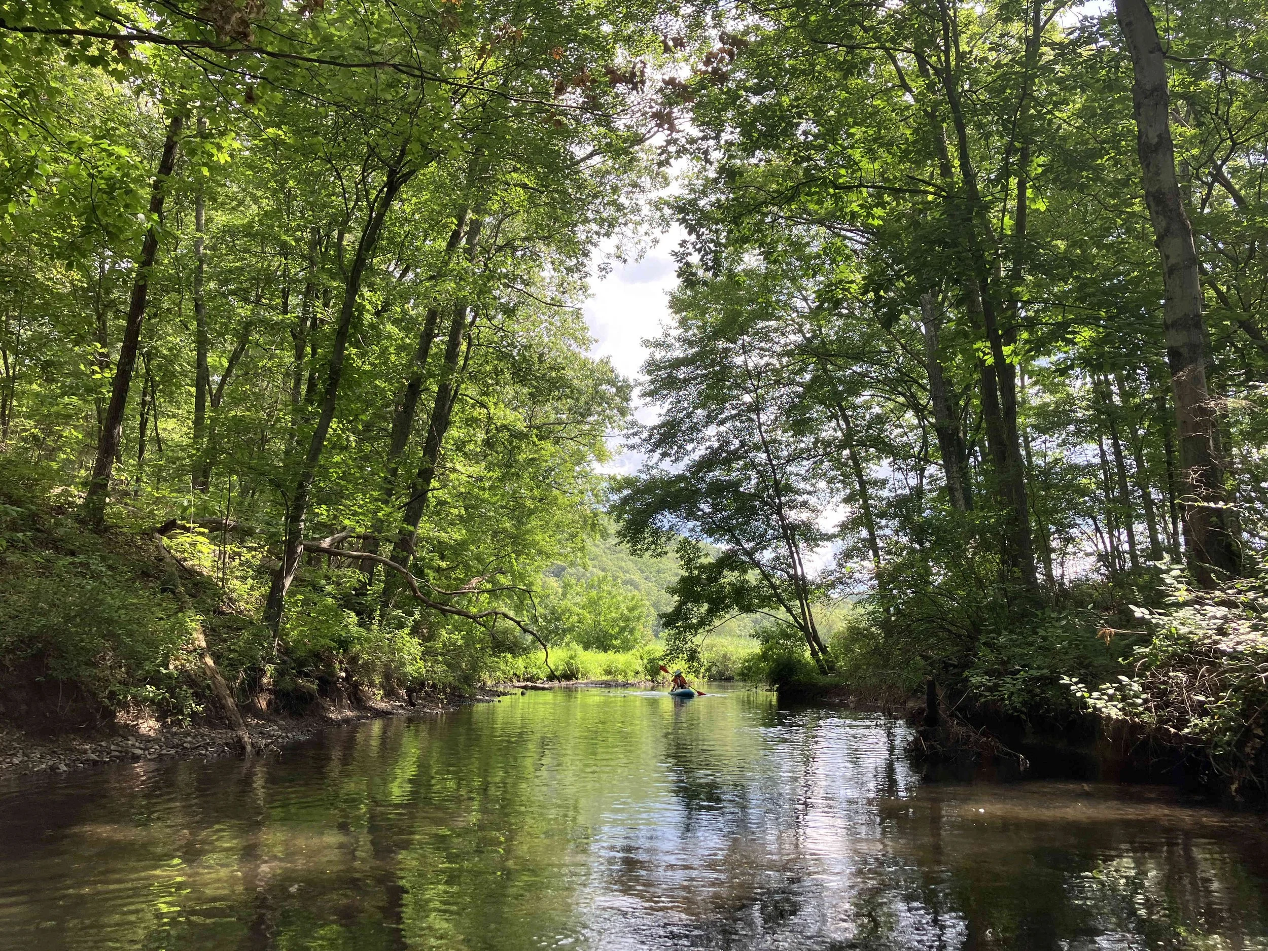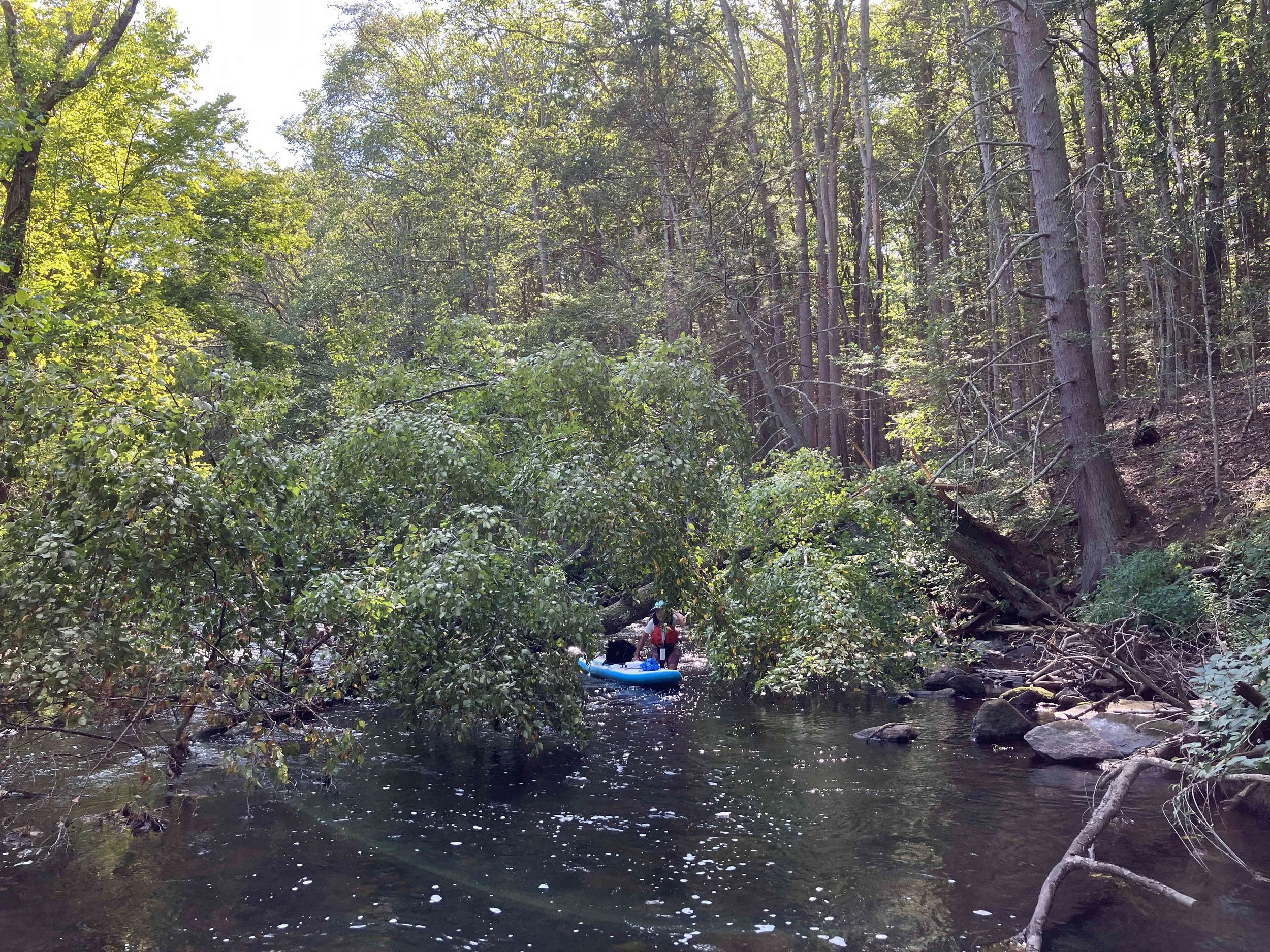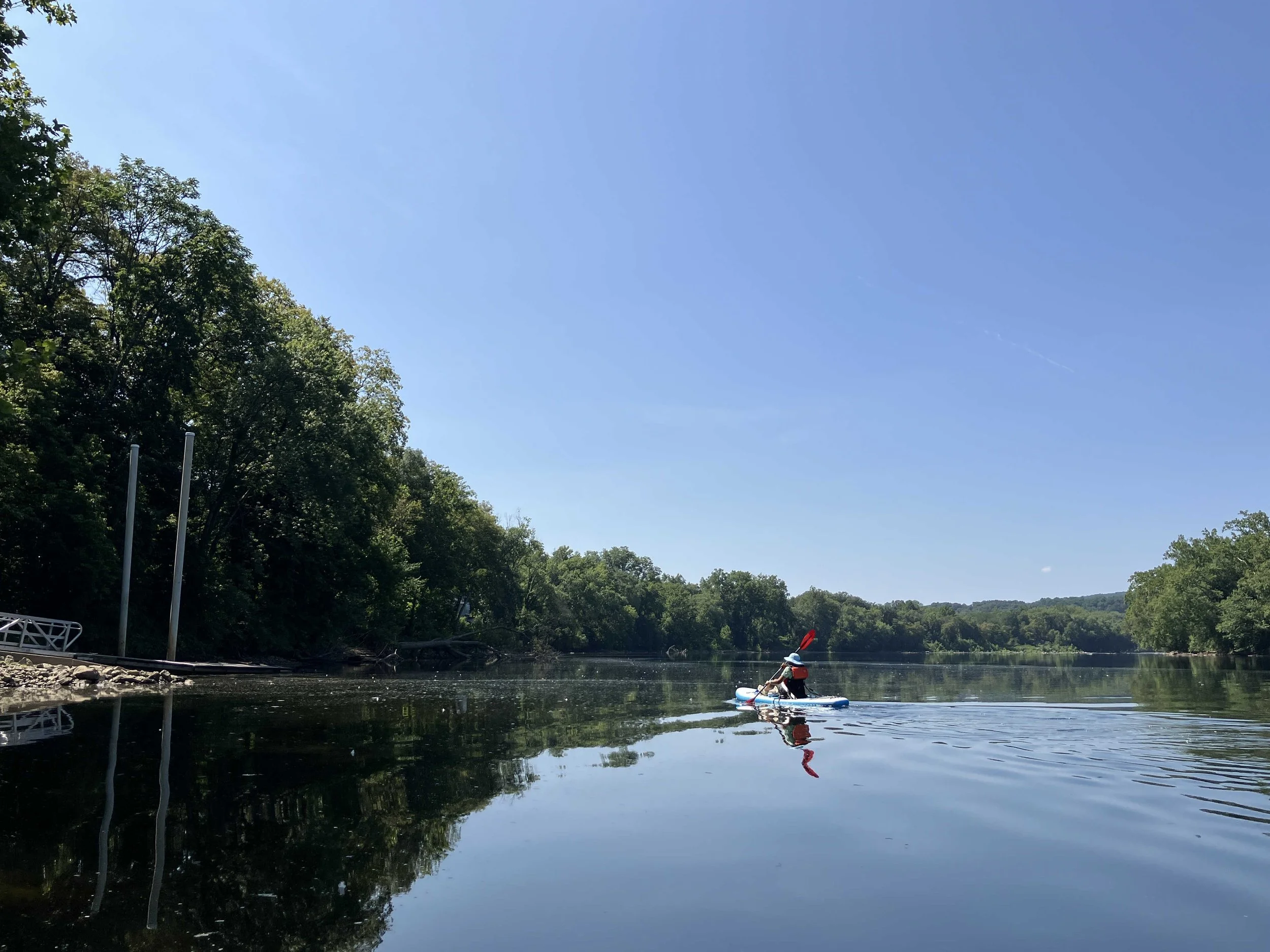 This seven-mile section of the Musconetcong River is quite wild. It is also hard to kayak. The upper part is often too shallow, plus there are numerous downed trees obstructing the river. The lower section is a large lake that is a bit boring. There is a dam in the Waterloo Village Historic Site. Portage on the right.