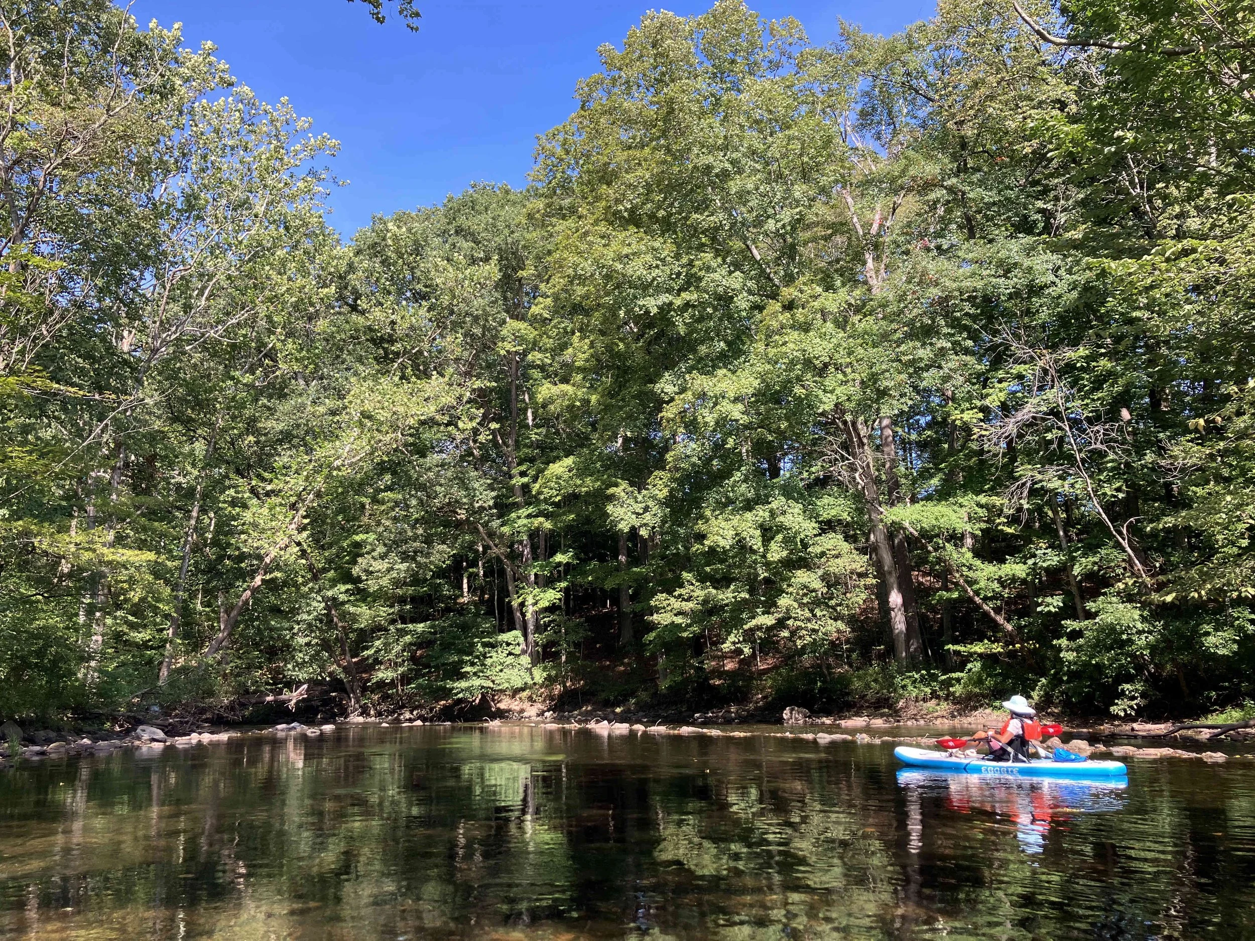 This six-mile section of the river is pretty. There were no obstructions, but there were a couple of small rapids where we felt it was prudent to walk around. The river is shallow. But if one has a suitable boat, most of it can be paddled without having to walk.