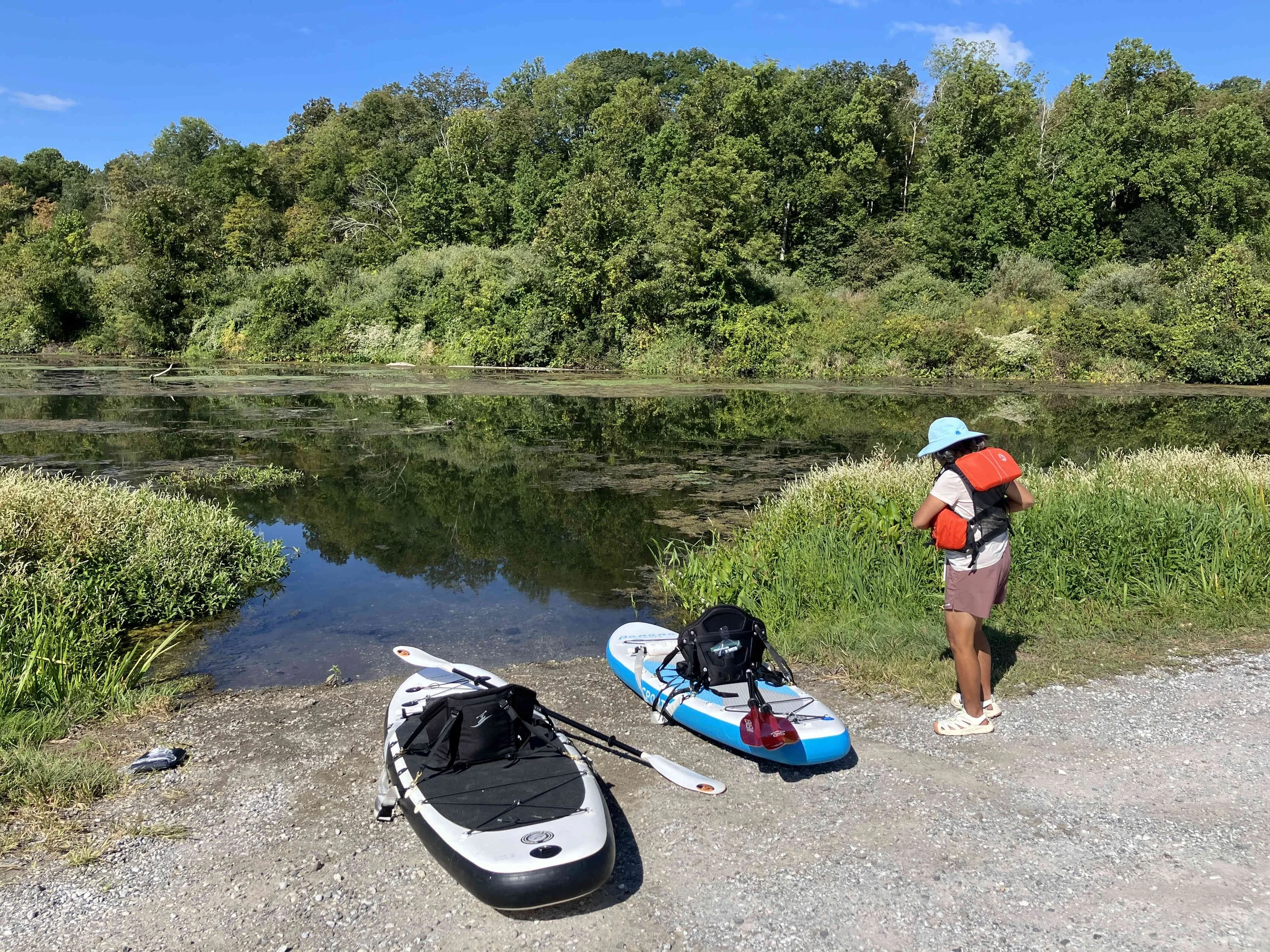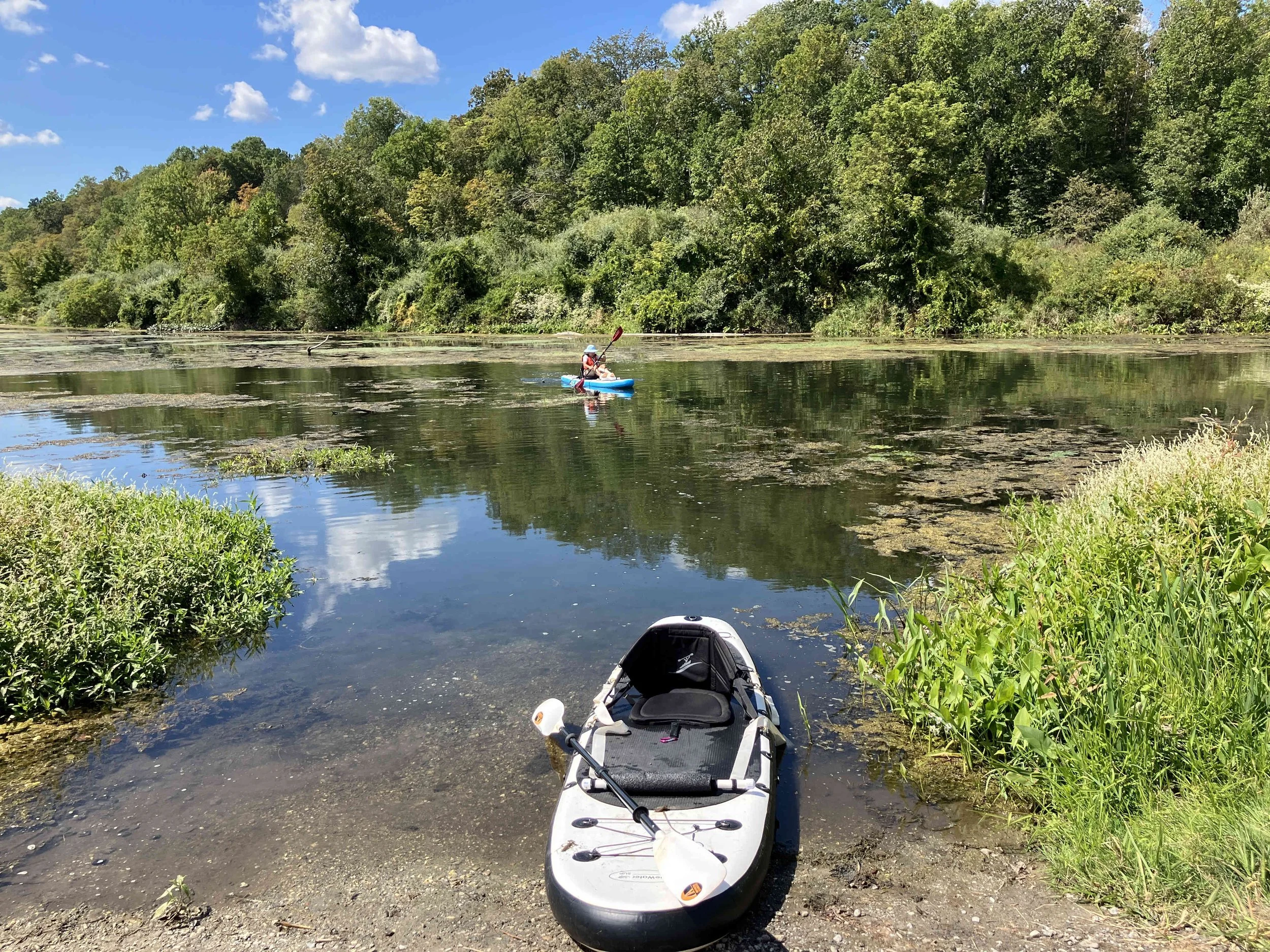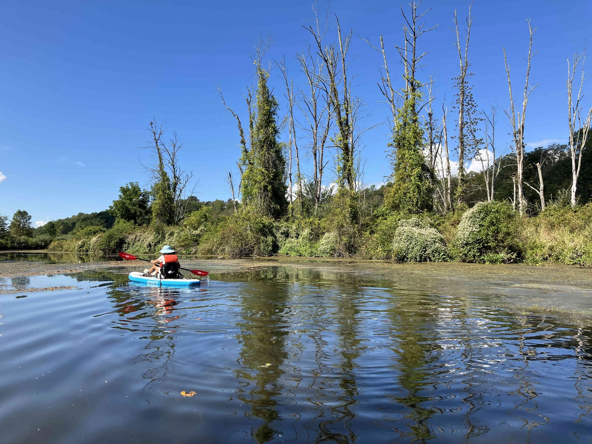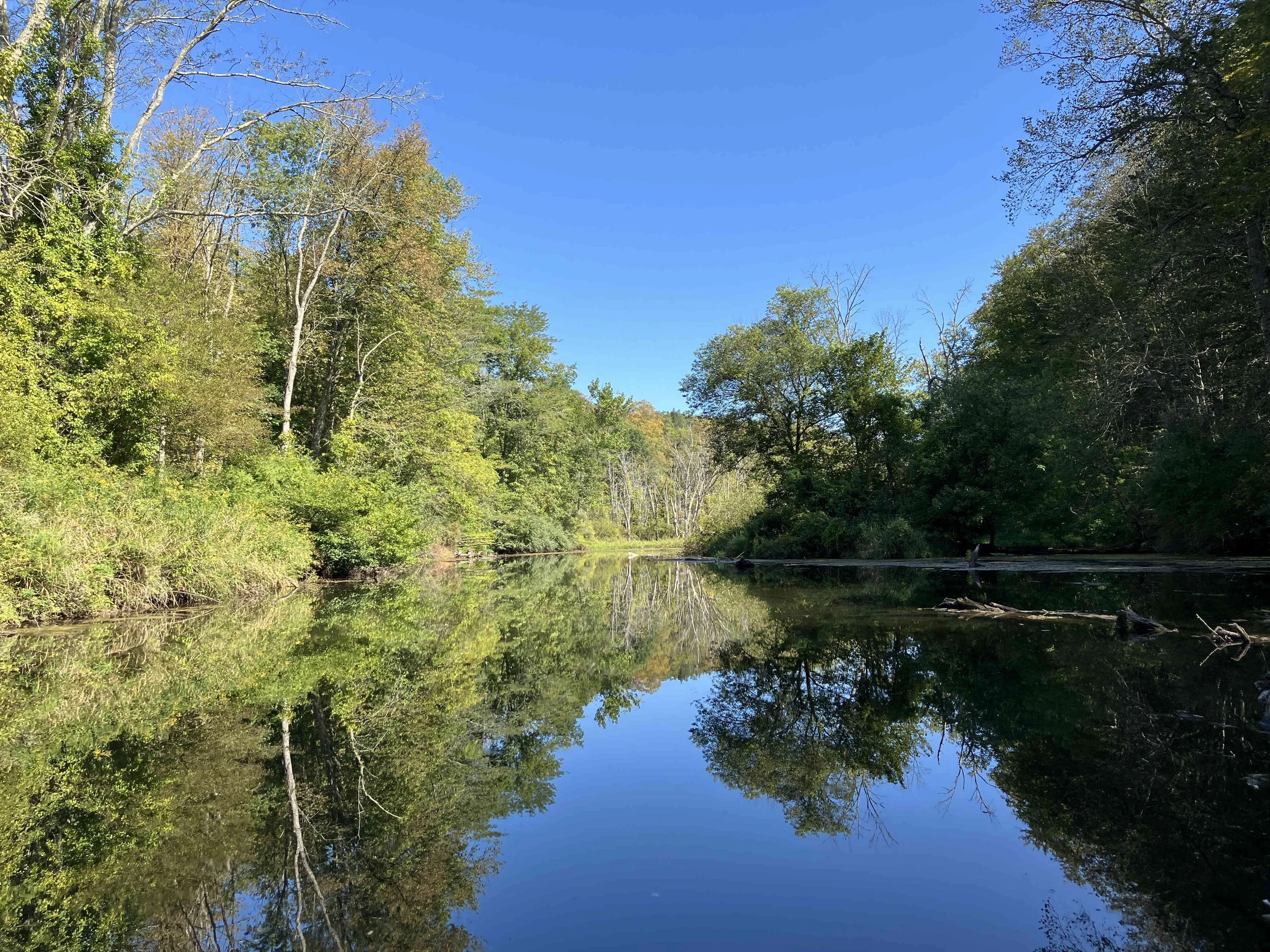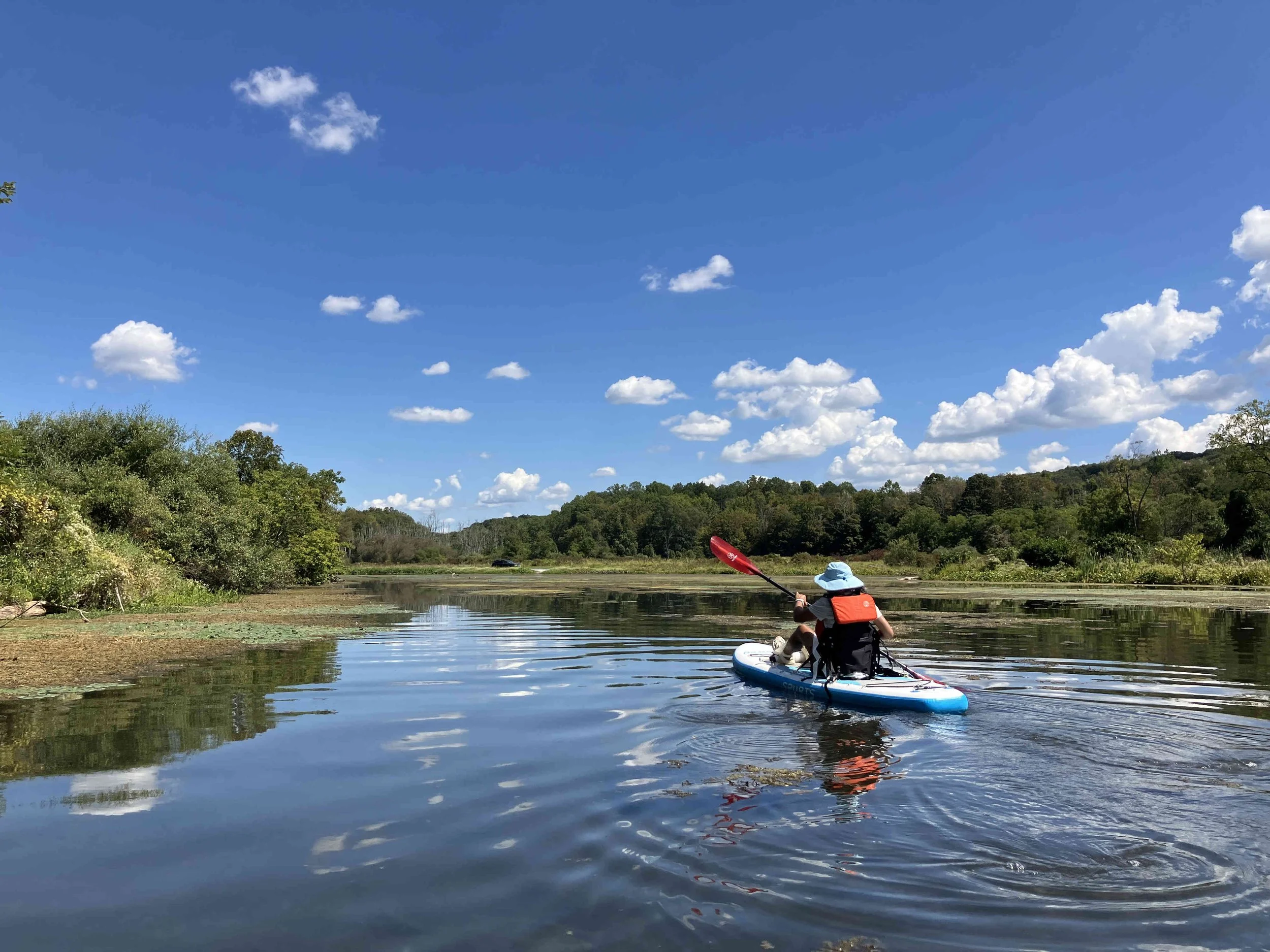 Paulinskill Lake (250 acres) is in Hampton Township, Sussex County. It is divided into three sections by bridges. The lower section is private property, so no kayaking. The middle and upper sections are in the Paulinskill River Wildlife Management Area. They are quite different in character. The only launch site is near Plotts Bridge.