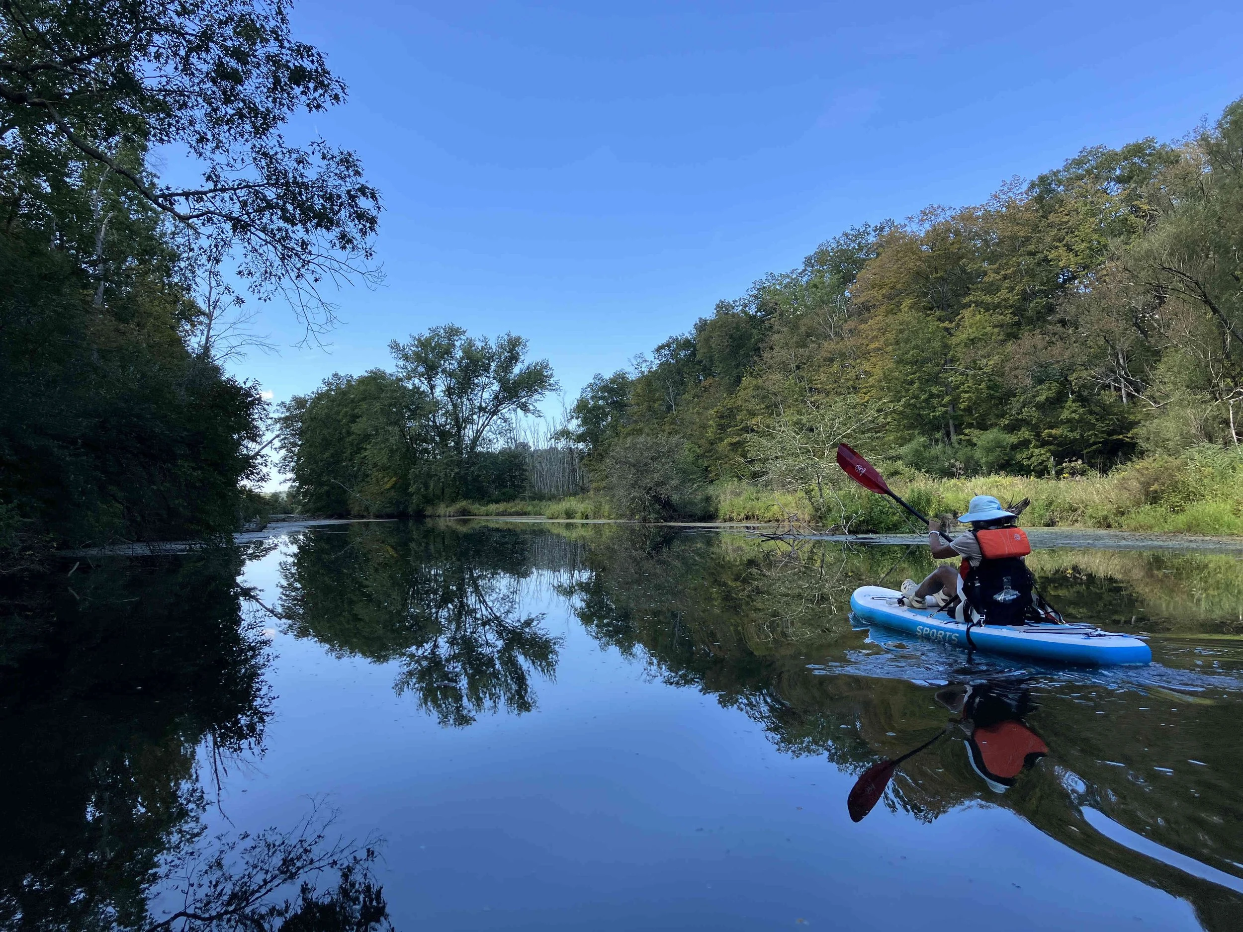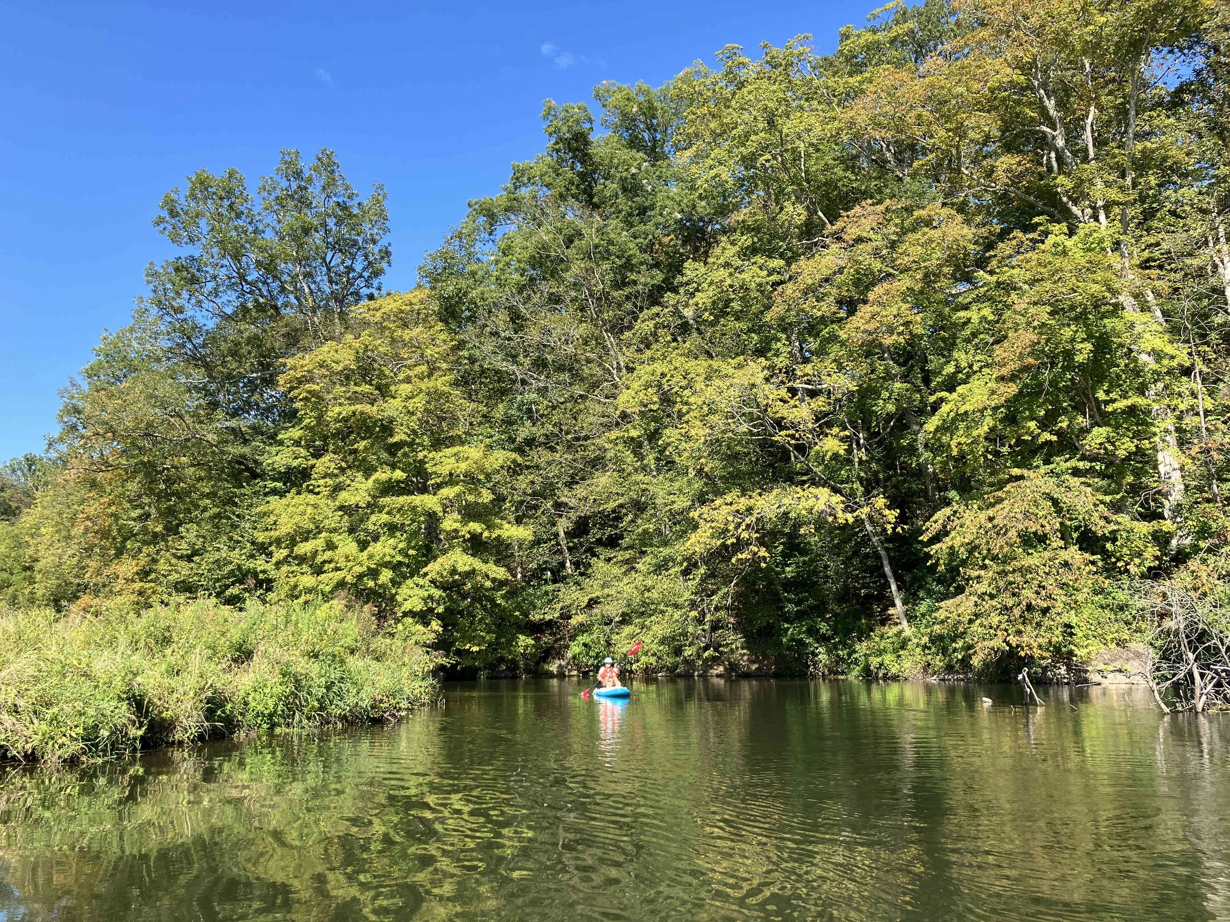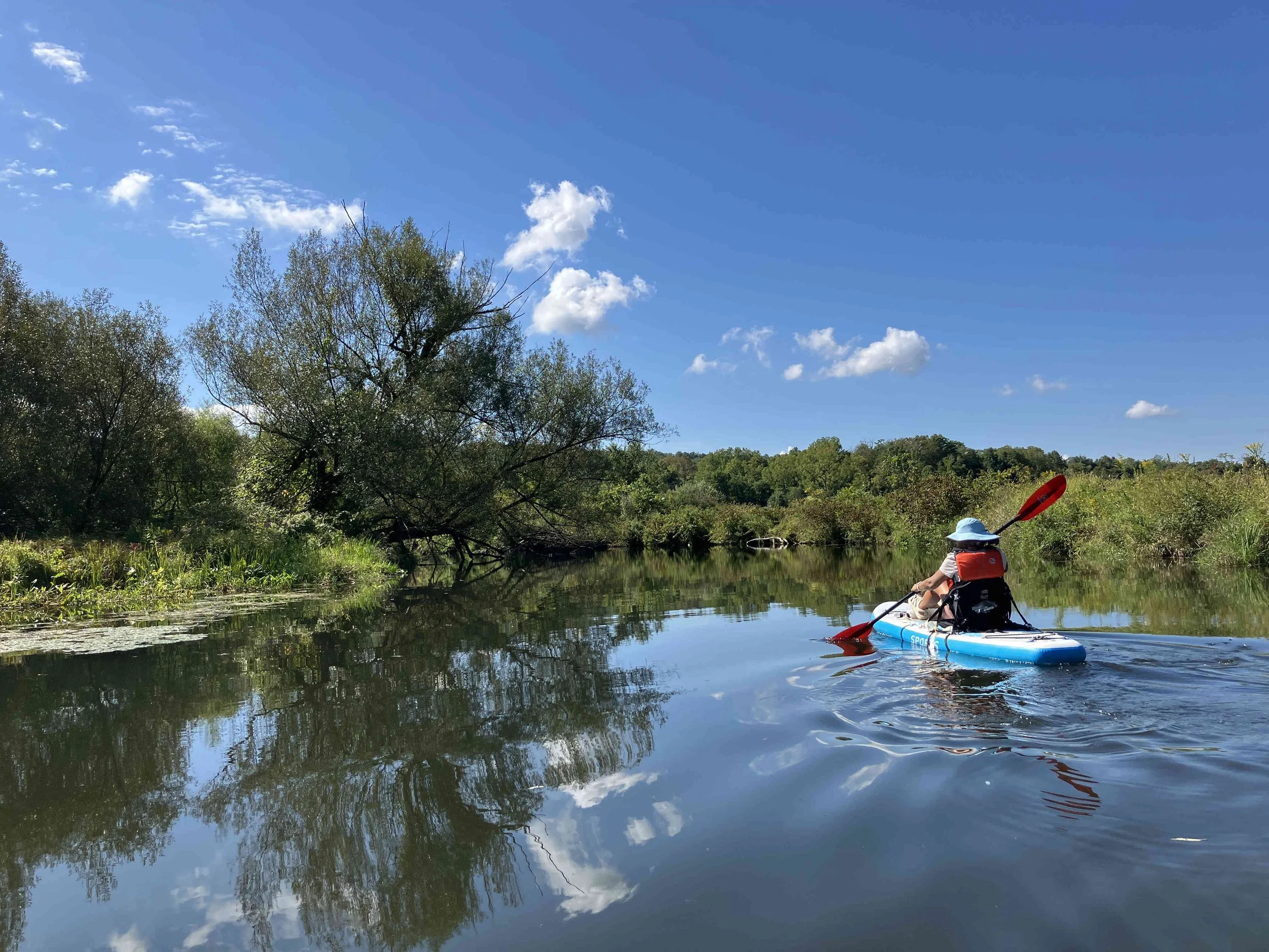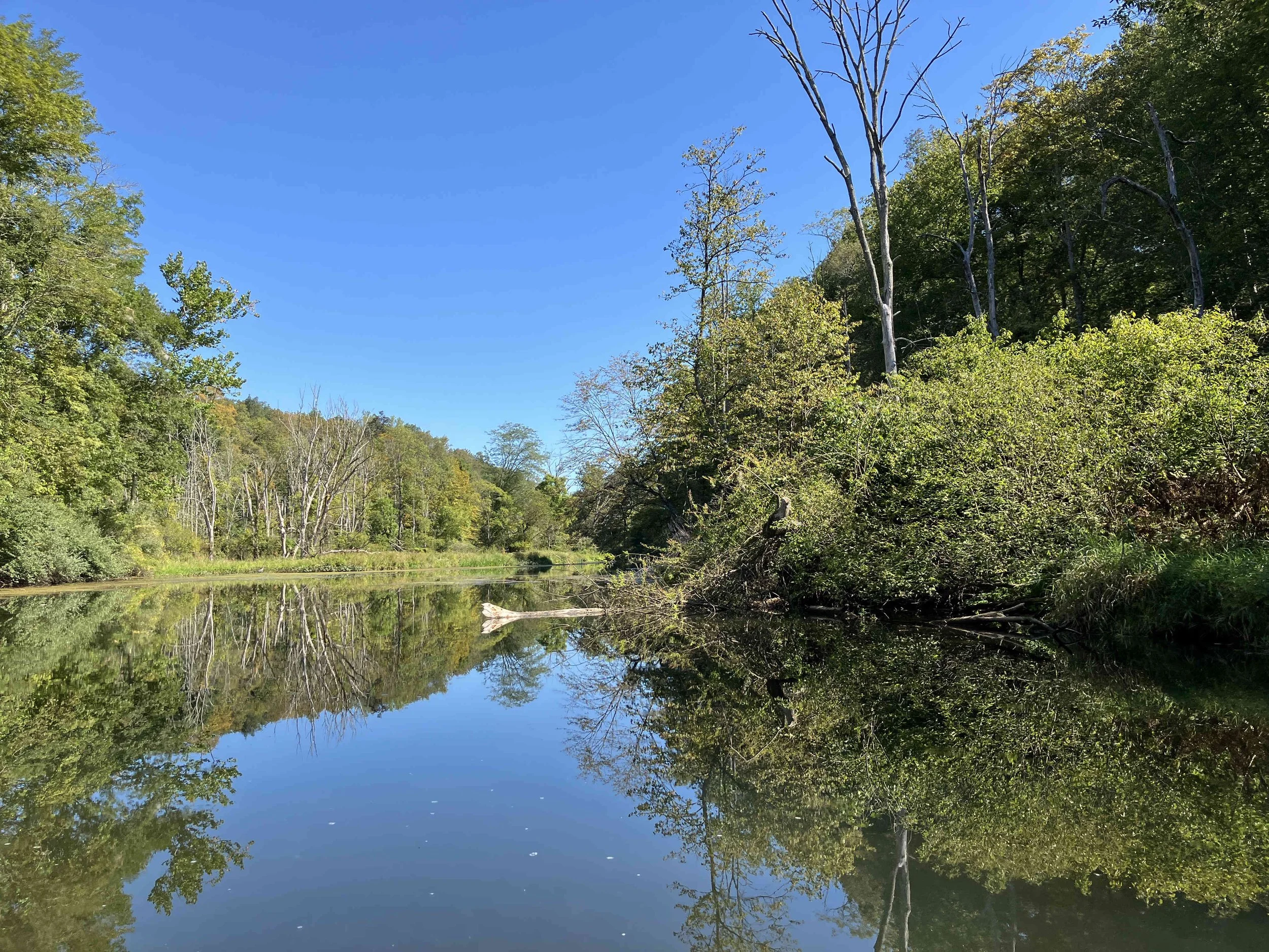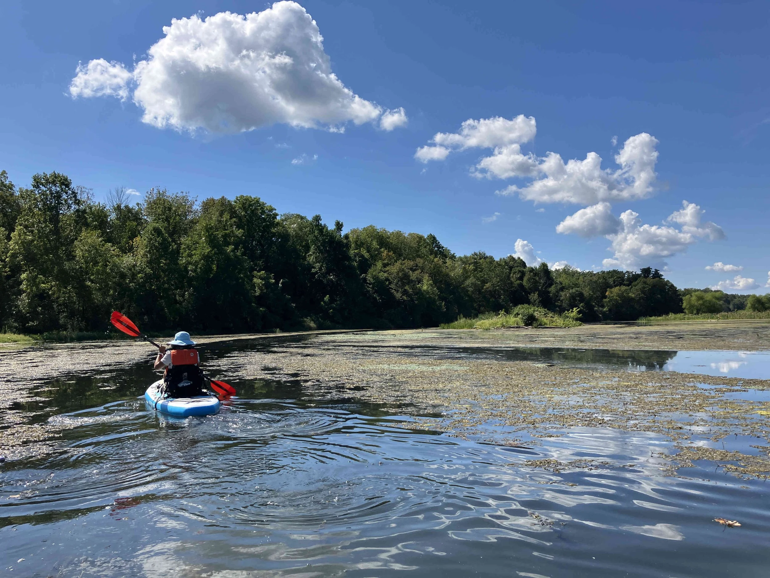 Paulinskill Lake (250 acres) is in Hampton Township, Sussex County. It is divided into three sections by bridges. The lower section is private property, so no kayaking. The middle and upper sections are in the Paulinskill River Wildlife Management Area. They are quite different in character. The only launch site is near Plotts Bridge.