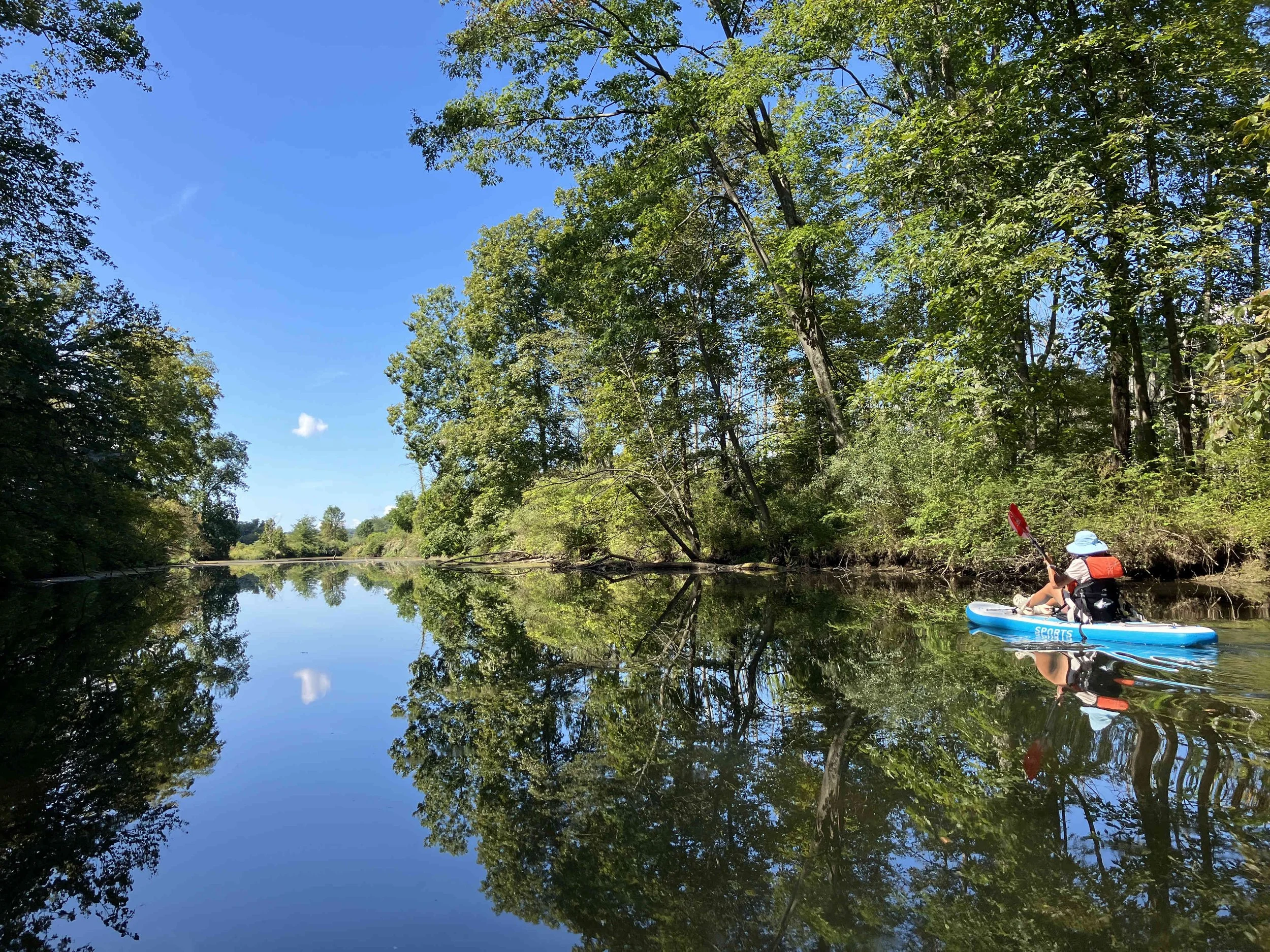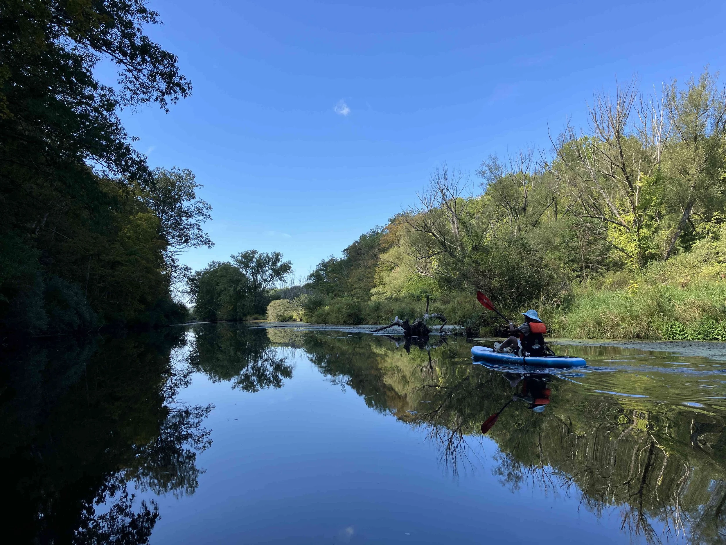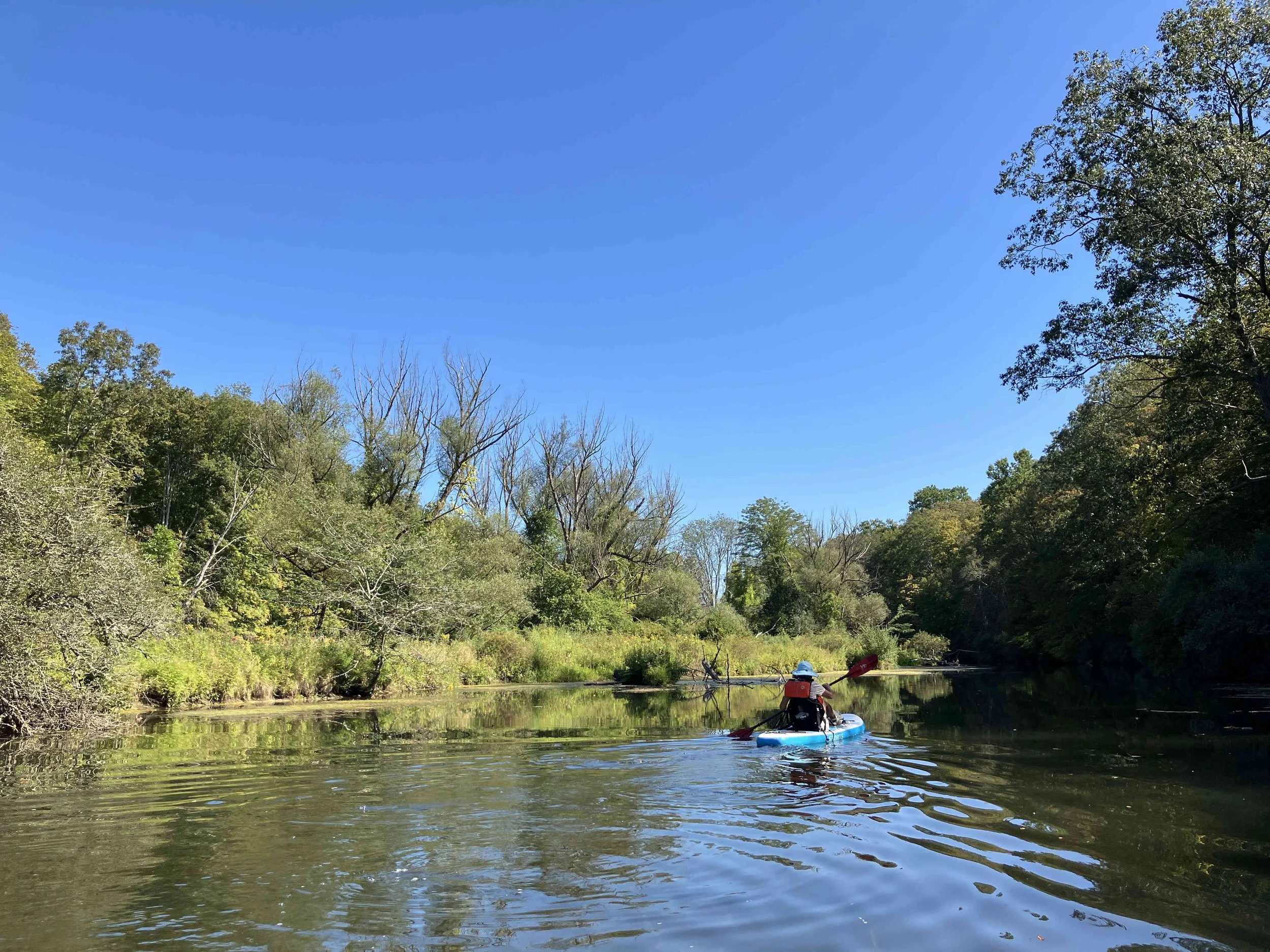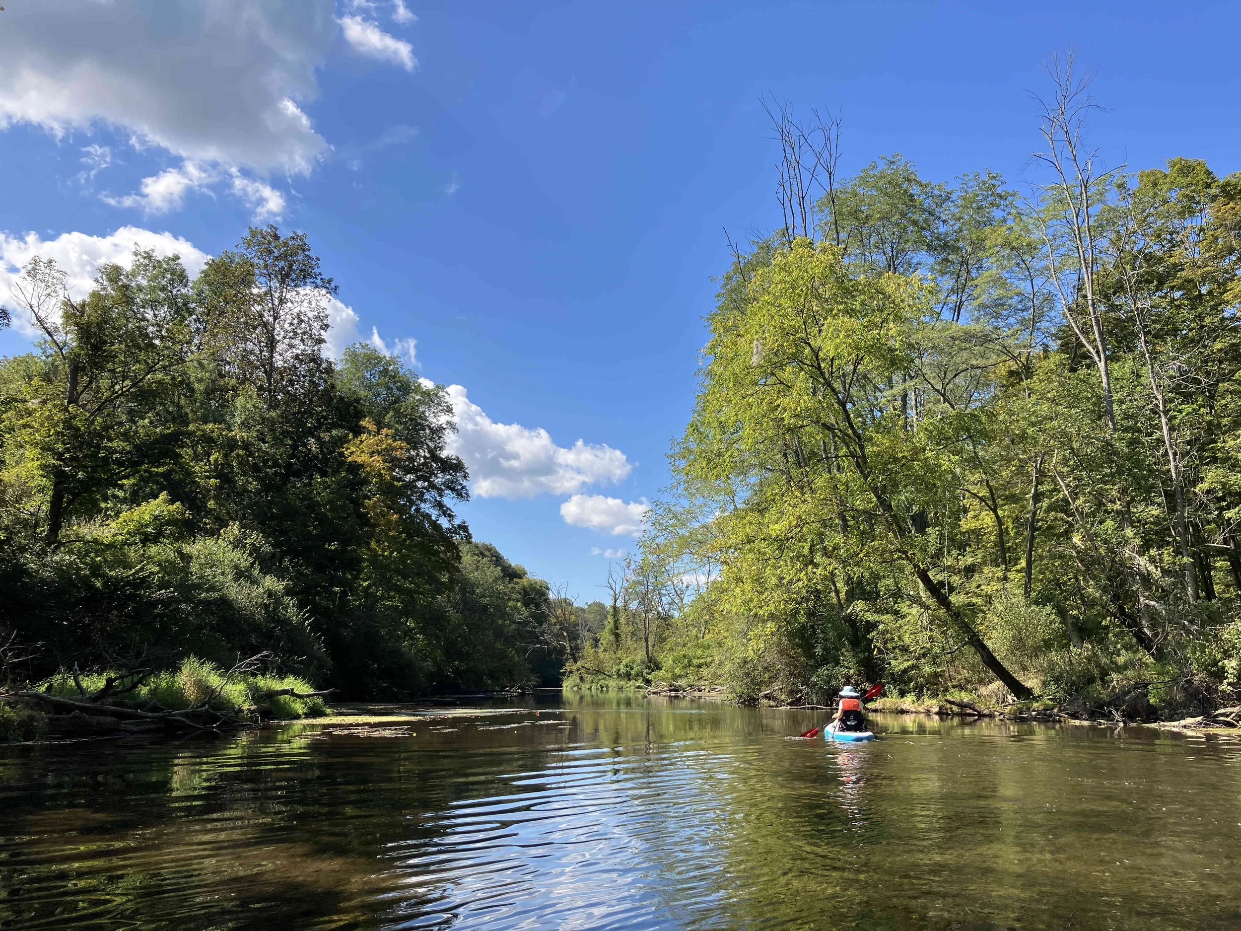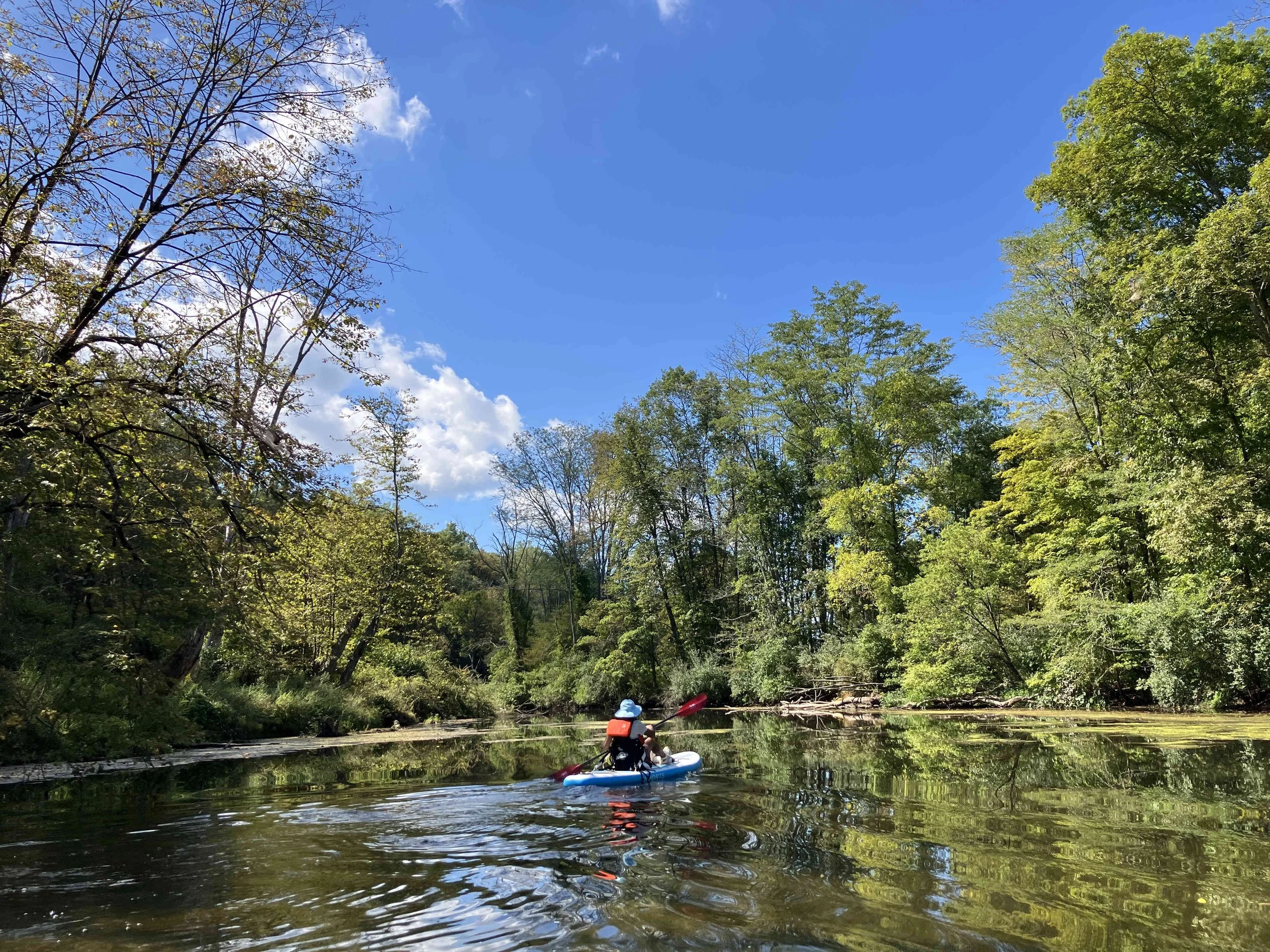 Paulinskill Lake (250 acres) is in Hampton Township, Sussex County. It is divided into three sections by bridges. The lower section is private property, so no kayaking. The middle and upper sections are in the Paulinskill River Wildlife Management Area. They are quite different in character. The only launch site is near Plotts Bridge.