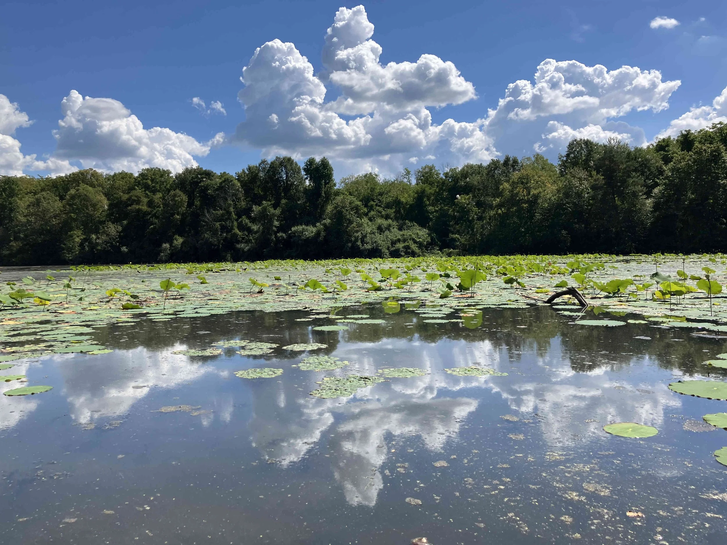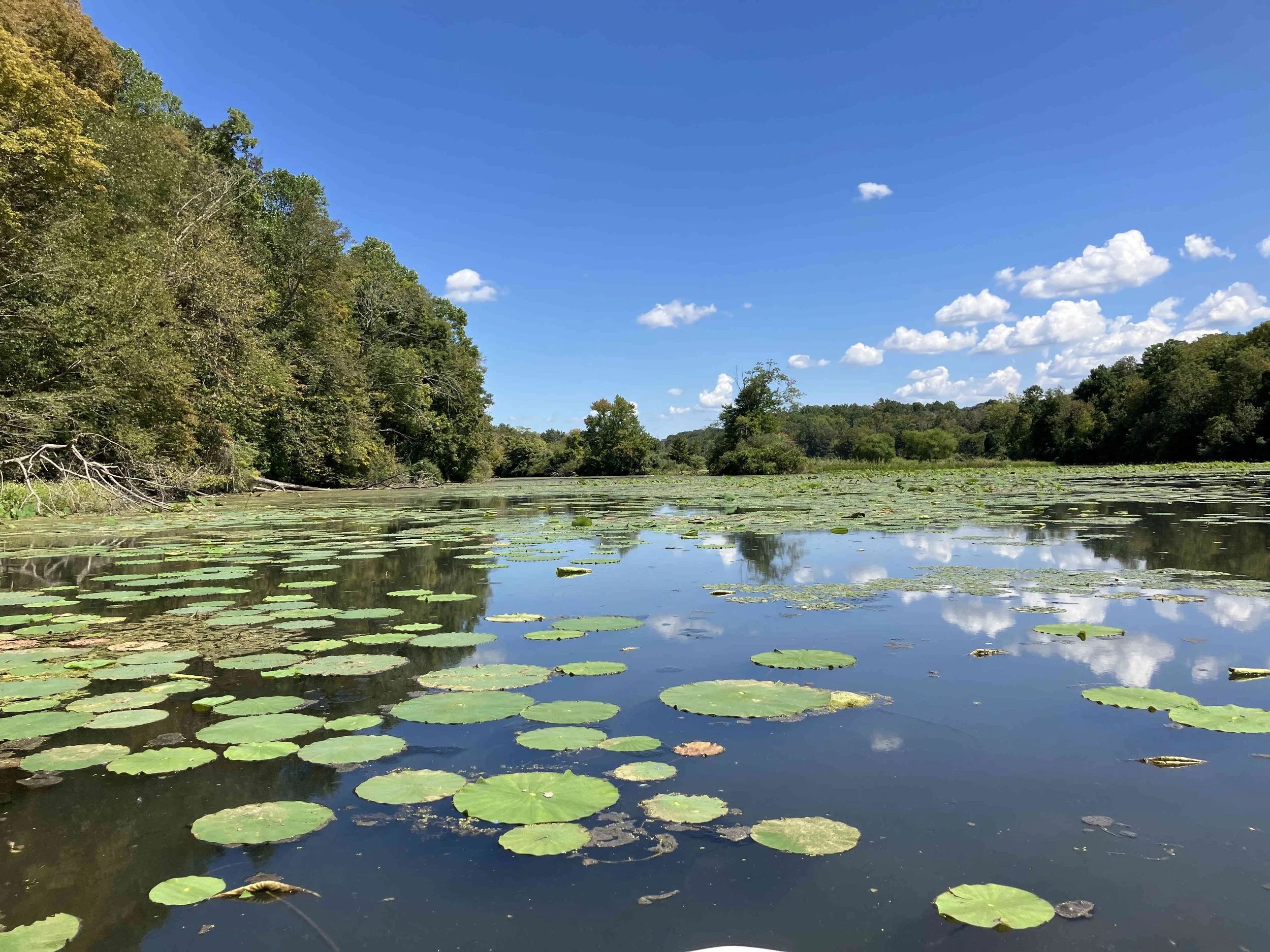 The middle section is much broader, and has more weeds. There are a couple of nice islands.