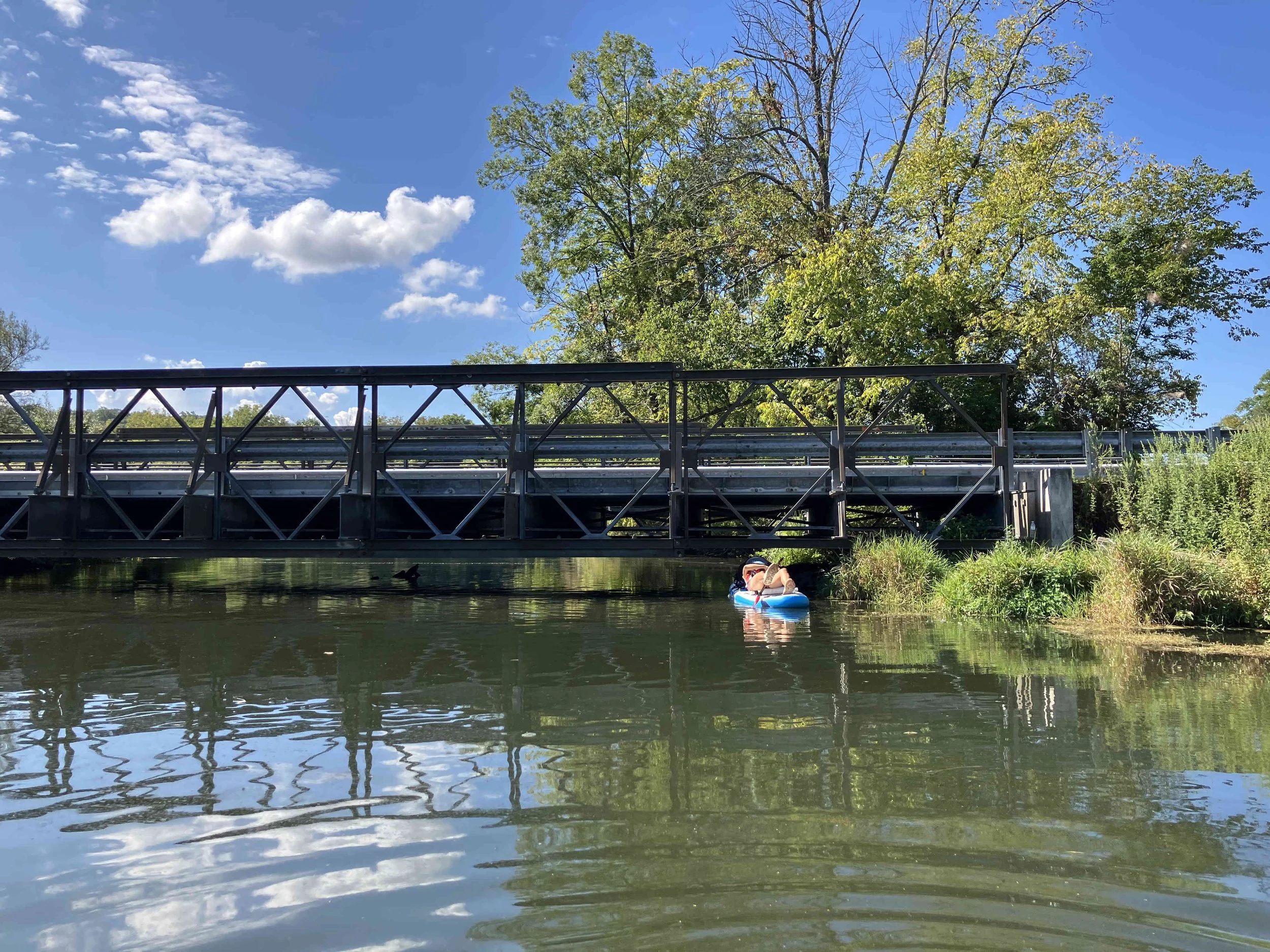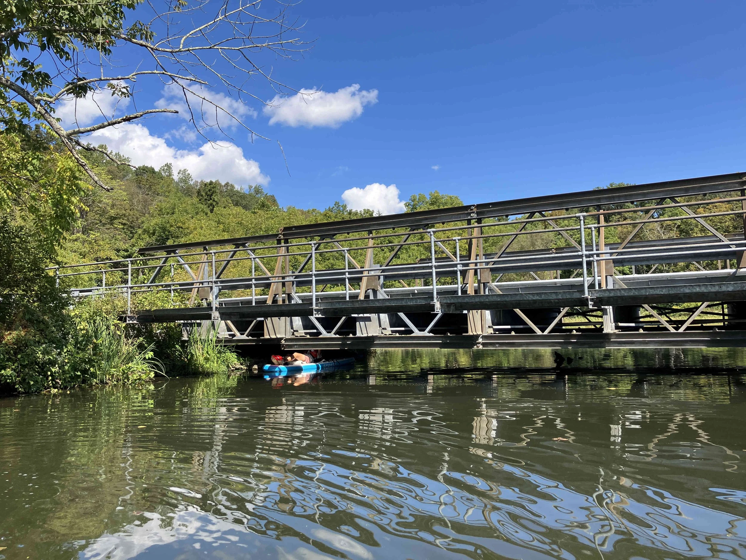 The top section is long and narrow. From the launch site, the only way to enter is to scoot under the bridge.