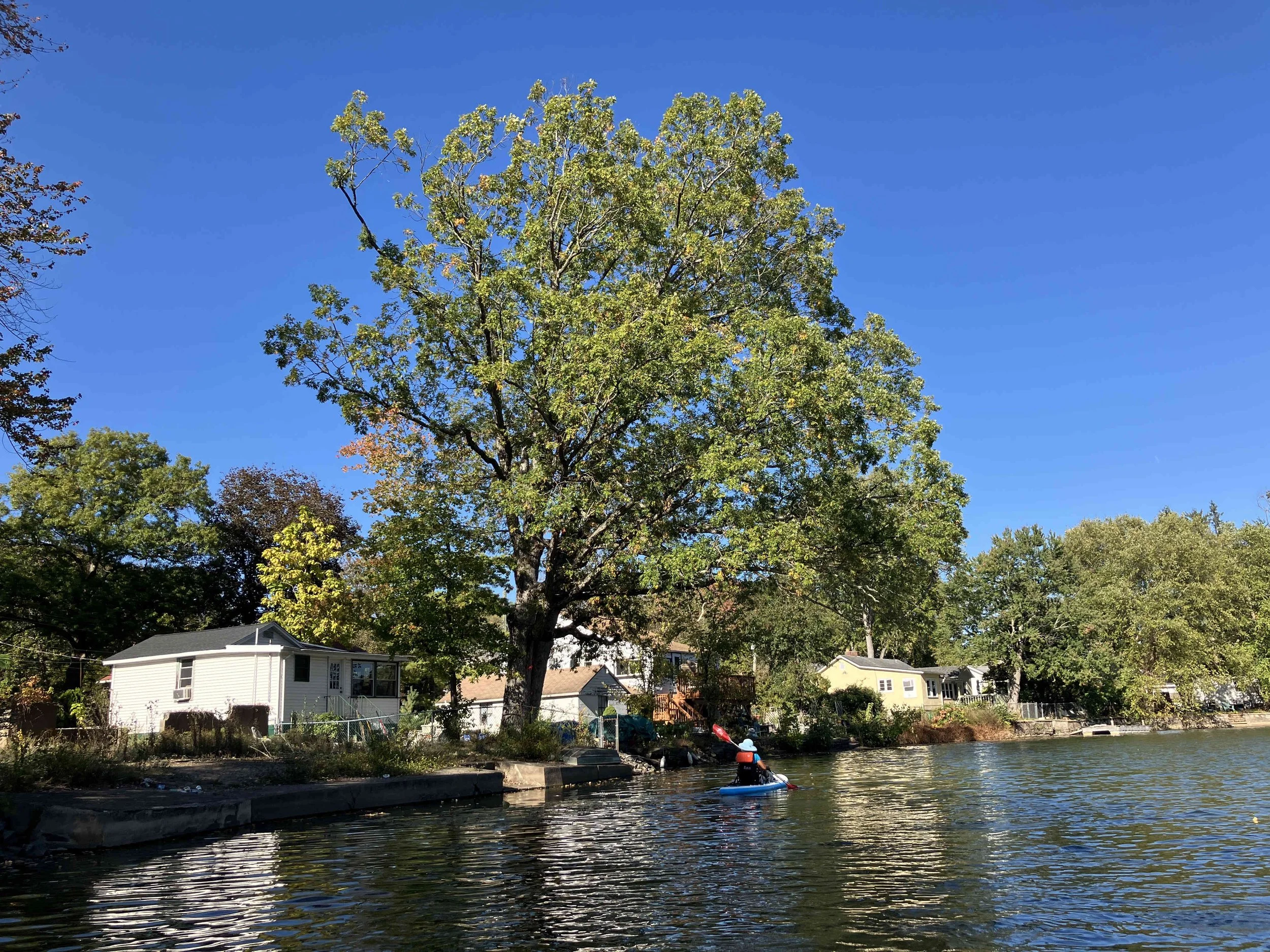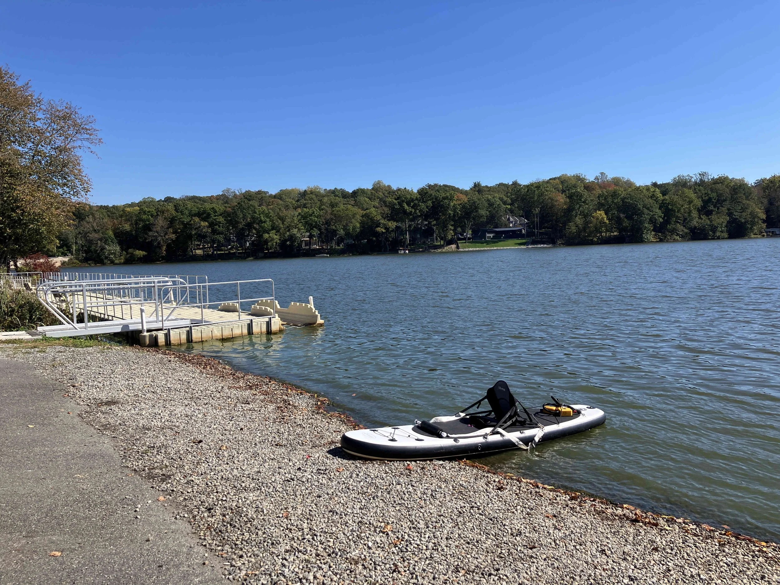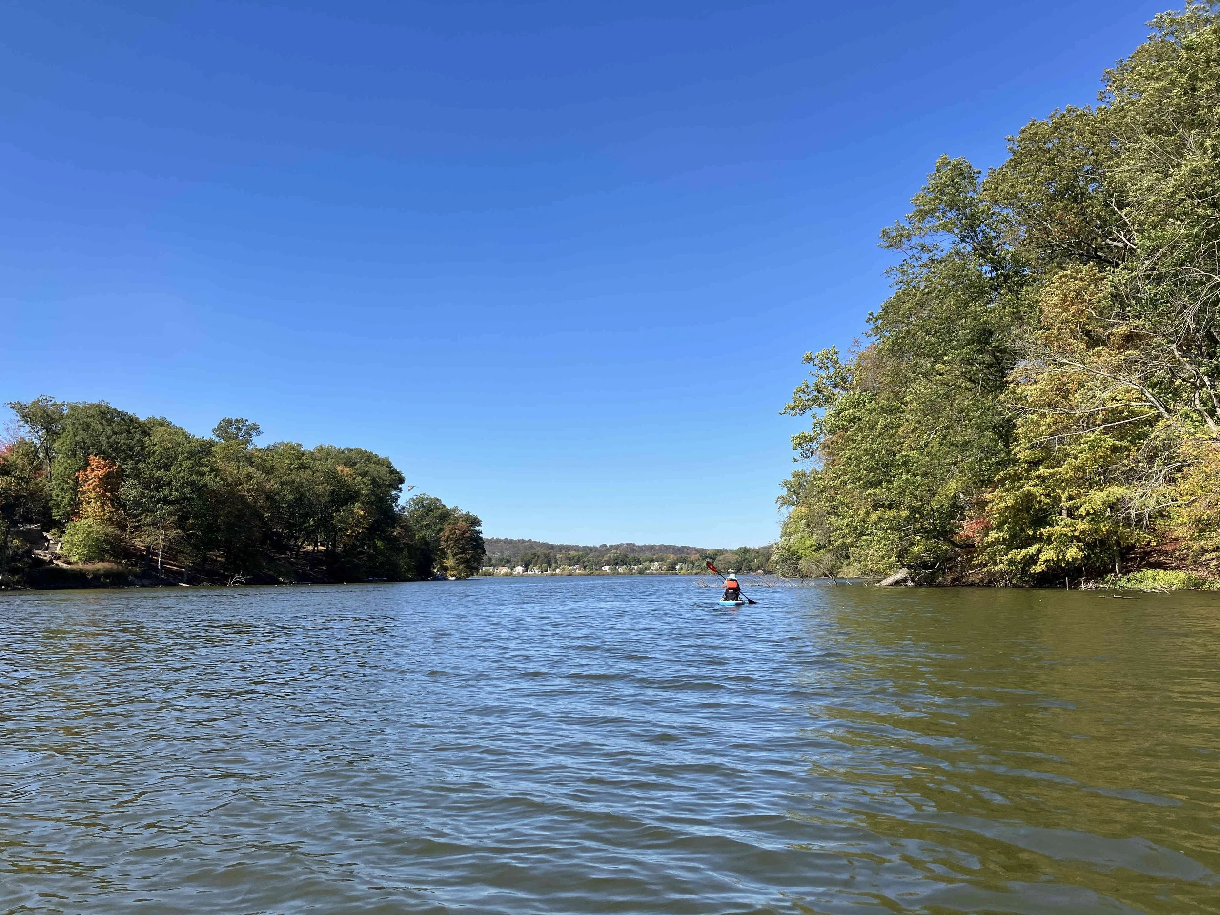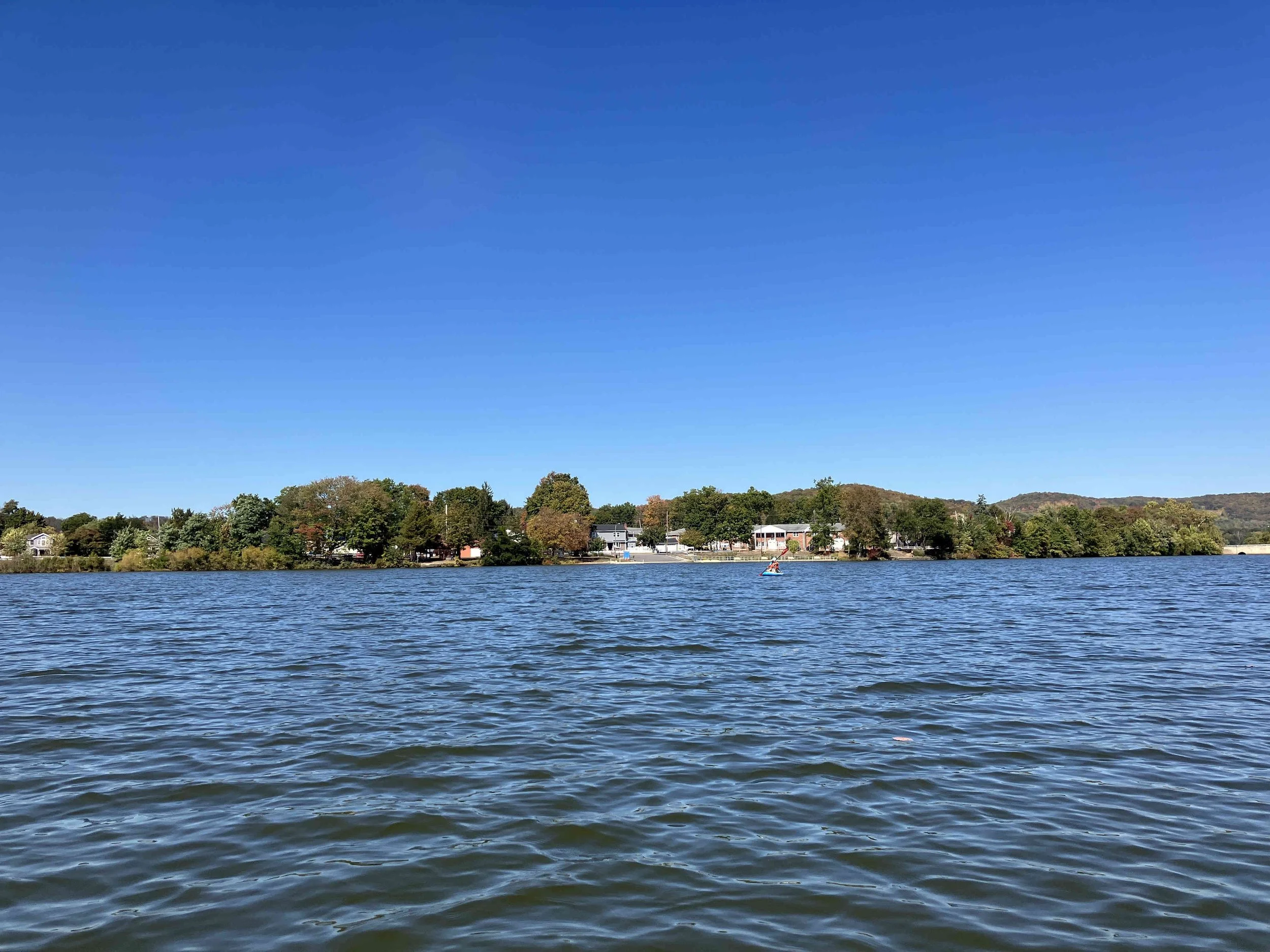 Lakeside Park in Pompton Lakes (town) is on the lower section of the lake, which mostly consists of a large pond. We paddled over to the dam, then back.