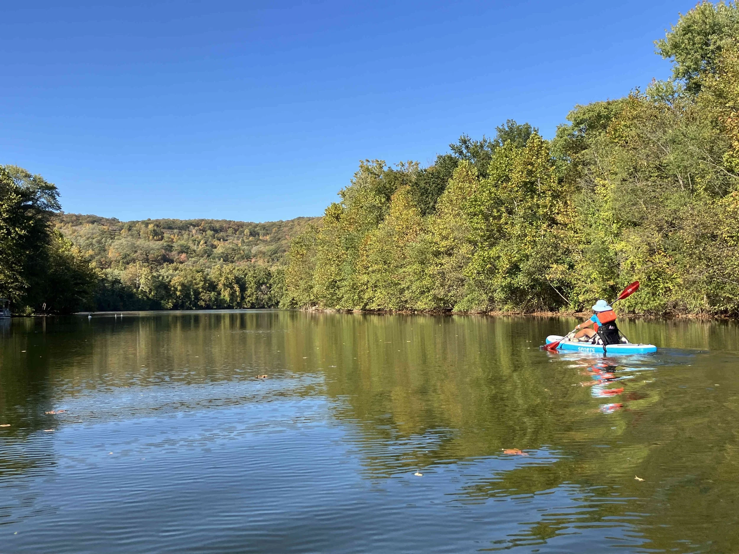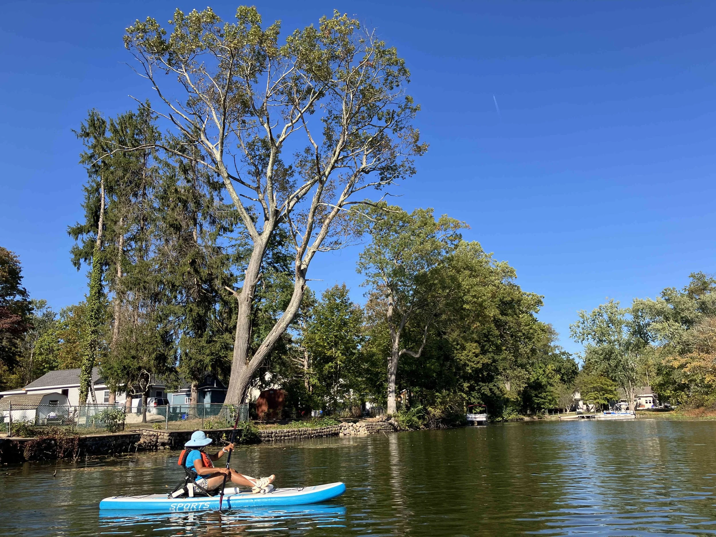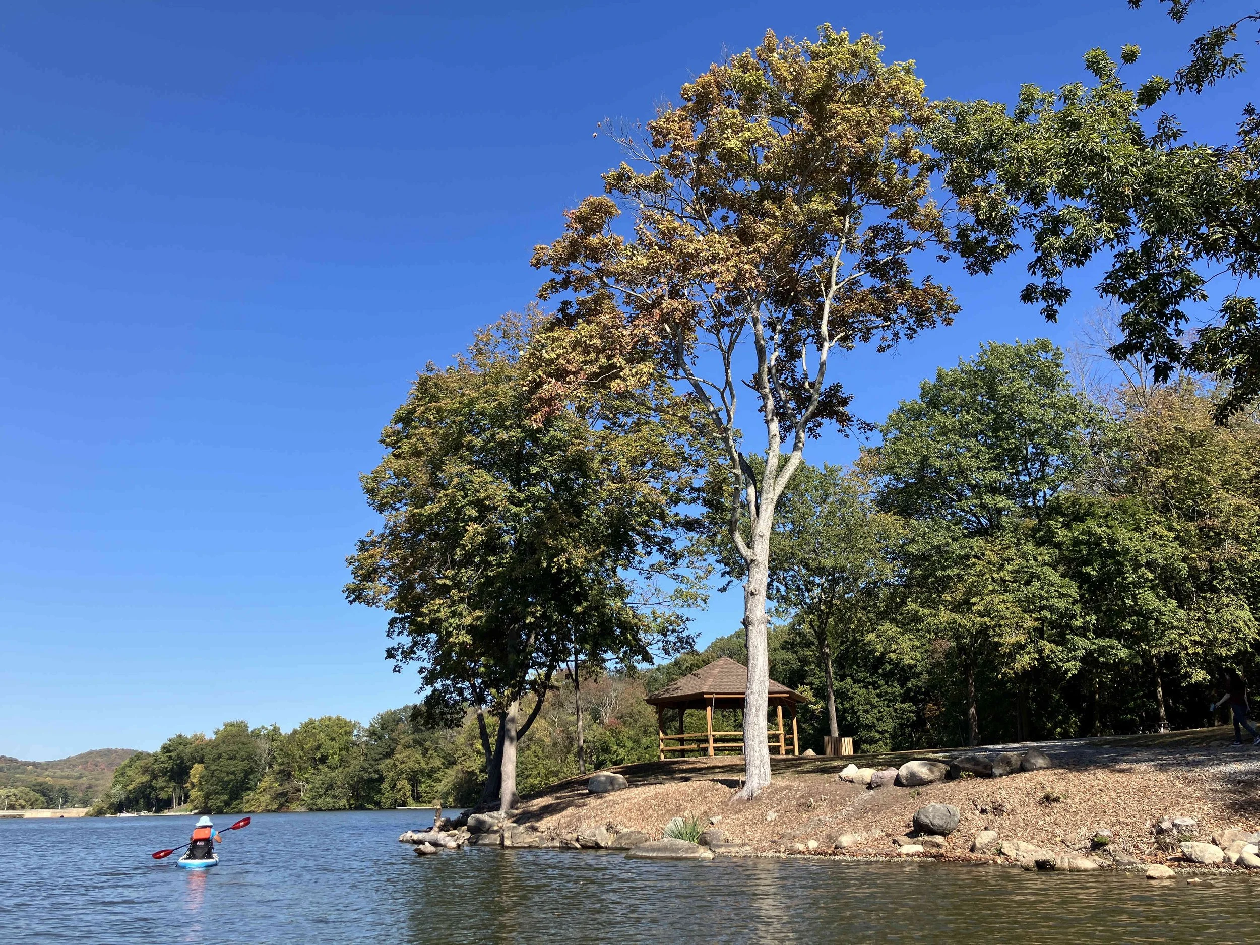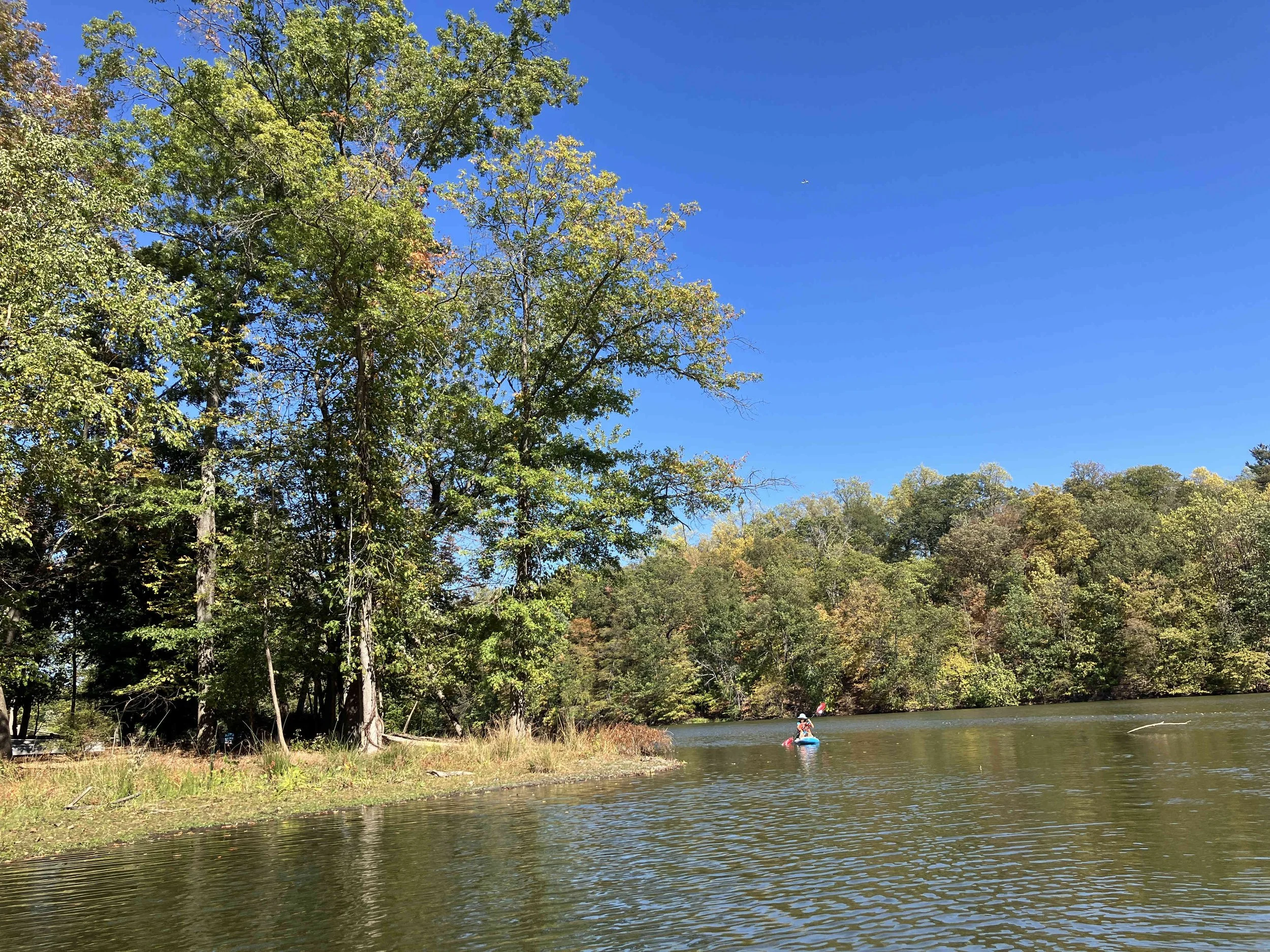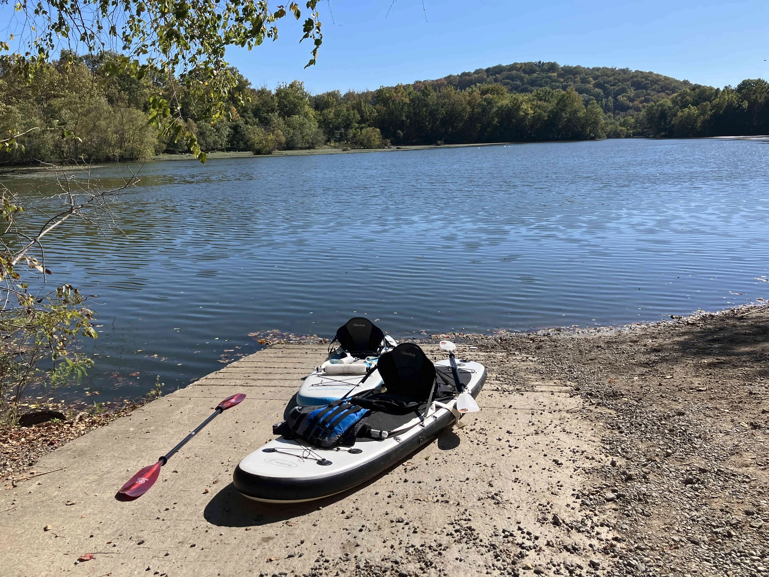 Lakeside Park in Pompton Lakes (town) is on the lower section of the lake, which mostly consists of a large pond. We paddled over to the dam, then back.