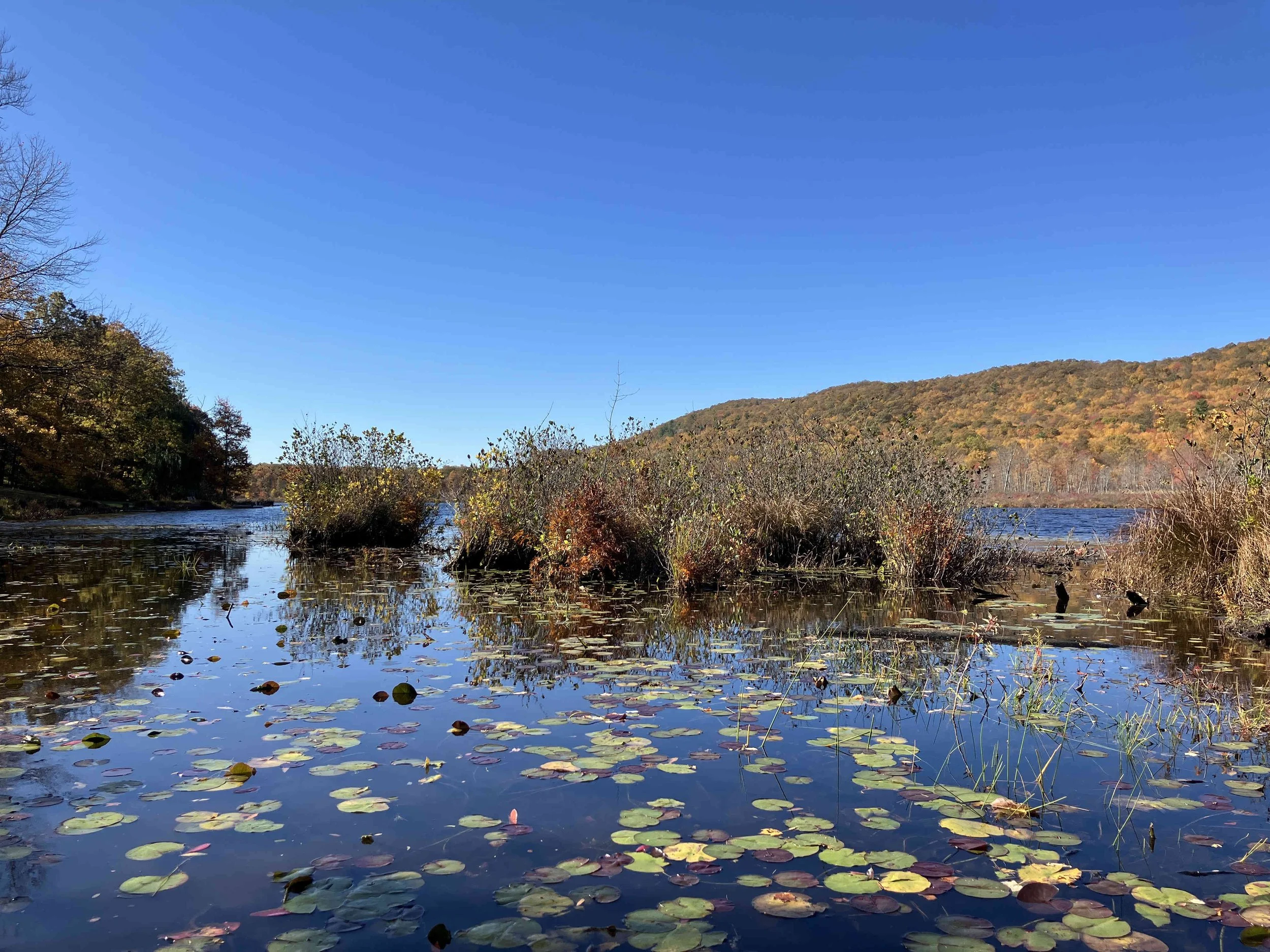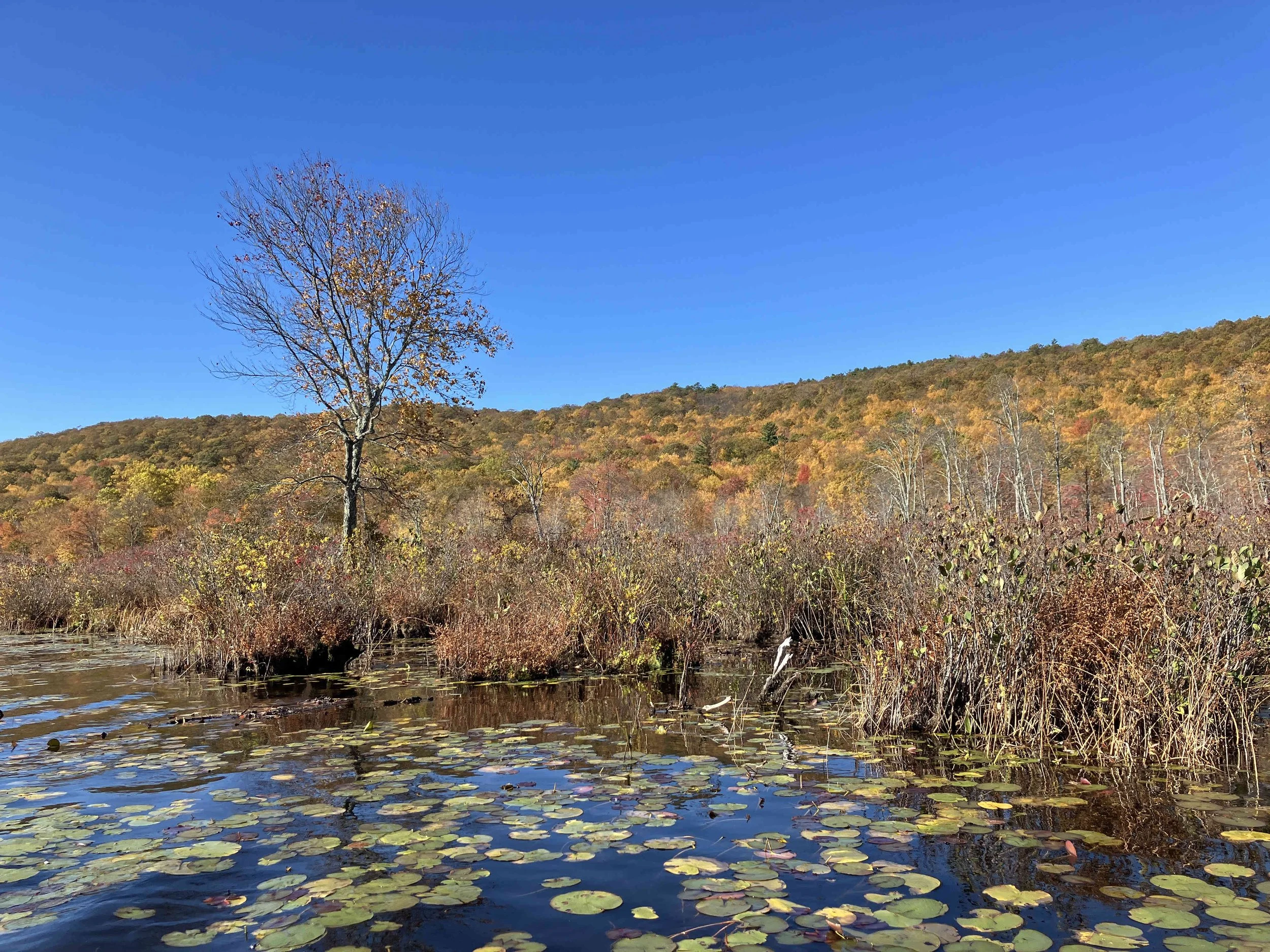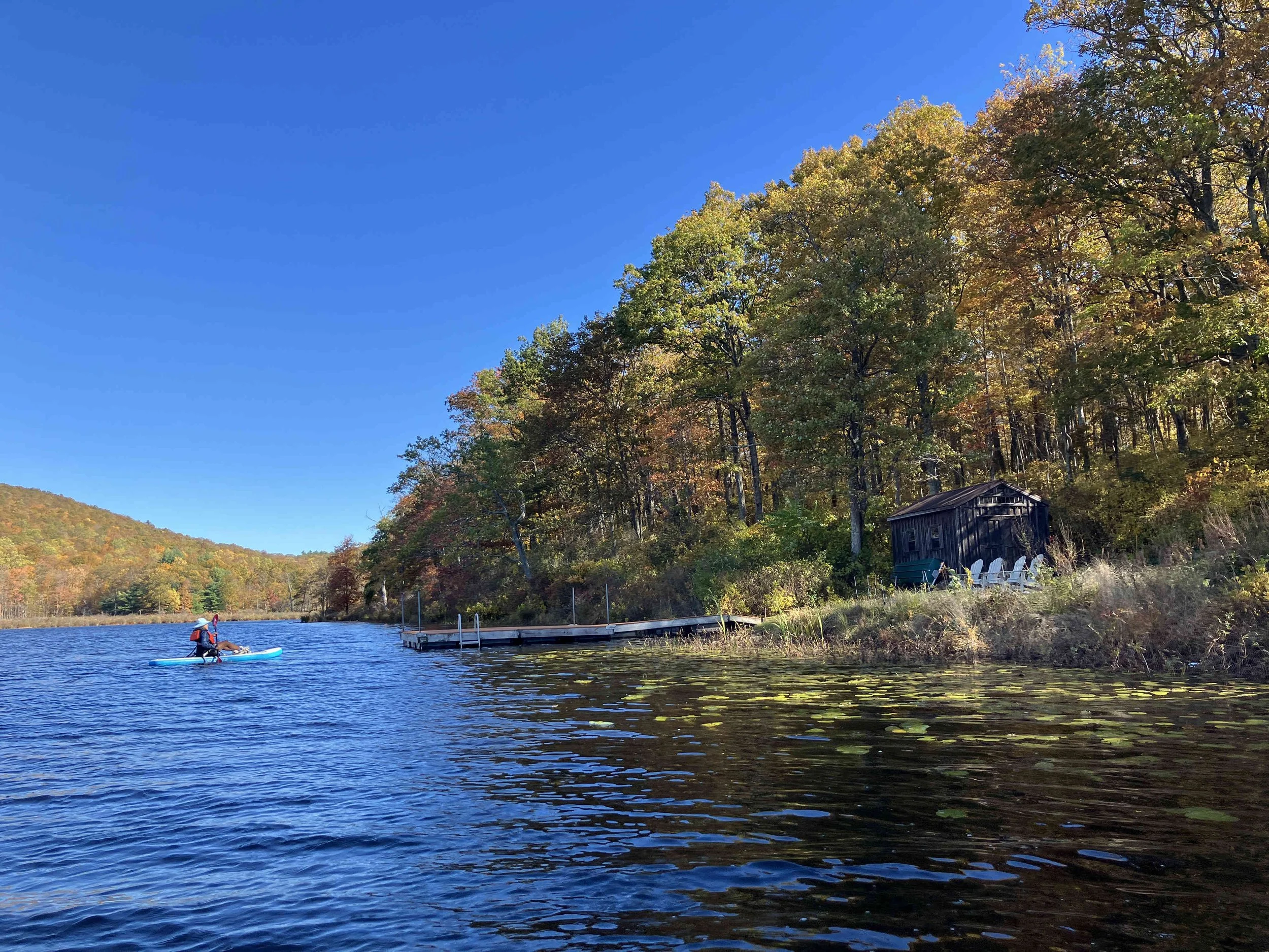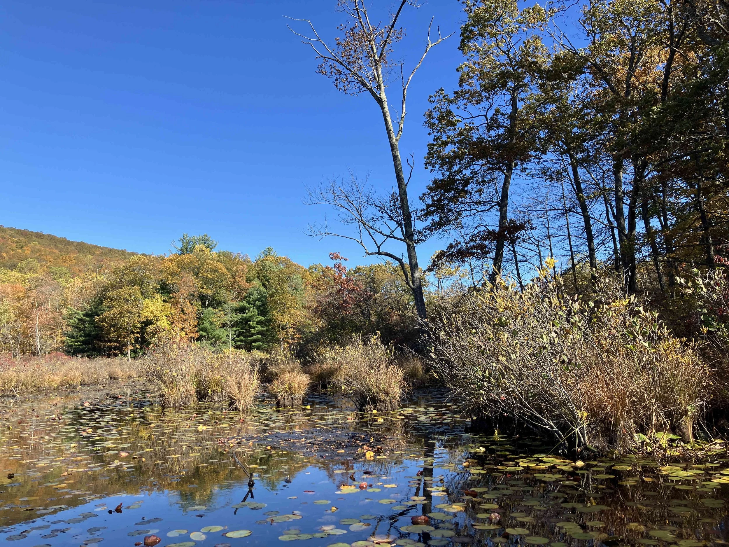Quick Pond (36 acres) is in Stillwater Township, Sussex County. It is in the Trout Brook Wildlife Management Area. It is a natural lake, with a large swamp to the west, and a forested hill to the east. The narrow dirt access road (to a former summer camp) is at the south end of the lake. It is pretty.