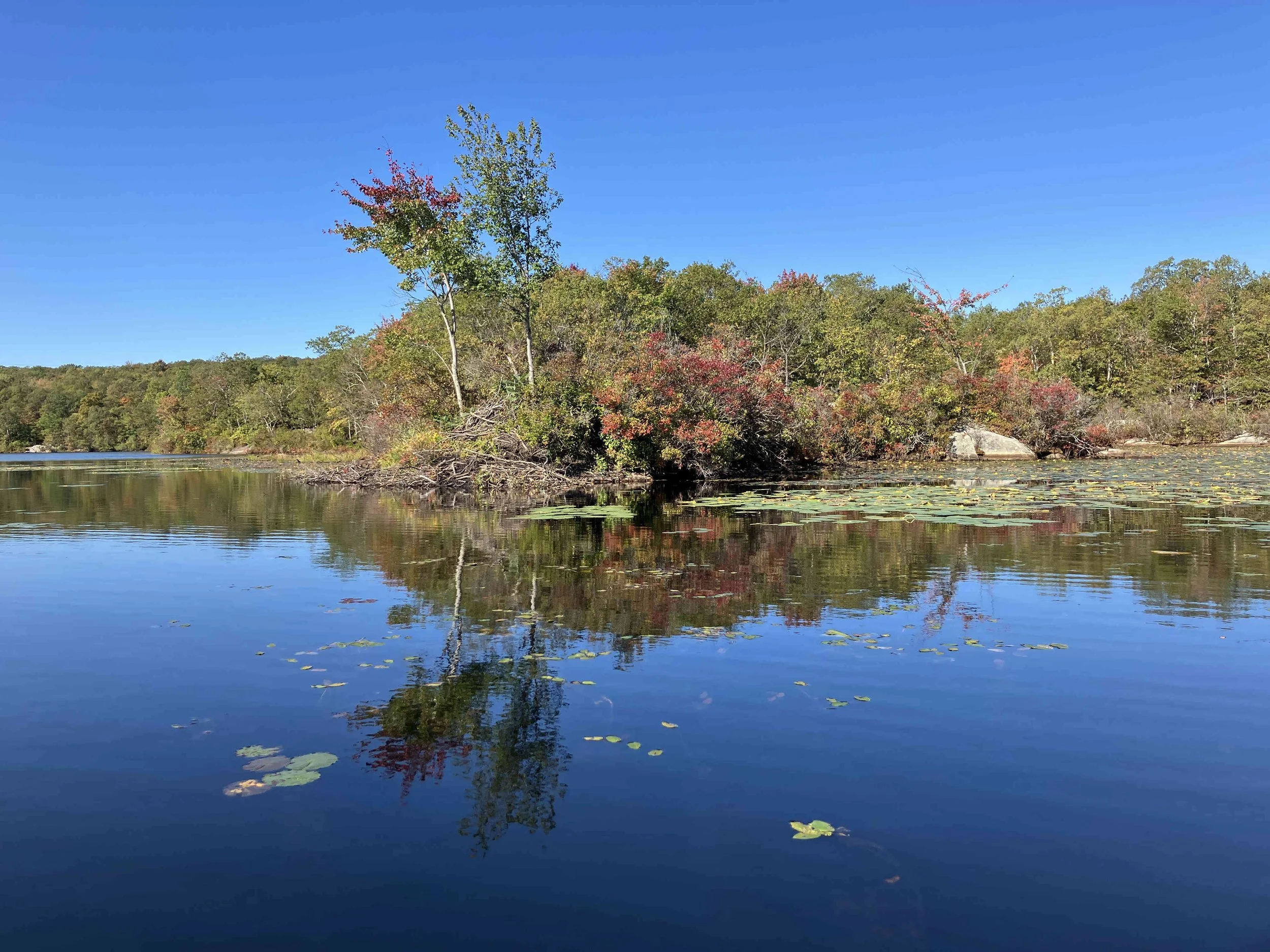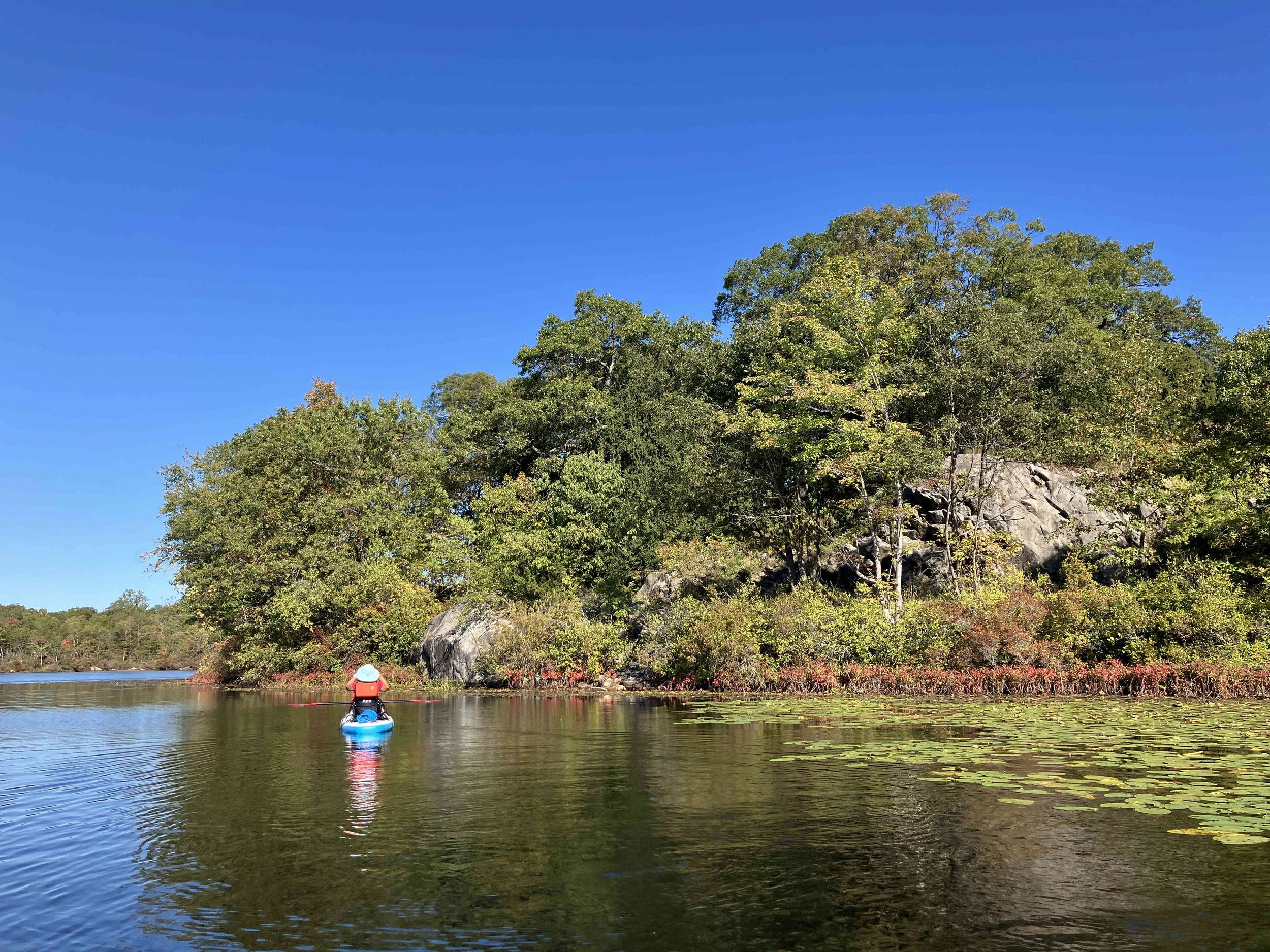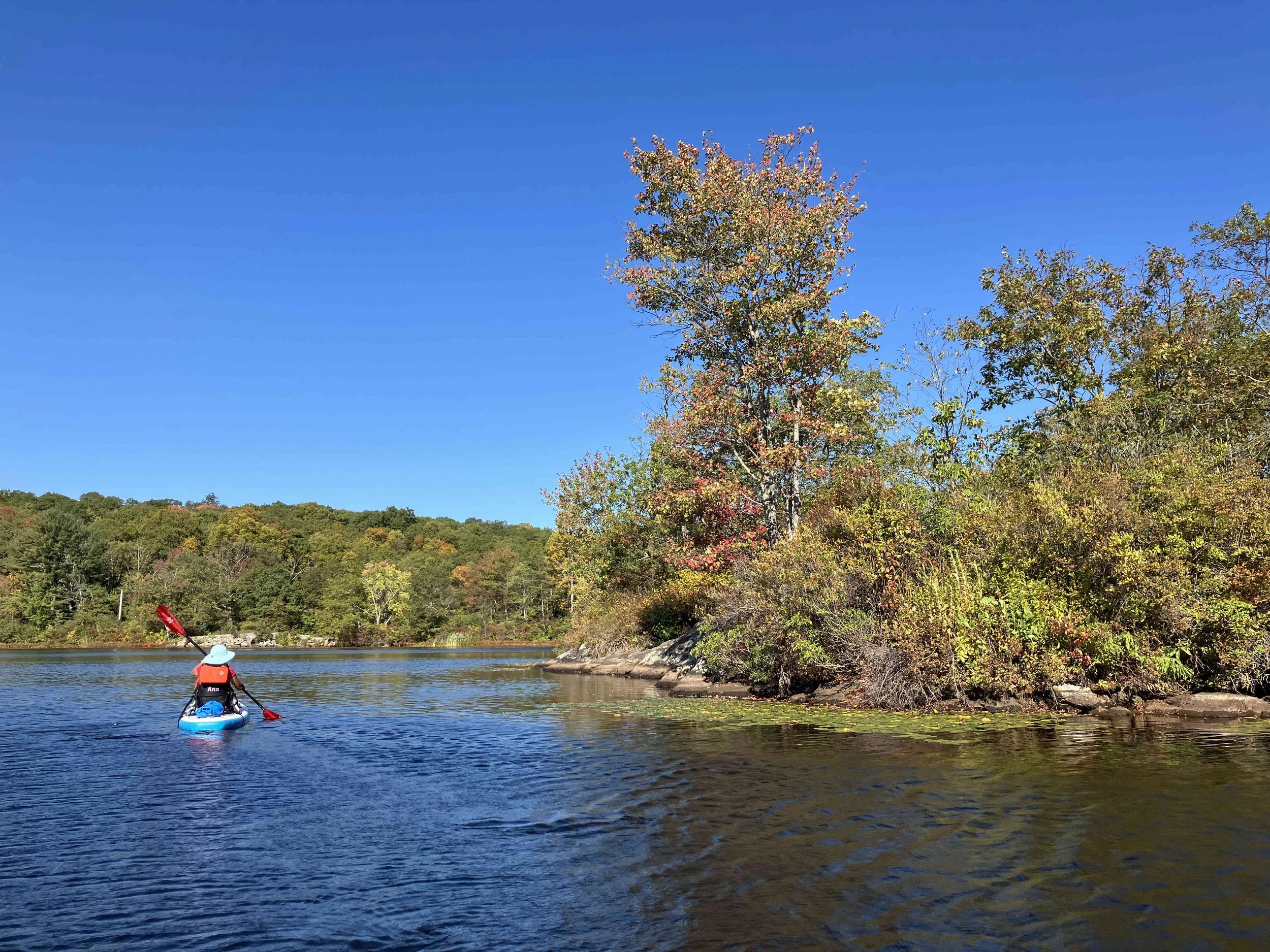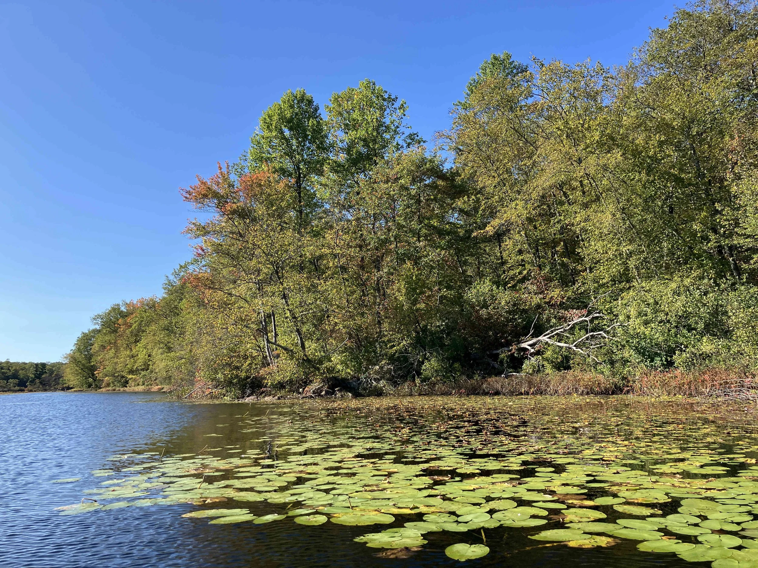 There are many launch sites. The most convenient is next to the dam. In late summer, the southern third of the lake is an impenetrable mess of waterlilies.