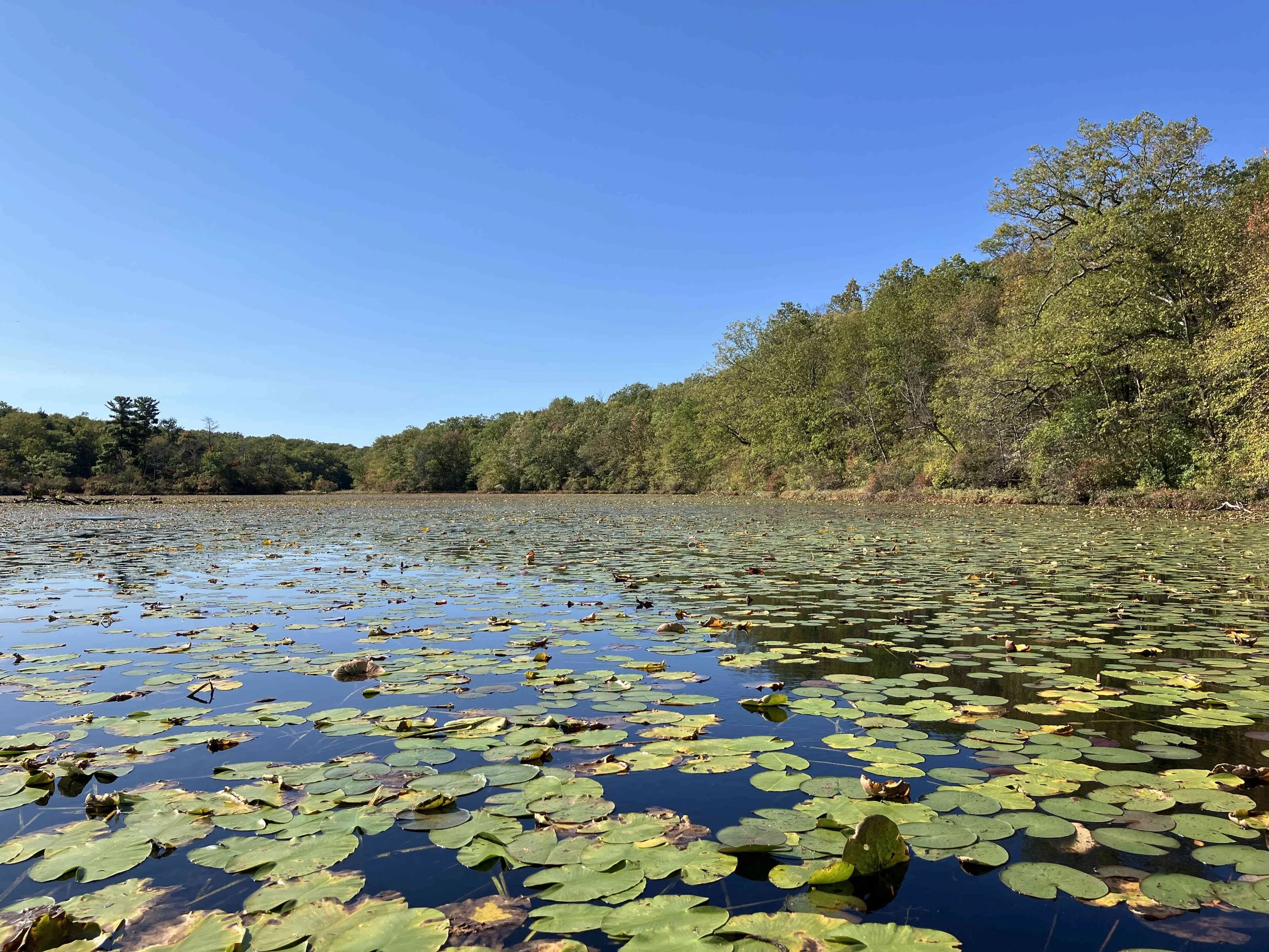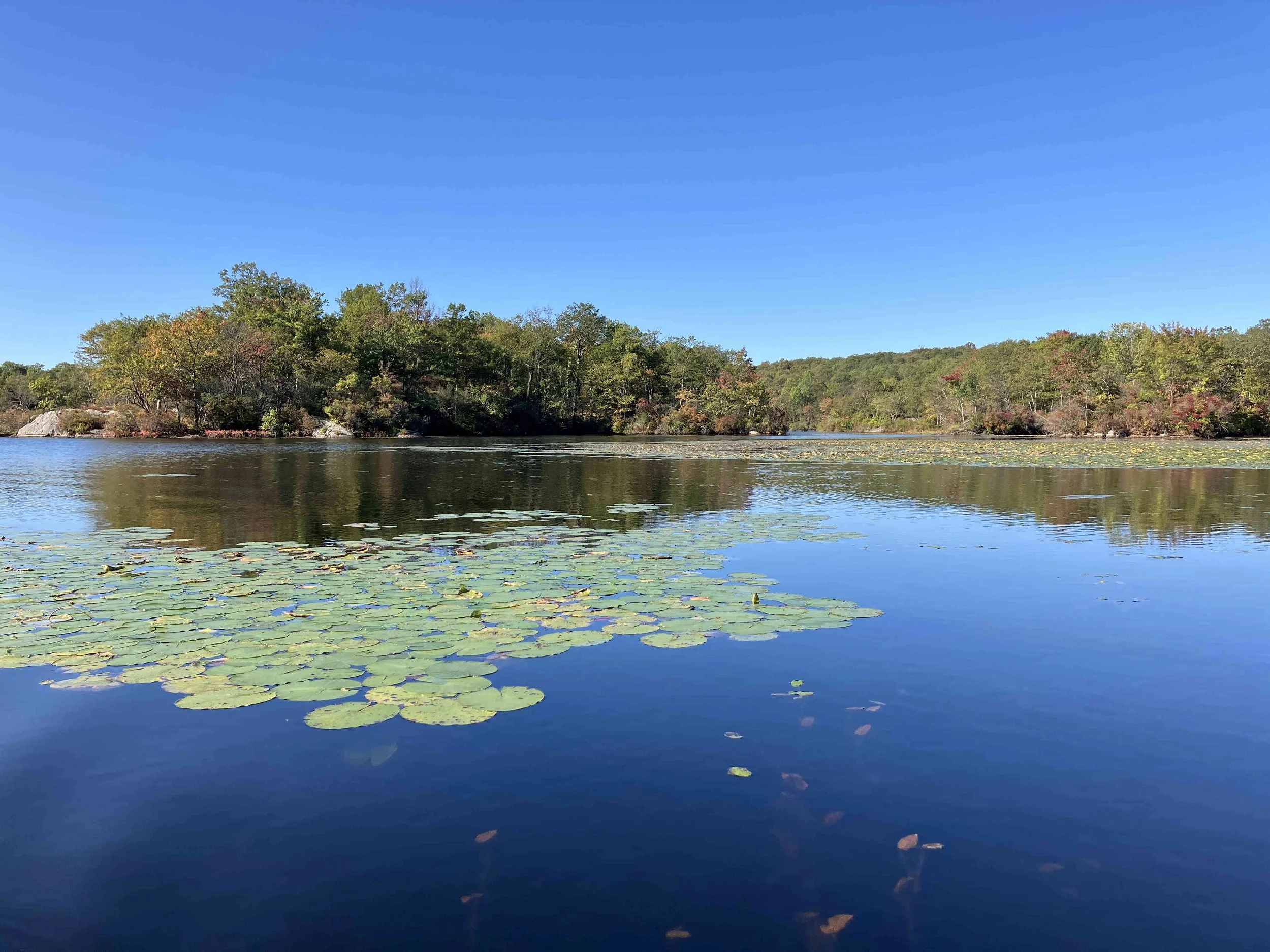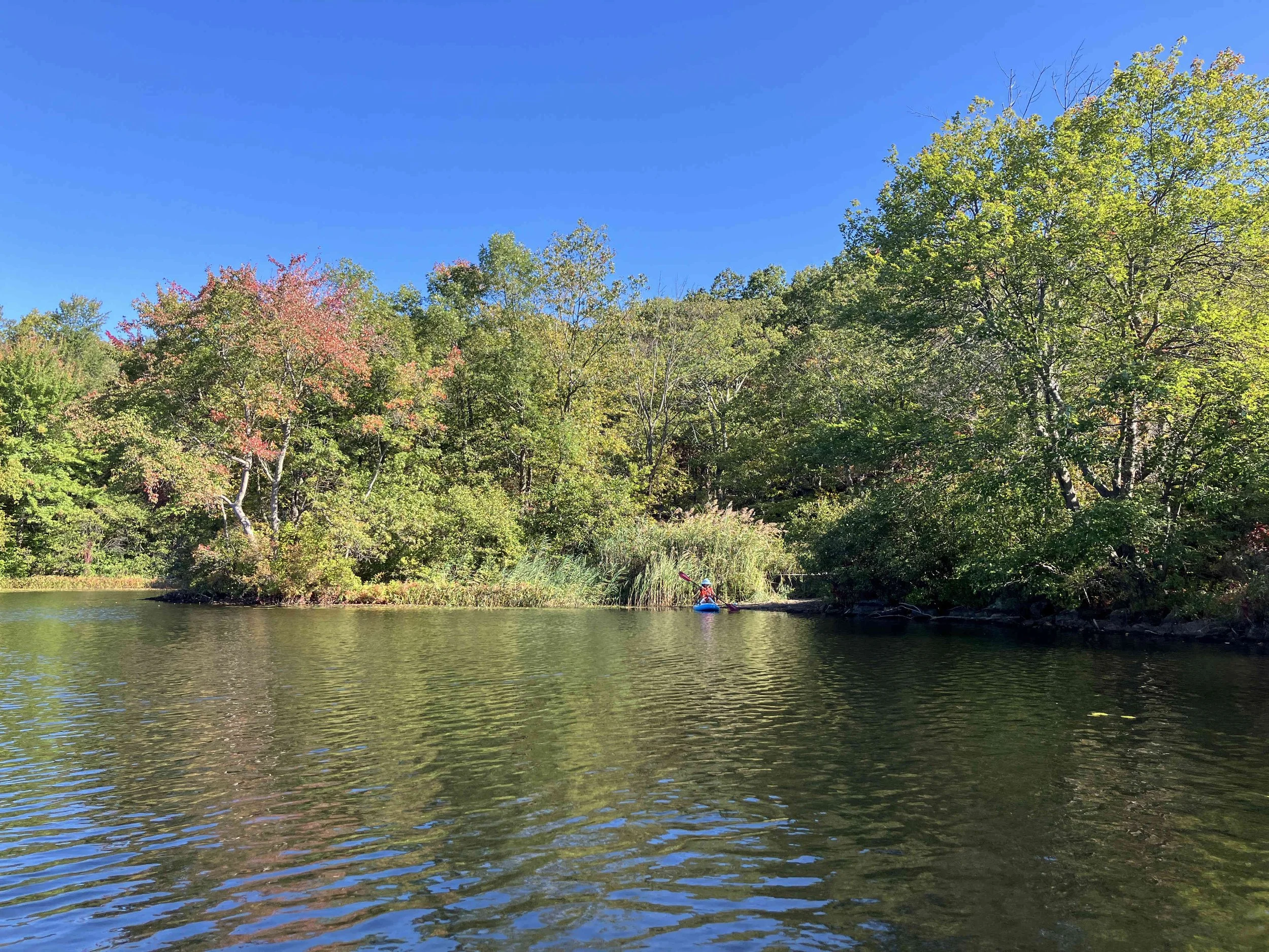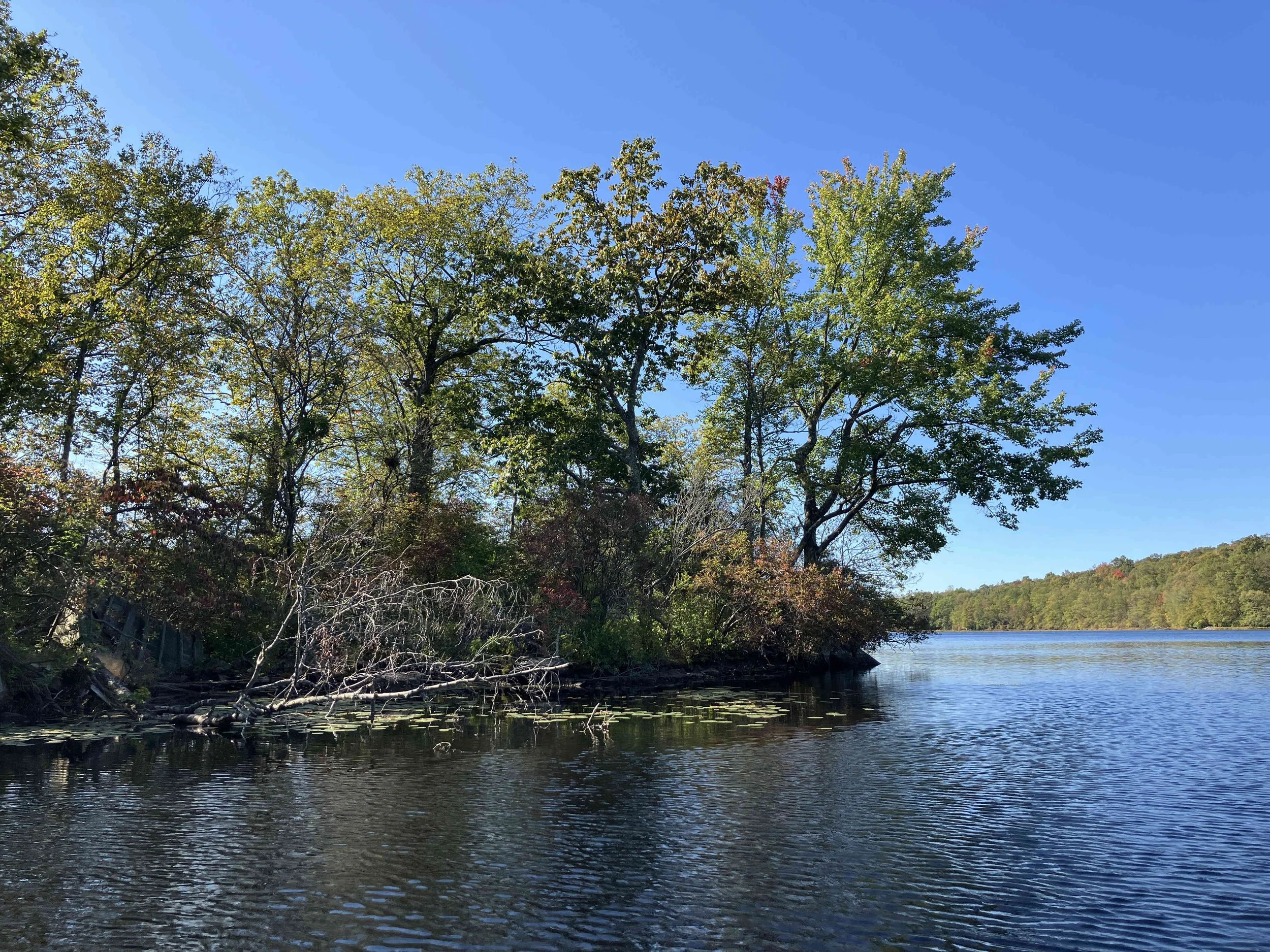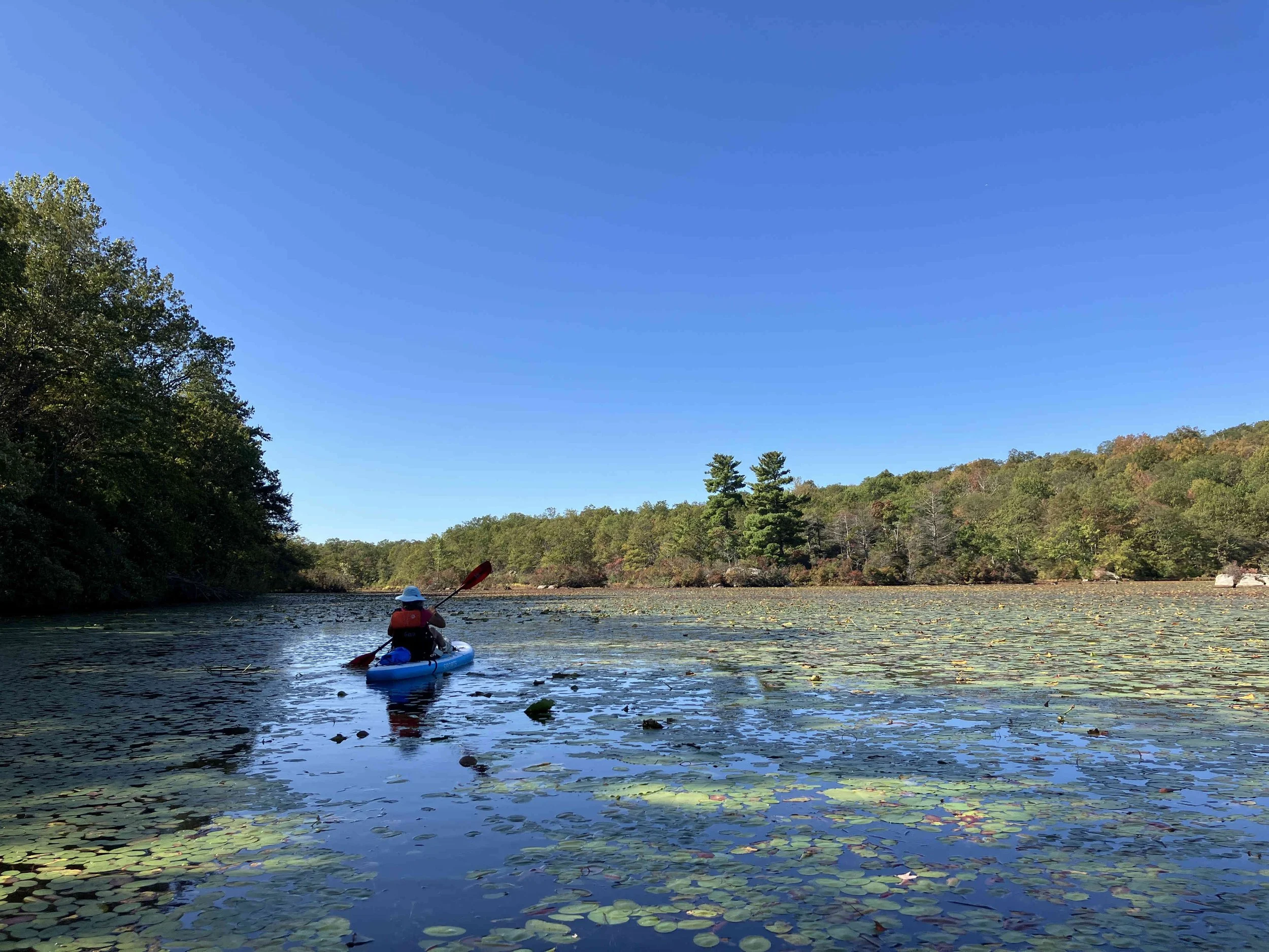 There are many launch sites. The most convenient is next to the dam. In late summer, the southern third of the lake is an impenetrable mess of waterlilies.