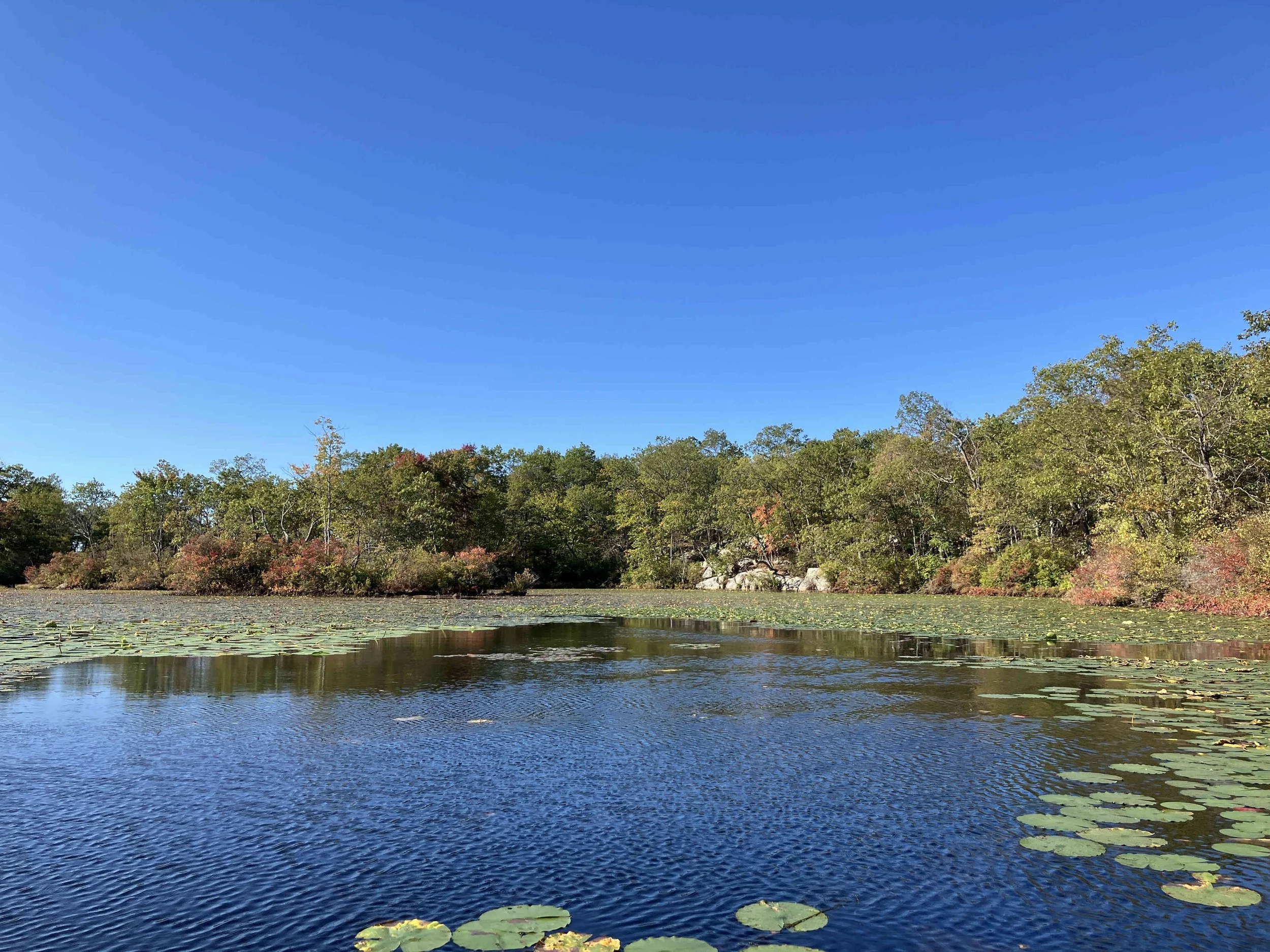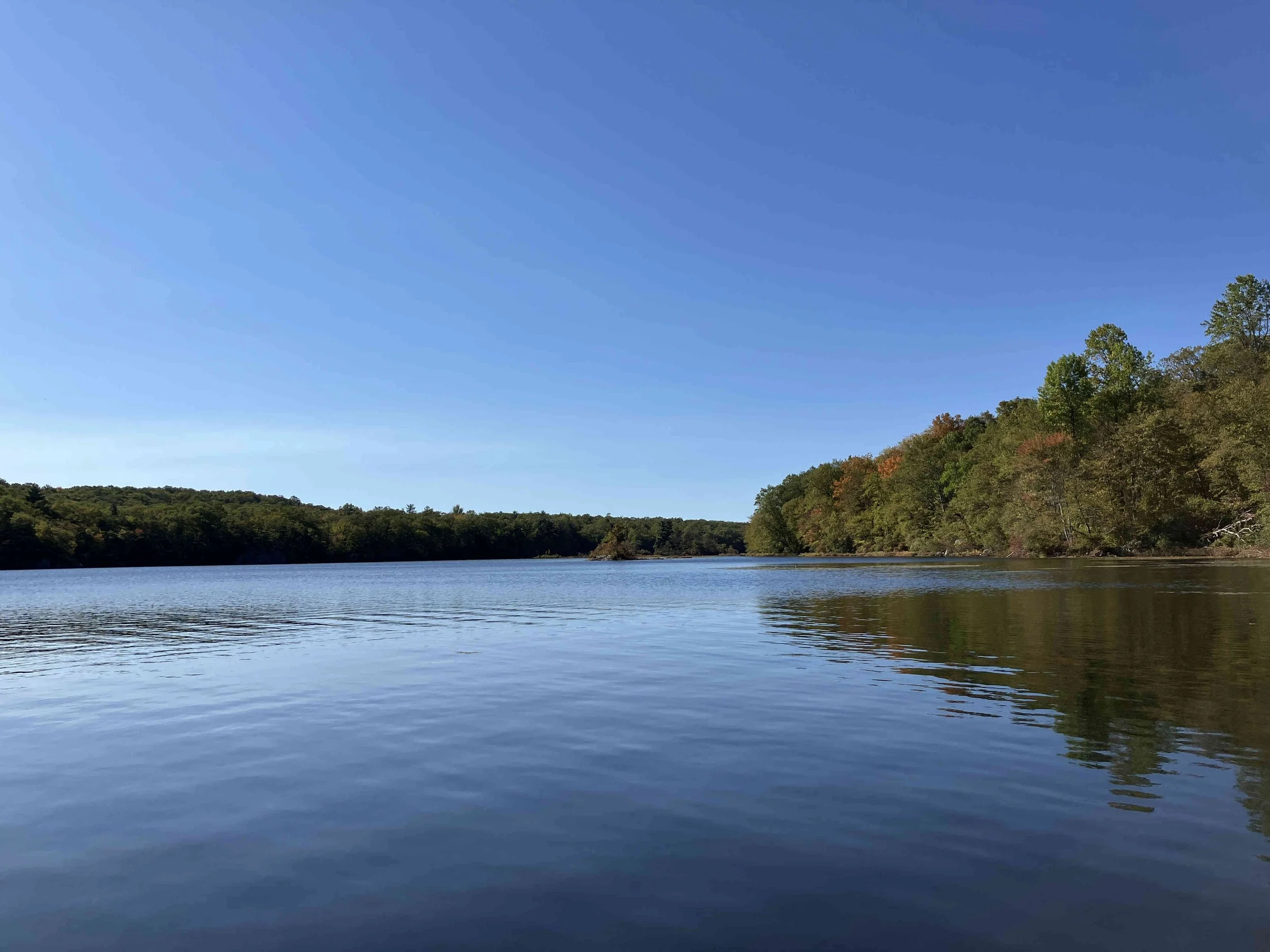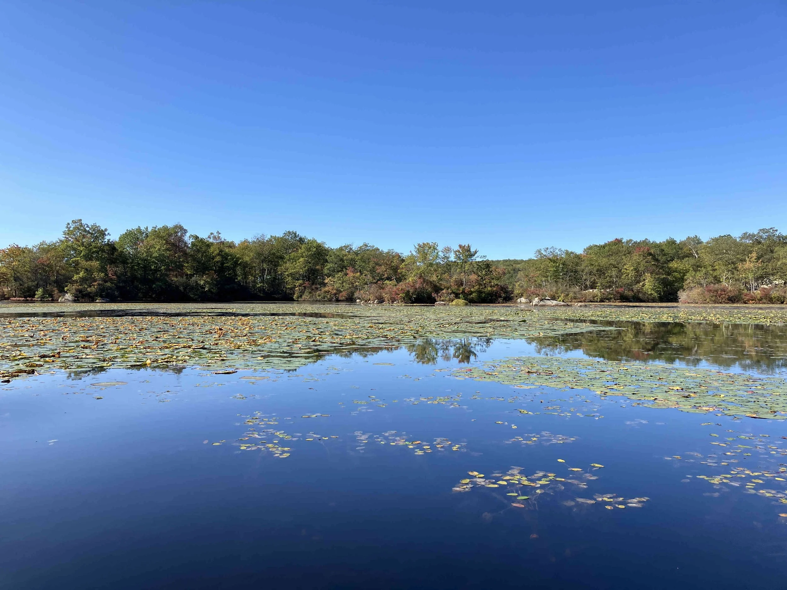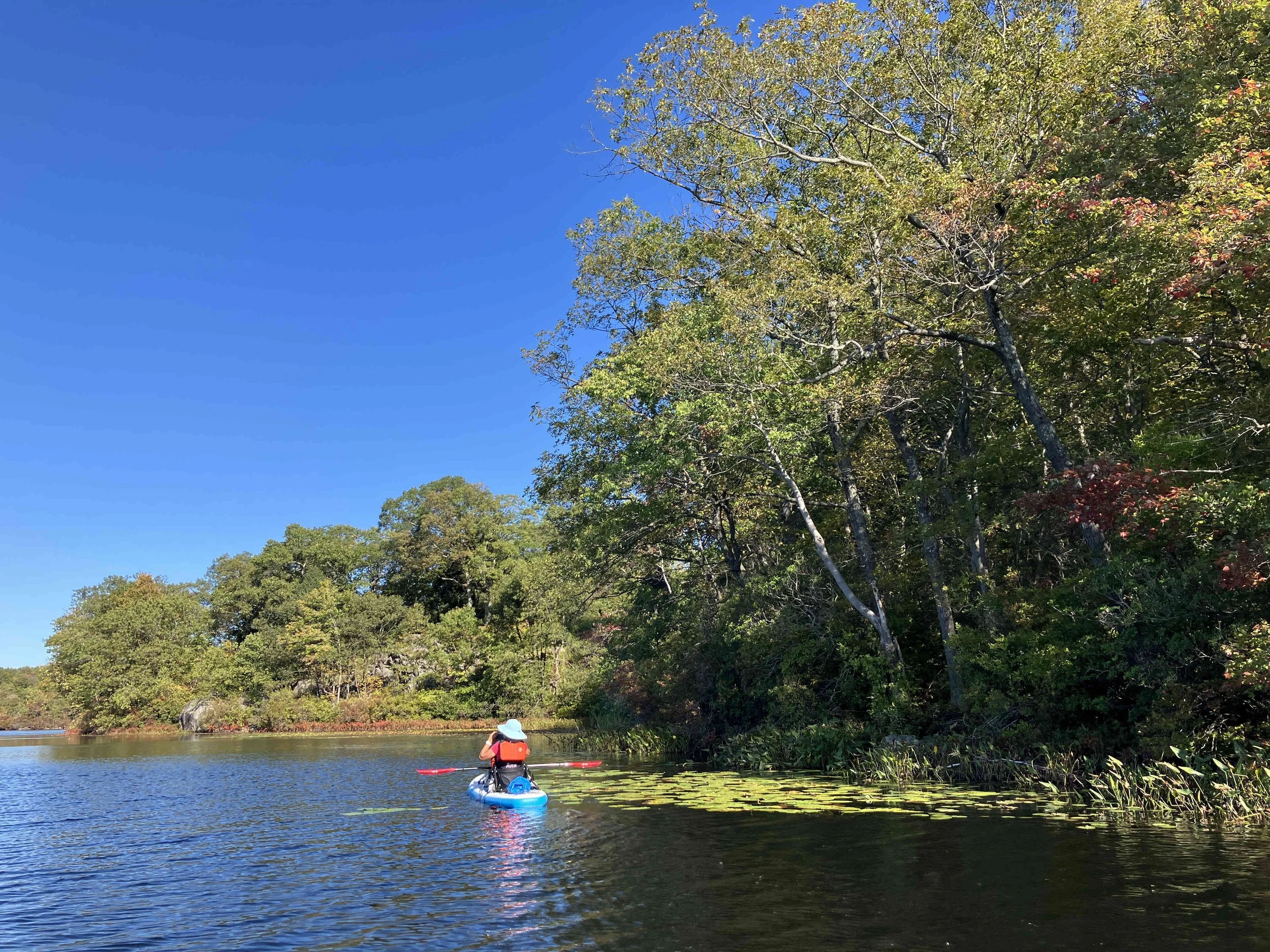 There are many launch sites. The most convenient is next to the dam. In late summer, the southern third of the lake is an impenetrable mess of waterlilies.