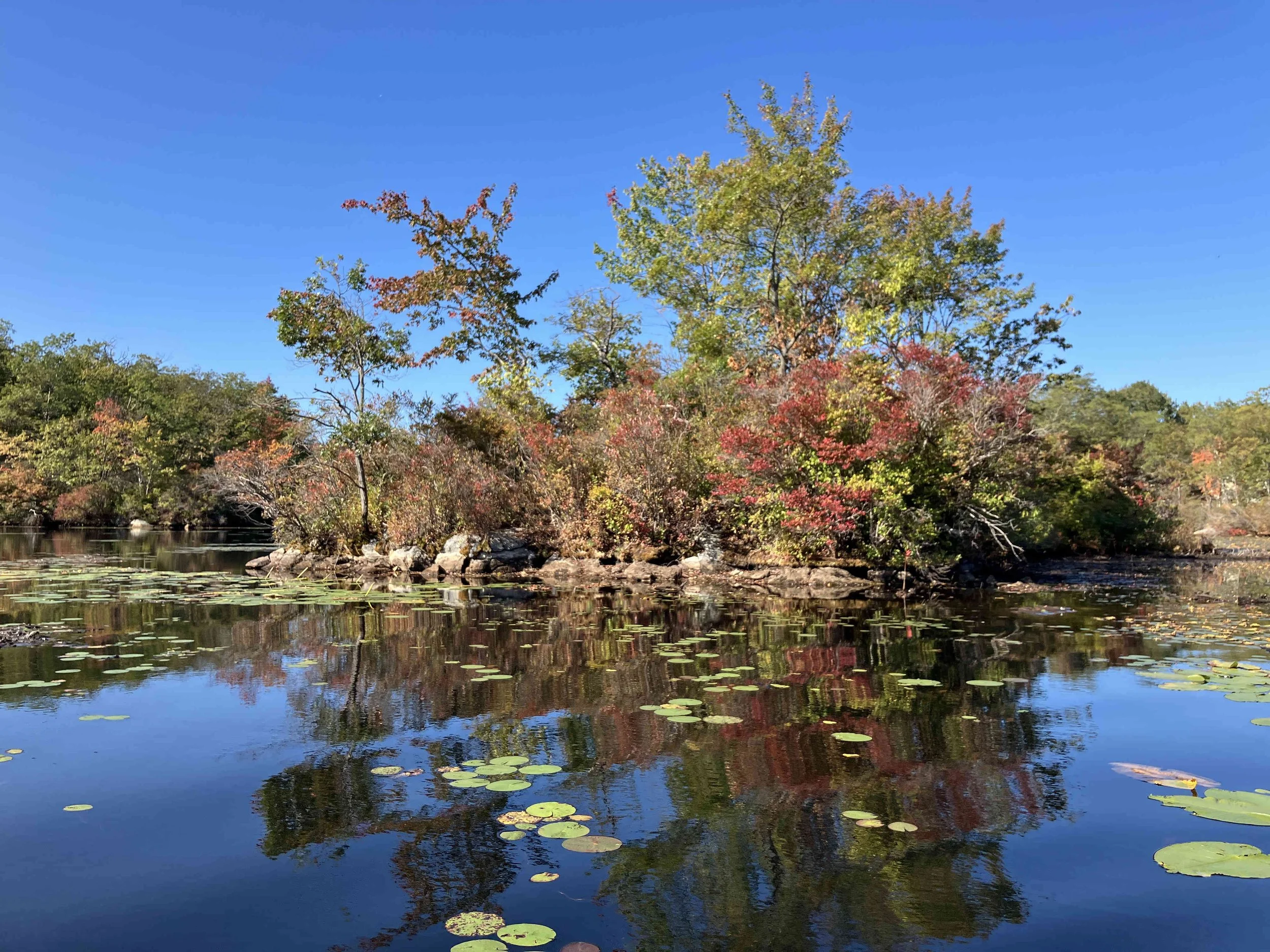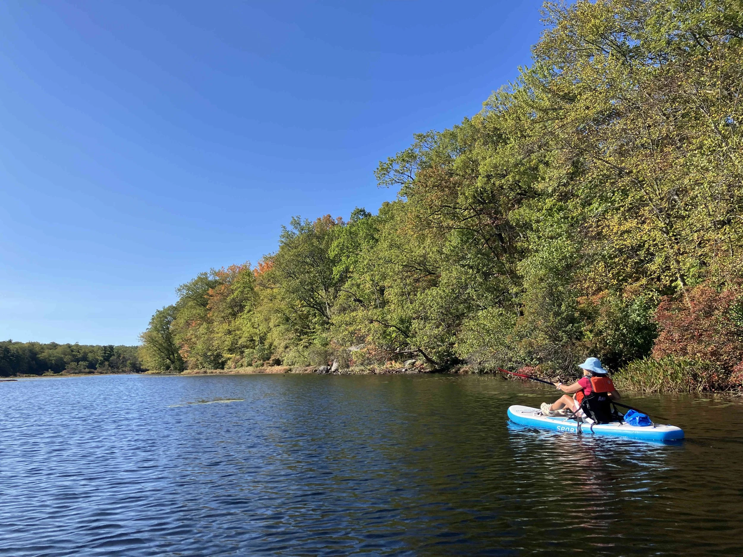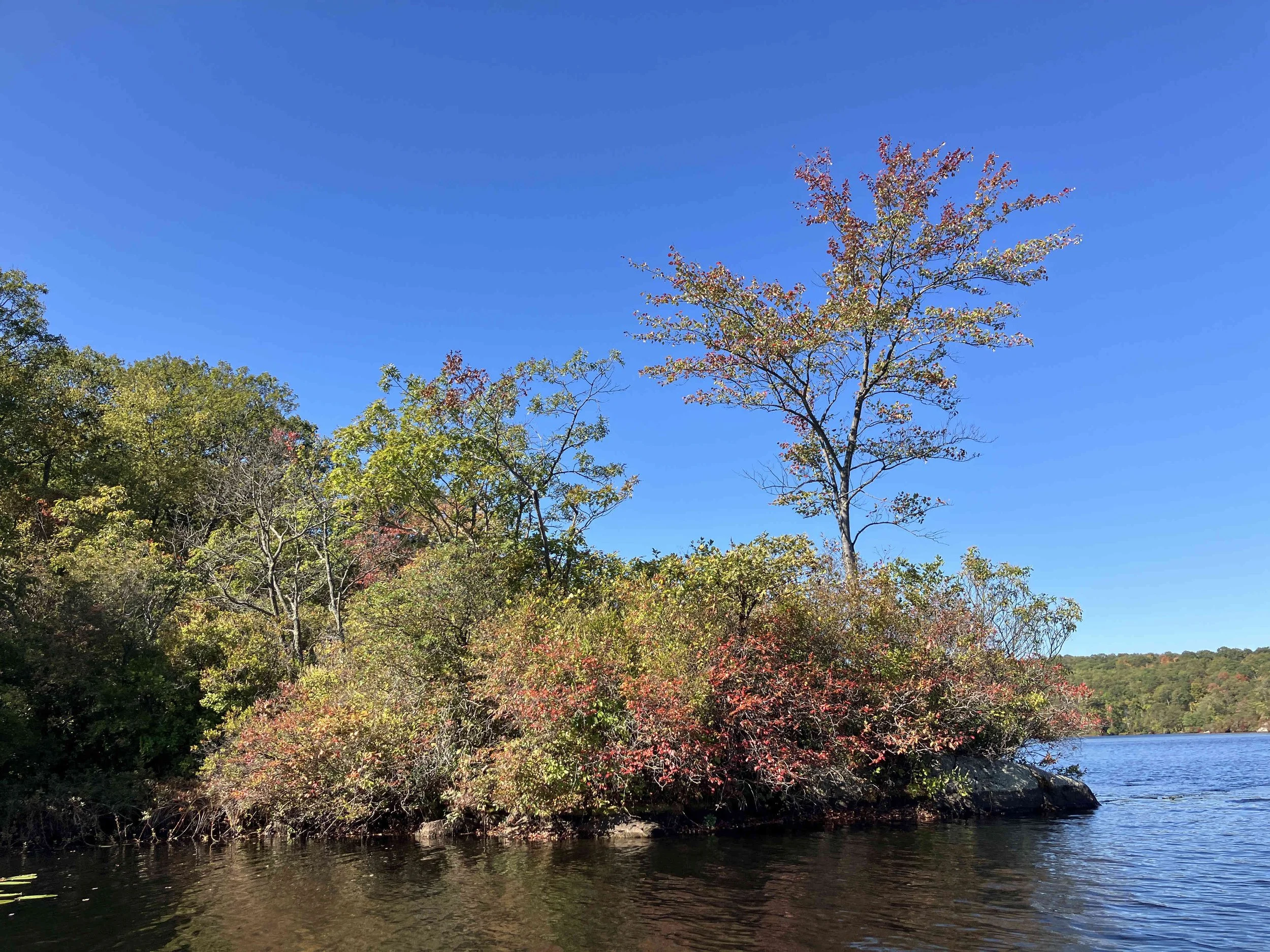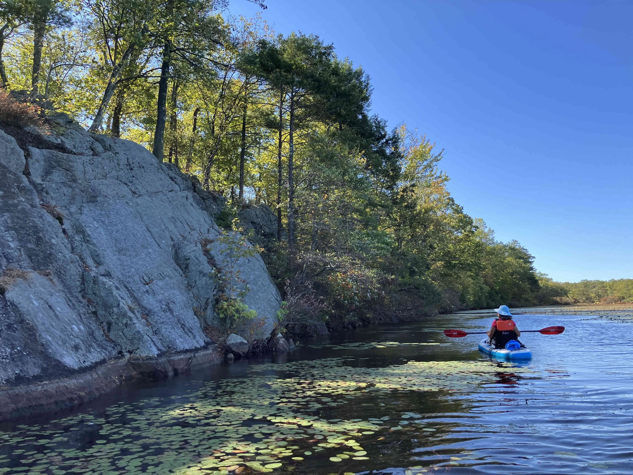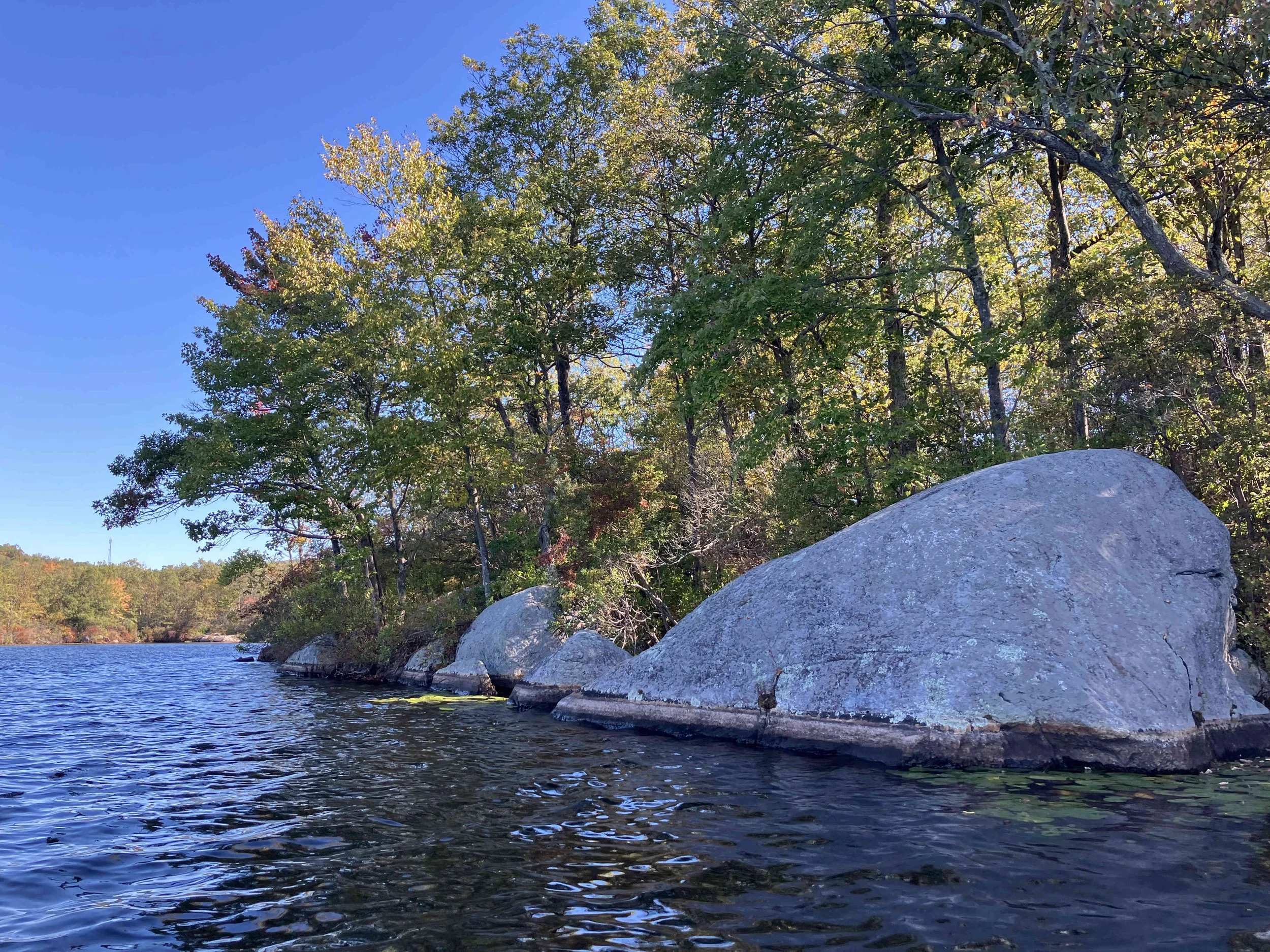 There are many launch sites. The most convenient is next to the dam. In late summer, the southern third of the lake is an impenetrable mess of waterlilies.