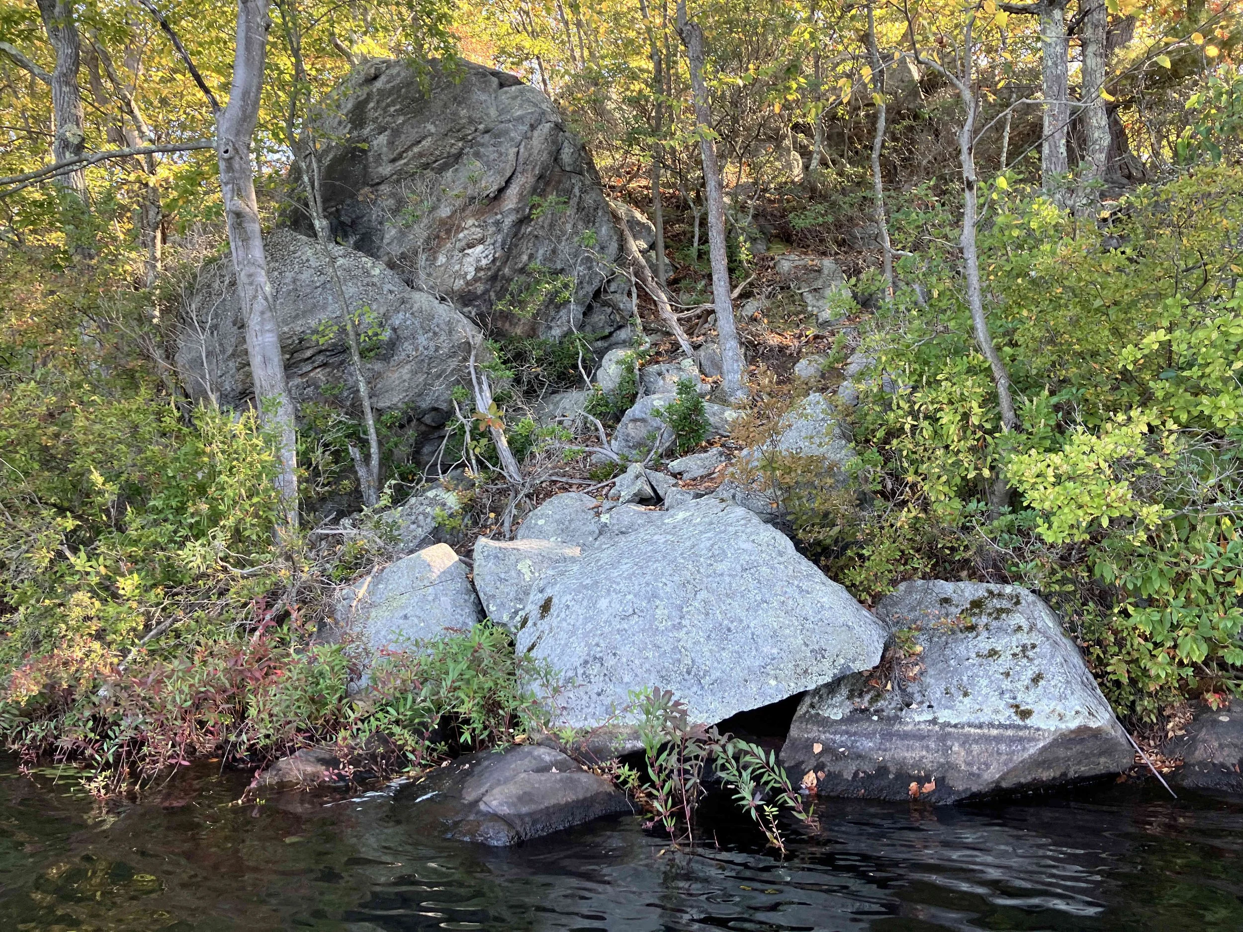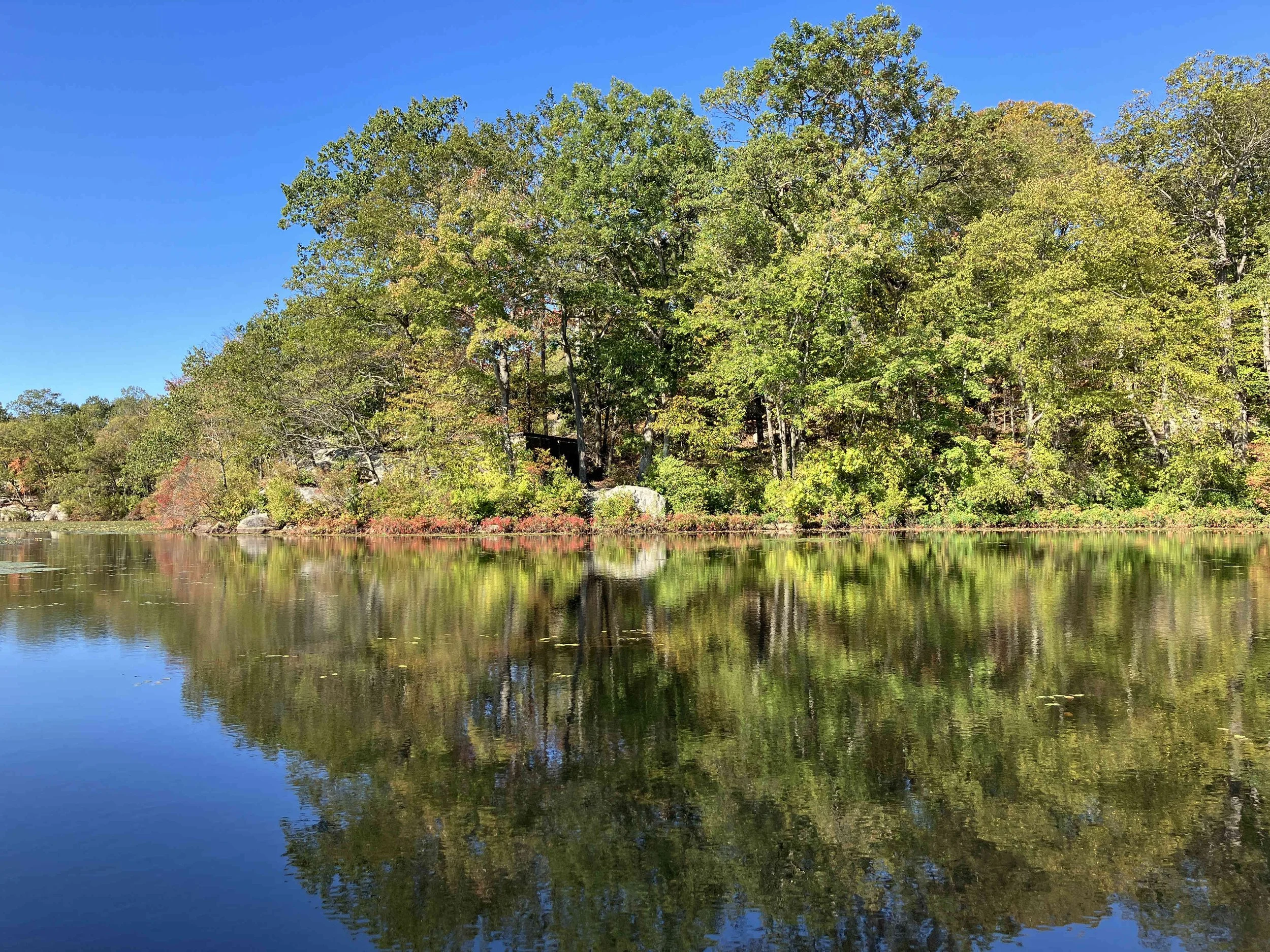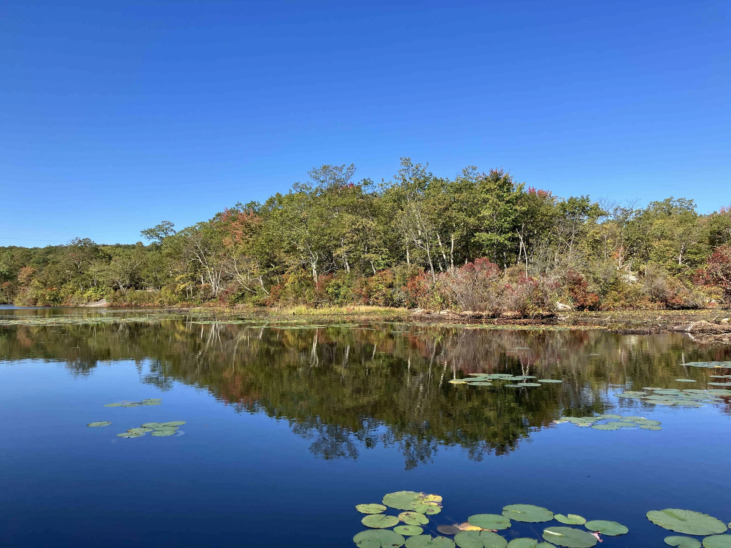 Ramapo Lake (120 acres) is in Wanaque, Morris County. It is in Ramapo Mountain State Forest. To access the lake one has to park on Skyline Drive, then hike up the mountain for twenty minutes. The effort is worth it. The lake is sublime.