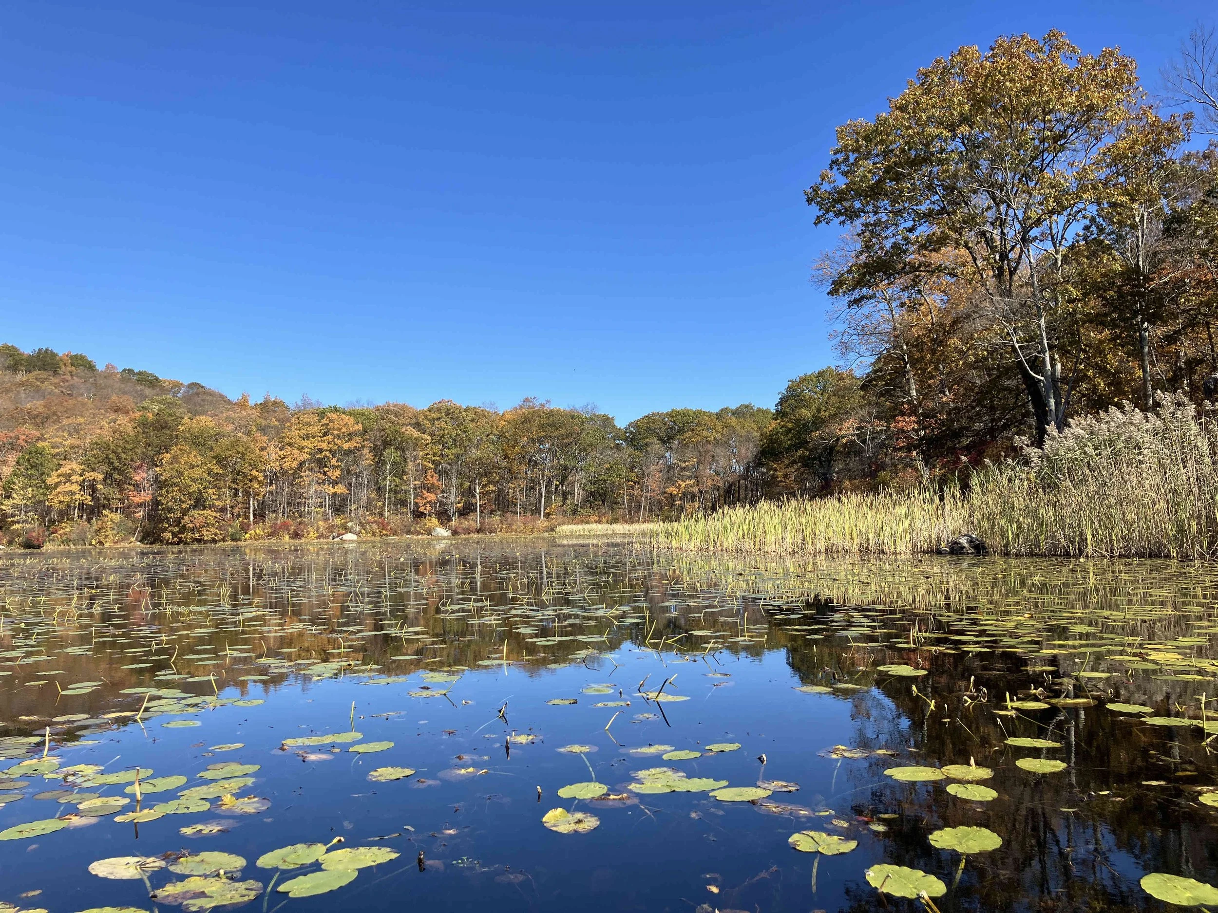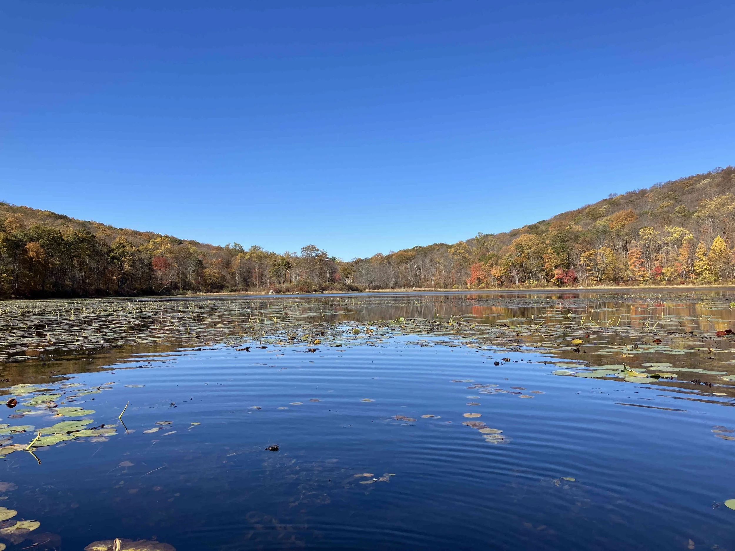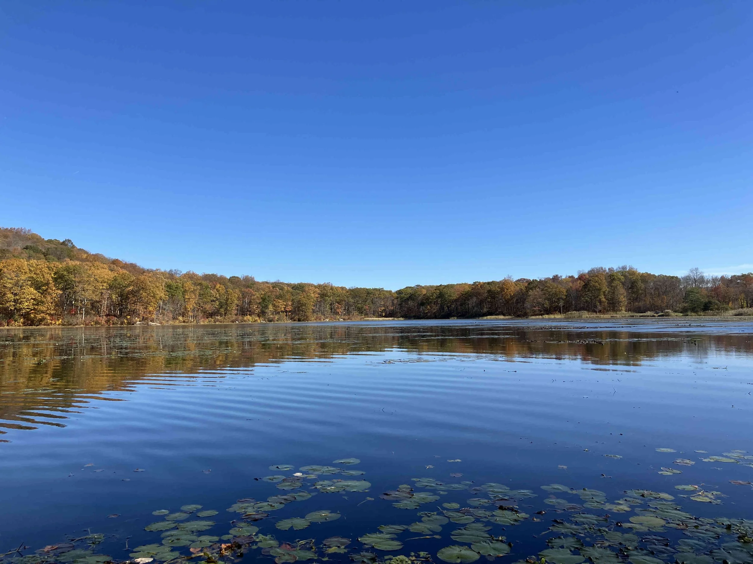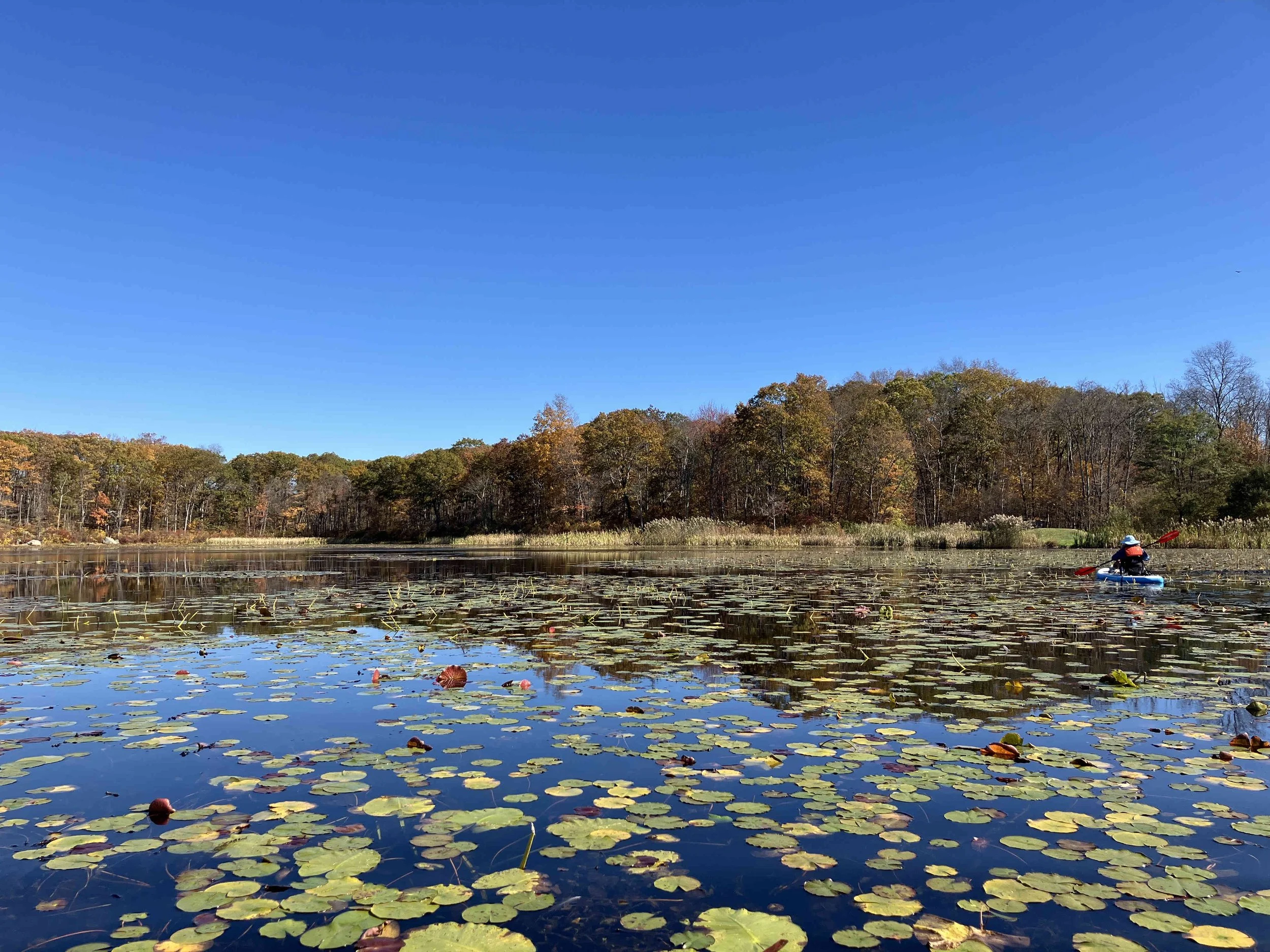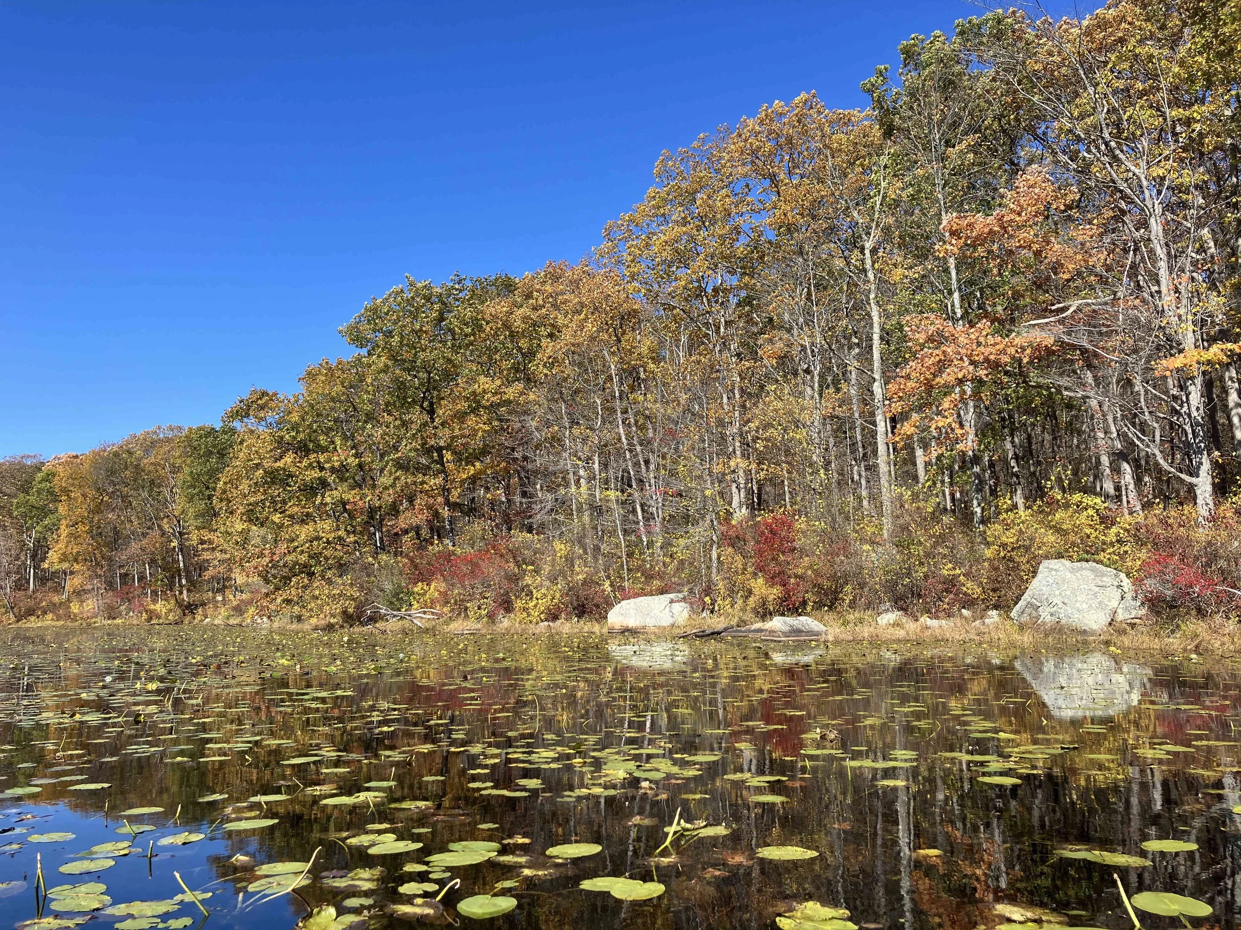 Ryker Lake (30 acres) is in Sparta Township, Sussex County. It is in the Sparta Mountain Wildlife Management Area. It is a shallow man-made lake with a launch site on the south end. When we visited in late October, it was easy to navigate. But it may be overgrown with weeds during the summer.
