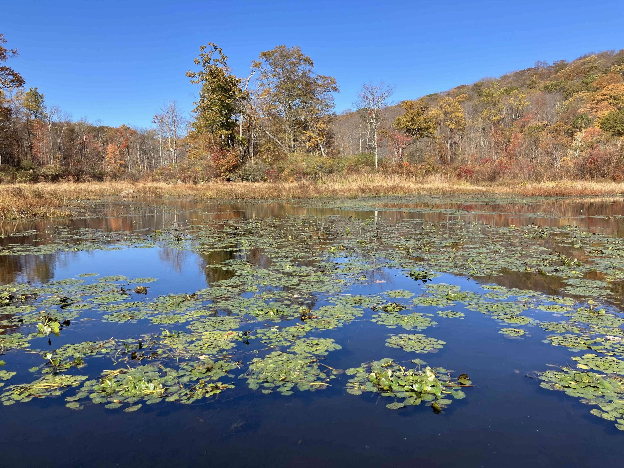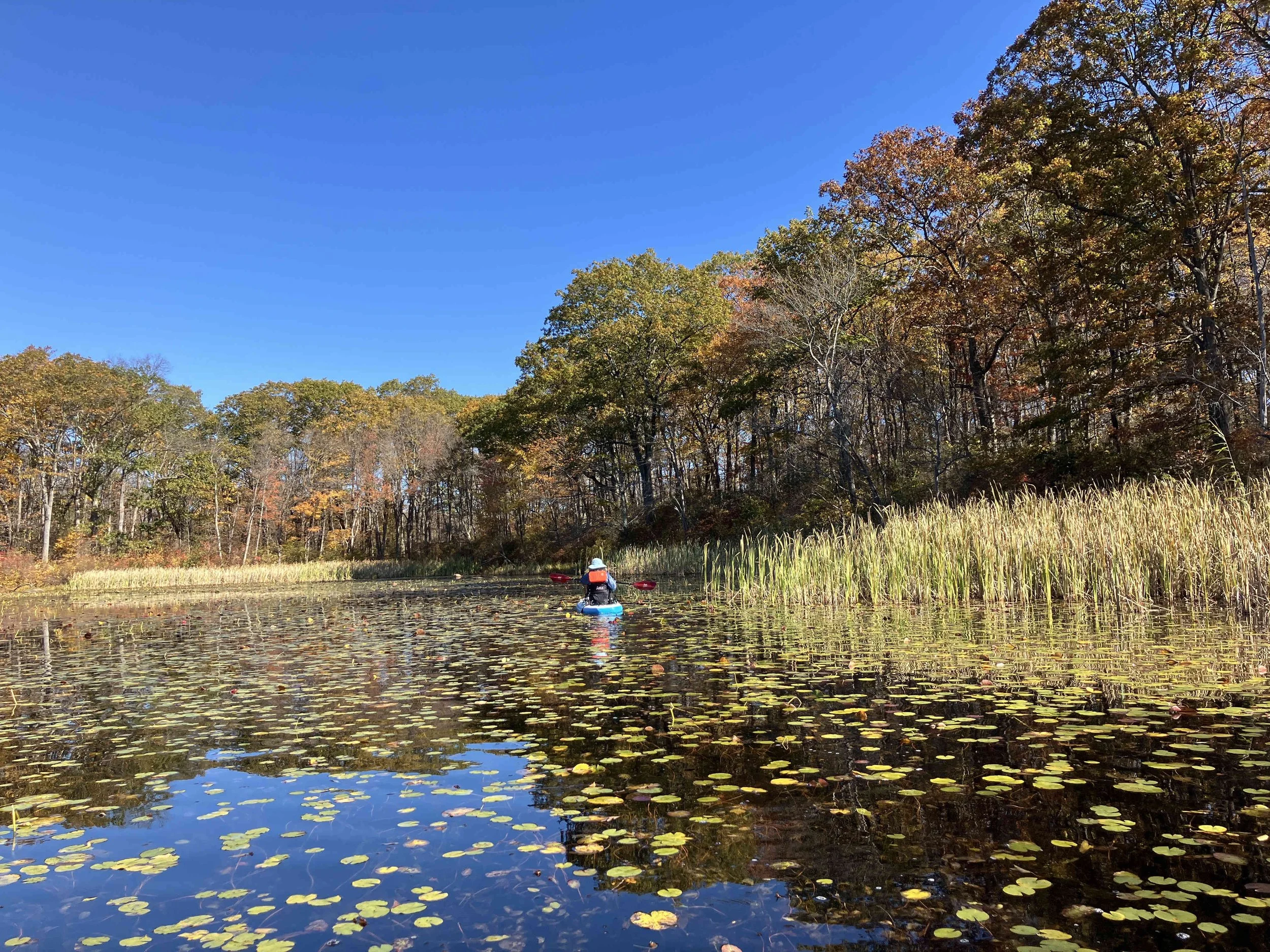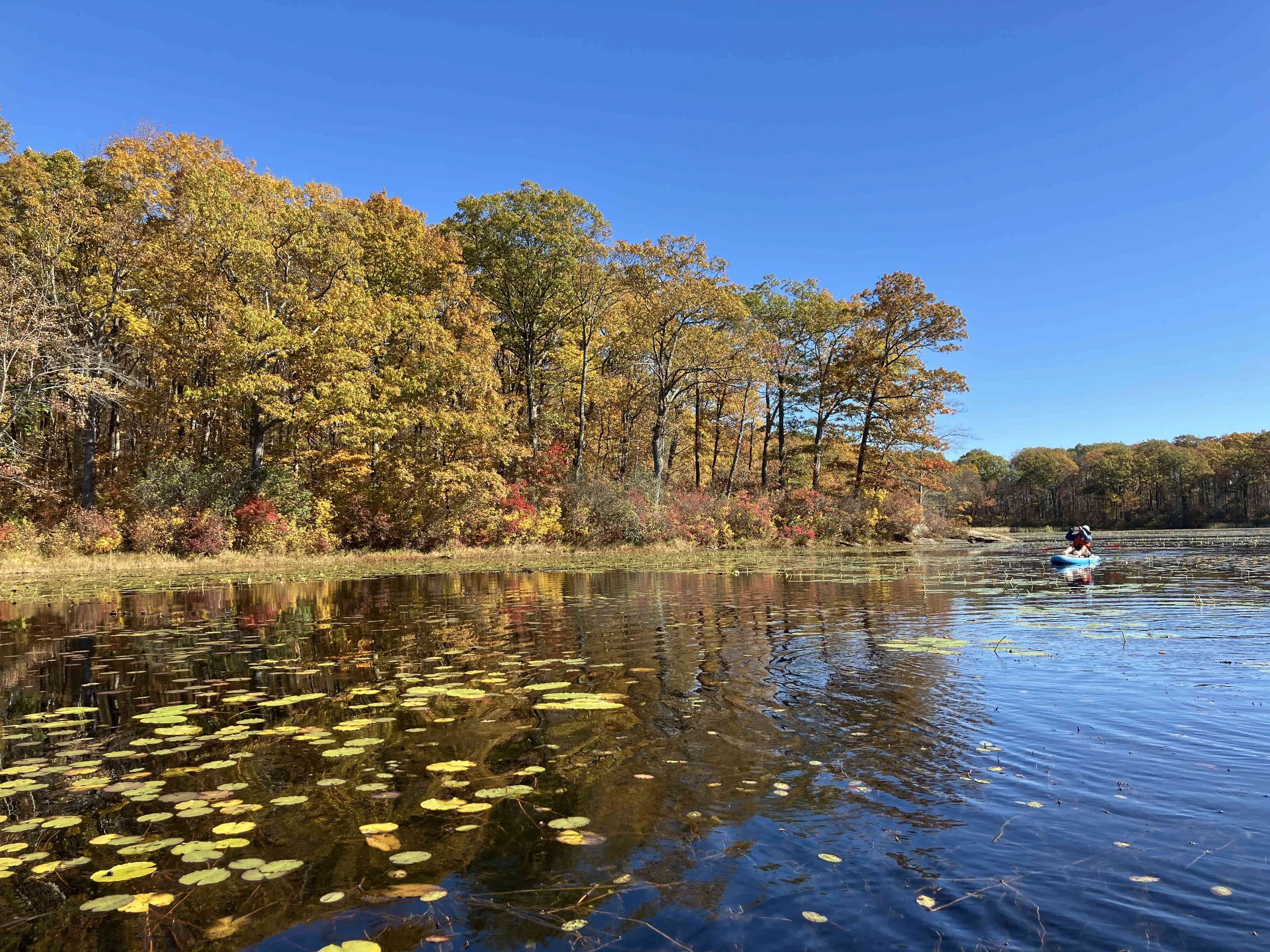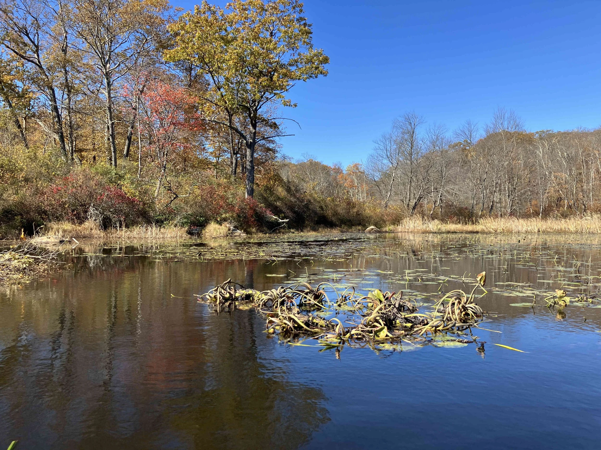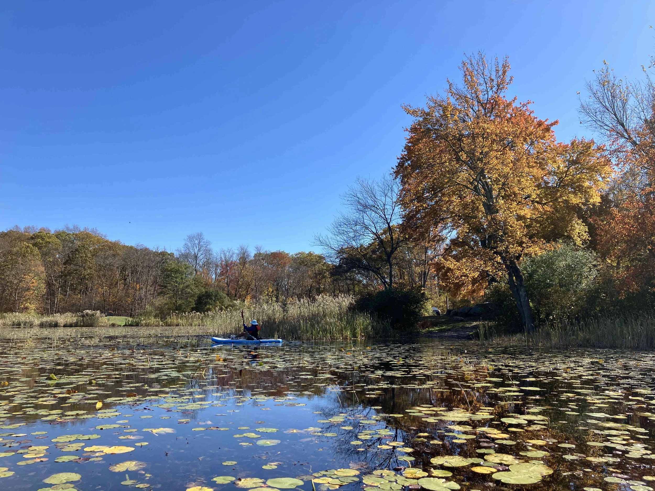 Ryker Lake (30 acres) is in Sparta Township, Sussex County. It is in the Sparta Mountain Wildlife Management Area. It is a shallow man-made lake with a launch site on the south end. When we visited in late October, it was easy to navigate. But it may be overgrown with weeds during the summer.