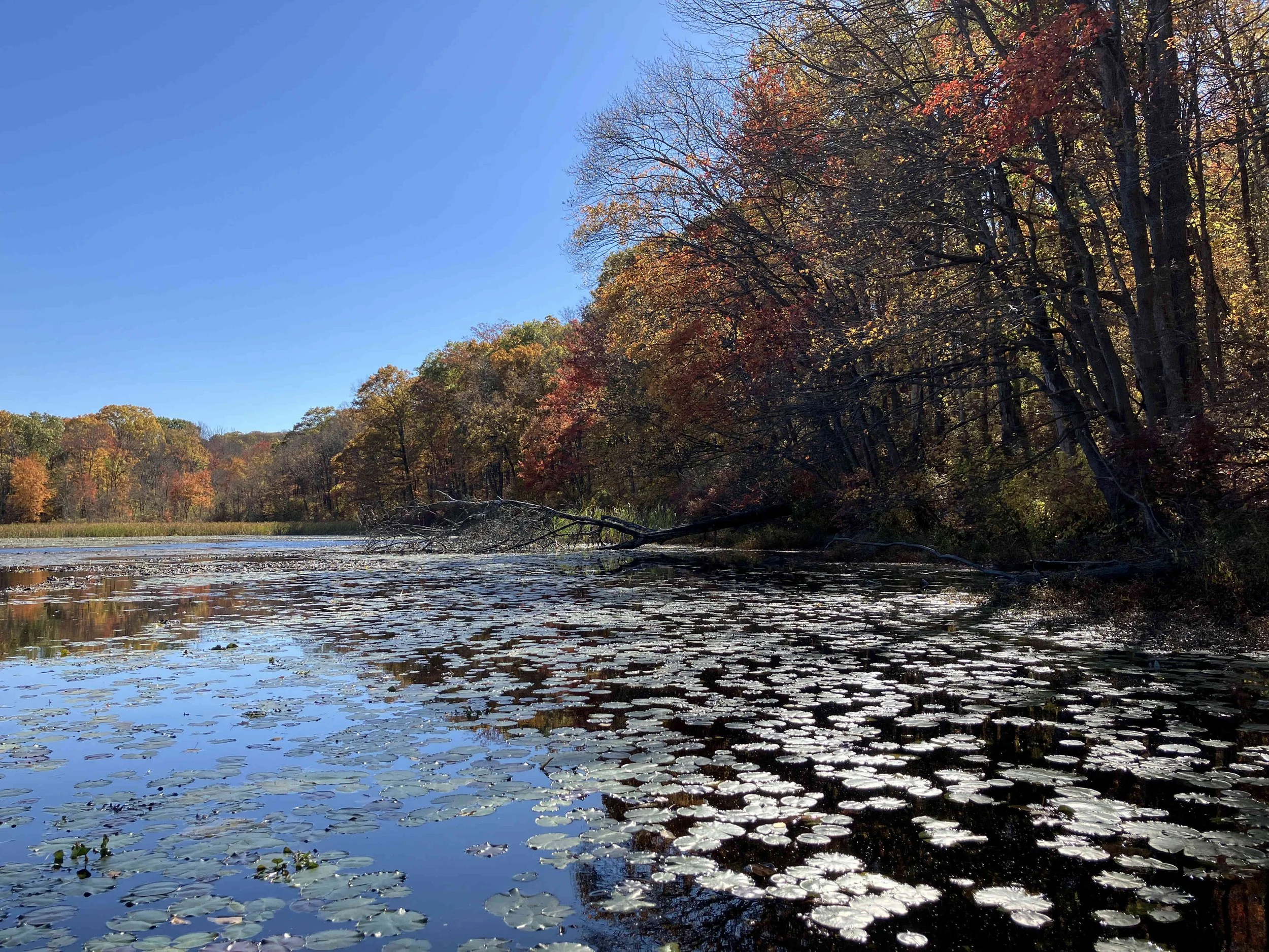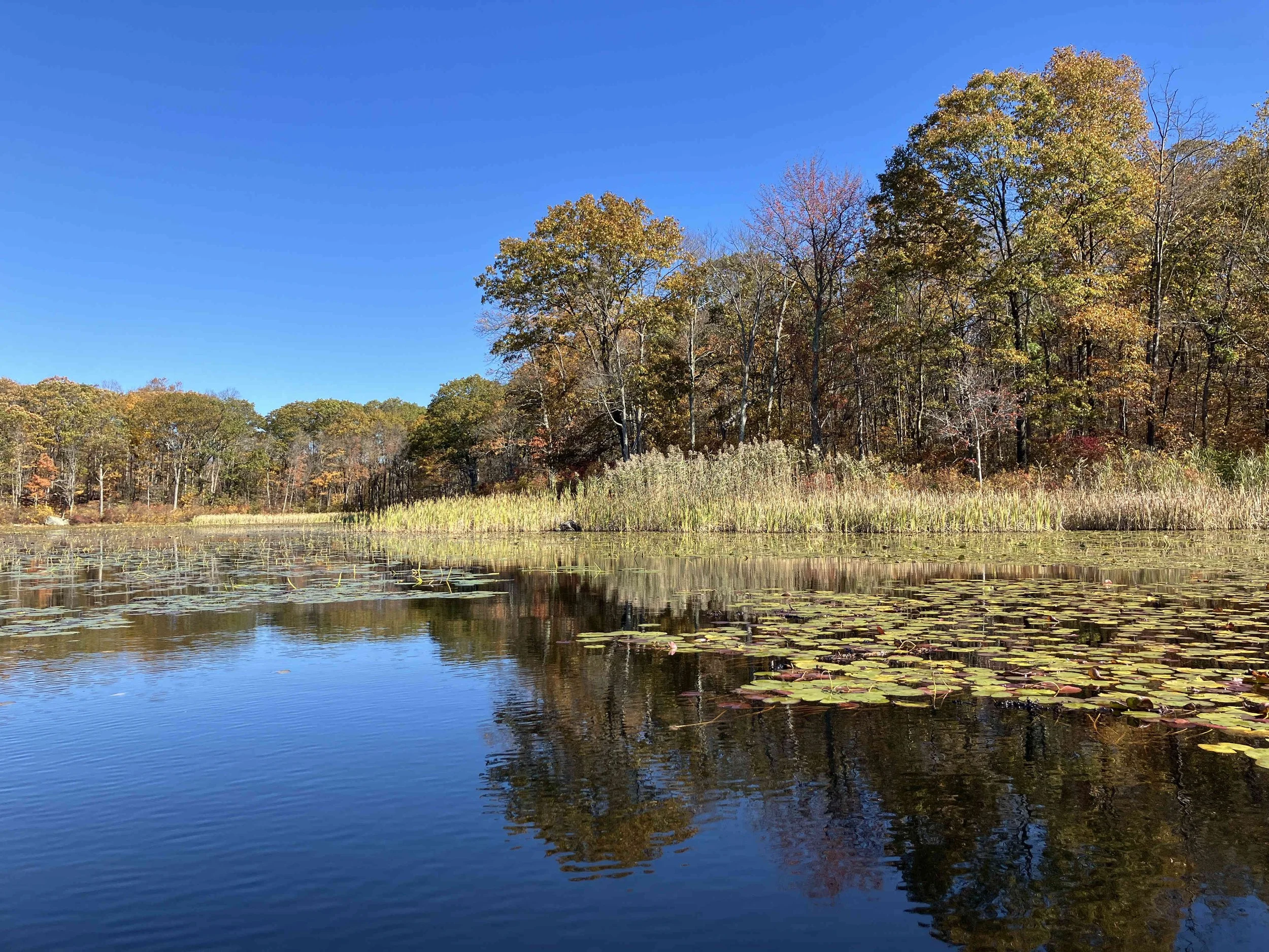 Access Ryker Lake from Edison Road. A few hundreds yards from the junction with Glen Road, there is a narrow unmarked dirt road on the right-hand side. Take that road through the woods for a quarter-mile down to the lake.