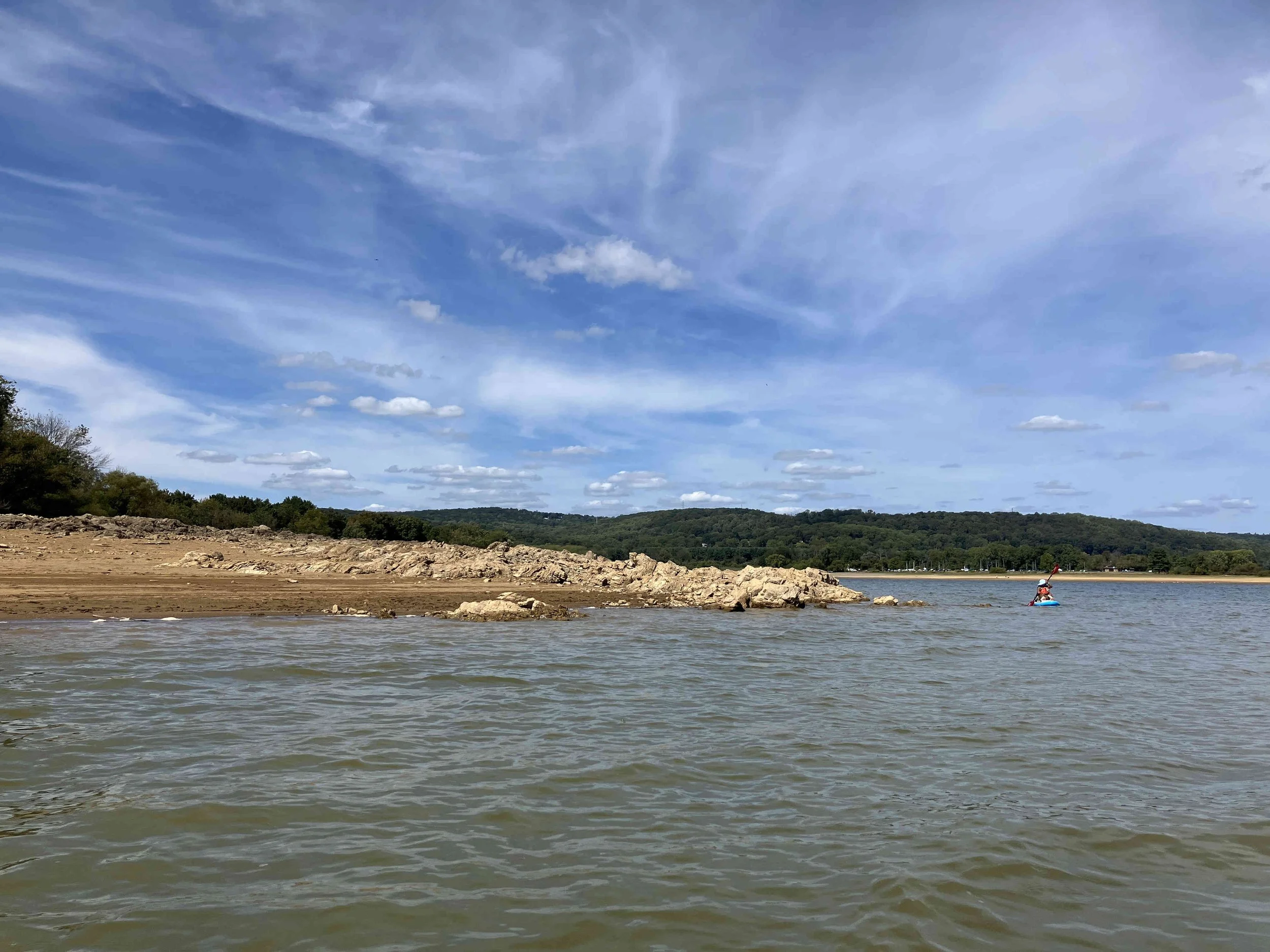 The following pictures do not do the reservoir justice inasmuch as the water level was approximately 15 feet below normal. However, according the US Geological Survey water-level gauge in the reservoir (see link below), such low water is increasingly normal during late summer. On the same day, the nearby Round Valley Reservoir was almost full.
