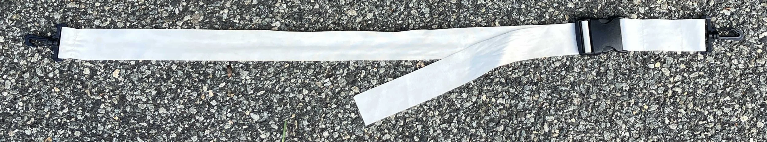 For the two long (51 inch) sections, create a loop (by bending backwards and then sewing) at the front end. Make the loop big enough so that it can go over the PVC pipe. I bent 6 inches of strap back upon itself and then sewed. At the other end of each strap, attach the adjustable half of the buckle.