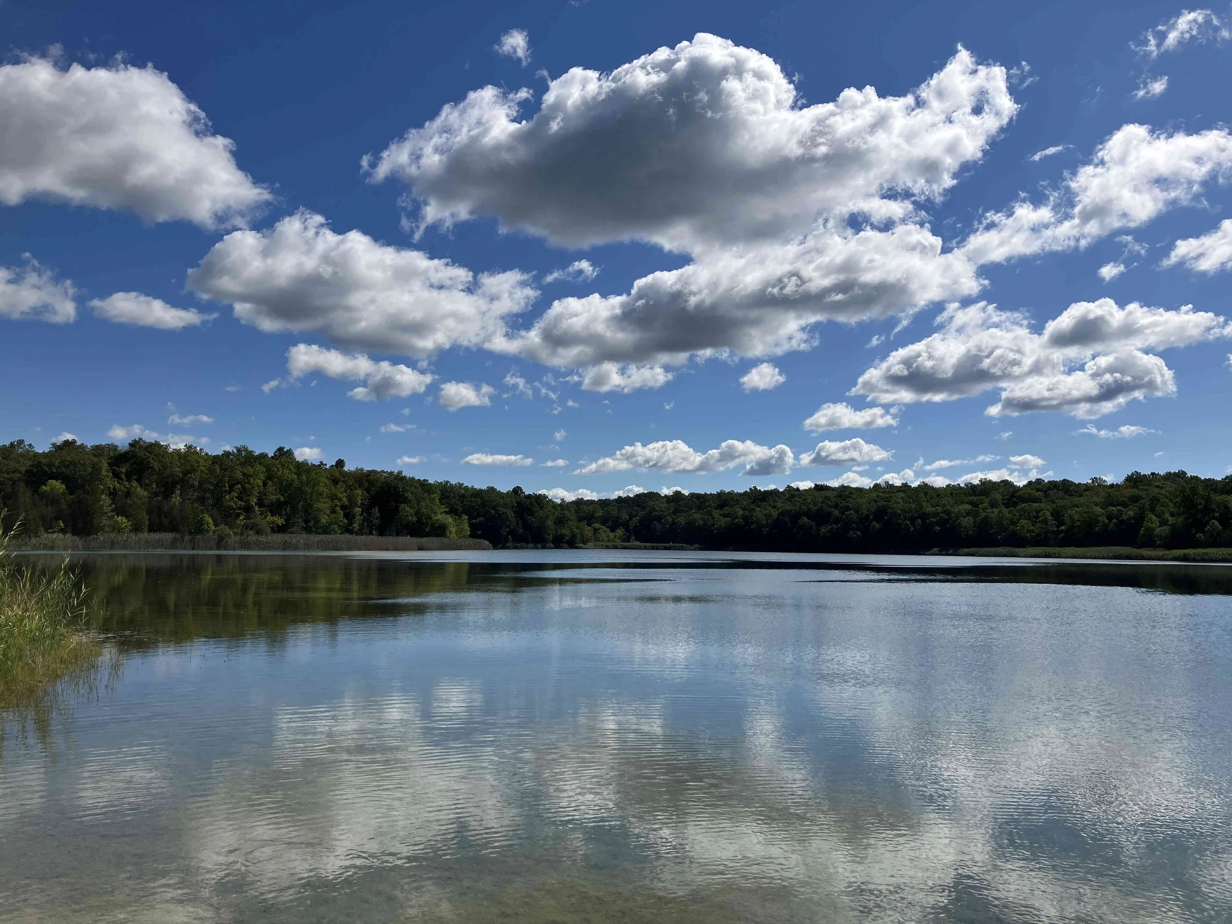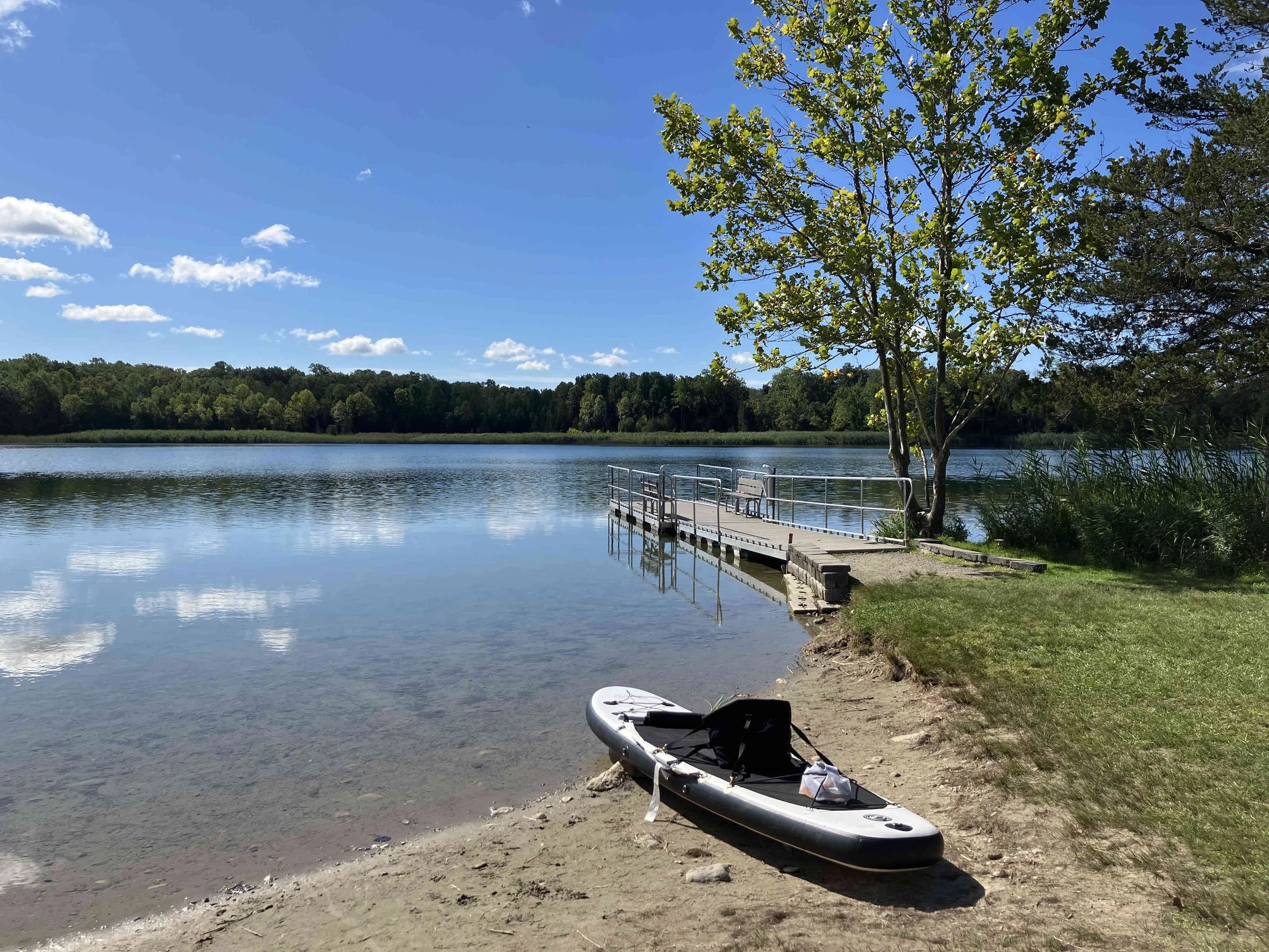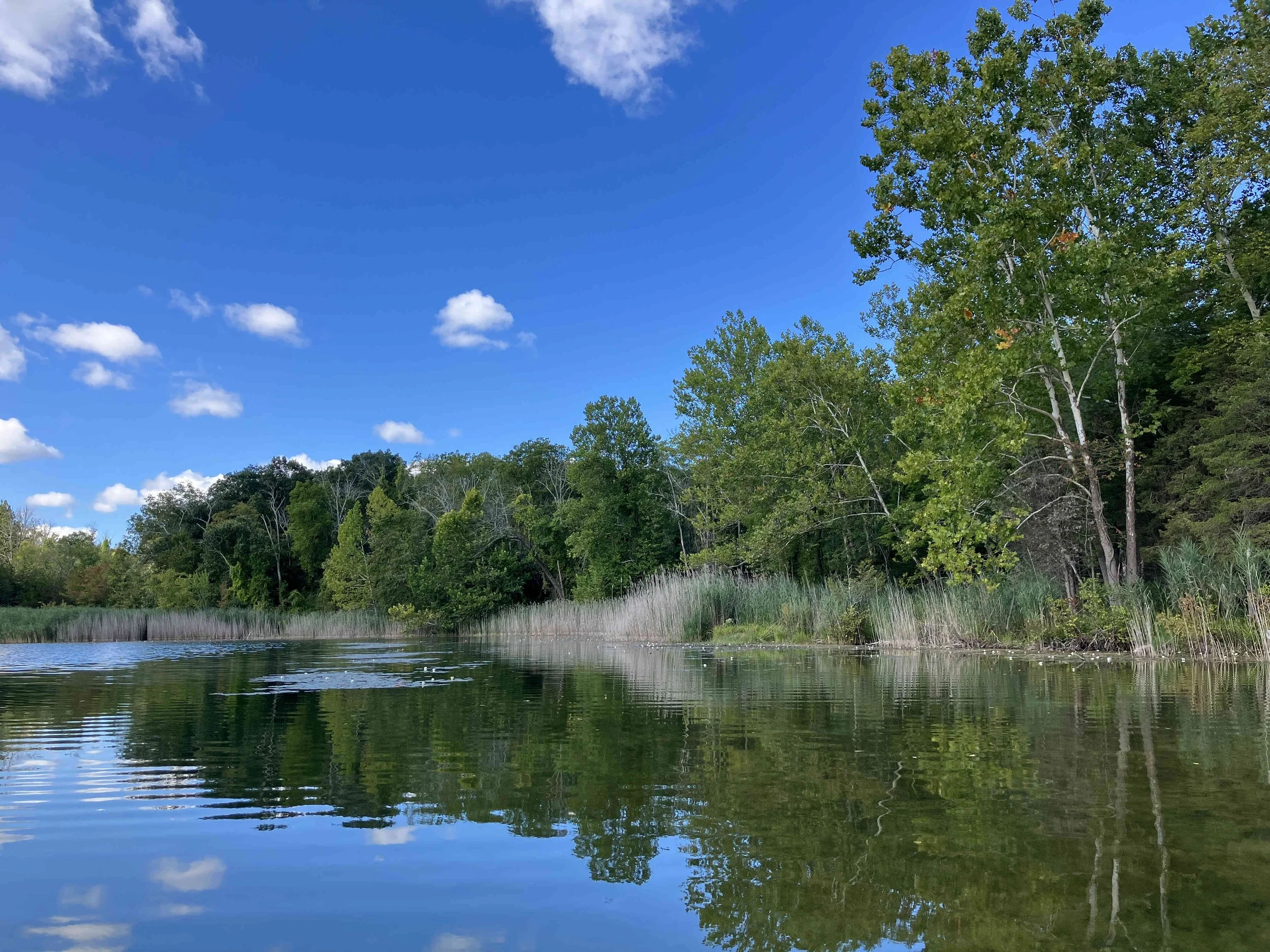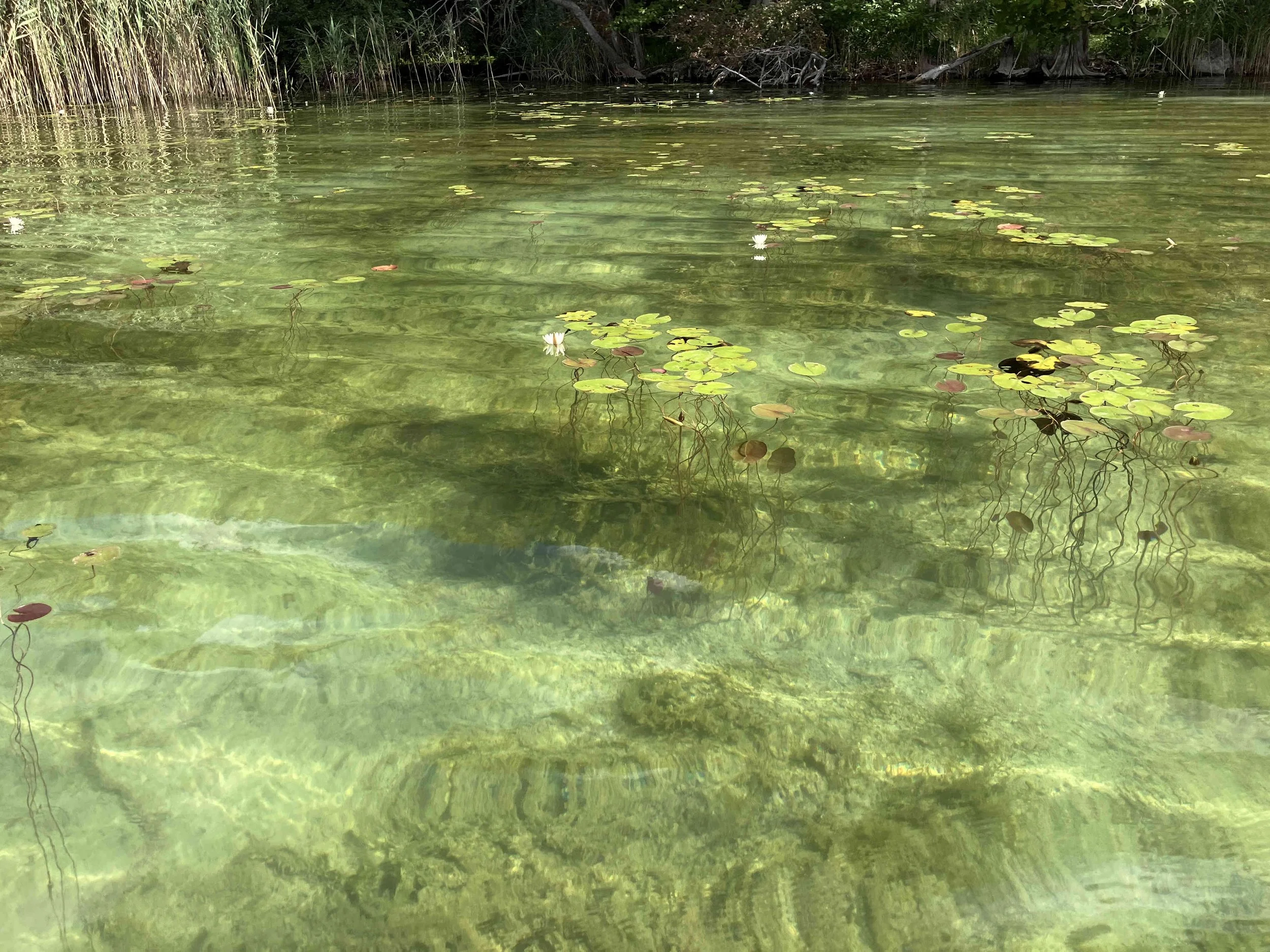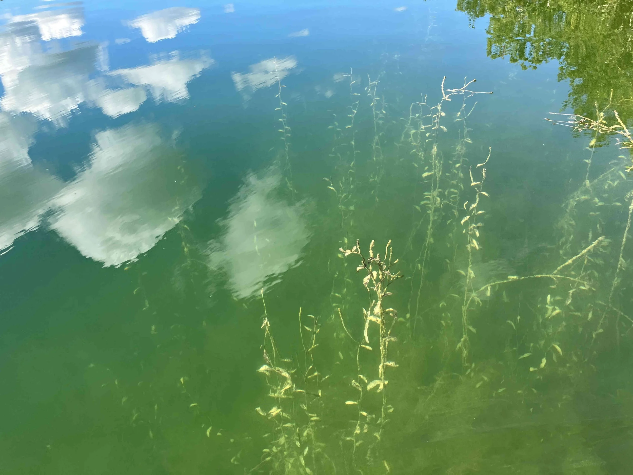 White Lake (70 acres) is in Hardwick Township, Warren County. It is in the White Lake Natural Resource Area. It is a bit bland on the surface. But the water is crystal clear, and there is a lot of interesting vegetation under the surface. The following photos do not do the underwater view justice on account of the glare.