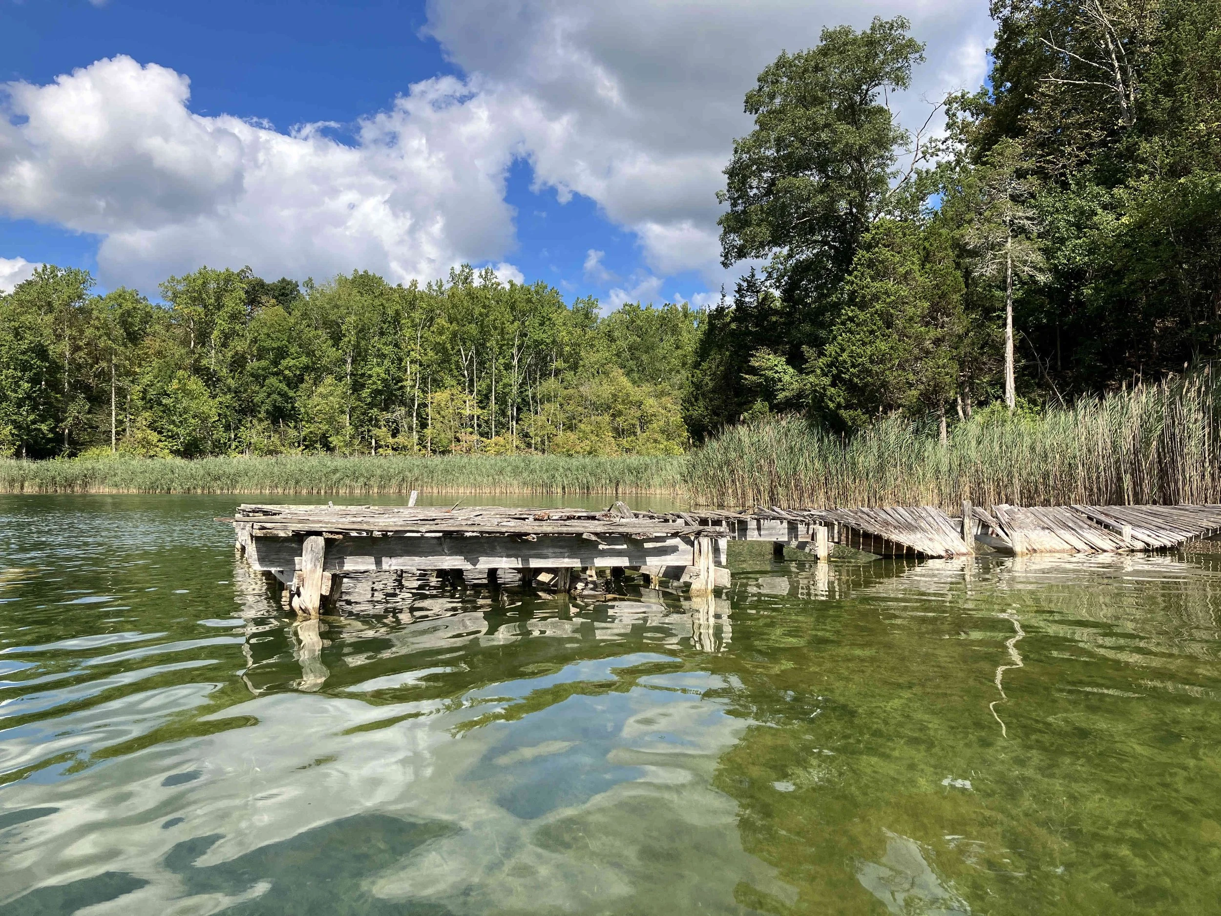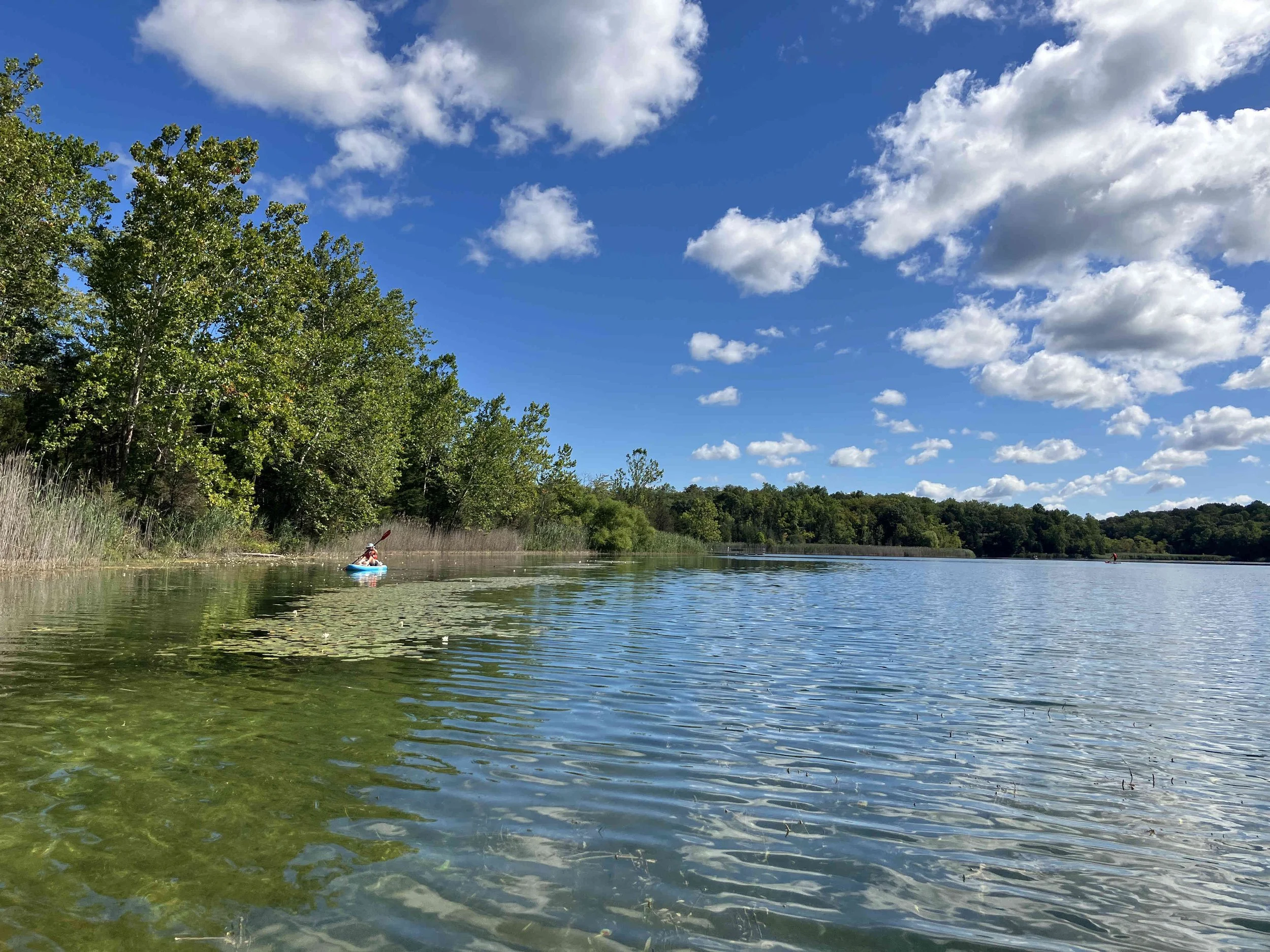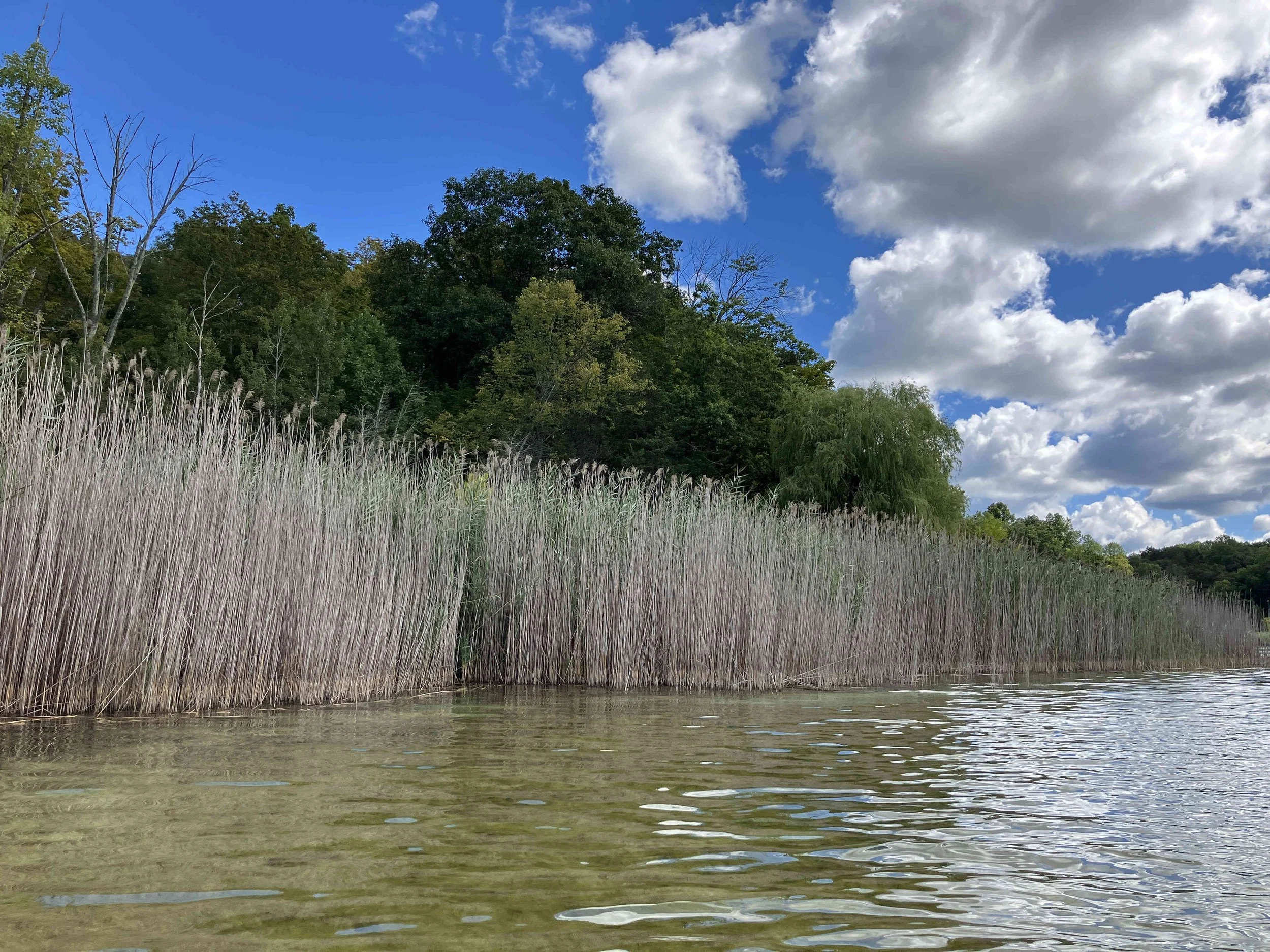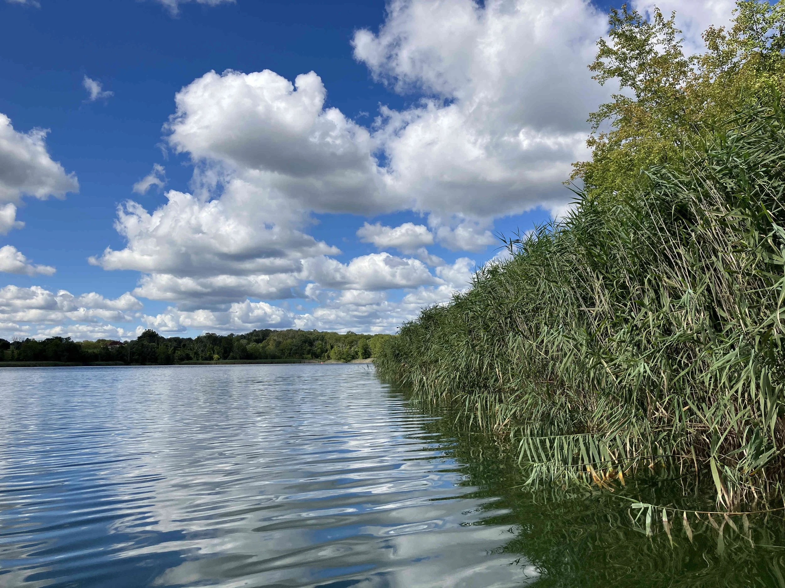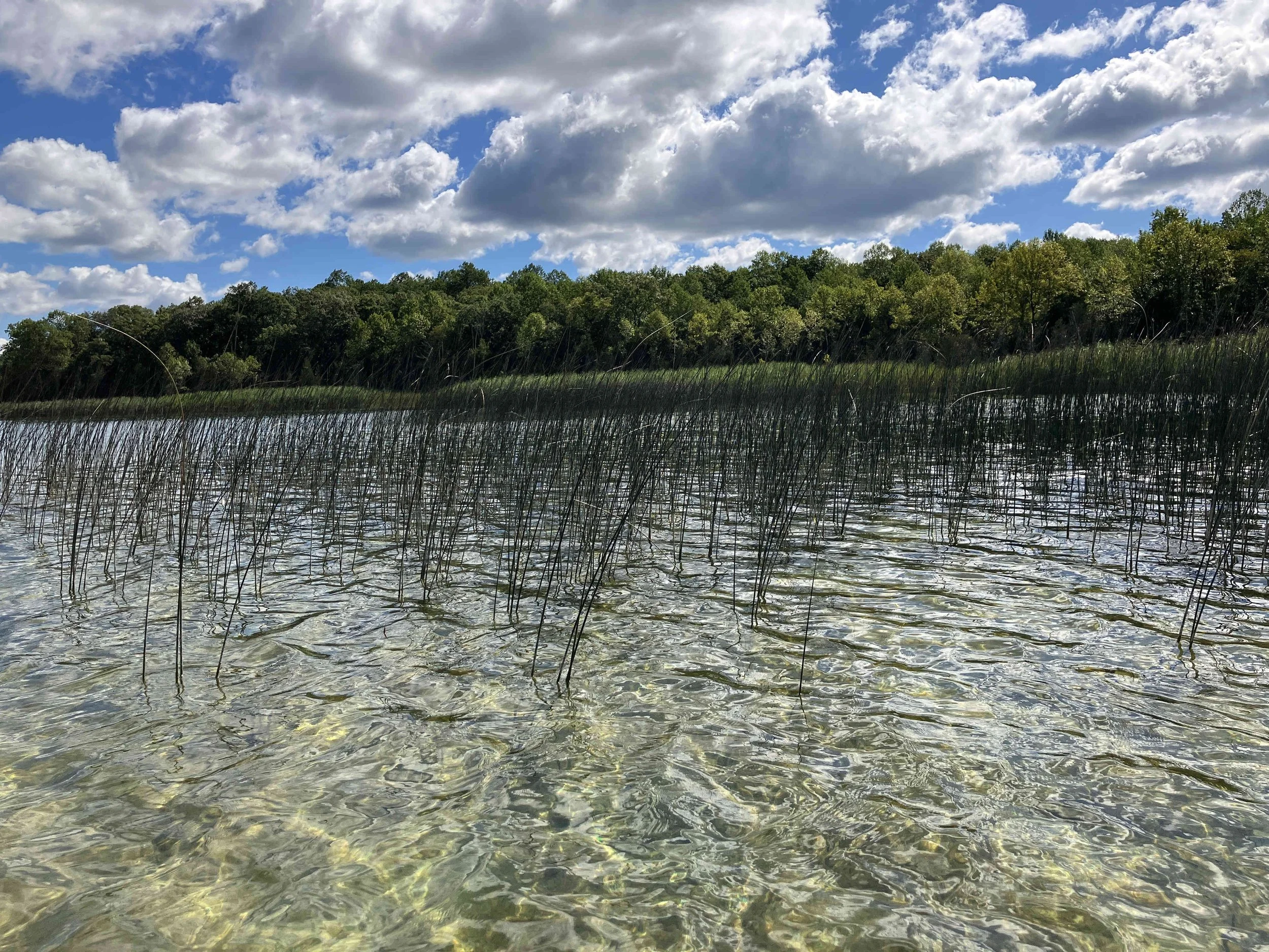 White Lake (70 acres) is in Hardwick Township, Warren County. It is in the White Lake Natural Resource Area. It is a bit bland on the surface. But the water is crystal clear, and there is a lot of interesting vegetation under the surface. The following photos do not do the underwater view justice on account of the glare.