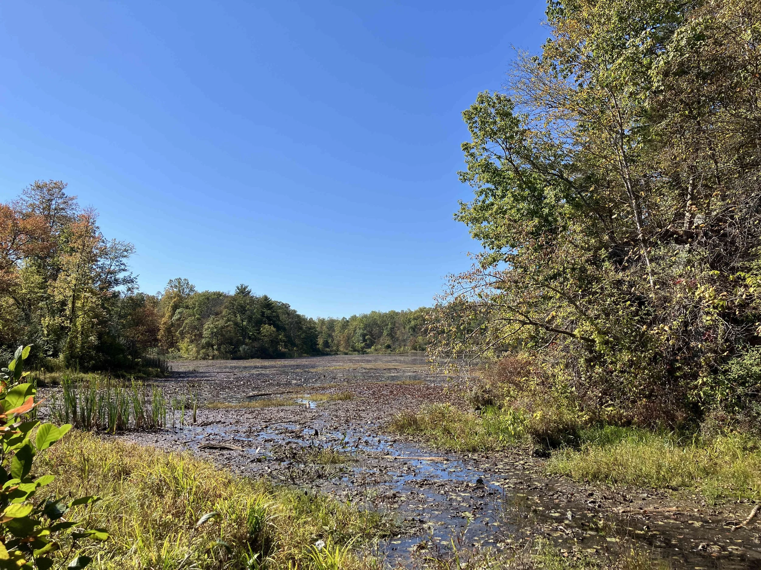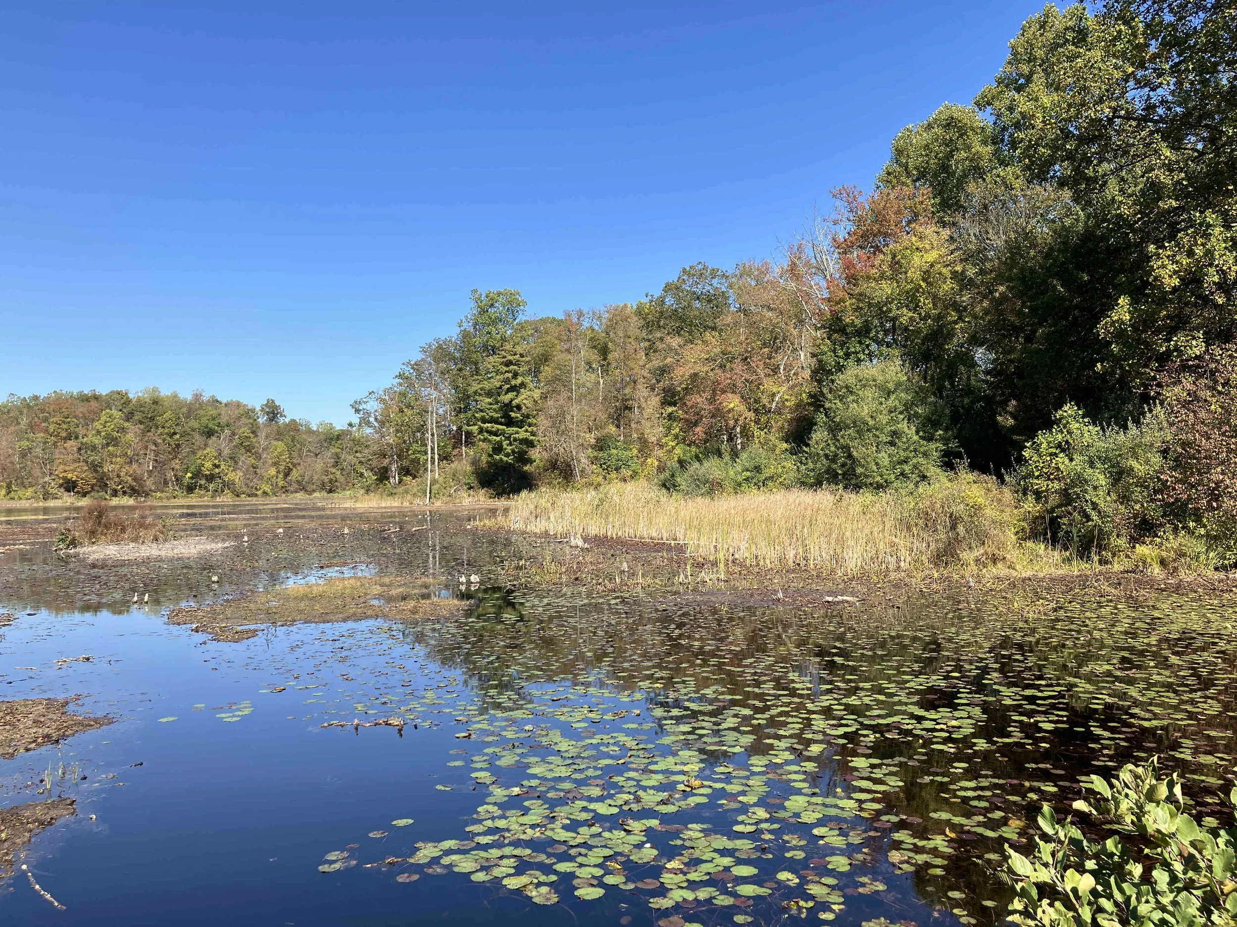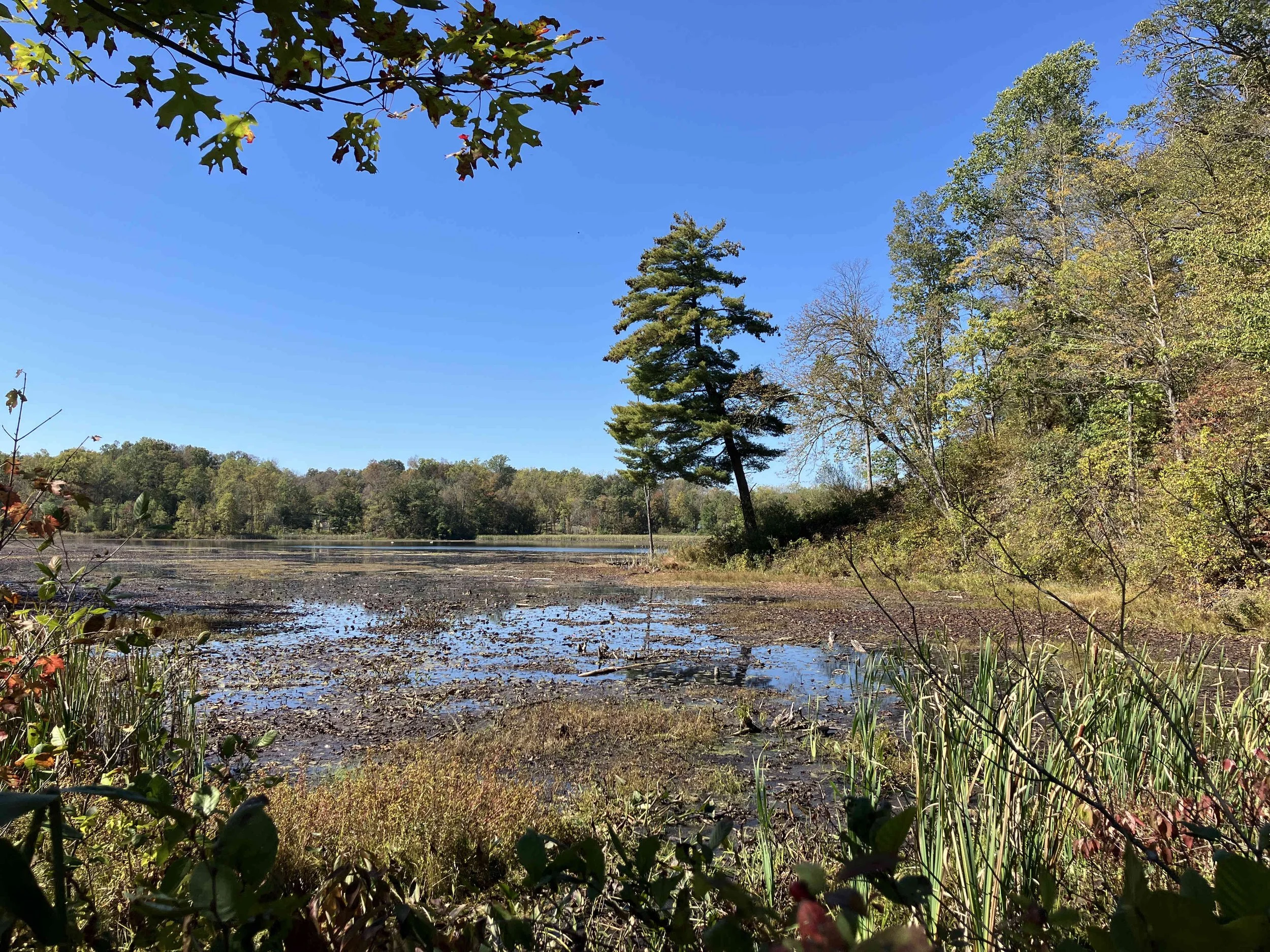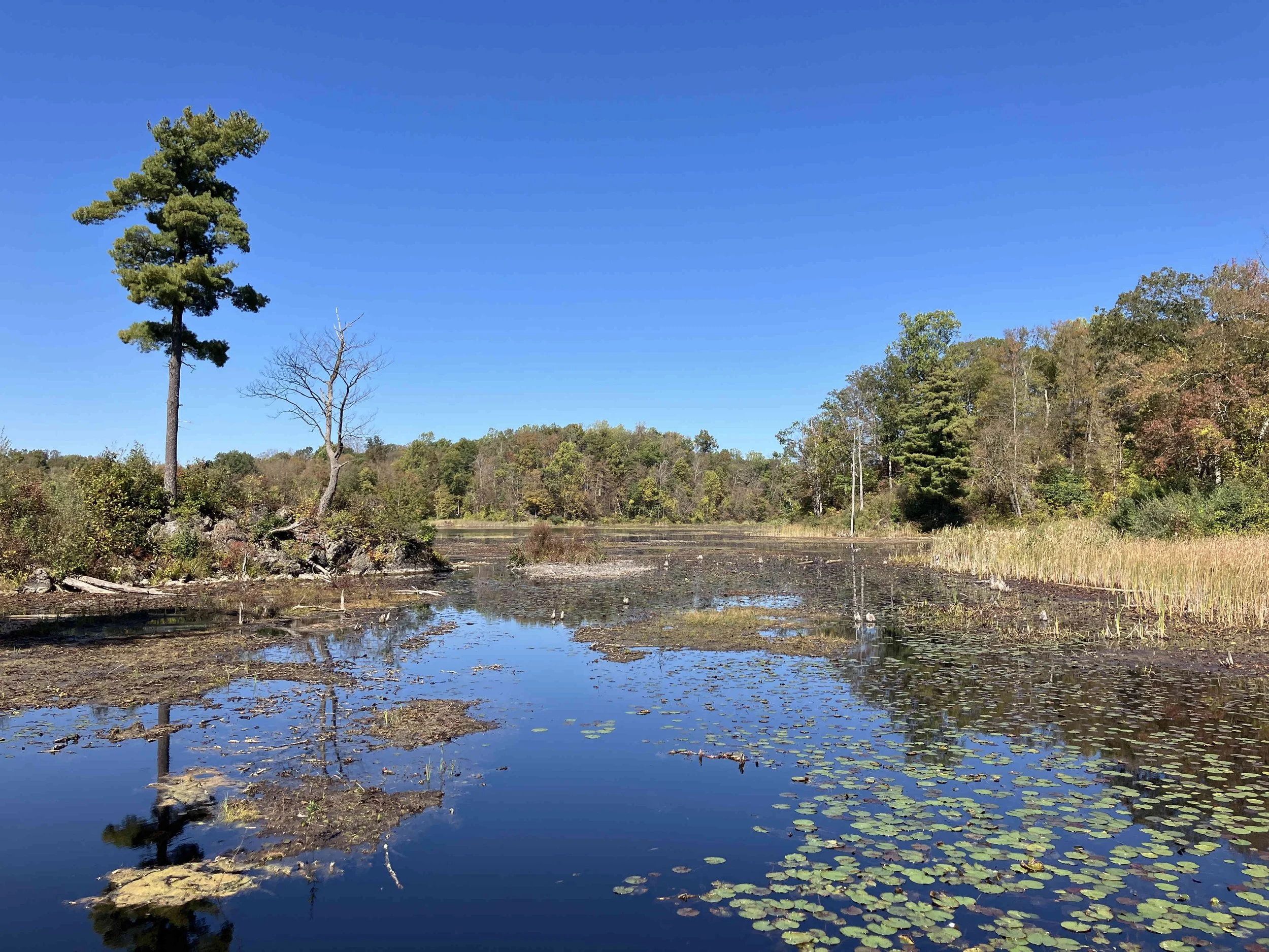 White’s Pond (8 acres) is in Andover Township, Sussex County. It is one of four lakes in Kittatinny Valley State Park where one can go kayaking. Except one can’t go kayaking when there is a drought, because most of the lake is very shallow. The following pictures were taken from the shore.